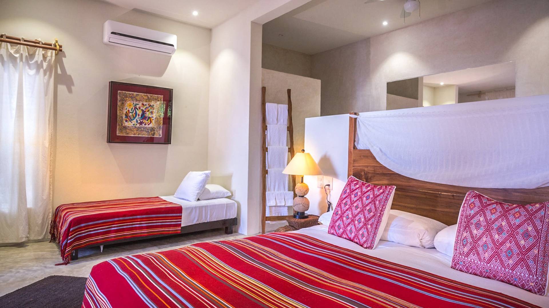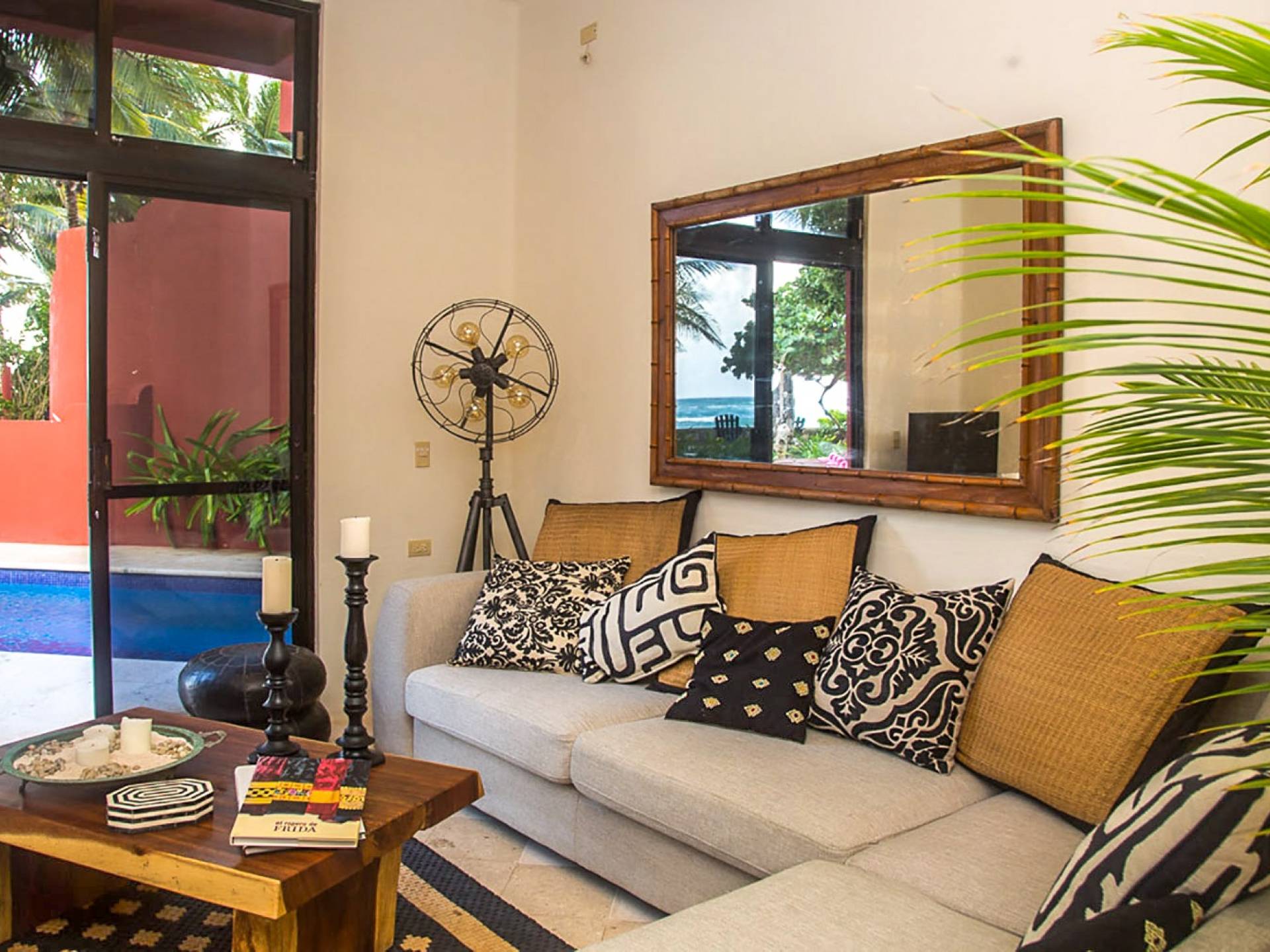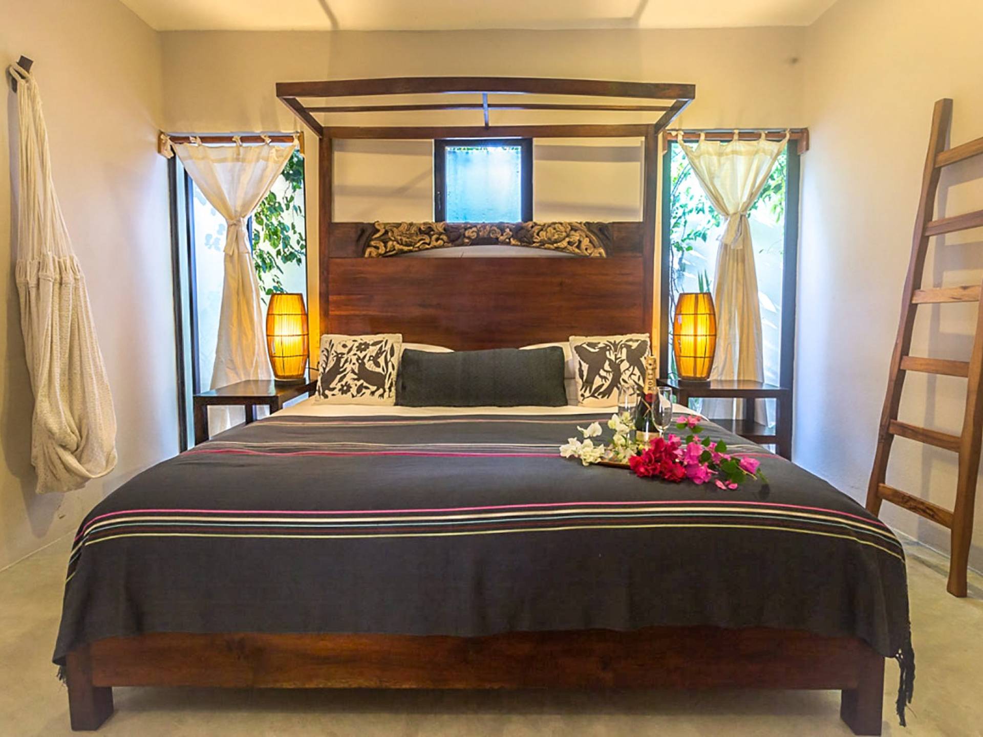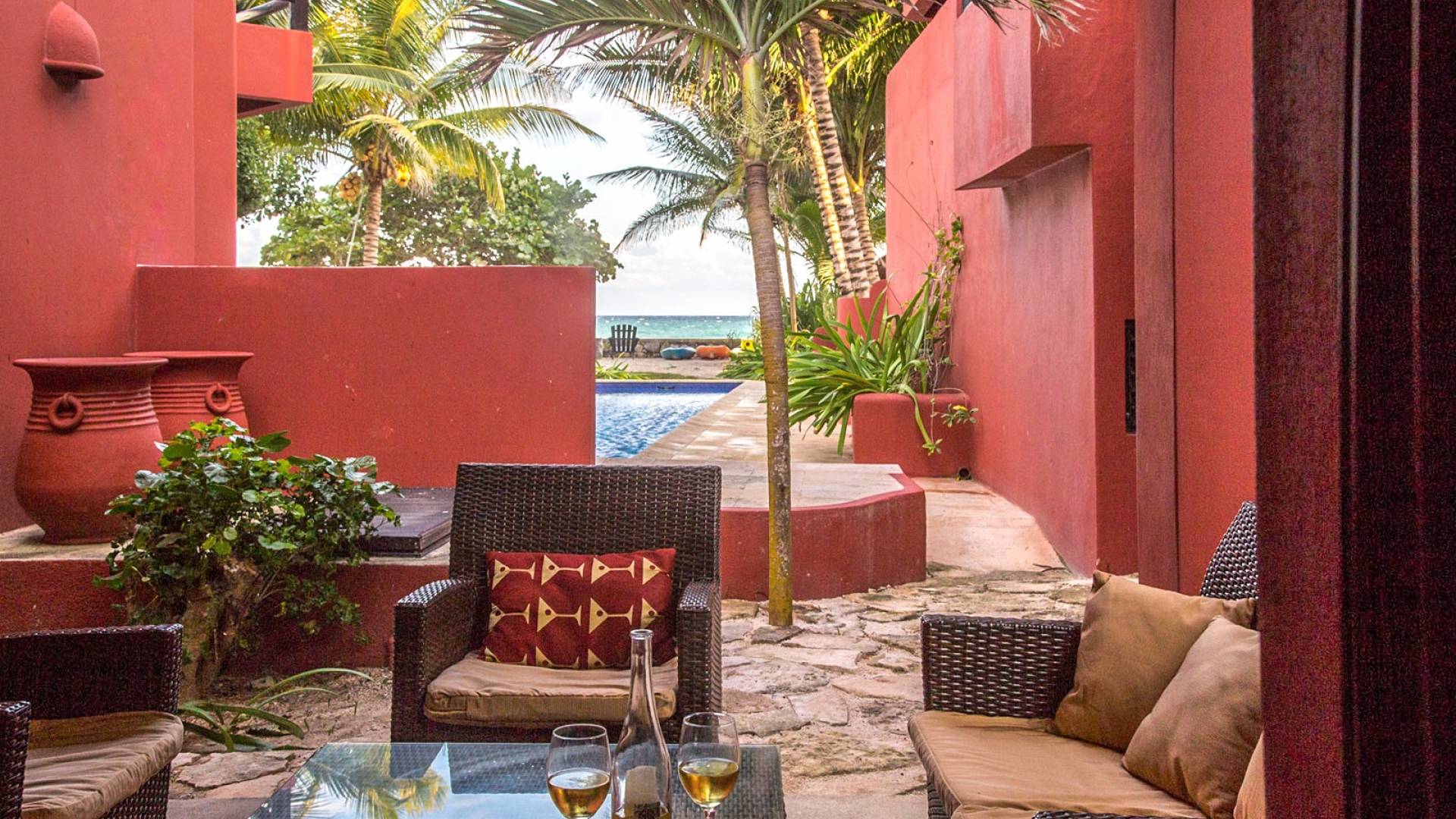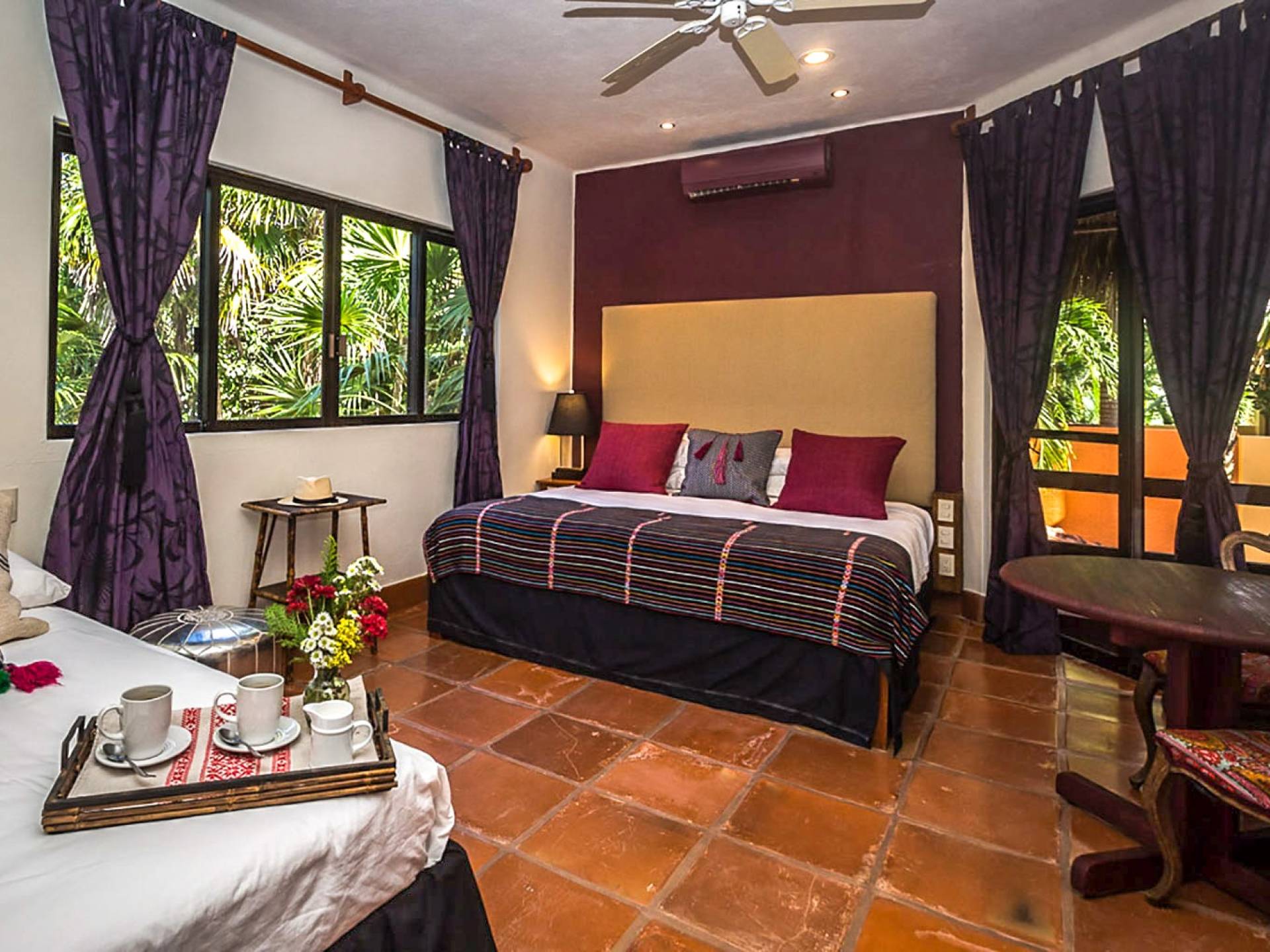 La piscine, la terrasse ensoleillée, la plage et la mer vous invitent au soleil, au bronzage et aux incroyables activités de plein air de la Riviera Maya. Faites des longueurs ou jouez avec votre famille et vos amis dans la piscine. Sortez les deux kayaks de mer doubles et un simple pour une sortie calme au-dessus du récif de corail - gratuit pour nos clients. Des planches à pagaie sont disponibles moyennant un petit supplément. Huit chambres luxueuses sont toutes climatisées, chacune avec sa salle de bain attenante et son balcon privé - sept avec une vue directe sur la mer des Caraïbes. Il y a six chambres dans la villa principale - une au premier niveau, quatre au deuxième étage et une suite penthouse. Deux chambres supplémentaires sont des pièces d'entrée privées indépendantes dans le domaine clos.
