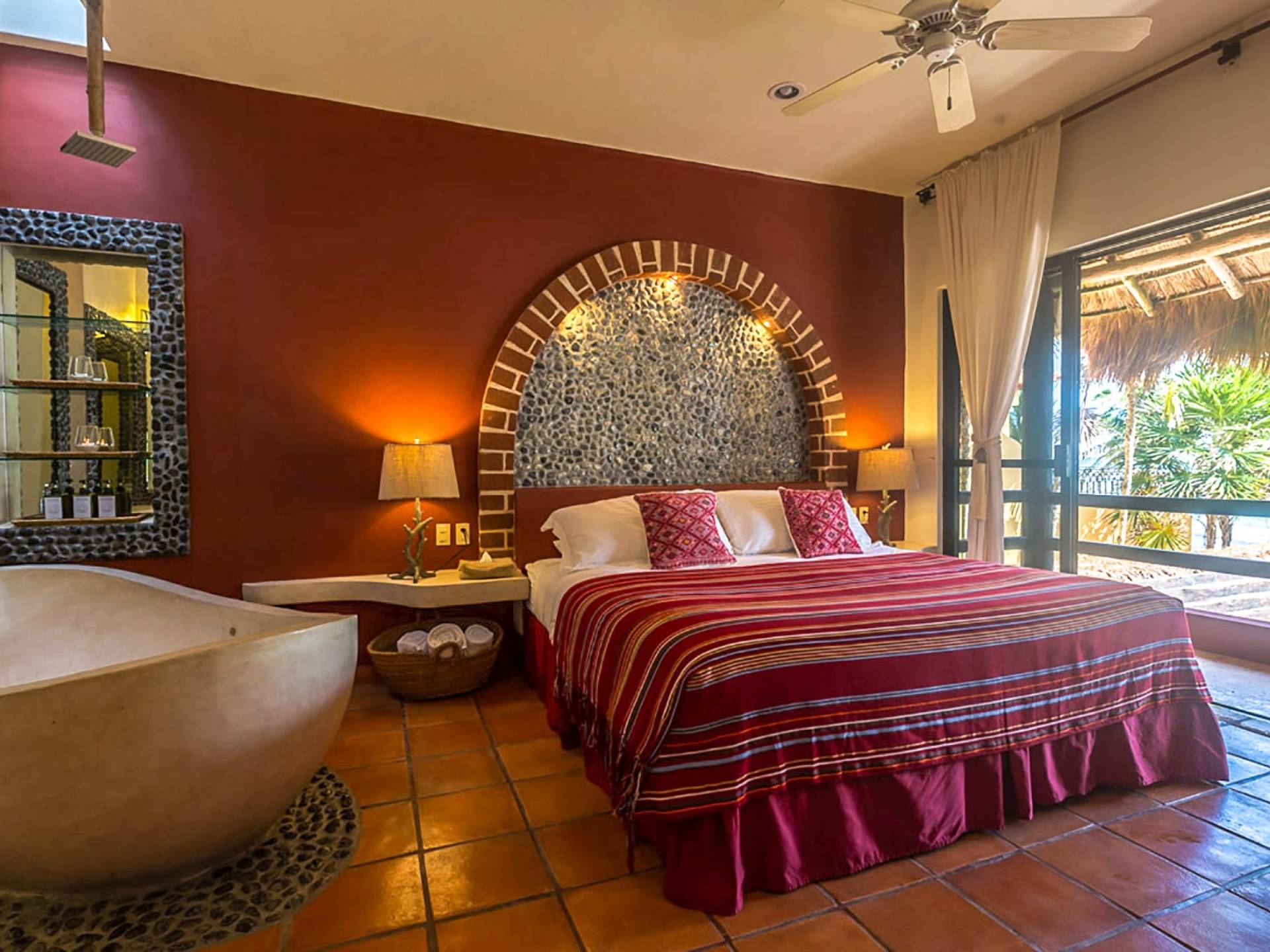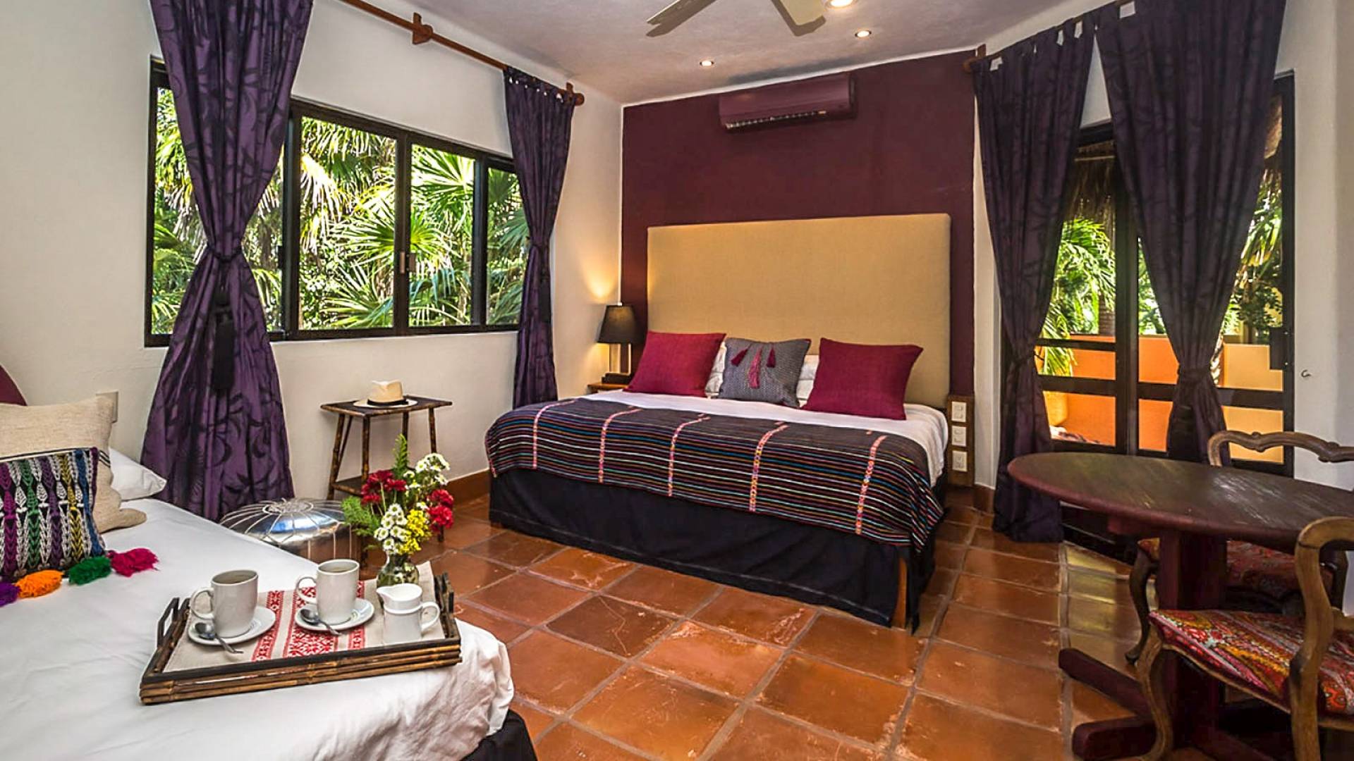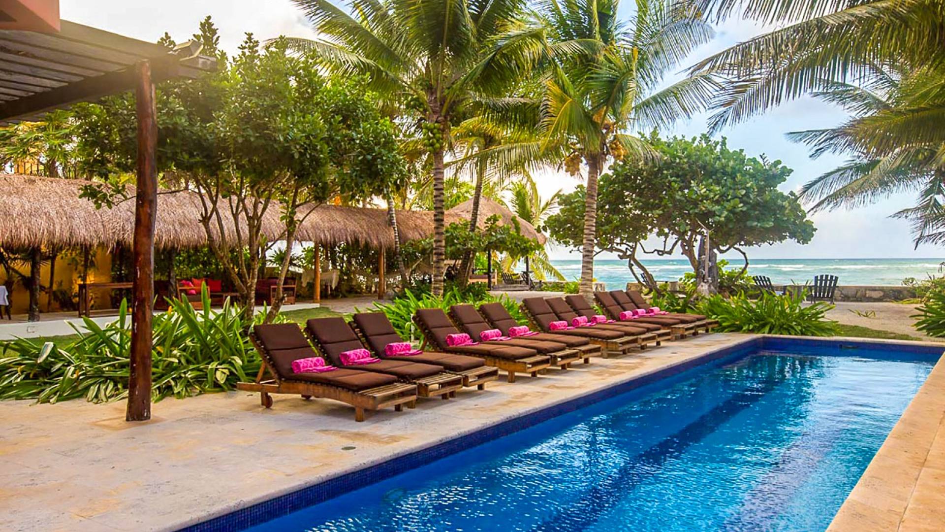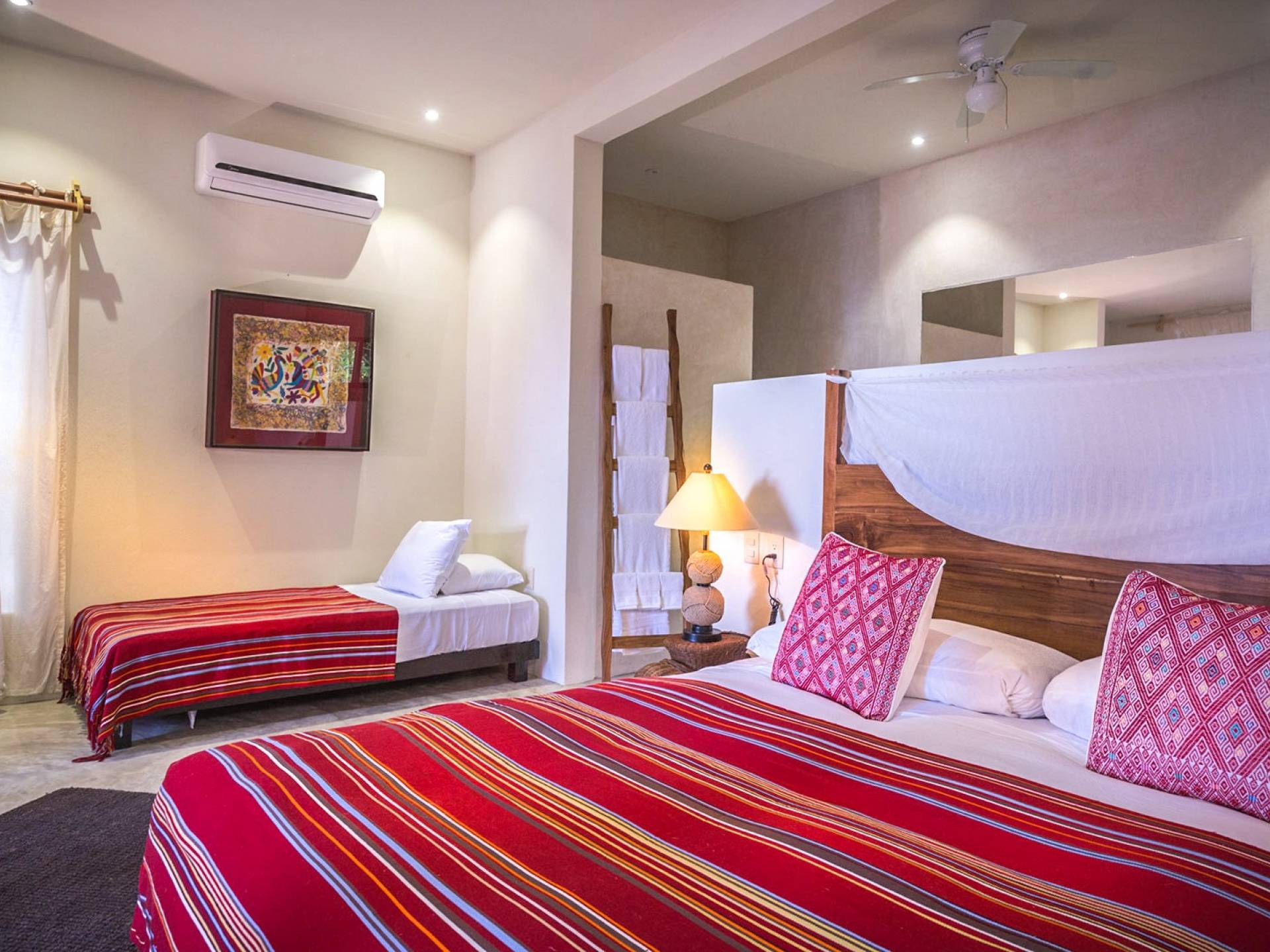 La piscine, la terrasse ensoleillée, la plage et la mer vous invitent au soleil, au bronzage et aux incroyables activités de plein air de la Riviera Maya. Faites des longueurs ou jouez avec votre famille et vos amis dans la piscine. Sortez les deux kayaks de mer doubles et un simple pour une sortie calme au-dessus du récif de corail - gratuit pour nos clients. Des planches à pagaie sont disponibles moyennant un petit supplément. Huit chambres luxueuses sont toutes climatisées, chacune avec sa salle de bain attenante et son balcon privé - sept avec une vue directe sur la mer des Caraïbes. Il y a six chambres dans la villa principale - une au premier niveau, quatre au deuxième étage et une suite penthouse. Deux chambres supplémentaires sont des pièces d'entrée privées indépendantes dans le domaine clos.