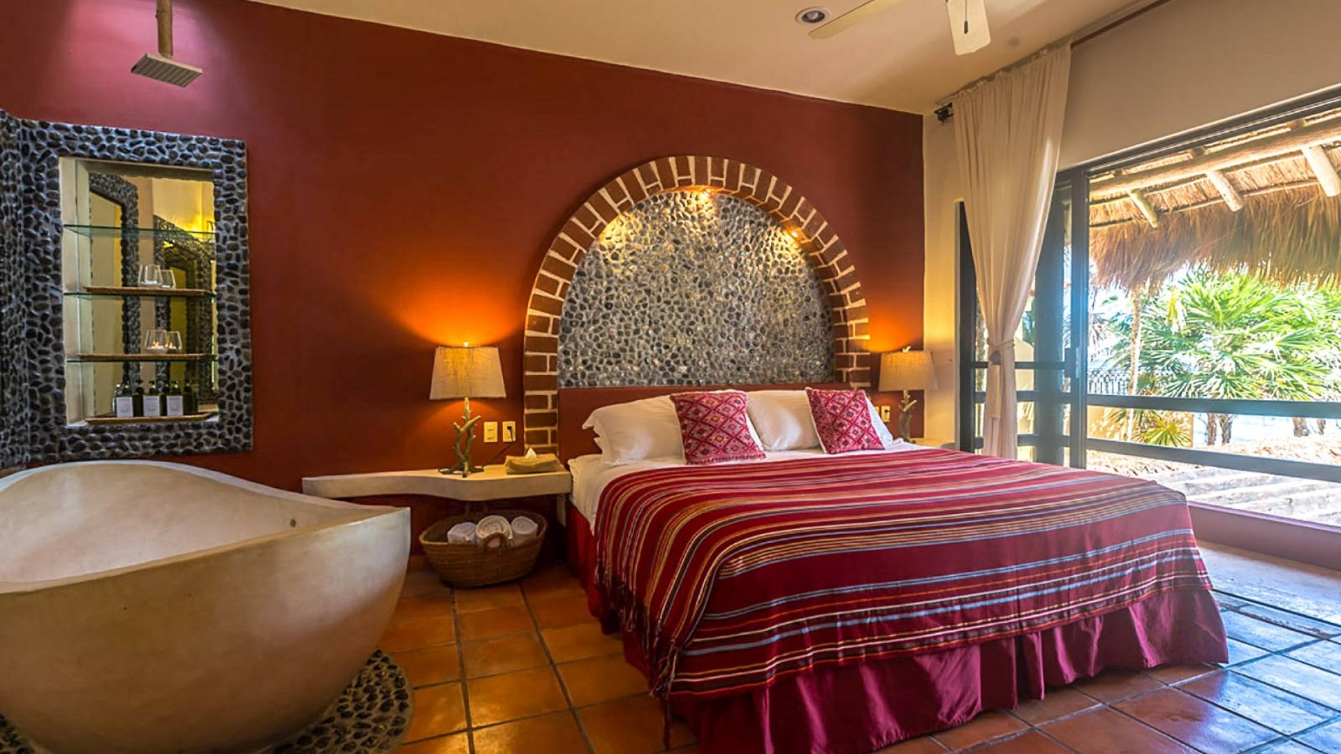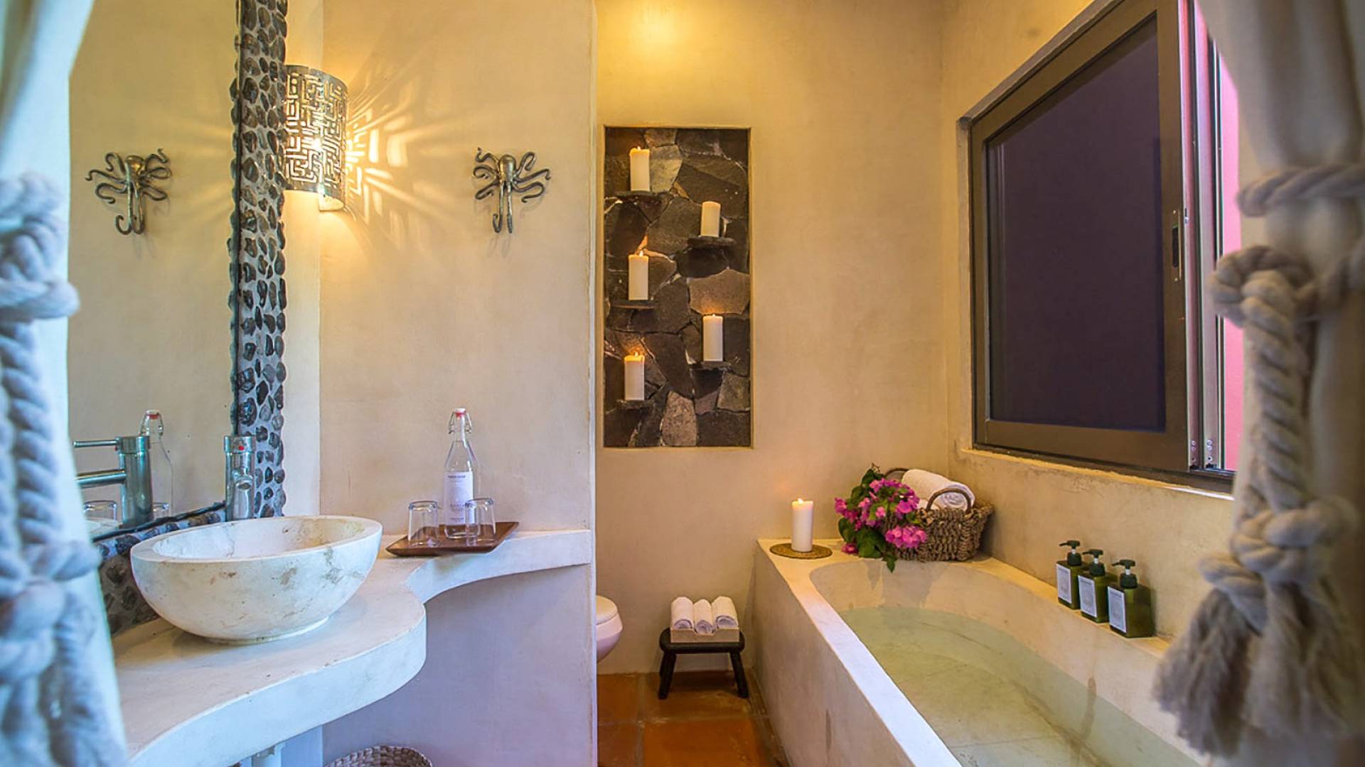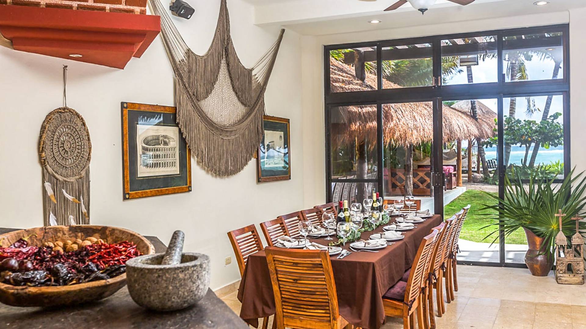 La grande cuisine familiale du Zen del Sol avec son îlot recouvert de granit noir est attenante à une cuisine de traiteur séparée pour un service intime ou de grandes célébrations. Une vaste salle à manger, pouvant accueillir jusqu'à 21 personnes, s'ouvre sur le jardin et offre une sensation d'intérieur et d'extérieur. Un grand salon accueillant, l'un des nombreux espaces de rassemblement, est le centre du divertissement intérieur avec un sentiment de chez-soi. La plage Palapa est le cœur de la vie en plein air. Cette structure au toit de chaume de 90 pieds (30 mètres) abrite la salle à manger extérieure couverte qui ravit 21 convives avec des repas préparés par le chef ou en famille. Le Palapa dispose également de deux coins salons en tant que salons extérieurs, d'un bar de divertissement, d'un lit de détente en bord de mer et de hamacs de détente. L'isolement et l'intimité sont immédiatement ressentis lorsque vous franchissez le seuil du domaine clos et traversez le jardin tropical luxuriant cloîtré.