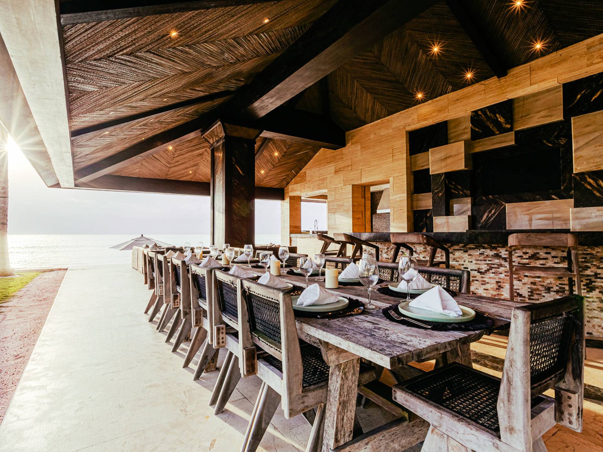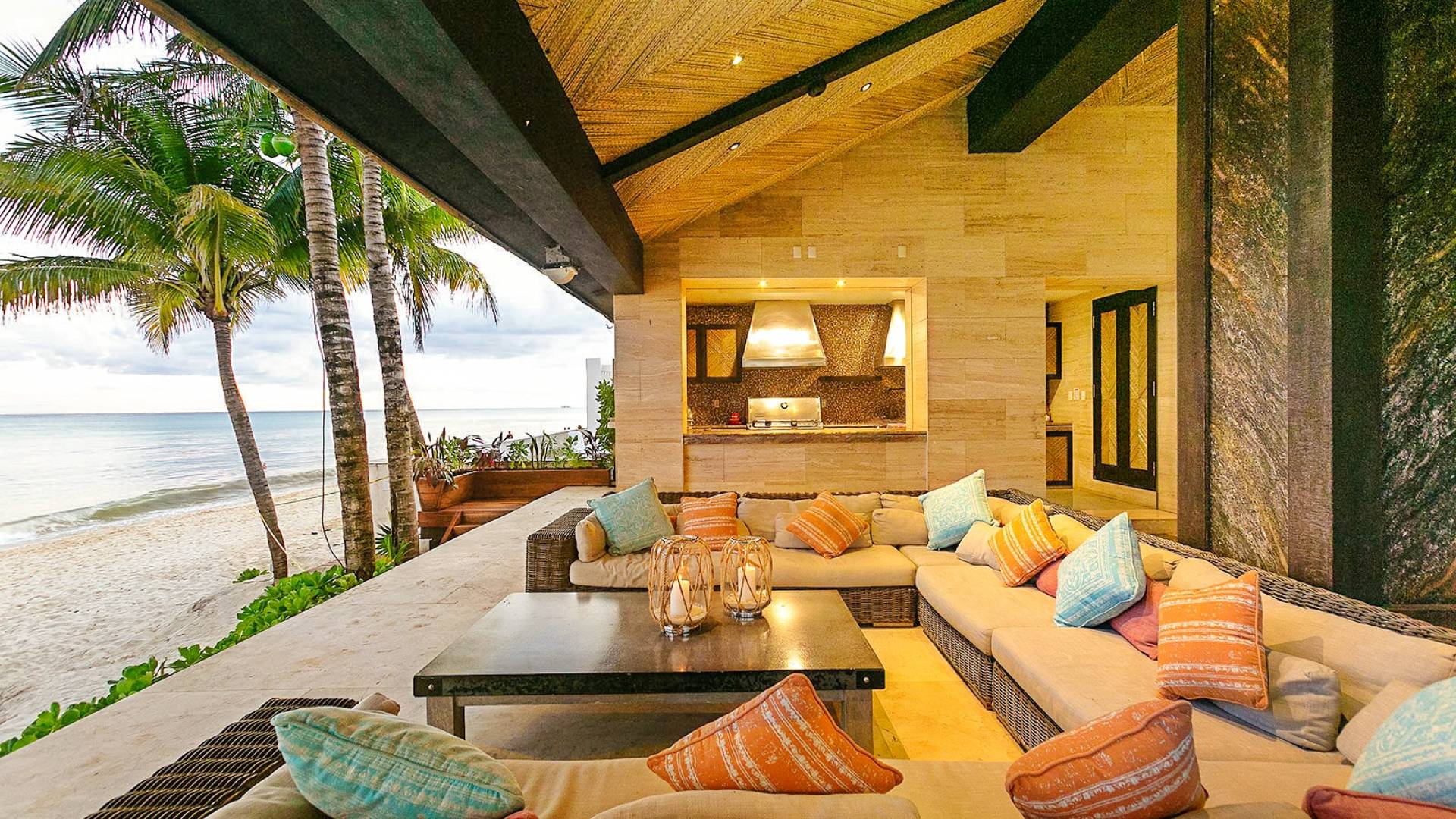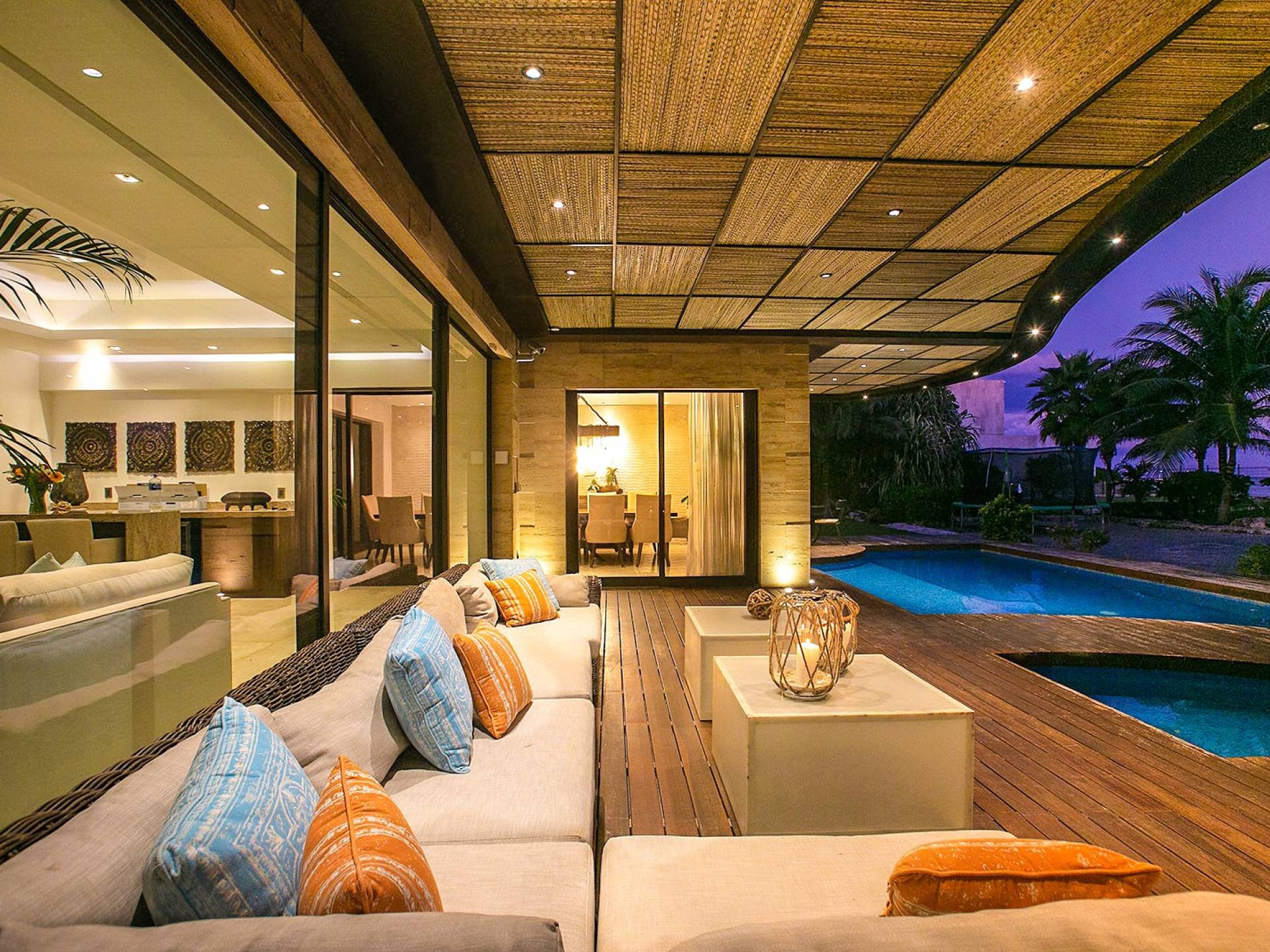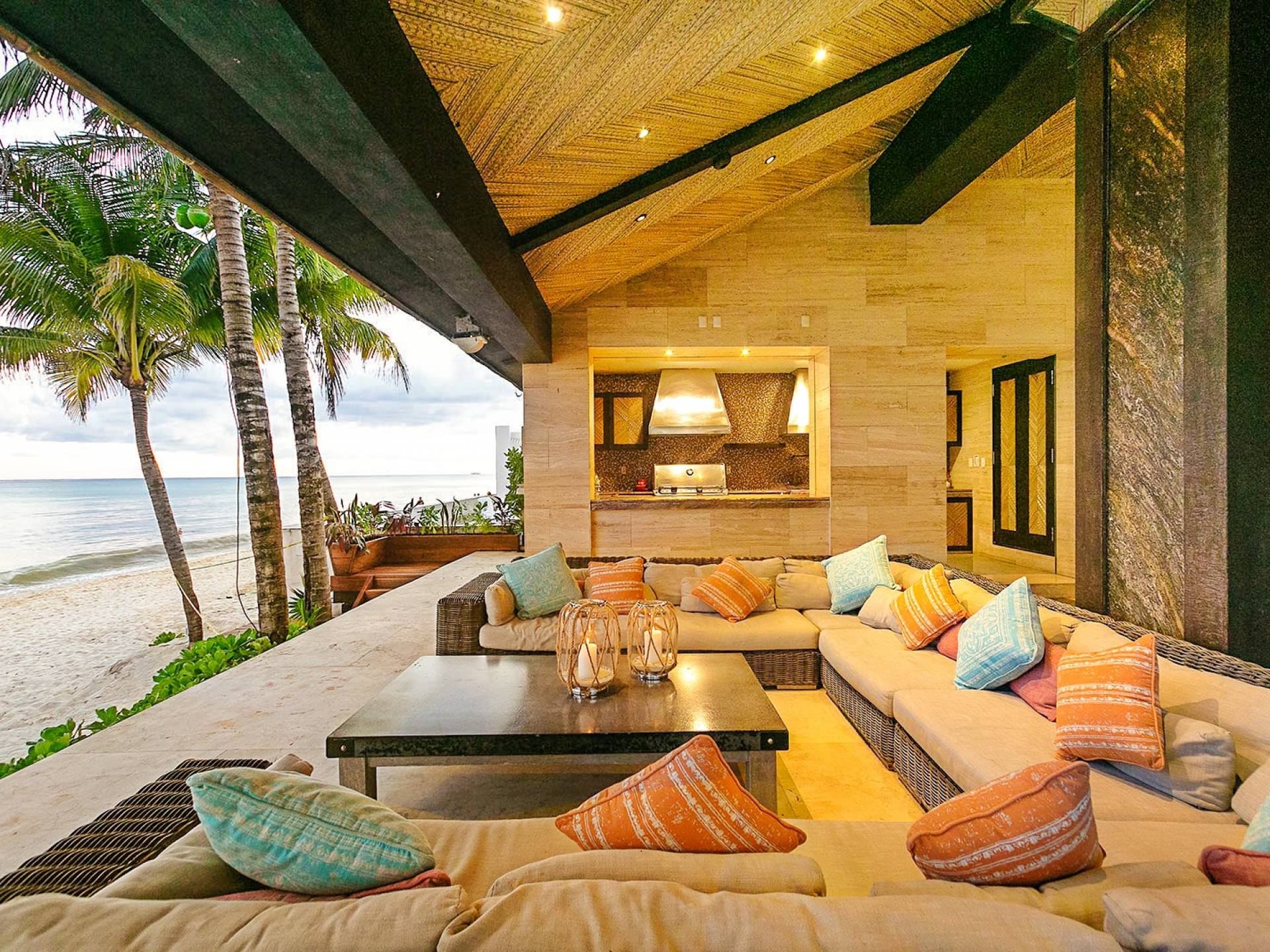 La piscine et le jacuzzi se trouvent sur le pont en bord de plage, ici vous avez des canapés pour vous détendre. La grande palapa en bord de mer avec salle de bain, bar, cuisine avec four et grill, salle à manger intérieure et coin salon. Savourez votre cocktail préféré, dînez en plein air, détendez-vous, célébrez ou regardez le lever du soleil ici. Près de la palapa, il y a des marches menant à la plage. Sentez le sable blanc et doux sous vos pieds et plongez dans le majestueux océan turquoise. Ici, la natation, le kayak et le paddle sont magnifiques.