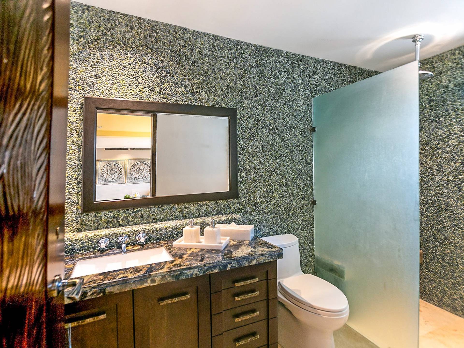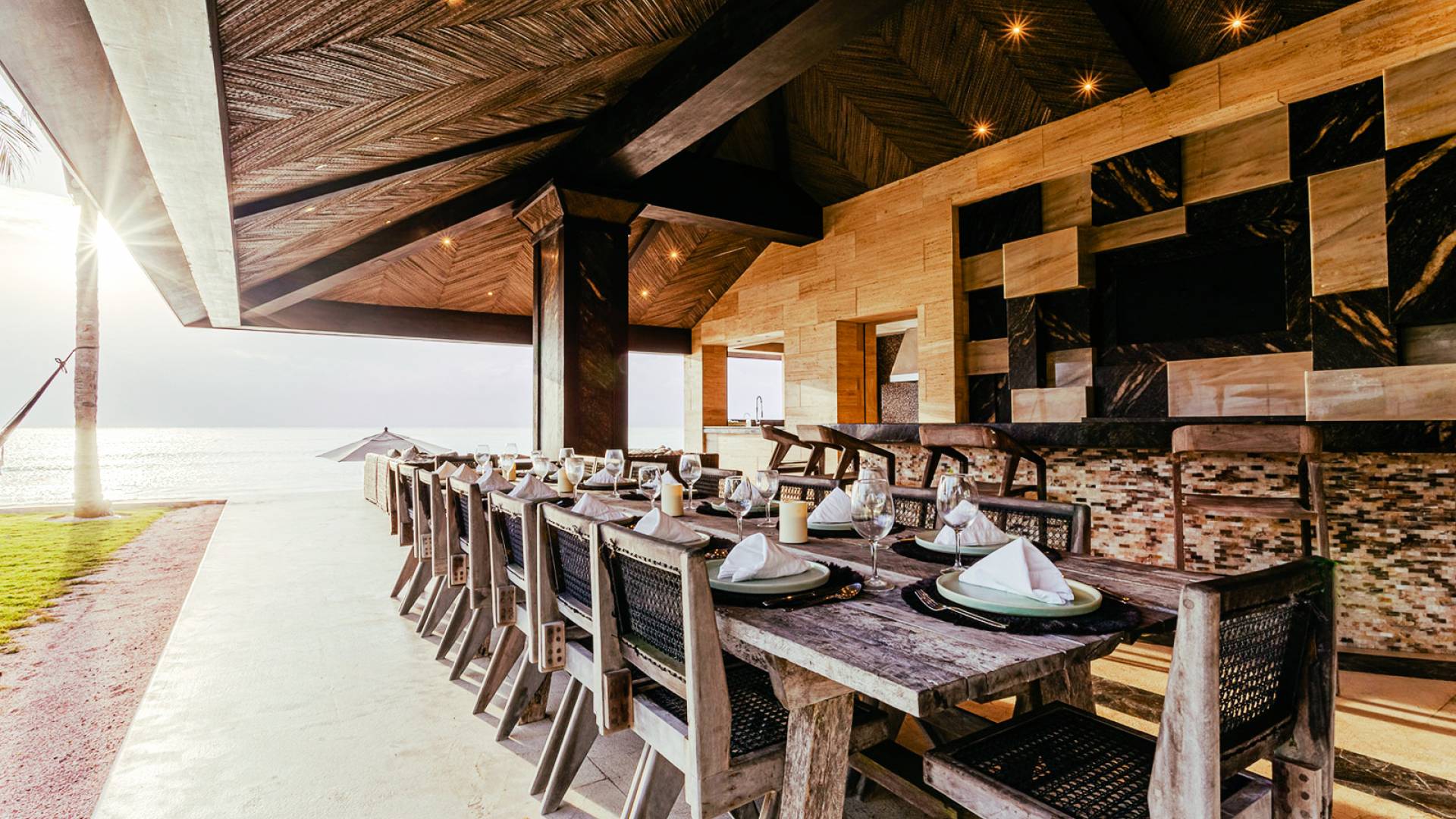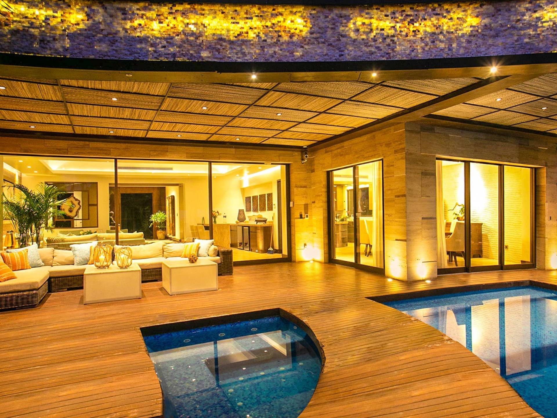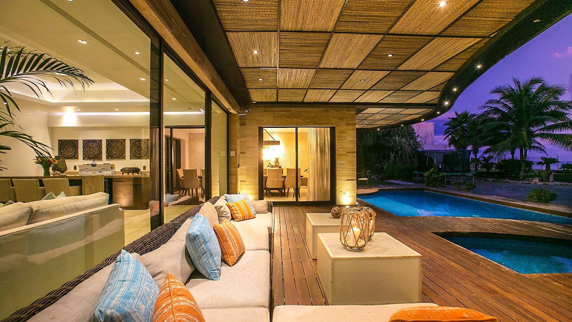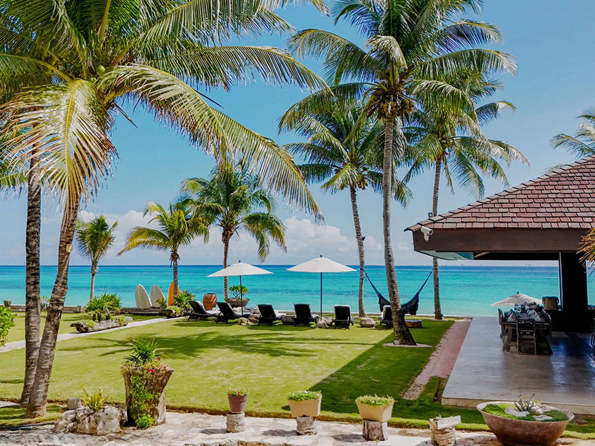 La piscine et le jacuzzi se trouvent sur le pont en bord de plage, ici vous avez des canapés pour vous détendre. La grande palapa en bord de mer avec salle de bain, bar, cuisine avec four et grill, salle à manger intérieure et coin salon. Savourez votre cocktail préféré, dînez en plein air, détendez-vous, célébrez ou regardez le lever du soleil ici. Près de la palapa, il y a des marches menant à la plage. Sentez le sable blanc et doux sous vos pieds et plongez dans le majestueux océan turquoise. Ici, la natation, le kayak et le paddle sont magnifiques.