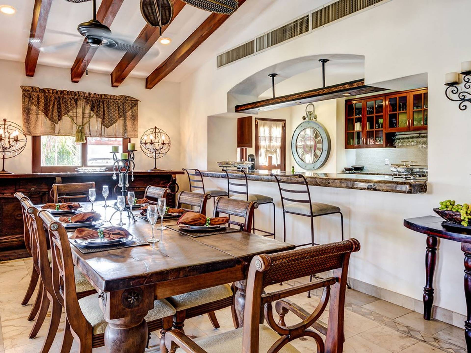 Le décor est tranquille et accueillant. La vaste cuisine s'ouvre sur une grande salle à manger et un salon, qui donnent tous deux sur la terrasse de la piscine et offrent une vue sur l'océan. Cette maison est l'escapade parfaite pour les couples, les familles et les amis à la recherche d'un hébergement 5 étoiles de luxe à Playa del Carmen.