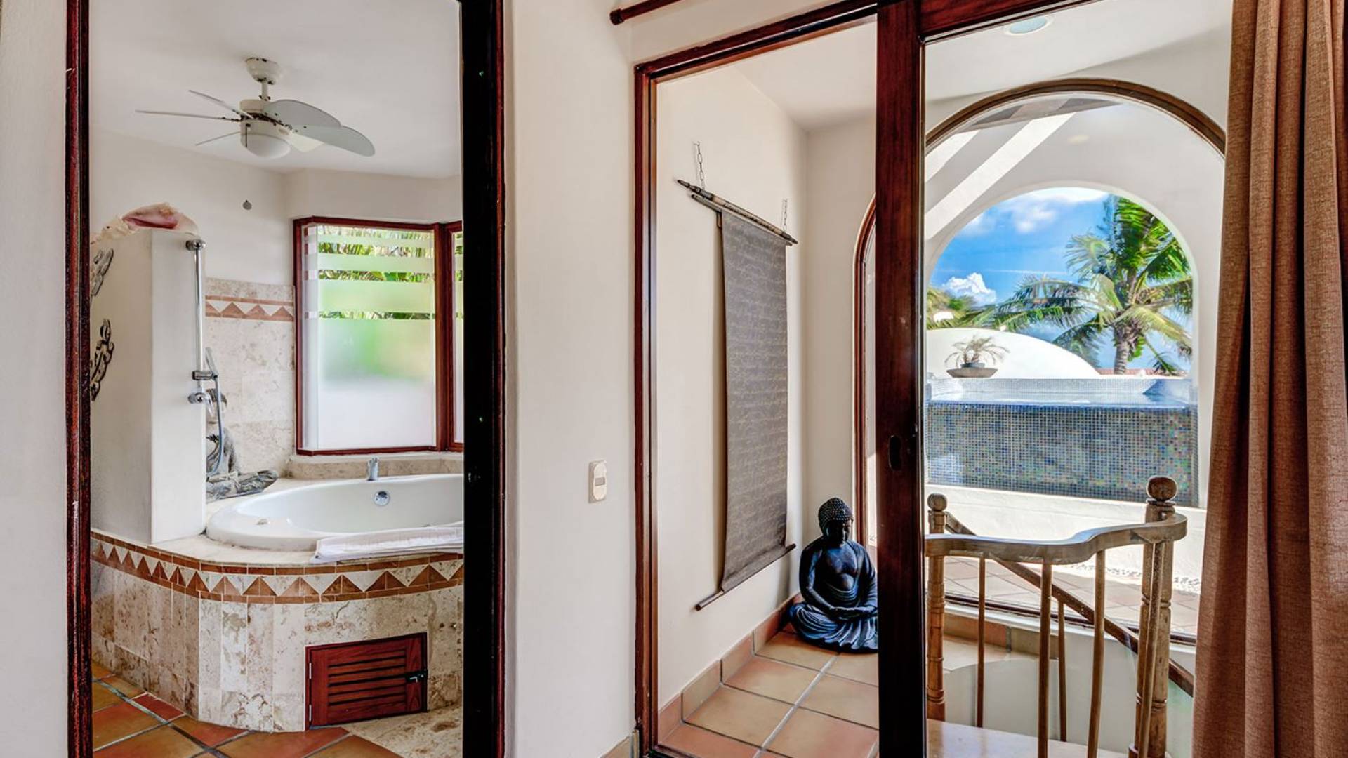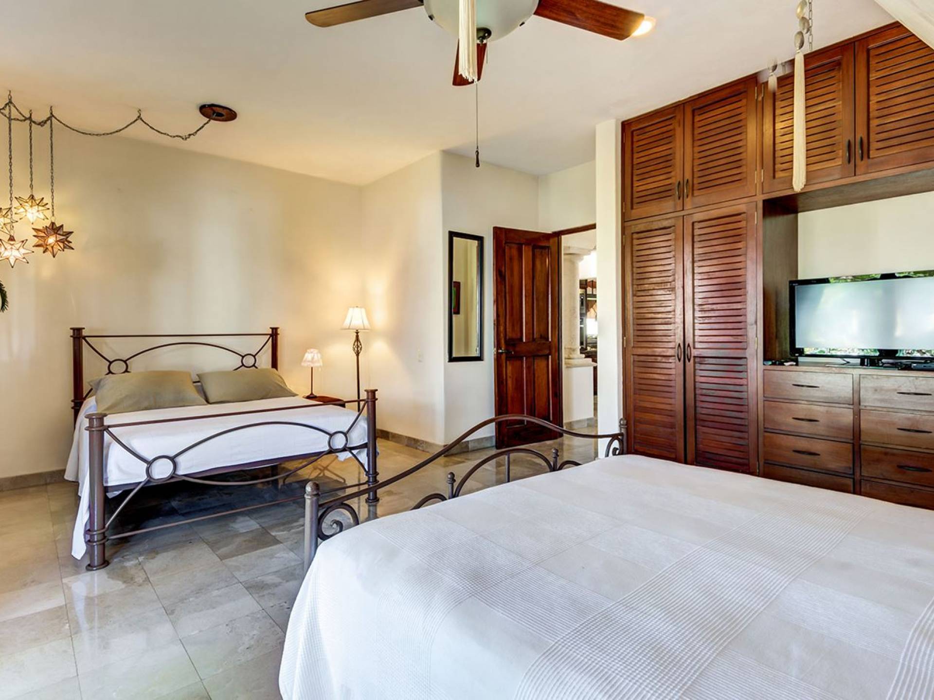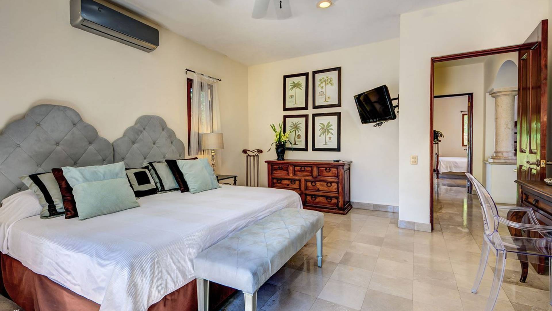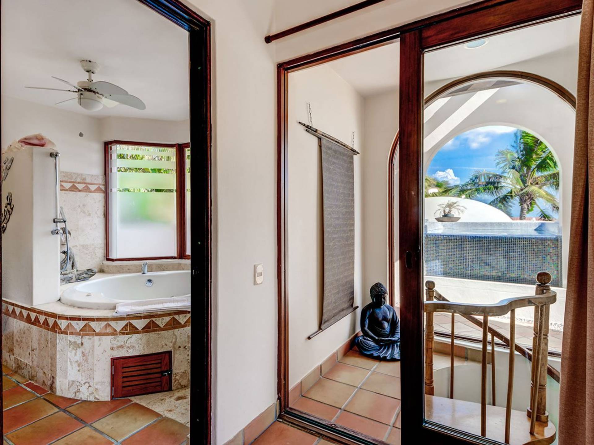 Villa Estrella del Mar Playa del Carmen est une location de villa de luxe avec 5 chambres et une piscine privée. Cette belle maison méditerranéenne de 5 000 pieds carrés se trouve en face de l'une des plus belles plages de la communauté de villégiature privée de Playacar Phase I. 3 chambres sont au premier étage; la quatrième chambre est à l'étage et dispose d'une fantastique terrasse avec un hamac et une vue captivante sur la mer. La cinquième chambre est une salle multimédia avec 2 canapés-lits. La salle multimédia est située au rez-de-chaussée de la villa et, bien qu'elle n'ait pas de vue sur l'océan, elle est idéale pour les jeunes enfants ou les nounous de famille.