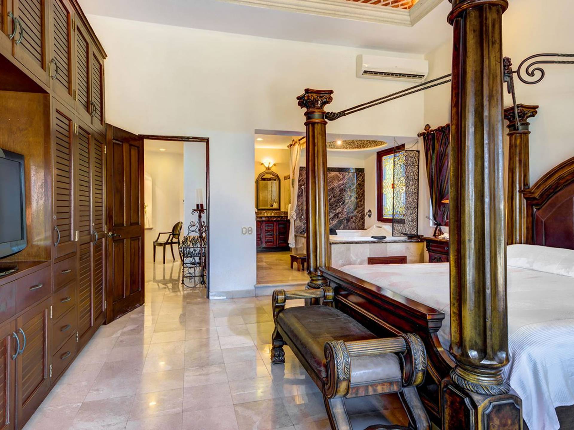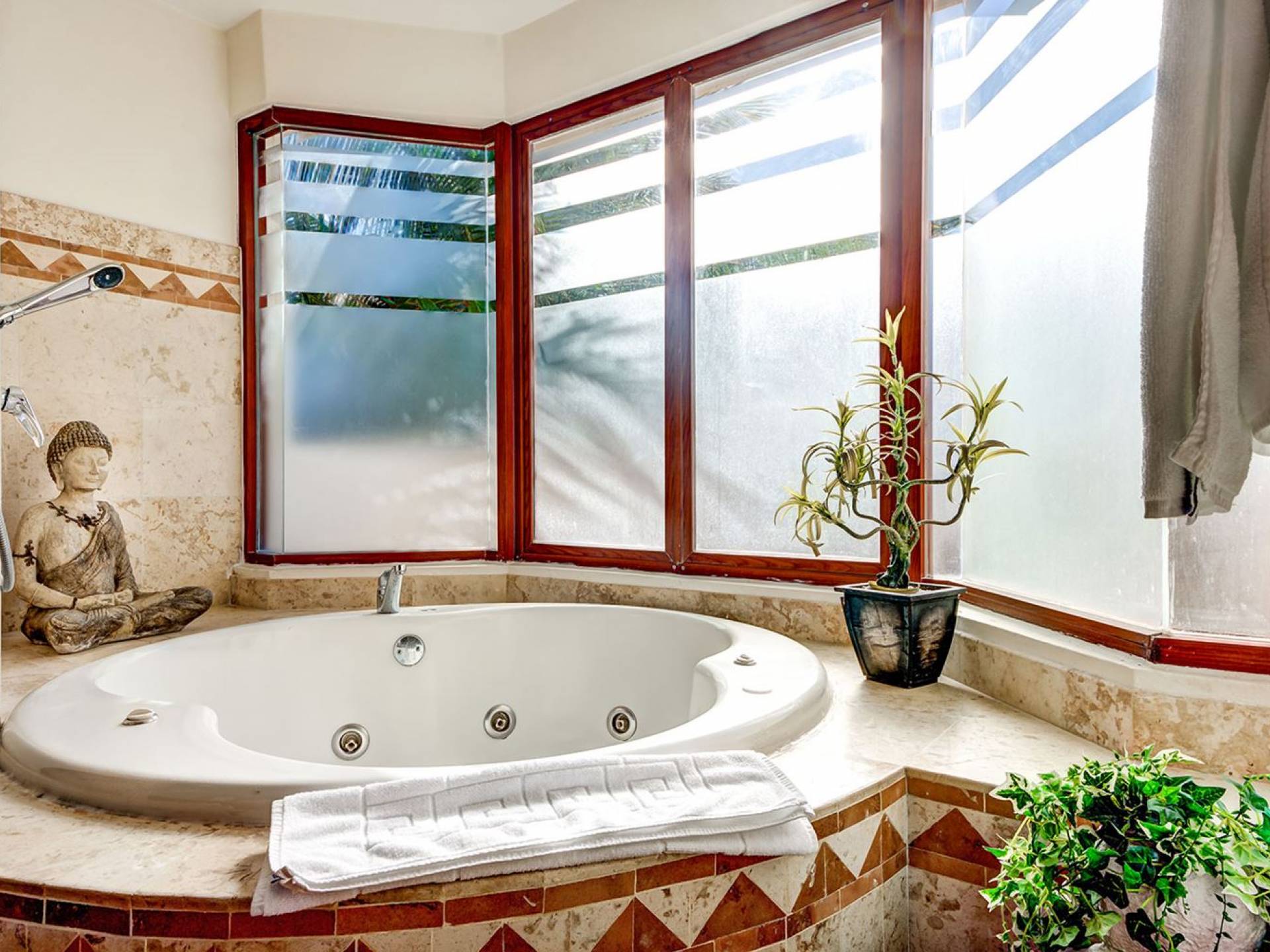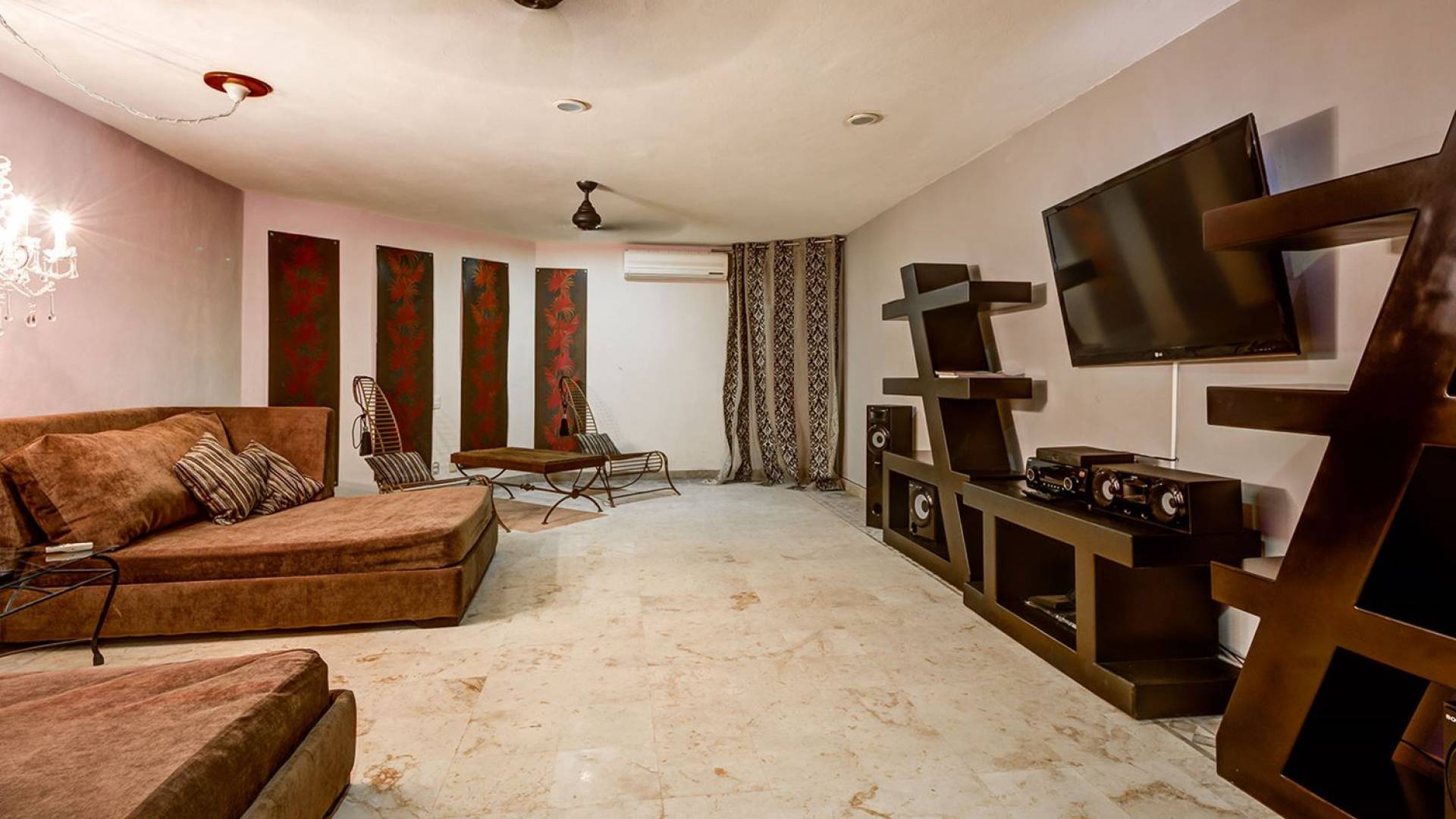Villa Estrella del Mar Playa del Carmen est une location de villa de luxe avec 5 chambres et une piscine privée. Cette belle maison méditerranéenne de 5 000 pieds carrés se trouve en face de l'une des plus belles plages de la communauté de villégiature privée de Playacar Phase I. 3 chambres sont au premier étage; la quatrième chambre est à l'étage et dispose d'une fantastique terrasse avec un hamac et une vue captivante sur la mer. La cinquième chambre est une salle multimédia avec 2 canapés-lits. La salle multimédia est située au rez-de-chaussée de la villa et, bien qu'elle n'ait pas de vue sur l'océan, elle est idéale pour les jeunes enfants ou les nounous de famille.