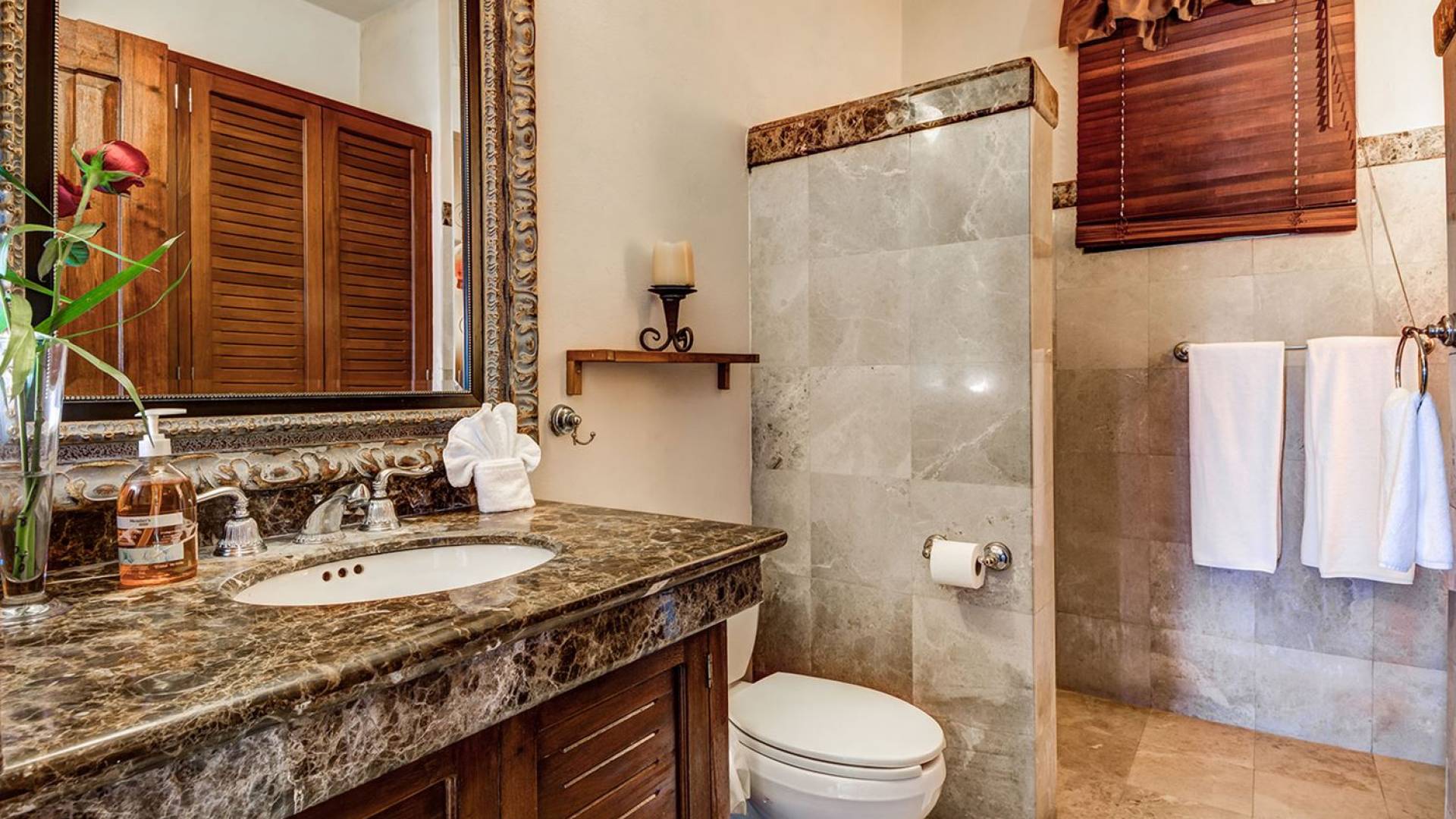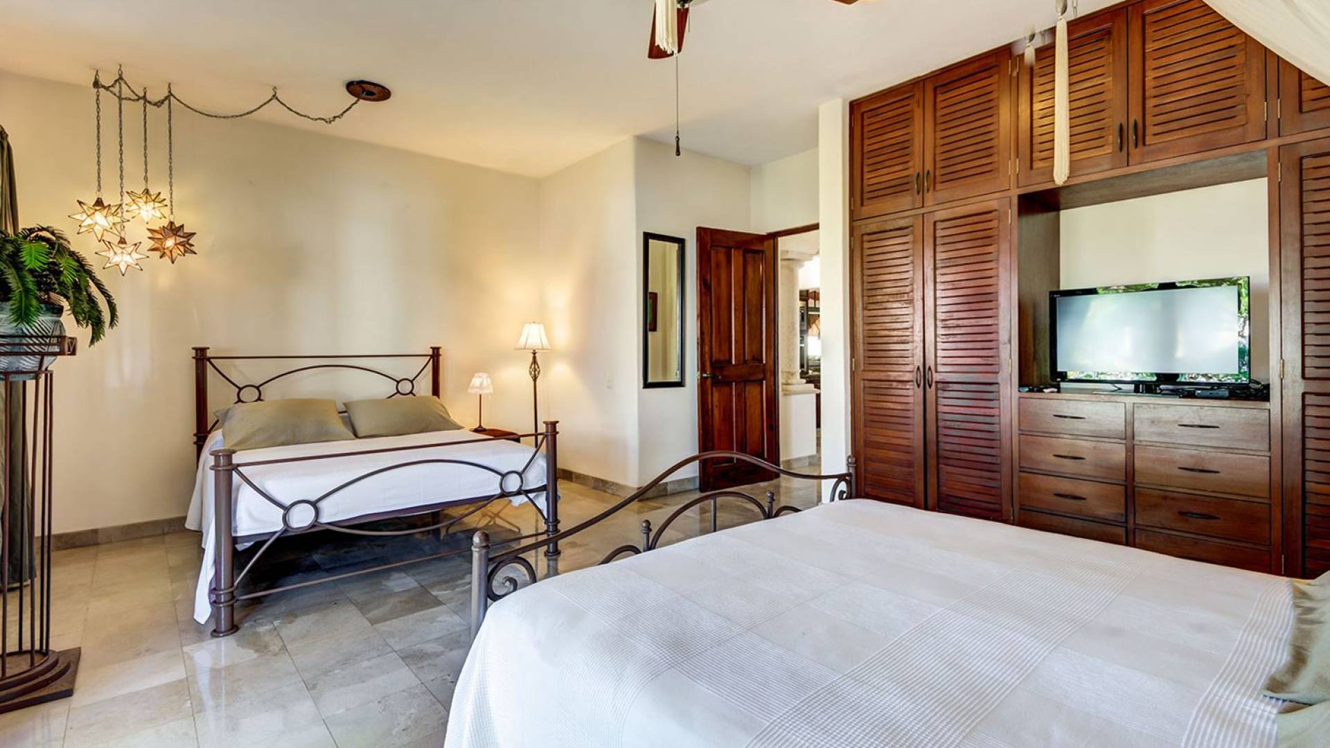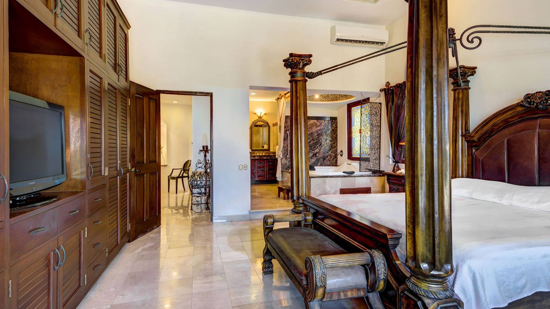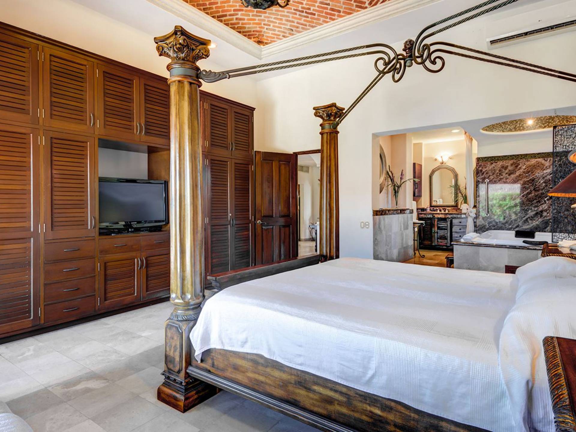 Villa Estrella del Mar Playa del Carmen est une location de villa de luxe avec 5 chambres et une piscine privée. Cette belle maison méditerranéenne de 5 000 pieds carrés se trouve en face de l'une des plus belles plages de la communauté de villégiature privée de Playacar Phase I. 3 chambres sont au premier étage; la quatrième chambre est à l'étage et dispose d'une fantastique terrasse avec un hamac et une vue captivante sur la mer. La cinquième chambre est une salle multimédia avec 2 canapés-lits. La salle multimédia est située au rez-de-chaussée de la villa et, bien qu'elle n'ait pas de vue sur l'océan, elle est idéale pour les jeunes enfants ou les nounous de famille.