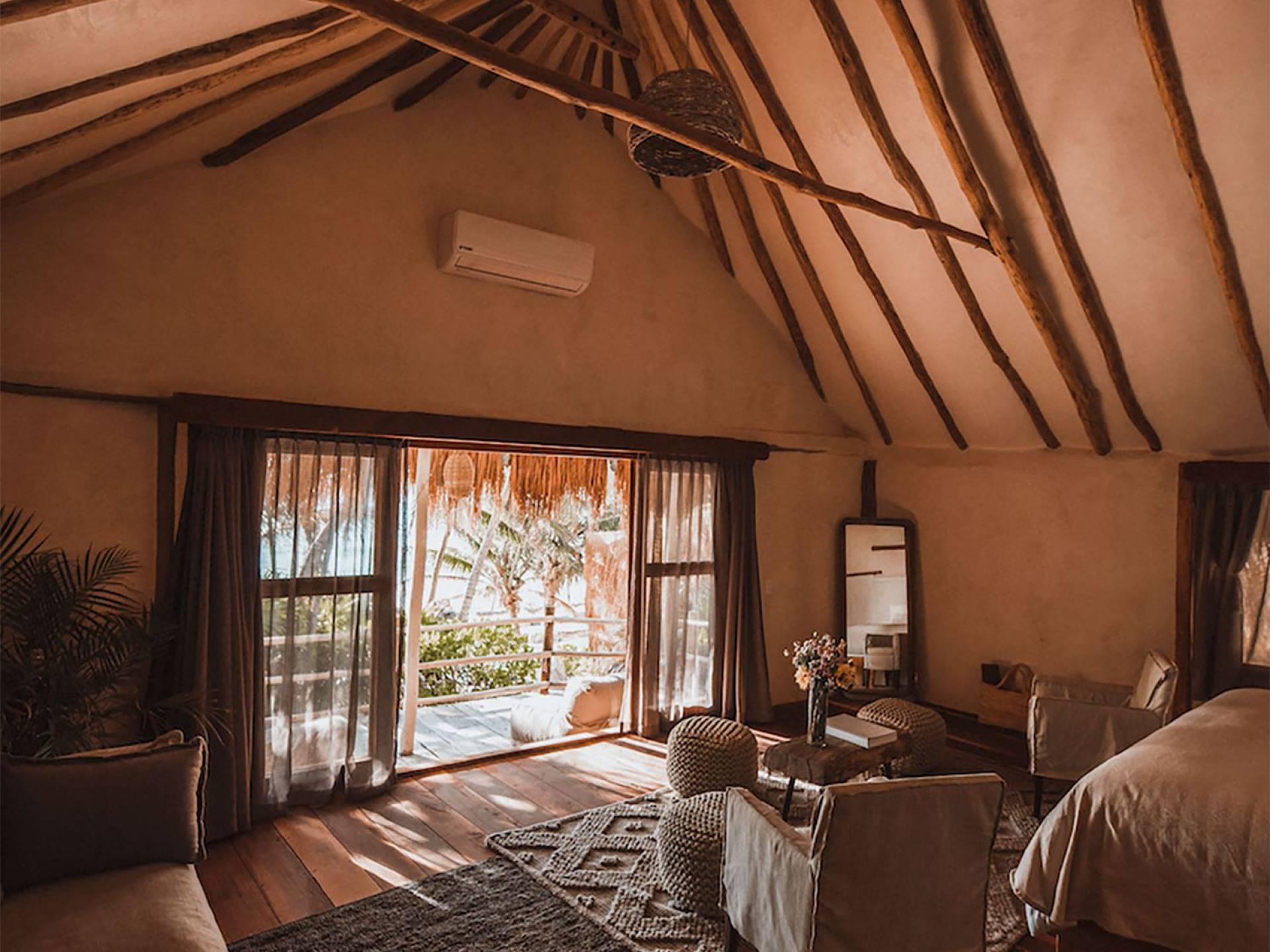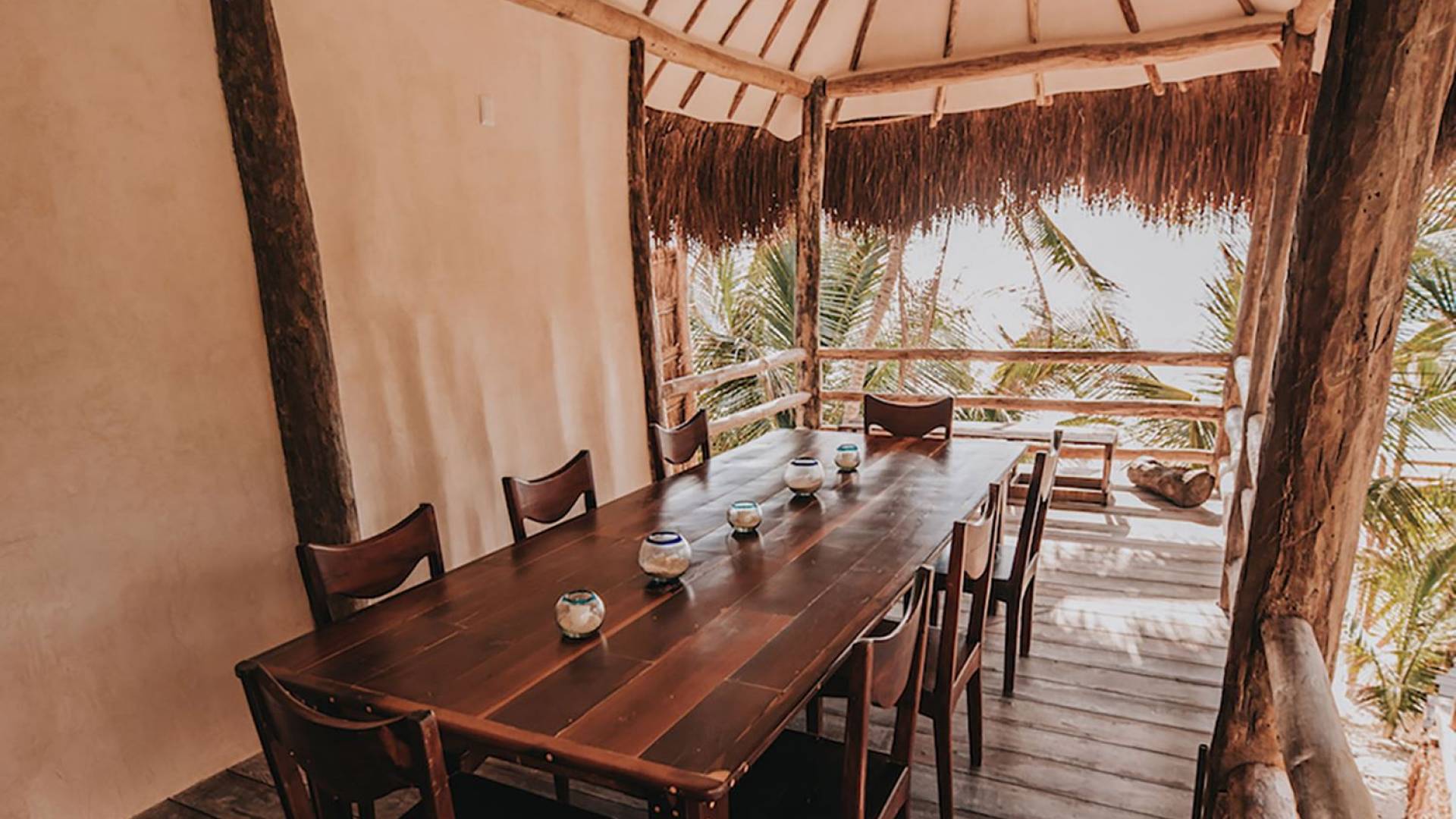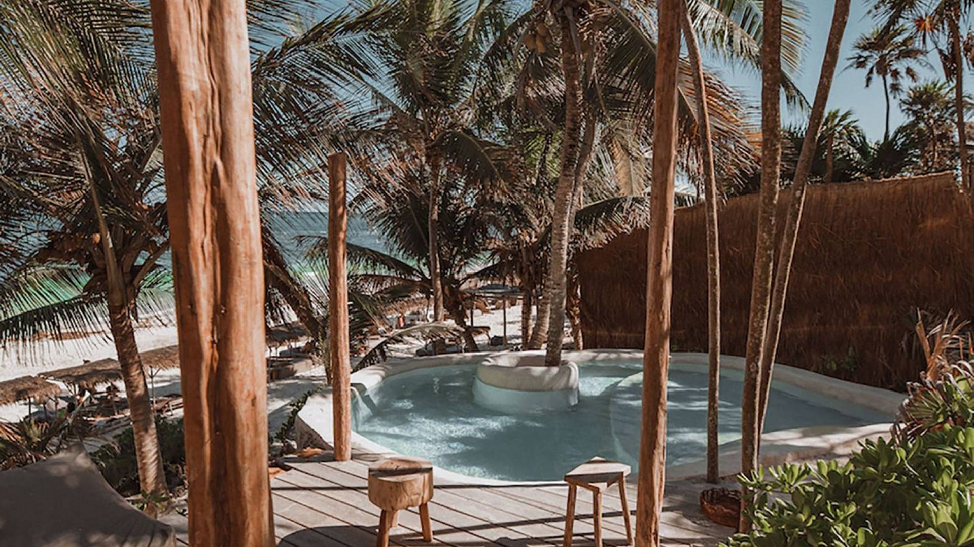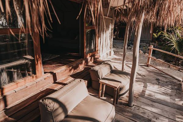 Casita Madera Tres Tulum est une location de villa de luxe avec 3 chambres et piscine privée. Le design de l'hôtel évoque la construction traditionnelle maya. Le projet Papaya Playa a adopté le «Chukum», une technique utilisée par les Mayas pour refroidir les intérieurs des bâtiments fabriqués principalement avec la résine d'un arbre du même nom. Inspiré de notre Casa Madera primée.