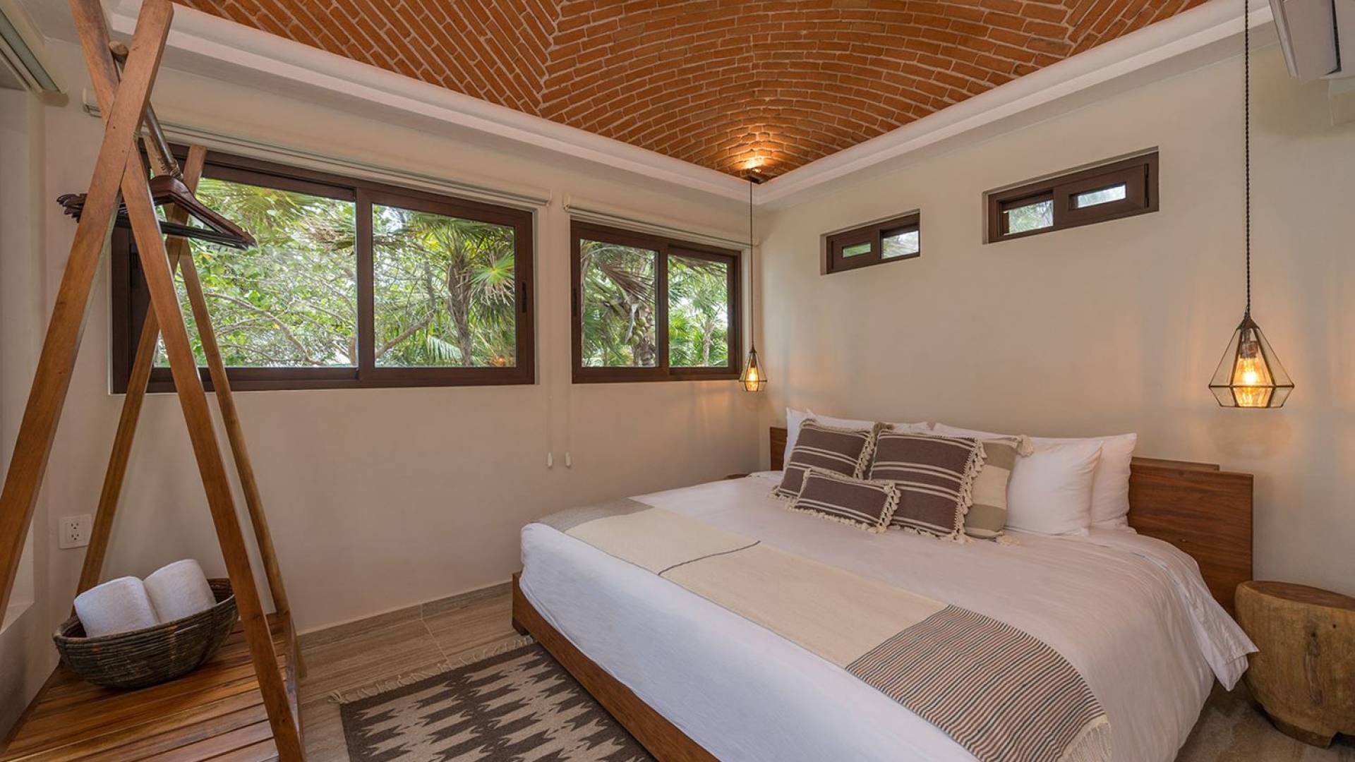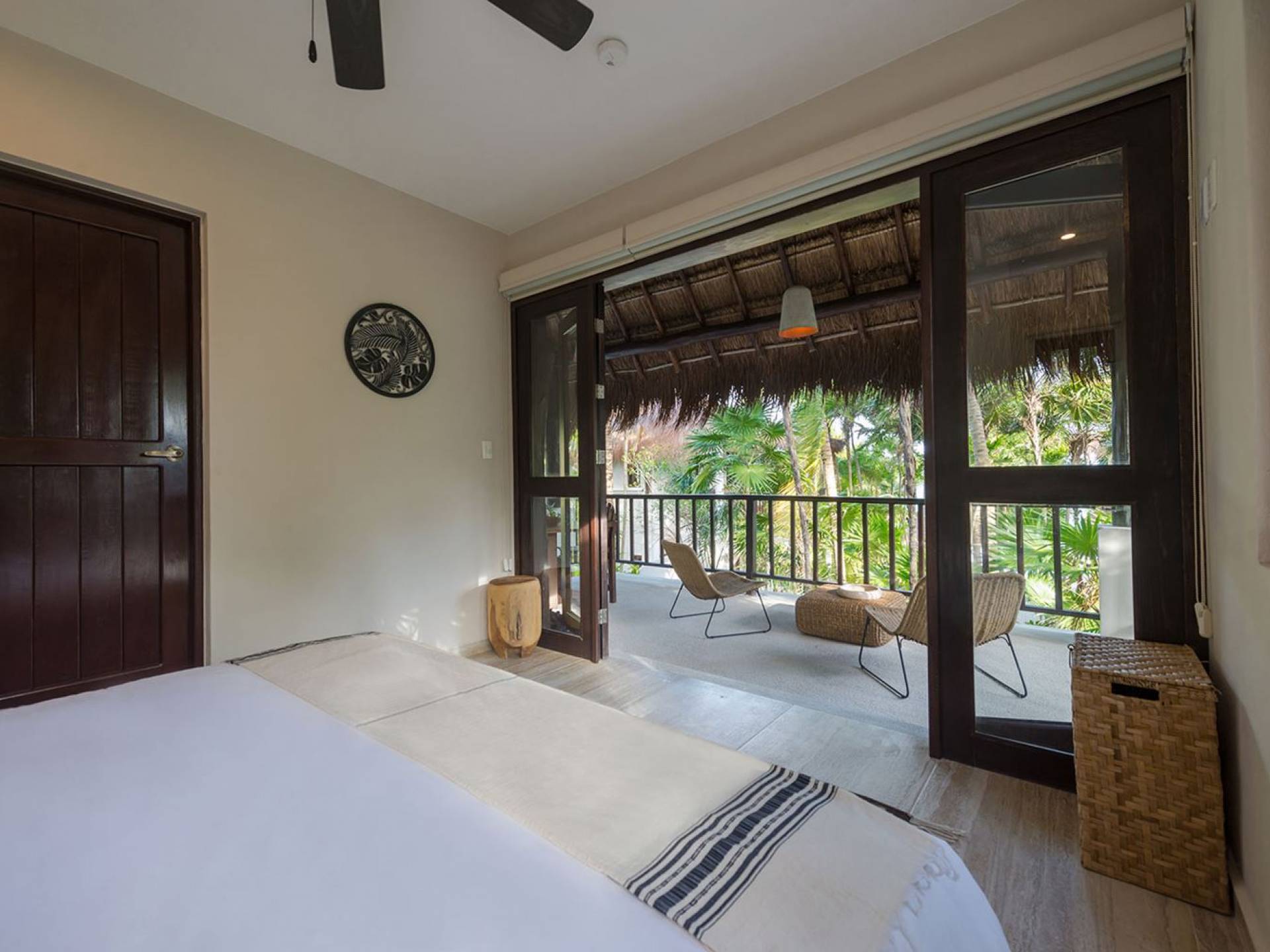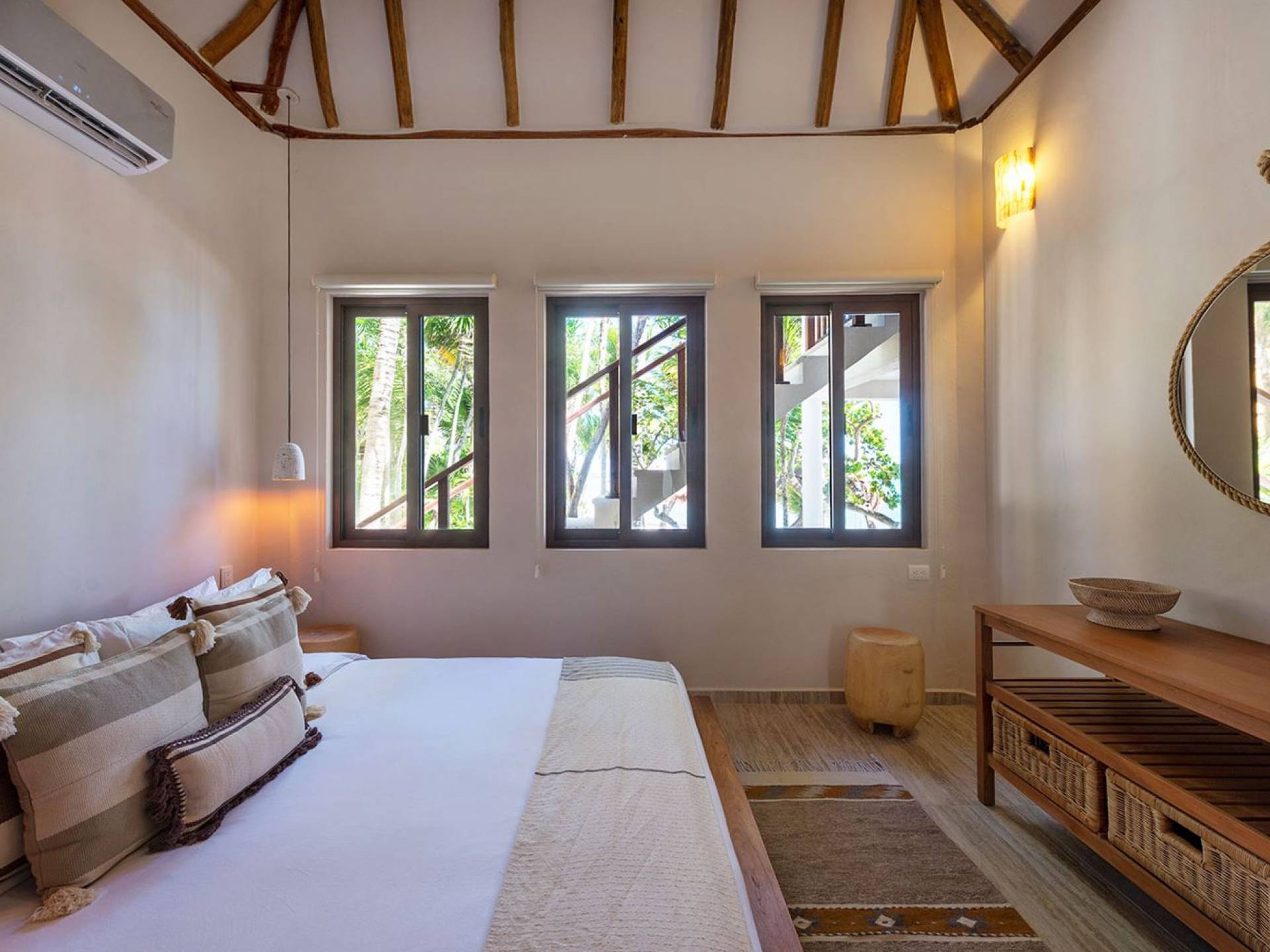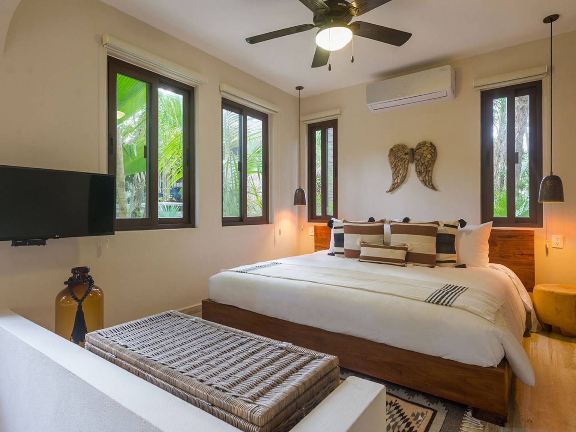 Corazon Tres Tulum est une location de villa de luxe avec 2 chambres et piscine partagée. Corazon Tres est plus isolé que les deux autres bungalows. Il est situé dans le jardin, à côté de la piscine. Il s'agit d'un bungalow paisible et écologique sur deux niveaux pouvant accueillir jusqu'à quatre personnes.