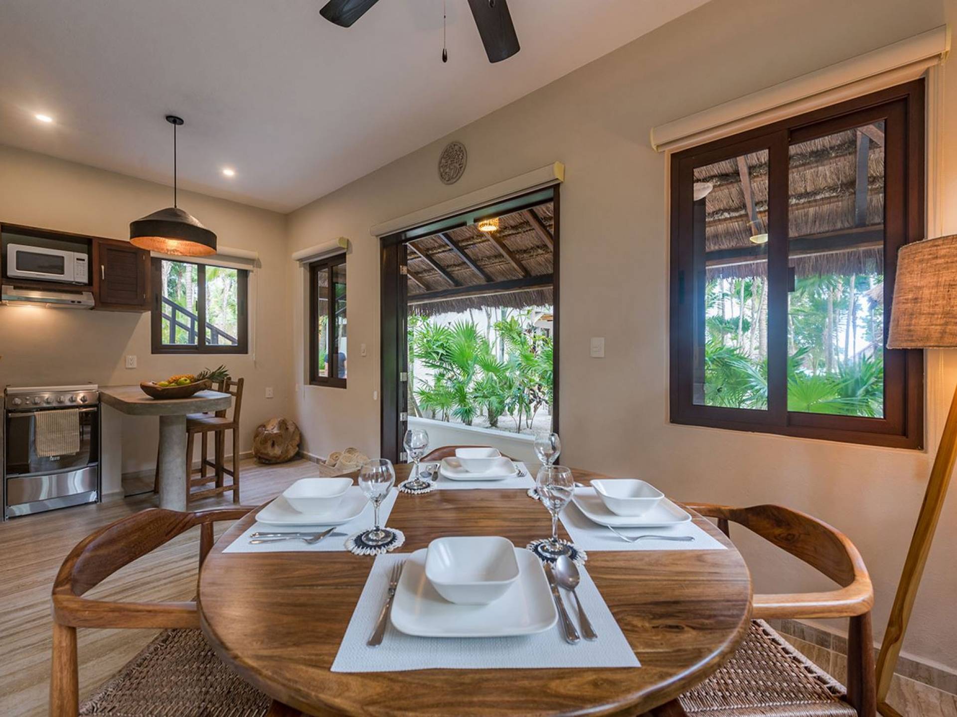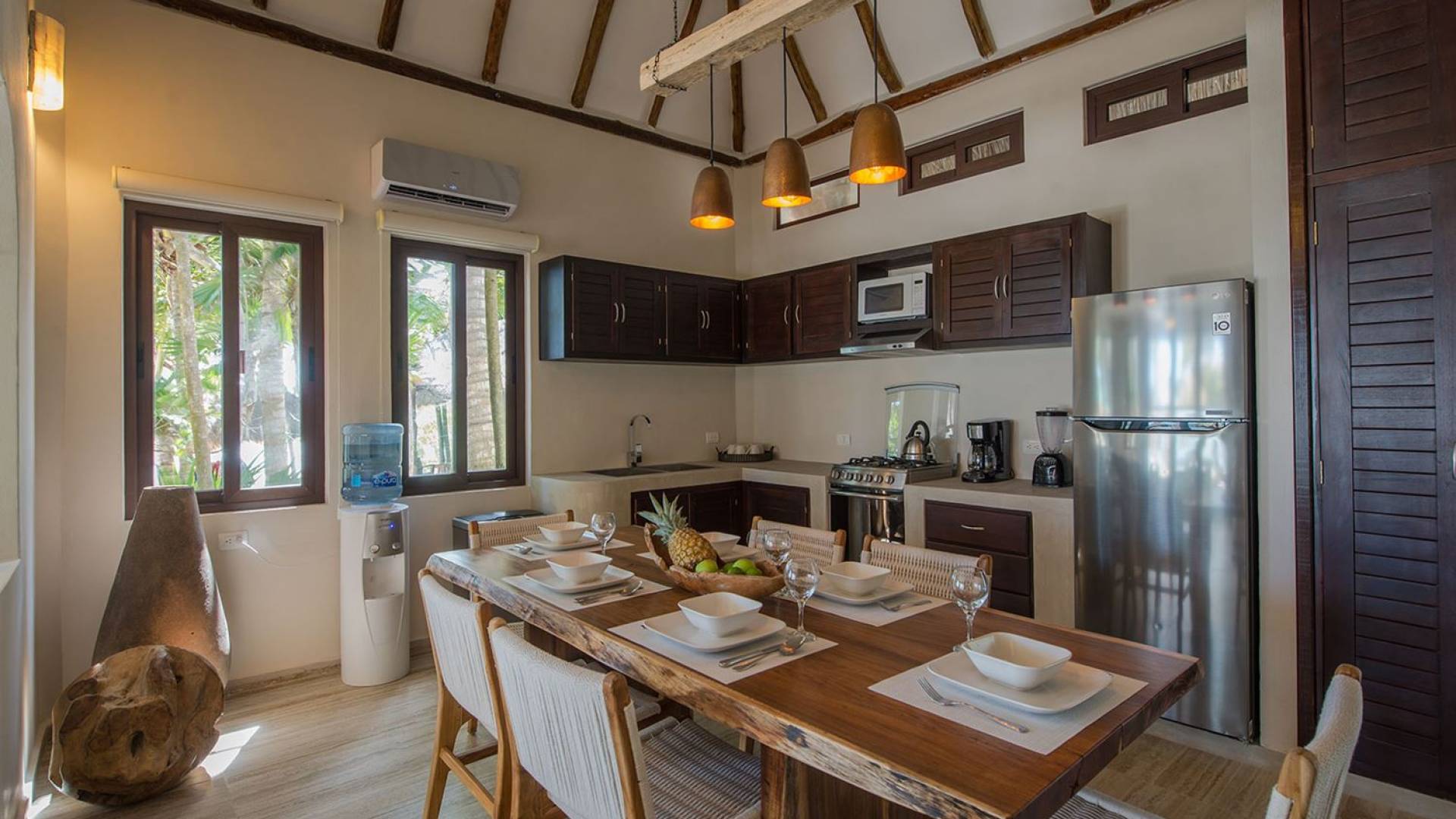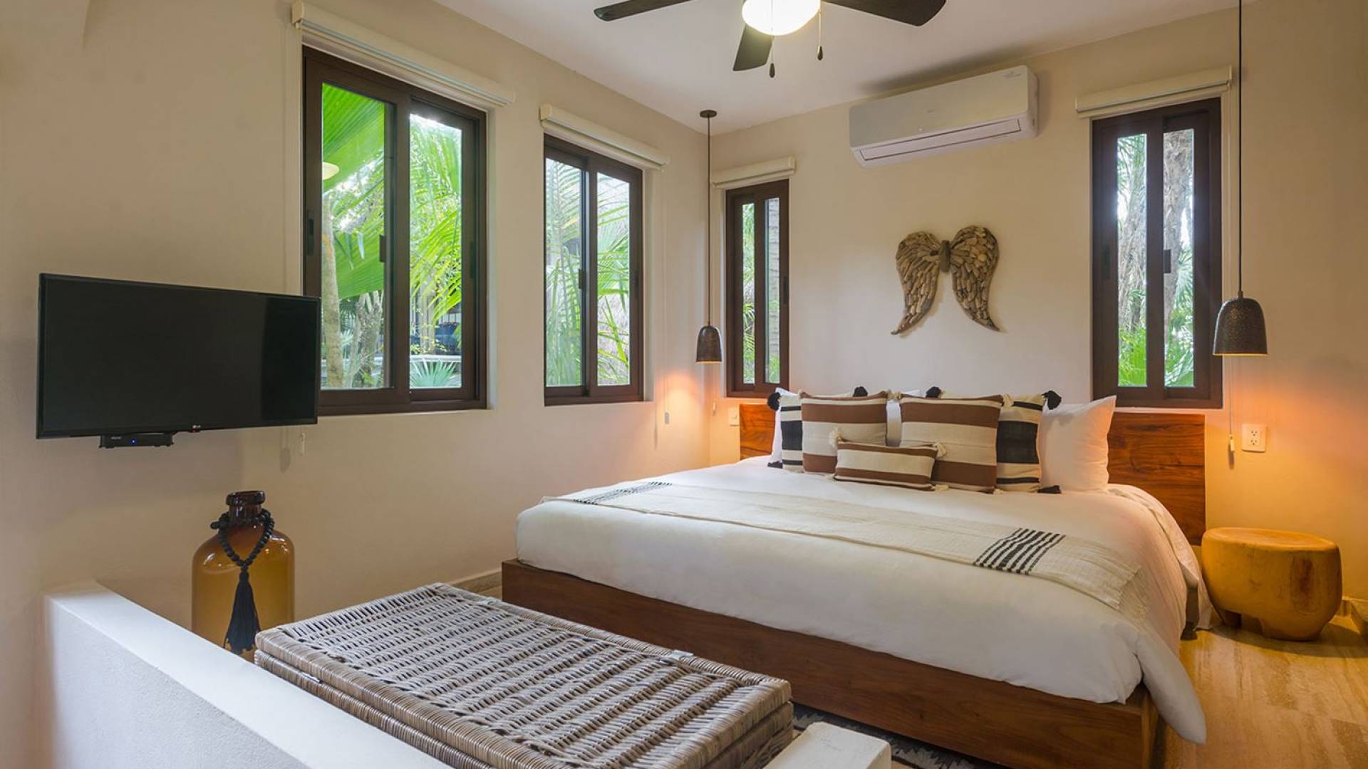 Corazon Tres Tulum est une location de villa de luxe avec 2 chambres et piscine partagée. Corazon Tres est plus isolé que les deux autres bungalows. Il est situé dans le jardin, à côté de la piscine. Il s'agit d'un bungalow paisible et écologique sur deux niveaux pouvant accueillir jusqu'à quatre personnes.