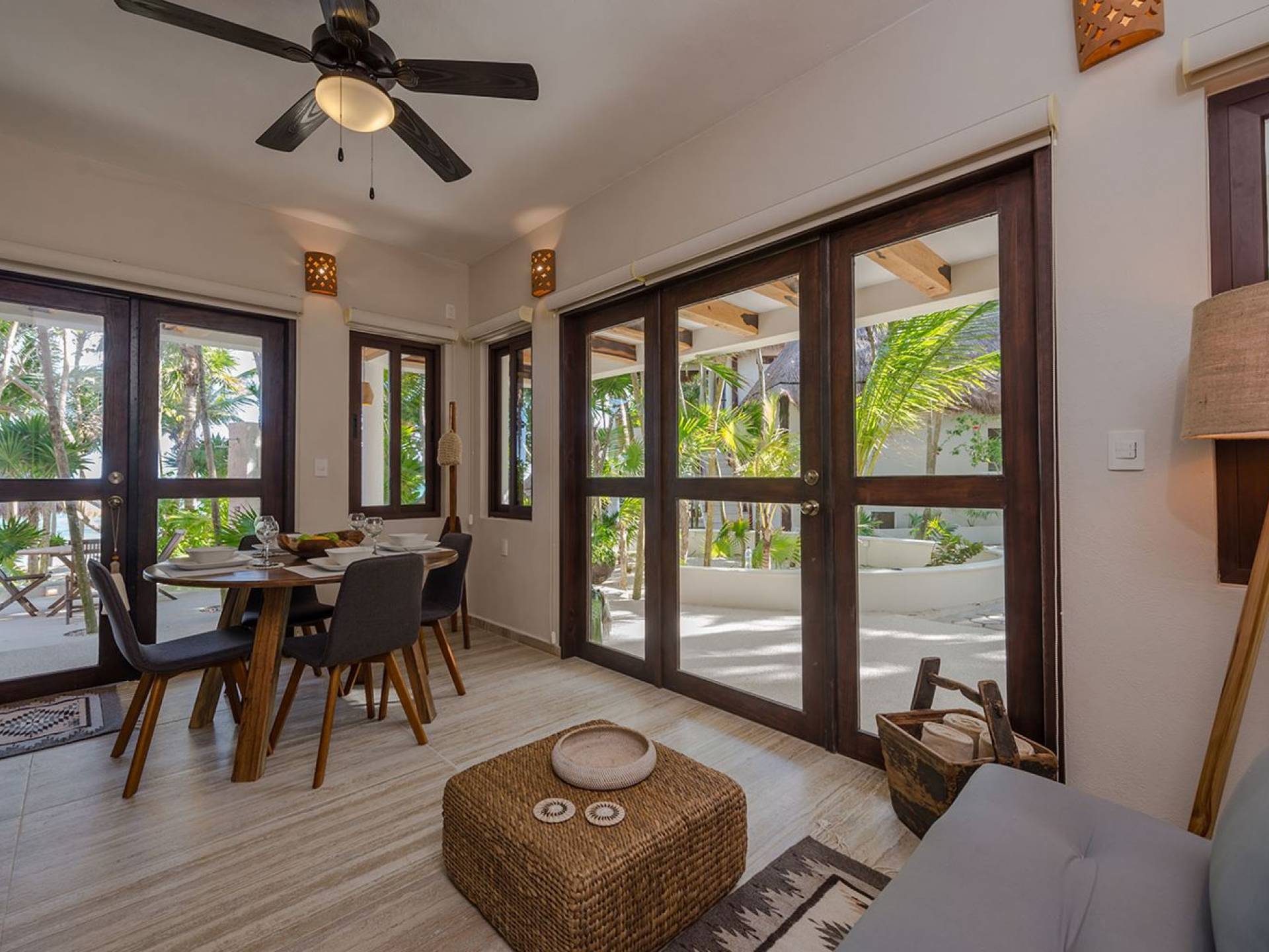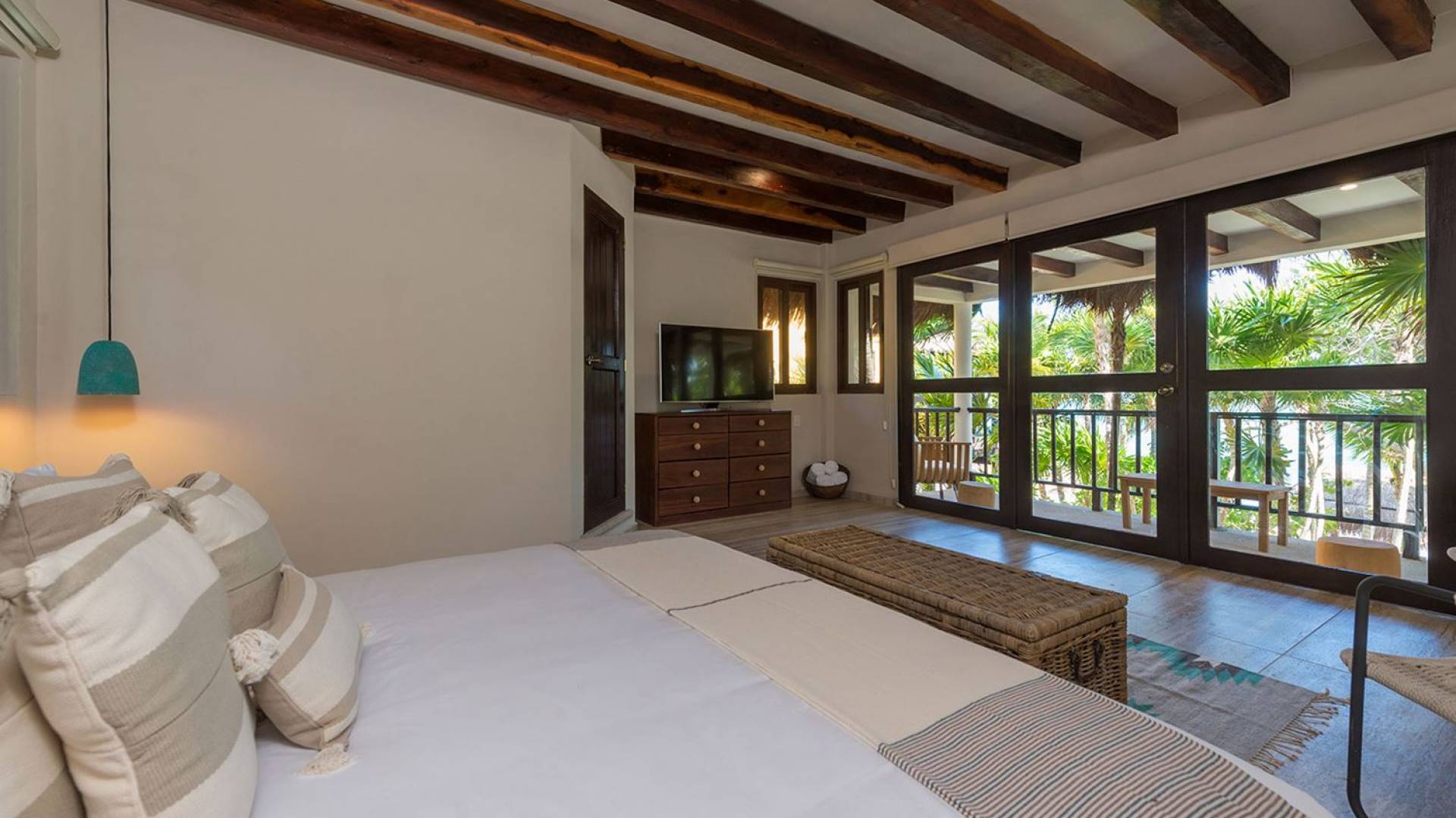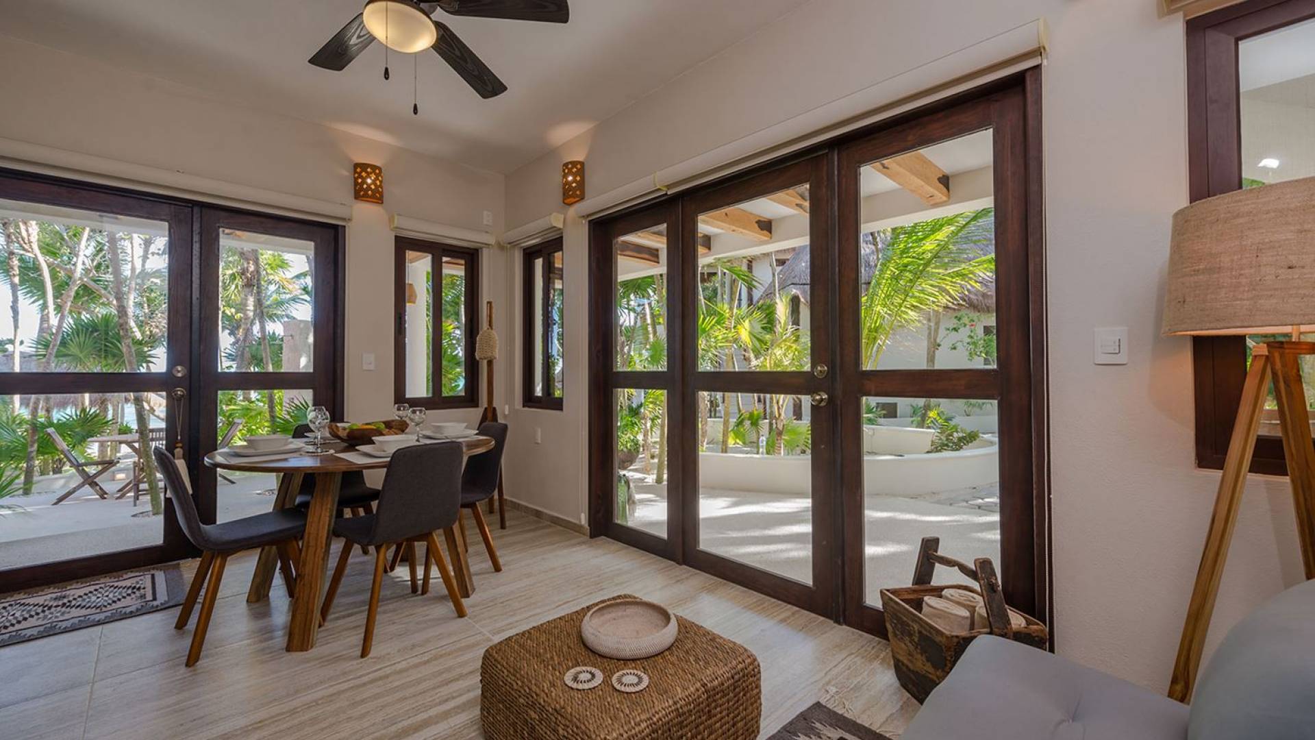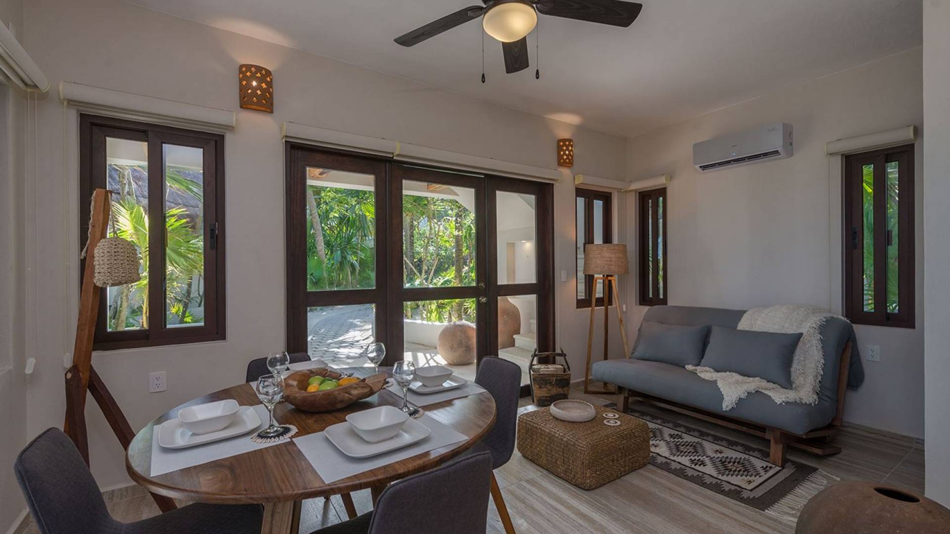 Corazon Tres Tulum est une location de villa de luxe avec 2 chambres et piscine partagée. Corazon Tres est plus isolé que les deux autres bungalows. Il est situé dans le jardin, à côté de la piscine. Il s'agit d'un bungalow paisible et écologique sur deux niveaux pouvant accueillir jusqu'à quatre personnes.