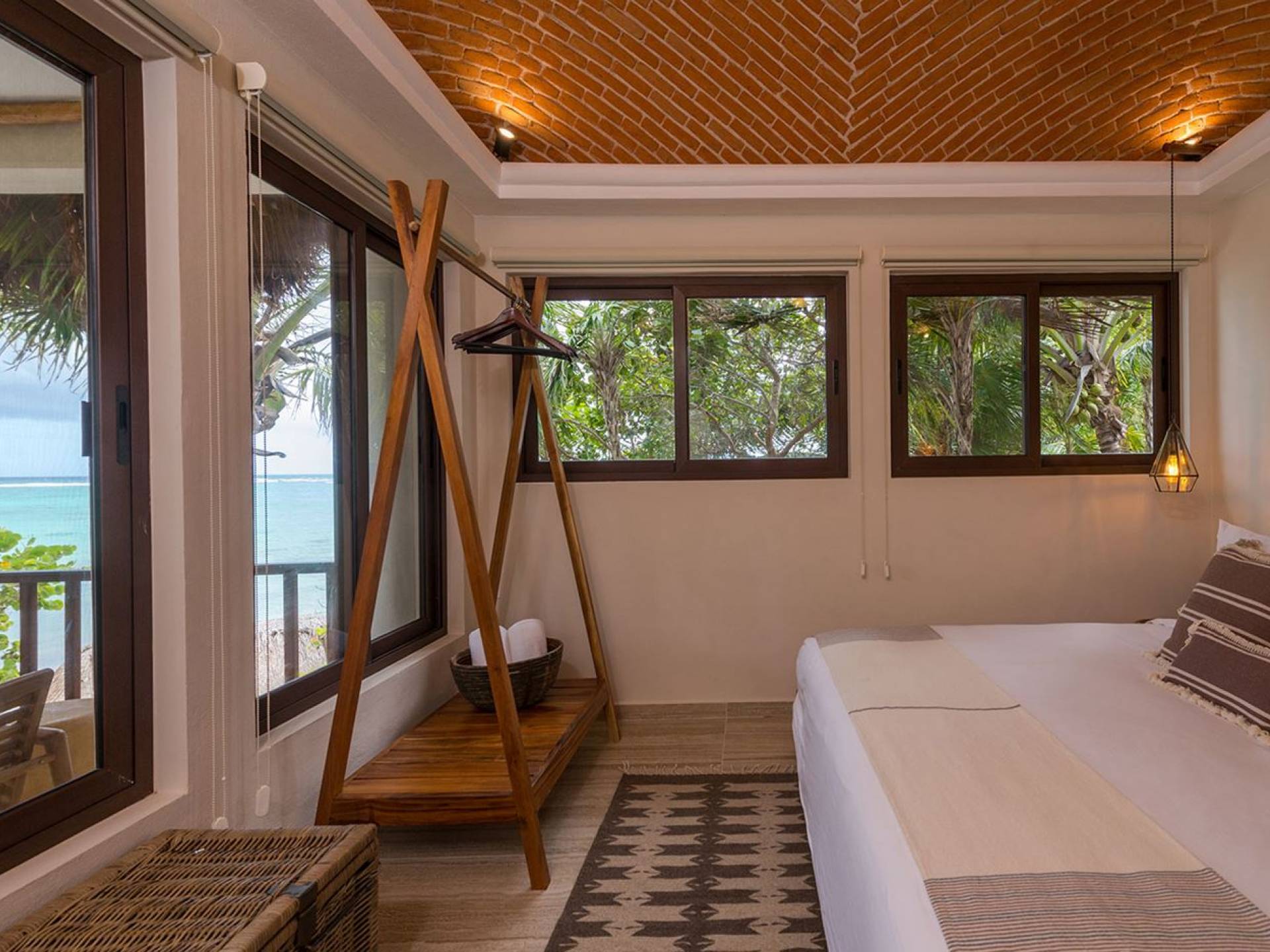 Corazon Uno Tulum est une location de villa de luxe avec 2 chambres et une piscine partagée. Corazon Uno est un magnifique bungalow de deux chambres situé sur les plages de sable blanc de la baie de Soliman, idéal pour deux couples ou une famille de six personnes. Cette unité écologique en bord de mer fait partie d'un bungalow de trois propriétés qui partage une piscine, un espace barbecue extérieur et sa propre palapa ombragée avec des chaises longues au bord de la plage.