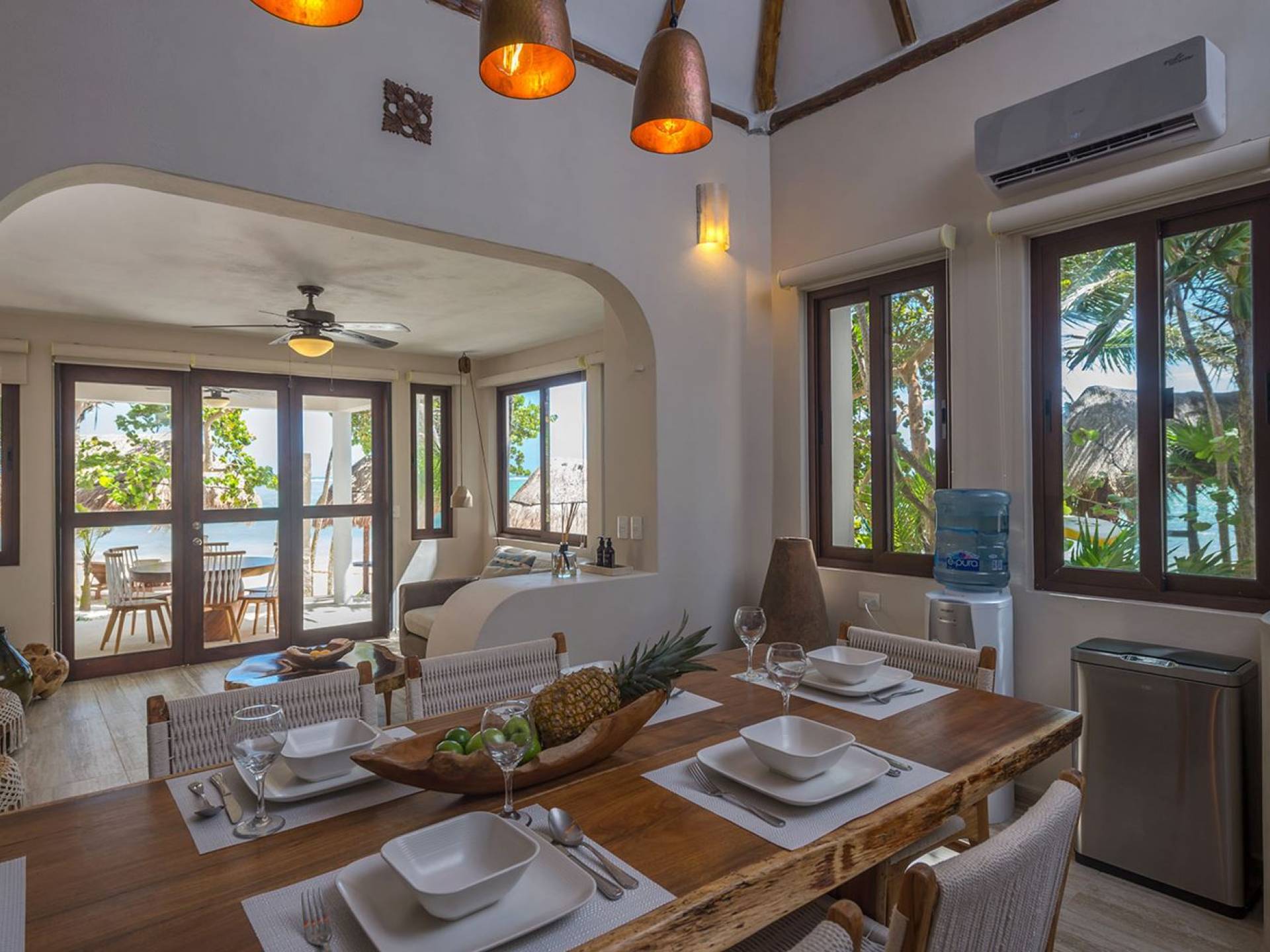 Corazon Tres Tulum est une location de villa de luxe avec 6 chambres et une piscine privée. Casa Corazon est une propriété de trois unités en bord de mer située sur les belles plages de sable blanc de la baie de Soliman. Il y a une piscine commune pour toutes les unités avec barbecue. Les trois bugalows ont leur propre espace avec des chaises longues à l'ombre près de la plage. Soliman Bay est une belle plage calme entre Akumal et Tulum.
