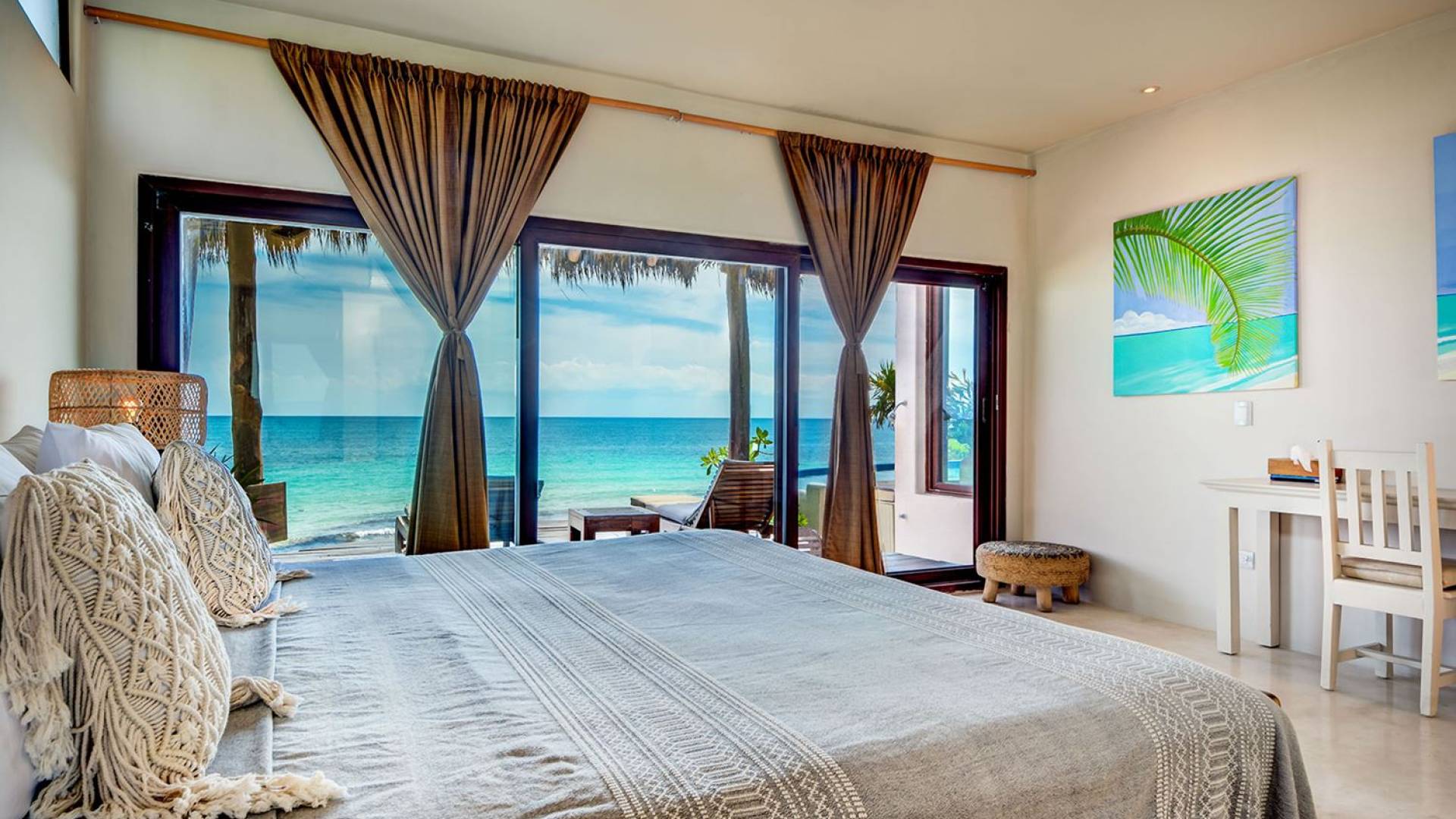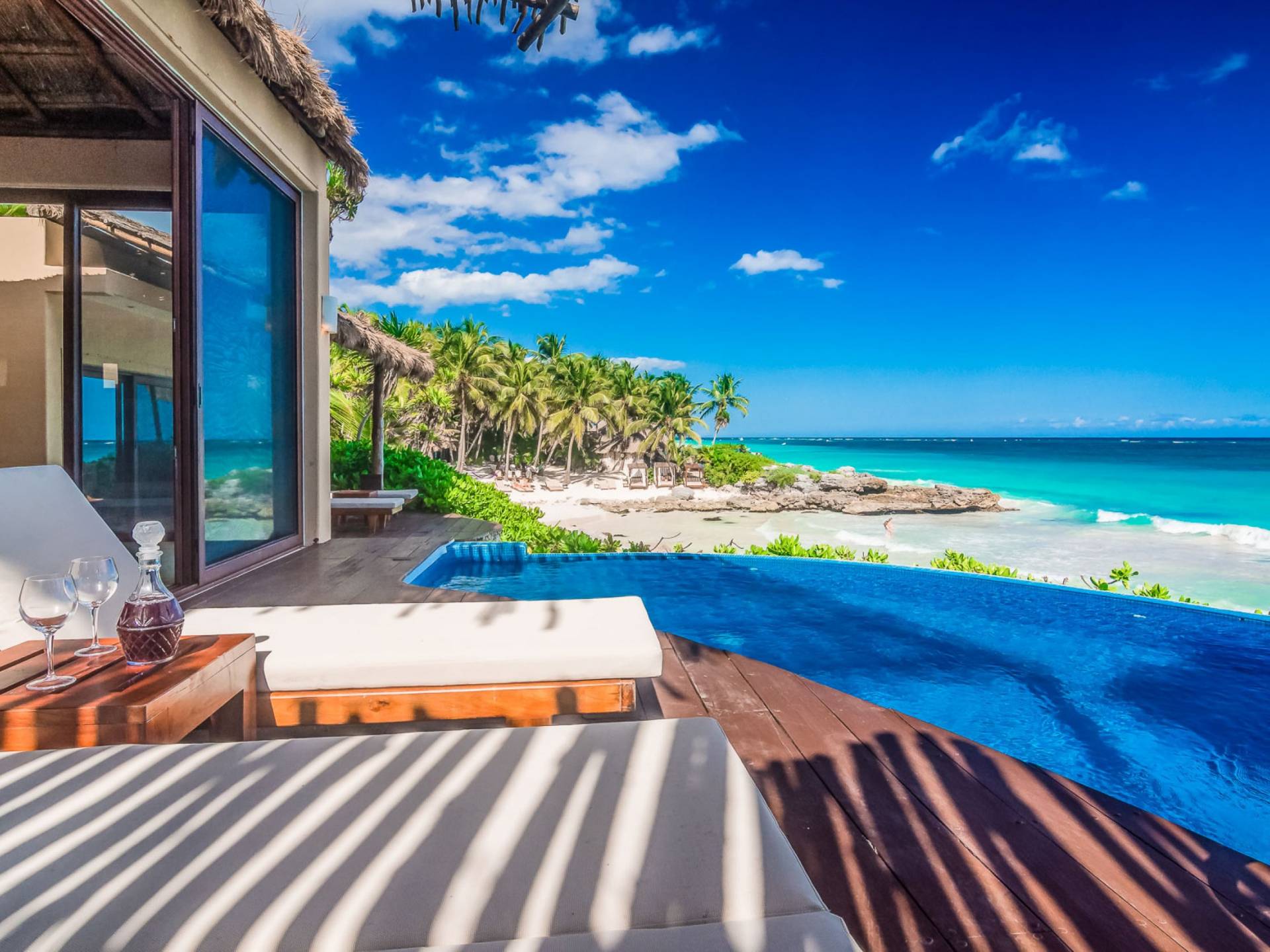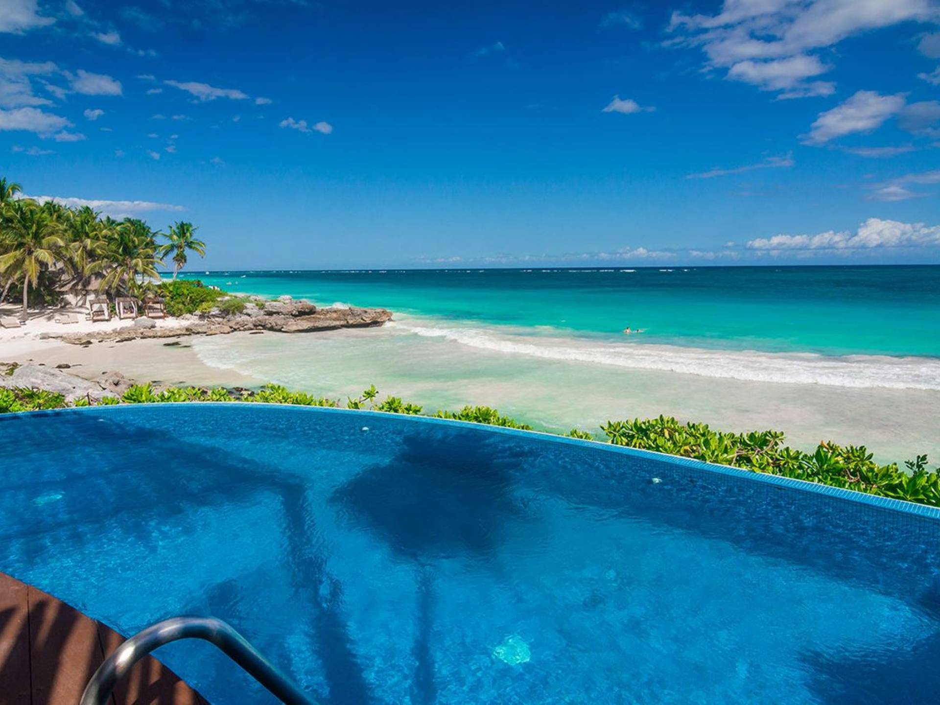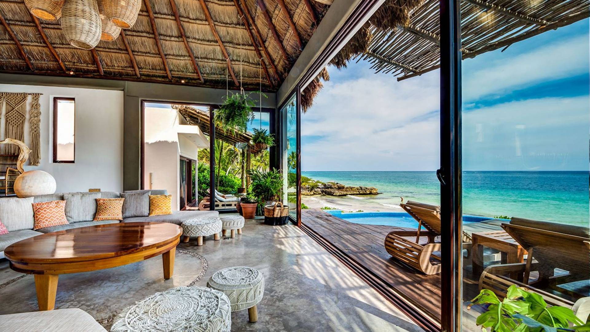 Cette spectaculaire villa sur la plage vous coupera le souffle. Walk-in et a une vue directement à travers la maison sur une piscine privée située en face des Caraïbes. Dégustez des cocktails ou une baignade et regardez les vagues qui roulent. C'est à peu près aussi paisible et serein que possible! La palapa aérée et ensoleillée crée l'atmosphère parfaite pour une contemplation tranquille, une romance ou des invités divertissants. Sortez et profitez du soleil, nagez dans les vagues et faites de la plongée avec tuba dans l'un des meilleurs endroits de Tulum, ou observez les étoiles la nuit sur le pont avec le bruit des vagues, la brise dans vos cheveux et un verre de vin. De l'étage de l'autre côté de la villa, vous pouvez souvent admirer un coucher de soleil au-delà de la vaste et luxuriante jungle verte. Une vue spectaculaire à voir! Ou réveillez-vous tôt pour admirer un lever de soleil n'importe quel jour dans le confort du salon grandiose palapa ou regardez-le en flottant dans la piscine au bord de la plage.