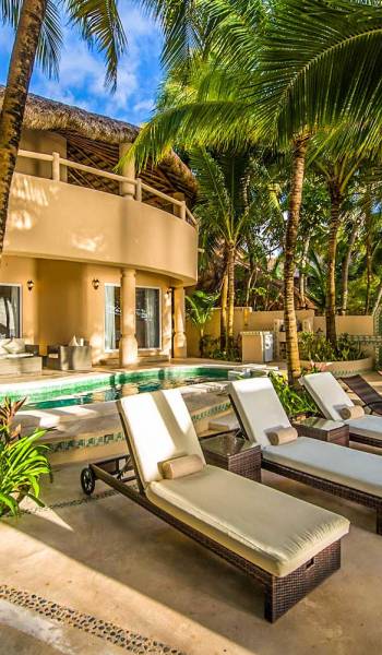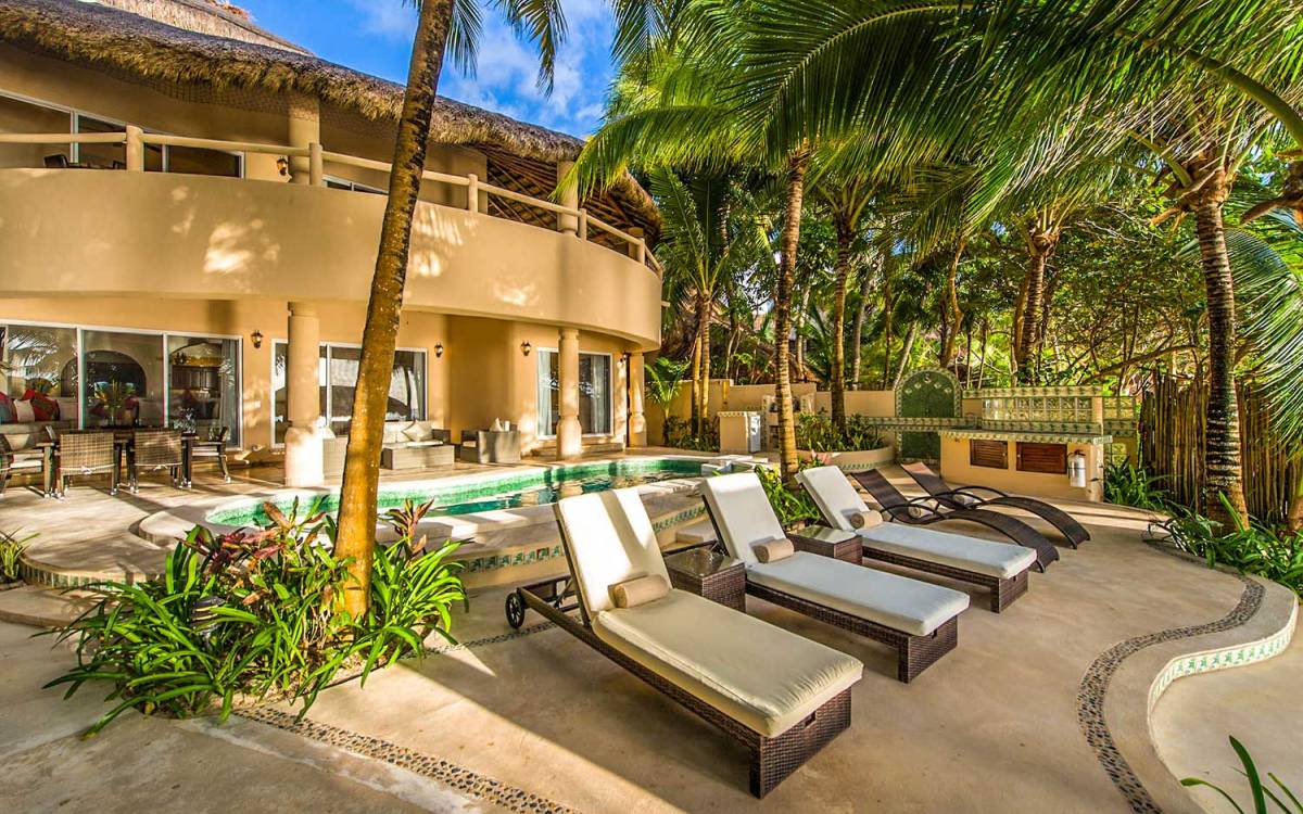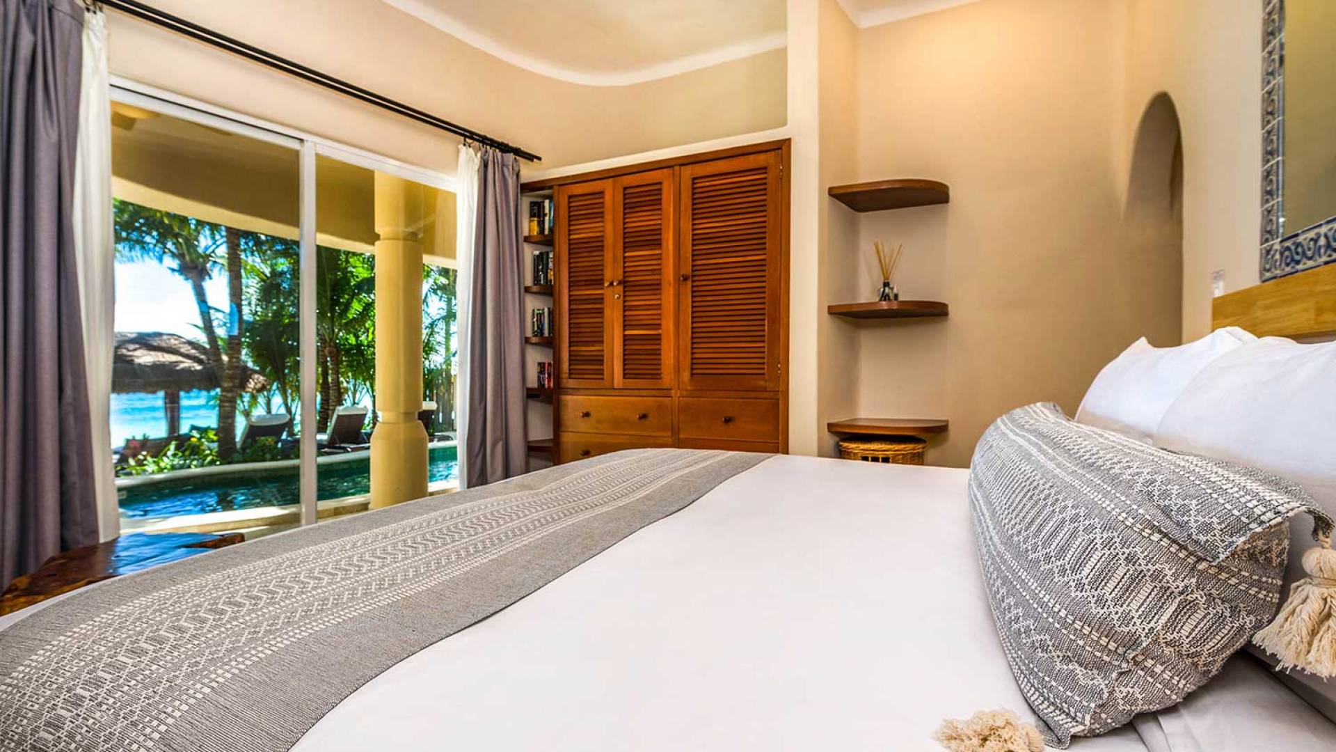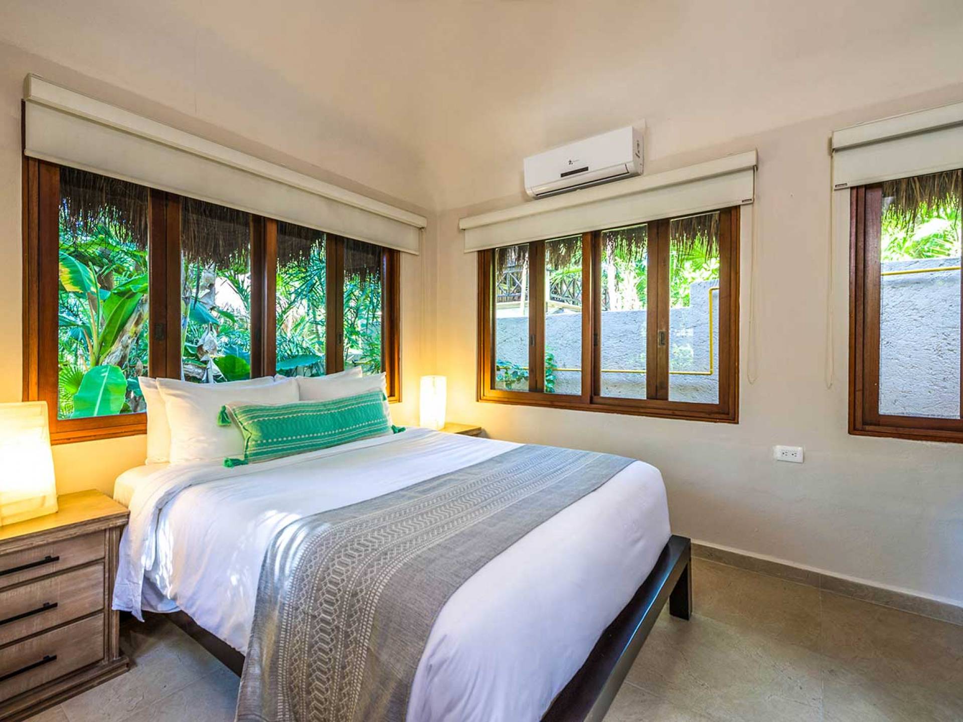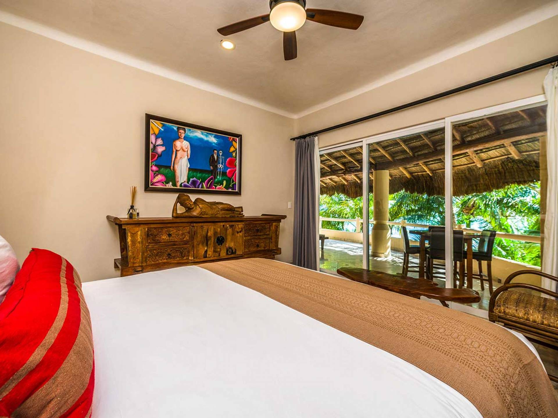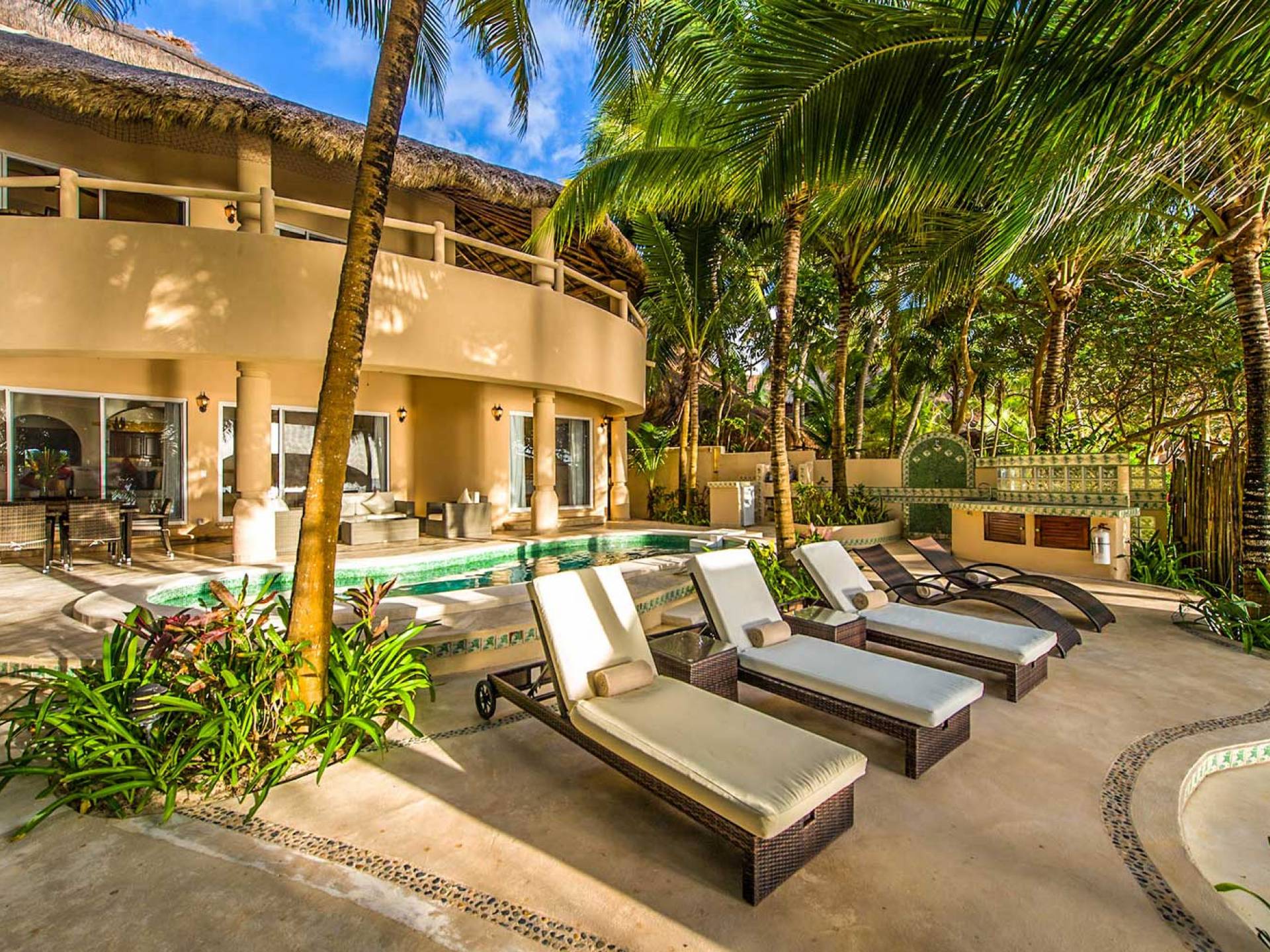 Pendant ce temps, de nombreuses chaises longues et une palapa de plage vous permettent de vous détendre avec une bouteille de «cerveza» réfrigérée et d'admirer les eaux bleues de la baie de Soliman. C’est également une agréable surprise de découvrir que les 4 chambres de la villa offrent la même vue imprenable sur les Caraïbes. La chambre du bas dispose d'un très grand lit king-size et plaira à ceux qui aiment l'idée d'avoir un centre de divertissement complet, y compris une télévision à écran plasma, pour eux seuls. Les deux chambres king-size du deuxième étage sont dotées d'une salle de bains spacieuse et d'un accès privé à une grande terrasse meublée sur l'océan.