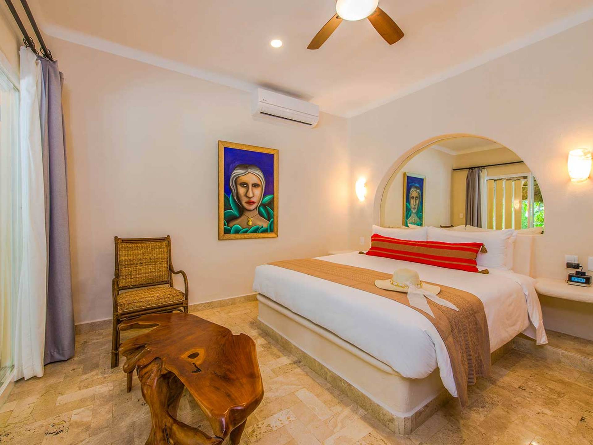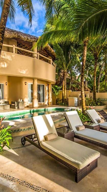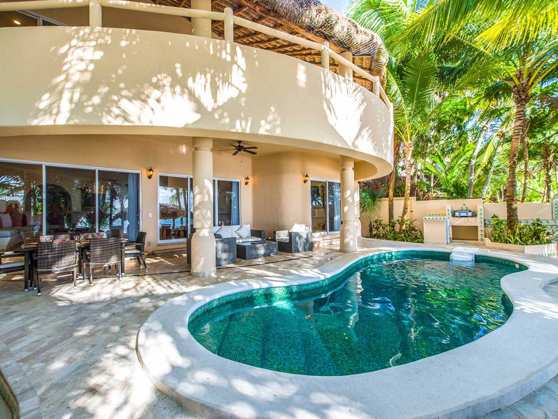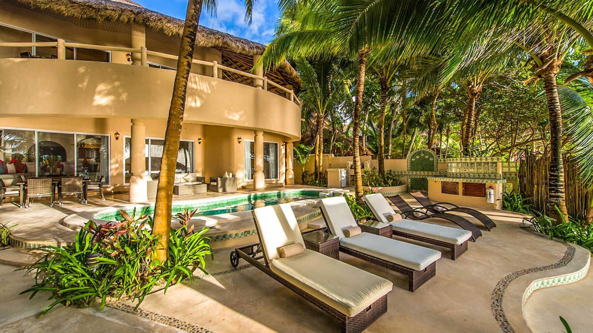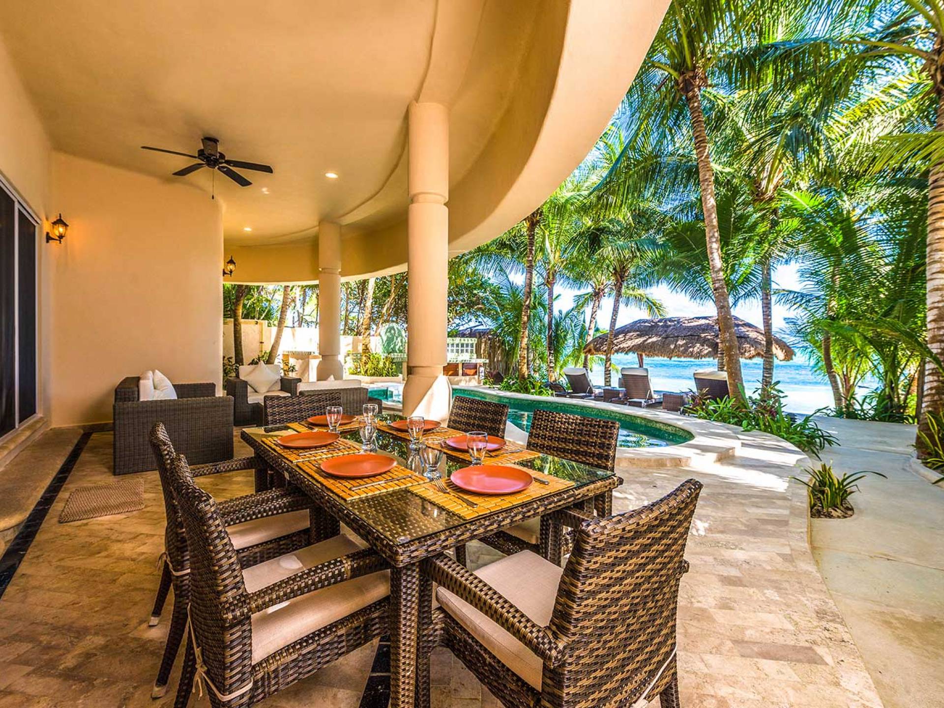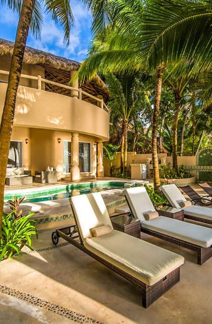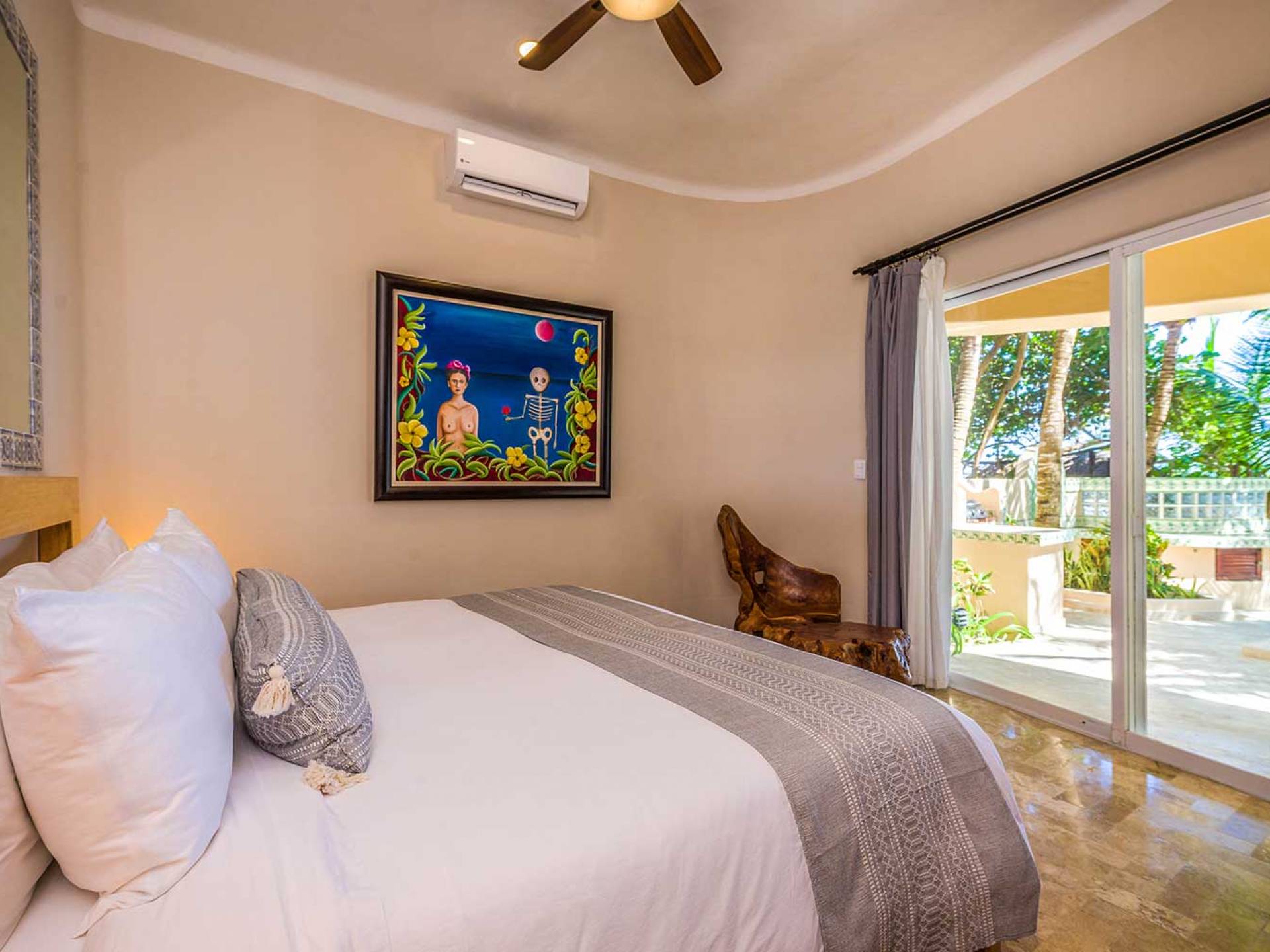 Pendant ce temps, de nombreuses chaises longues et une palapa de plage vous permettent de vous détendre avec une bouteille de «cerveza» réfrigérée et d'admirer les eaux bleues de la baie de Soliman. C’est également une agréable surprise de découvrir que les 4 chambres de la villa offrent la même vue imprenable sur les Caraïbes. La chambre du bas dispose d'un très grand lit king-size et plaira à ceux qui aiment l'idée d'avoir un centre de divertissement complet, y compris une télévision à écran plasma, pour eux seuls. Les deux chambres king-size du deuxième étage sont dotées d'une salle de bains spacieuse et d'un accès privé à une grande terrasse meublée sur l'océan.