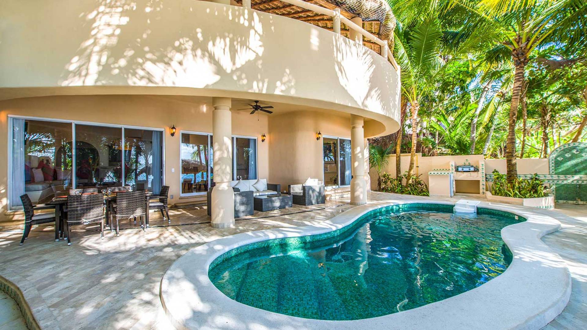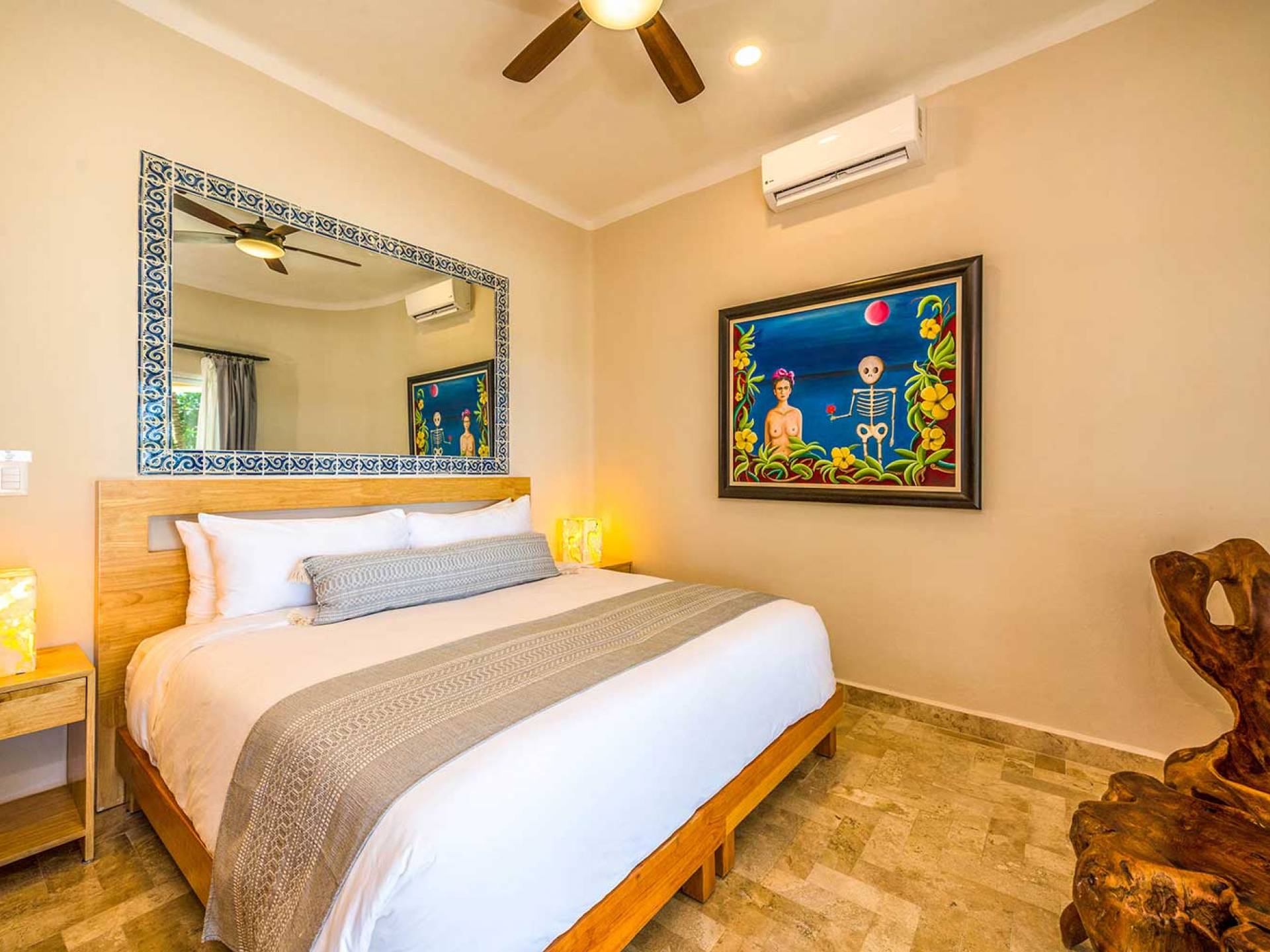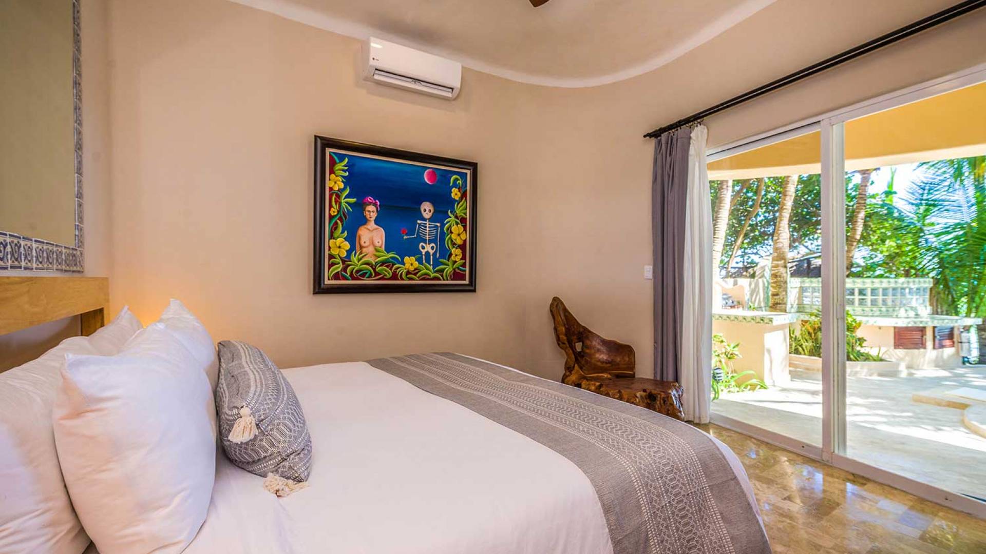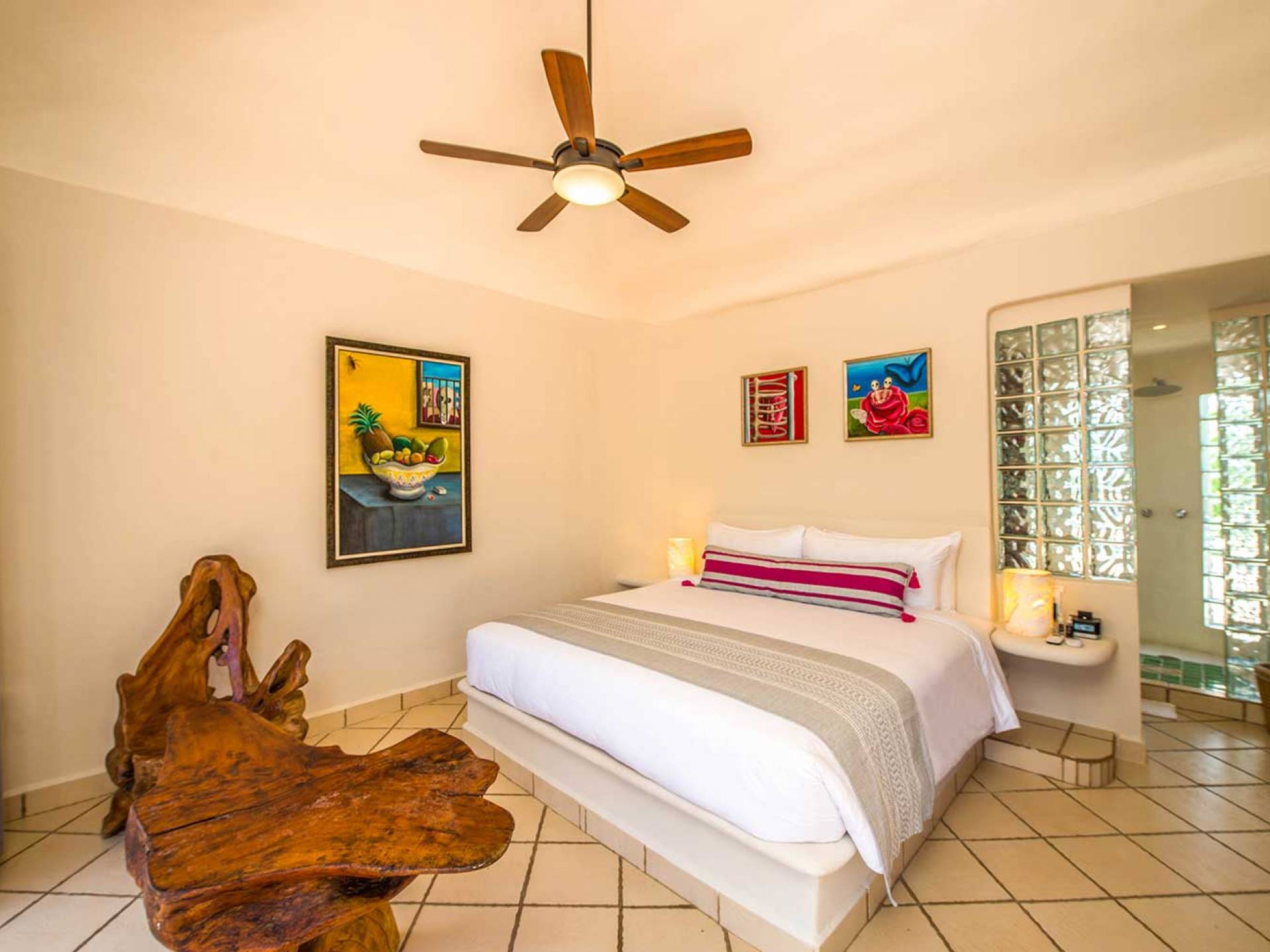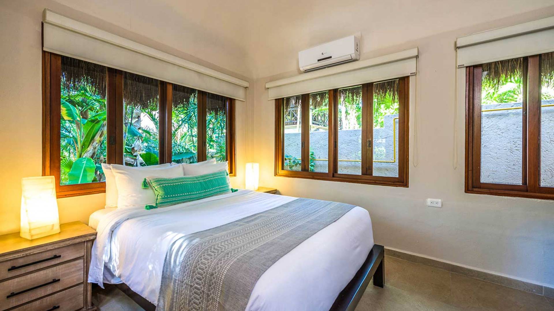Pendant ce temps, de nombreuses chaises longues et une palapa de plage vous permettent de vous détendre avec une bouteille de «cerveza» réfrigérée et d'admirer les eaux bleues de la baie de Soliman. C’est également une agréable surprise de découvrir que les 4 chambres de la villa offrent la même vue imprenable sur les Caraïbes. La chambre du bas dispose d'un très grand lit king-size et plaira à ceux qui aiment l'idée d'avoir un centre de divertissement complet, y compris une télévision à écran plasma, pour eux seuls. Les deux chambres king-size du deuxième étage sont dotées d'une salle de bains spacieuse et d'un accès privé à une grande terrasse meublée sur l'océan.