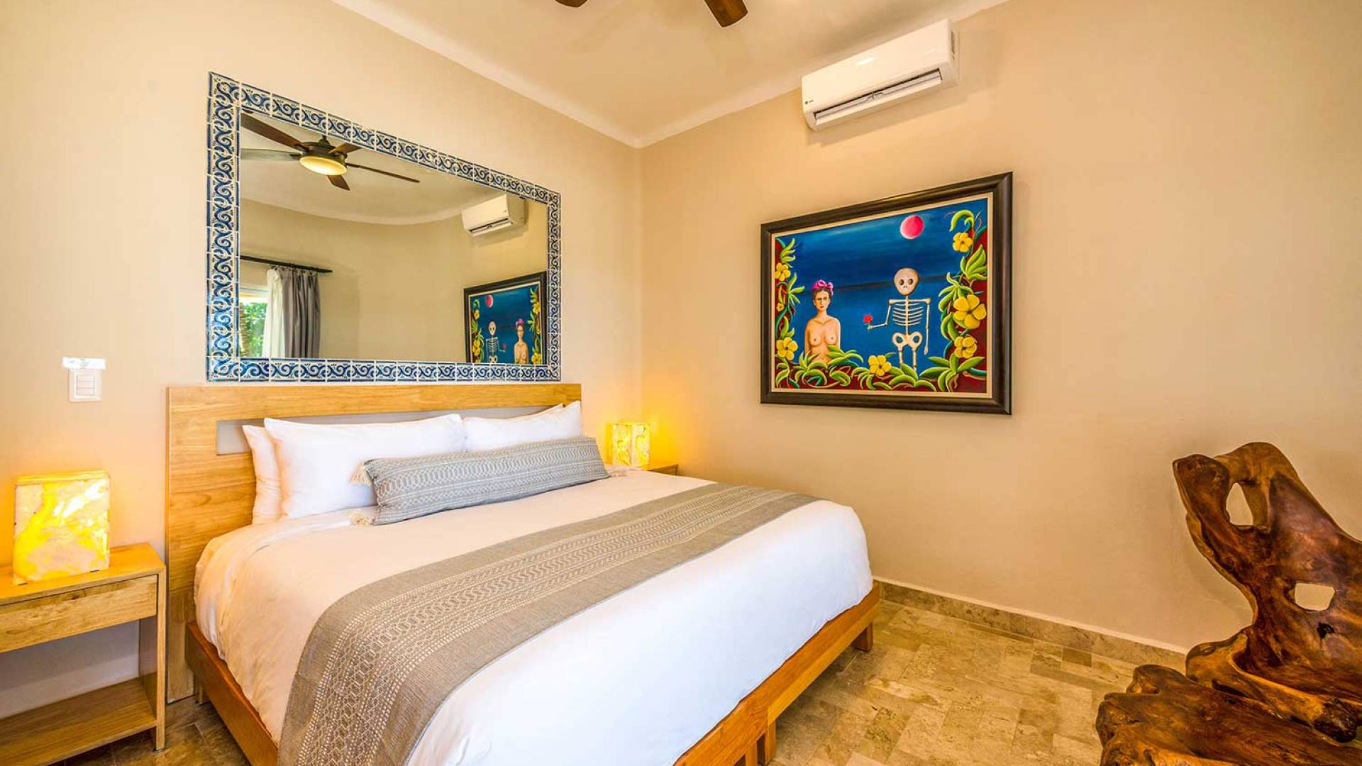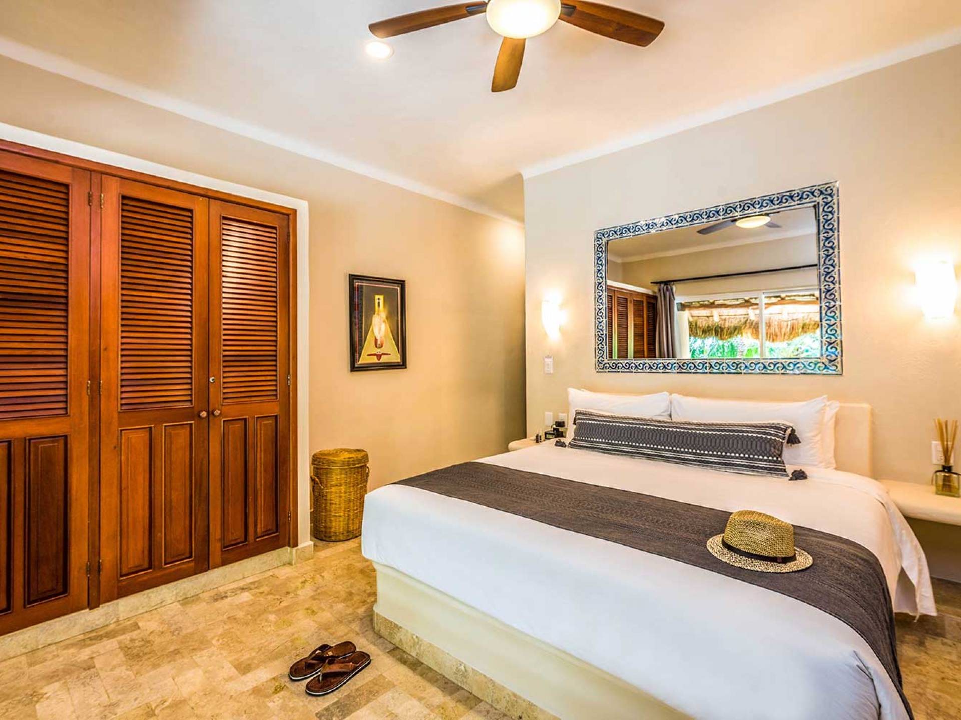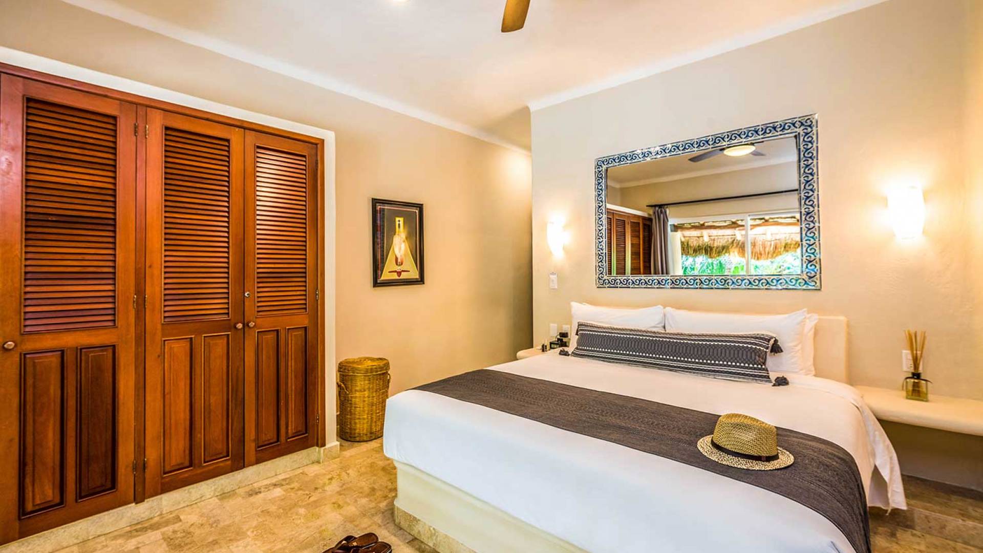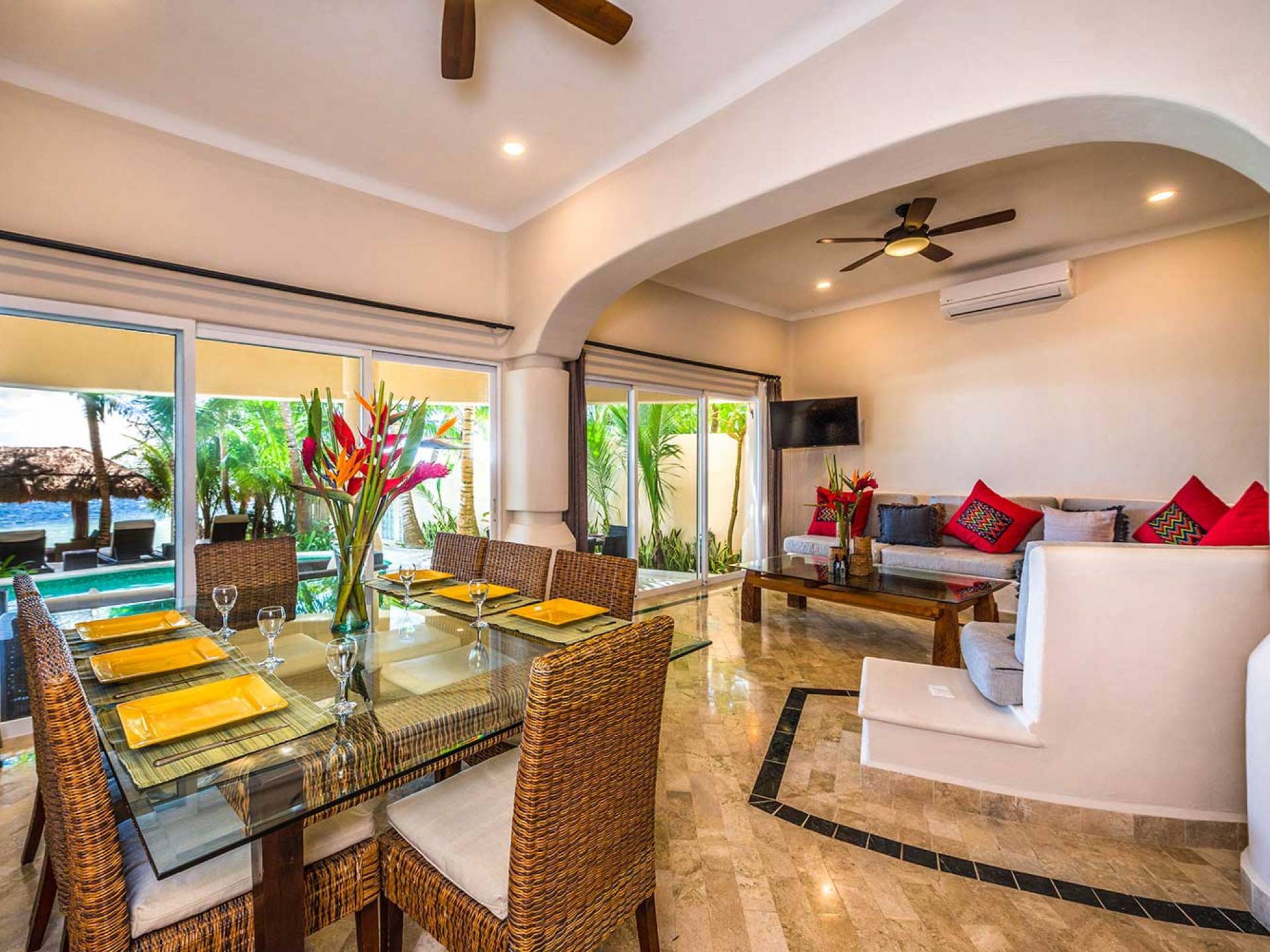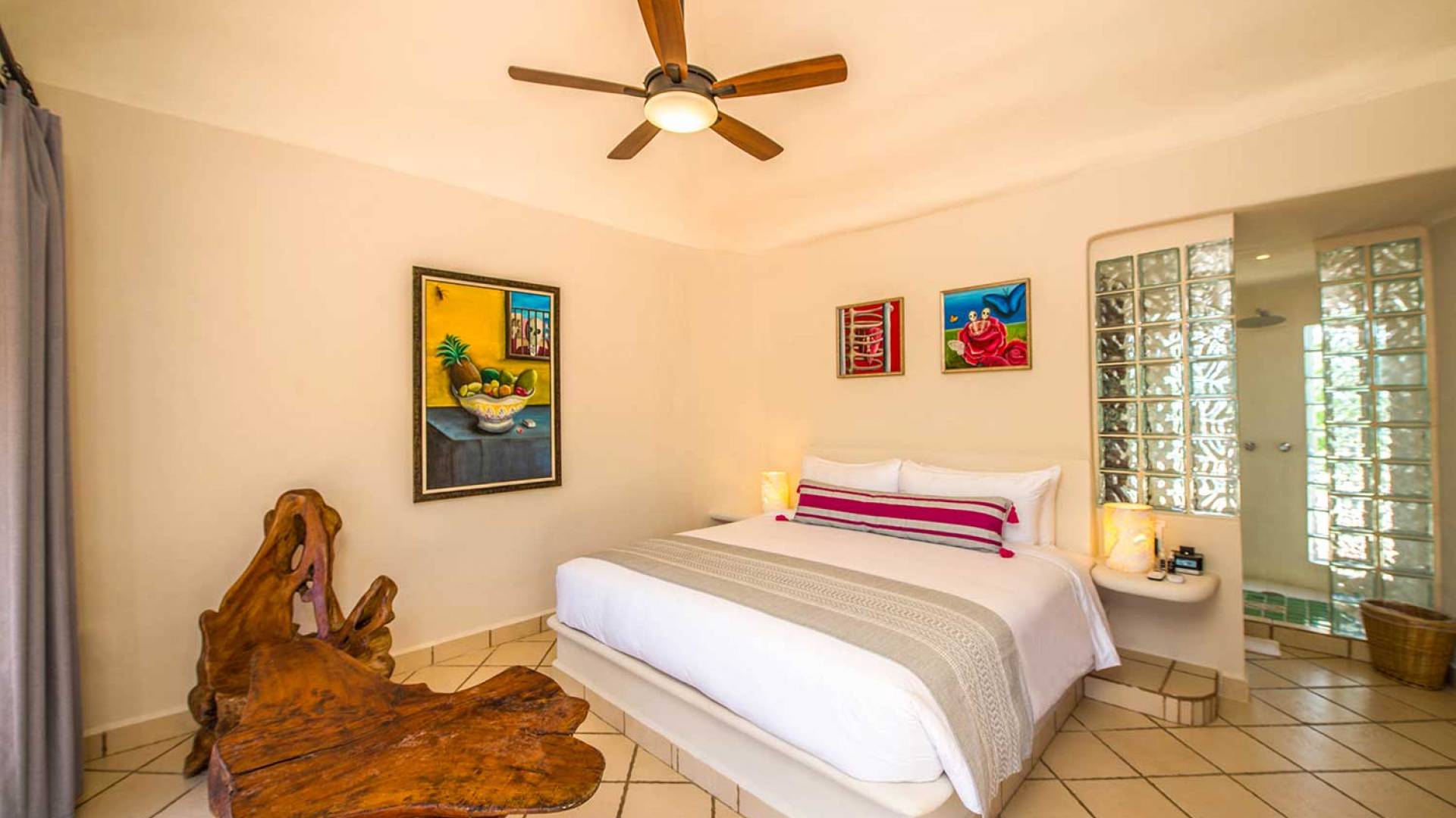 Pendant ce temps, de nombreuses chaises longues et une palapa de plage vous permettent de vous détendre avec une bouteille de «cerveza» réfrigérée et d'admirer les eaux bleues de la baie de Soliman. C’est également une agréable surprise de découvrir que les 4 chambres de la villa offrent la même vue imprenable sur les Caraïbes. La chambre du bas dispose d'un très grand lit king-size et plaira à ceux qui aiment l'idée d'avoir un centre de divertissement complet, y compris une télévision à écran plasma, pour eux seuls. Les deux chambres king-size du deuxième étage sont dotées d'une salle de bains spacieuse et d'un accès privé à une grande terrasse meublée sur l'océan.