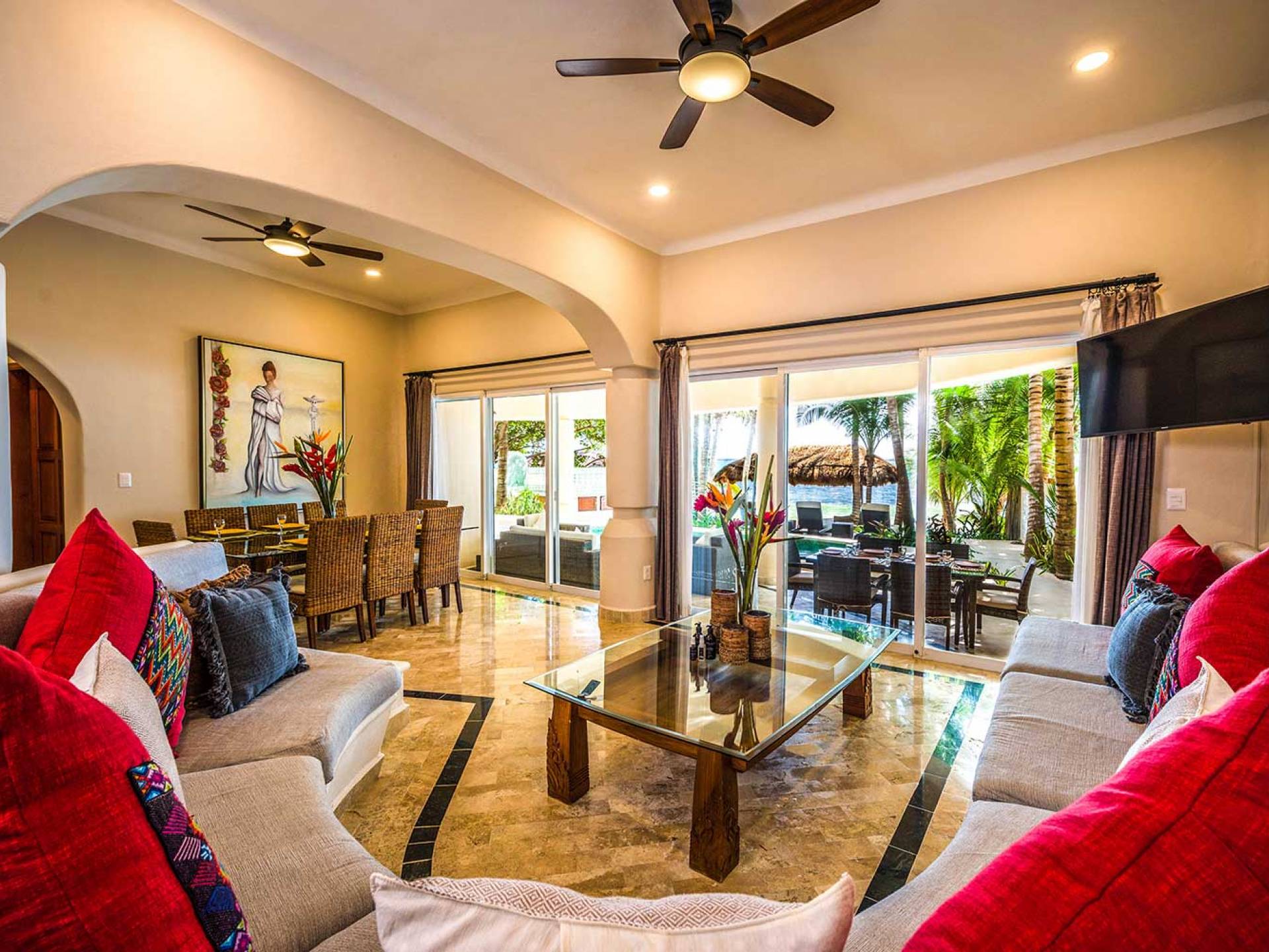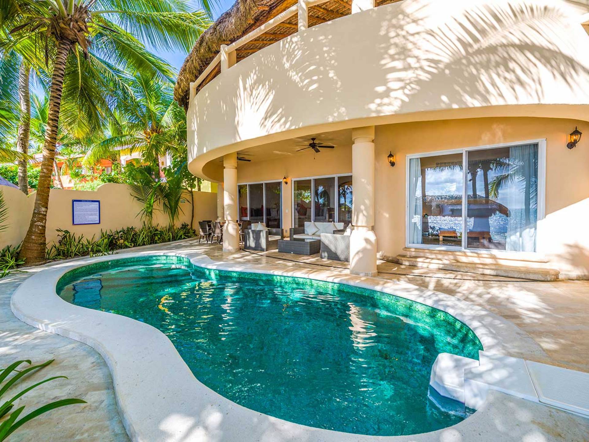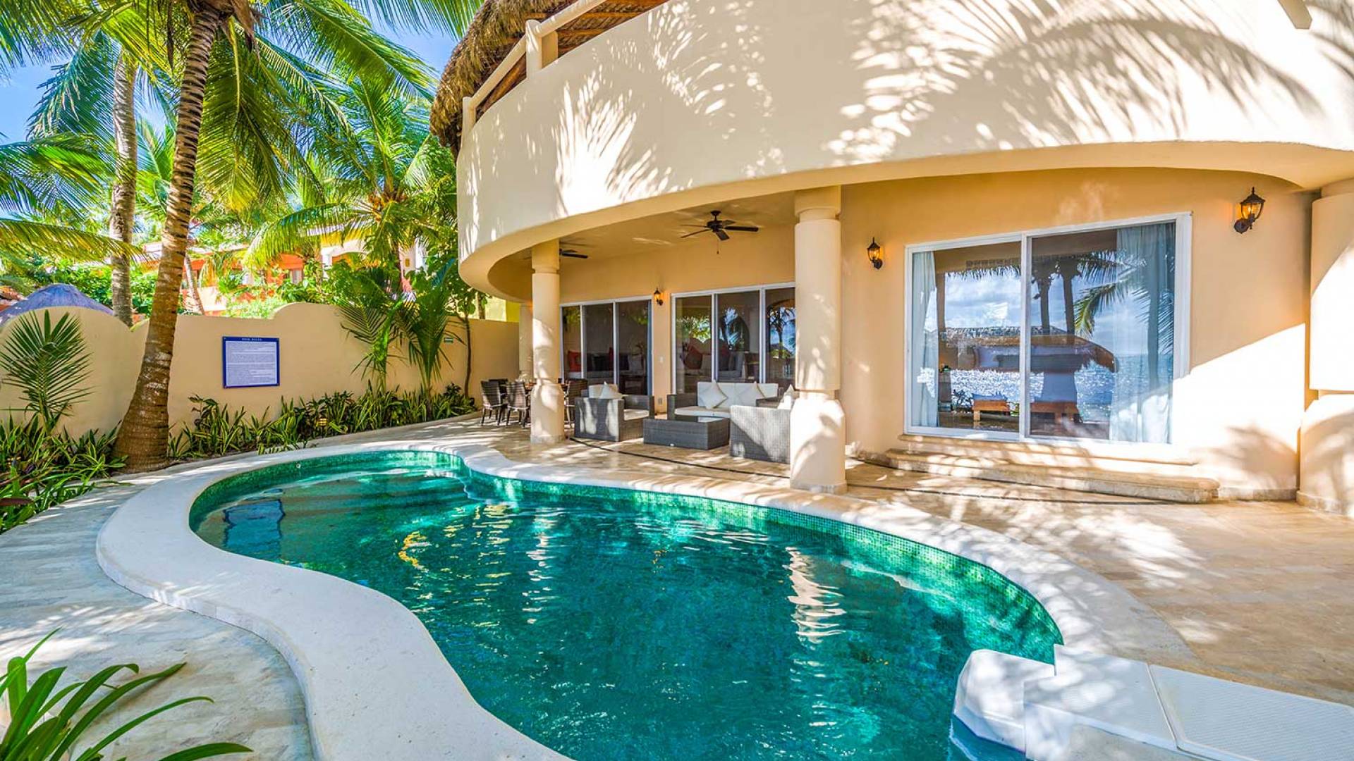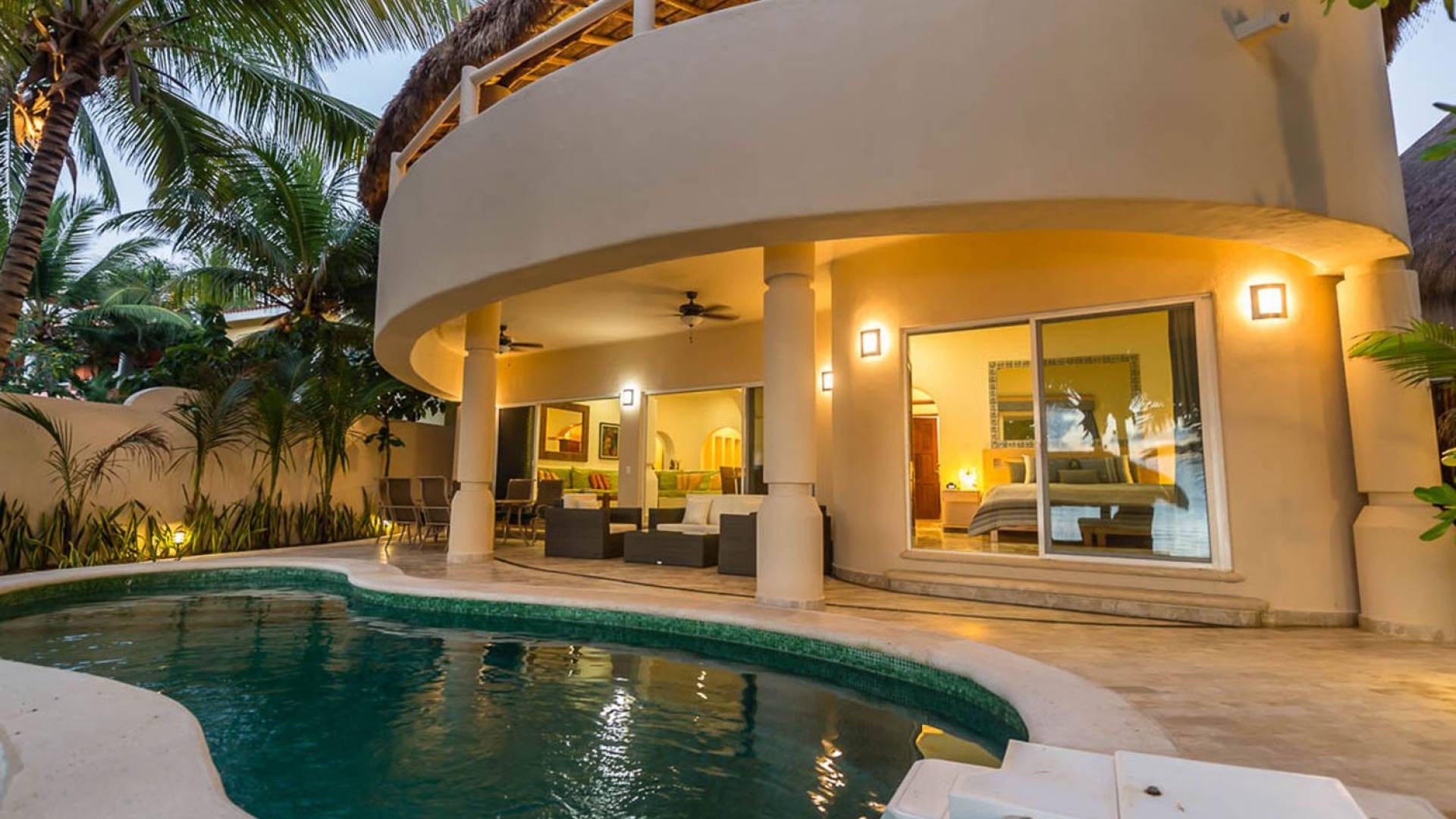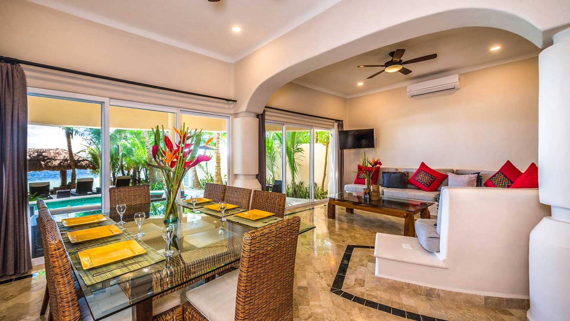 Pendant ce temps, de nombreuses chaises longues et une palapa de plage vous permettent de vous détendre avec une bouteille de «cerveza» réfrigérée et d'admirer les eaux bleues de la baie de Soliman. C’est également une agréable surprise de découvrir que les 4 chambres de la villa offrent la même vue imprenable sur les Caraïbes. La chambre du bas dispose d'un très grand lit king-size et plaira à ceux qui aiment l'idée d'avoir un centre de divertissement complet, y compris une télévision à écran plasma, pour eux seuls. Les deux chambres king-size du deuxième étage sont dotées d'une salle de bains spacieuse et d'un accès privé à une grande terrasse meublée sur l'océan.