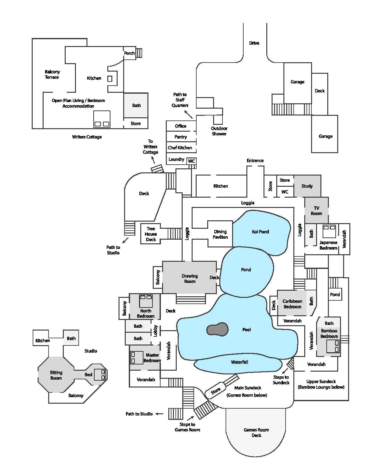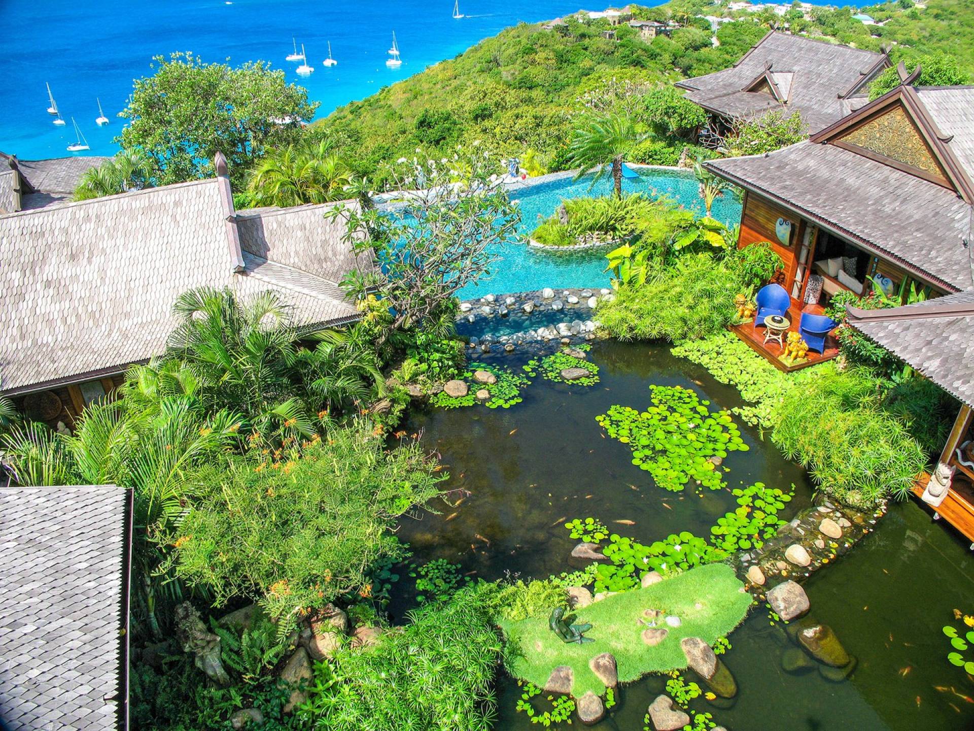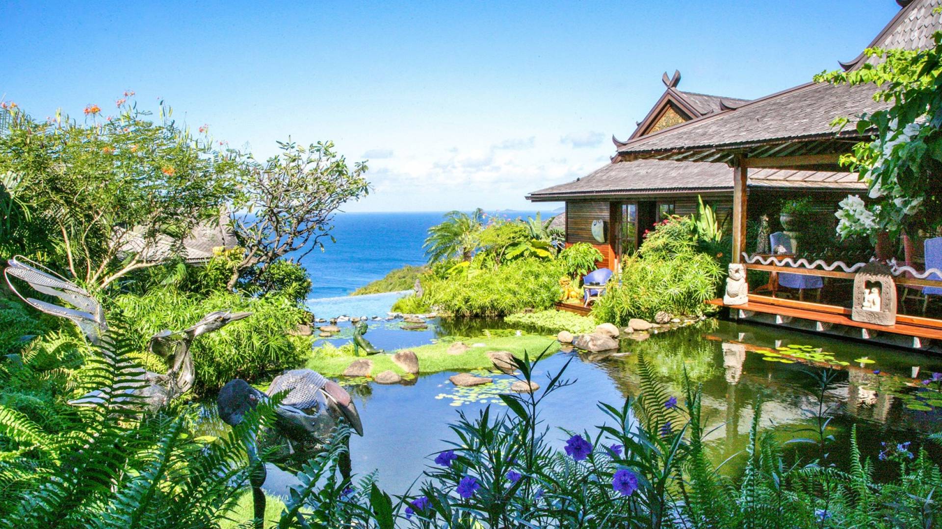 Il y a des vues orientées à l'ouest sur la baie de Britannia, et une piscine à débordement et un étang de carpes koï sur deux niveaux qui mélangent le domaine avec la mer des Caraïbes environnante. Mandalay tire son nom du poème de Rudyard Kipling, "The Road to Mandalay", après avoir été initialement appelé "Britannia Bay House". Niché au milieu d'une végétation luxuriante, Mandalay Pearl est l'évasion tropicale ultime. Mandalay Pearl Estate est un véritable paradis tropical, et autant de soin et d'attention ont été apportés à l'architecture extérieure qu'à l'intérieur. La villa est située au milieu de six acres de jardins et s'articule autour d'un magnifique étang de koi. Le domaine dispose à la fois d'une luxueuse piscine à débordement et d'une pataugeoire pour enfants, afin que toute la famille puisse se baigner.