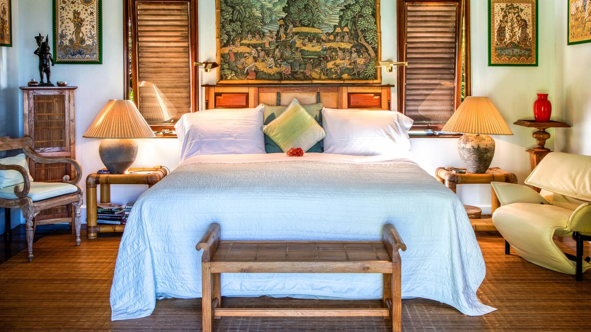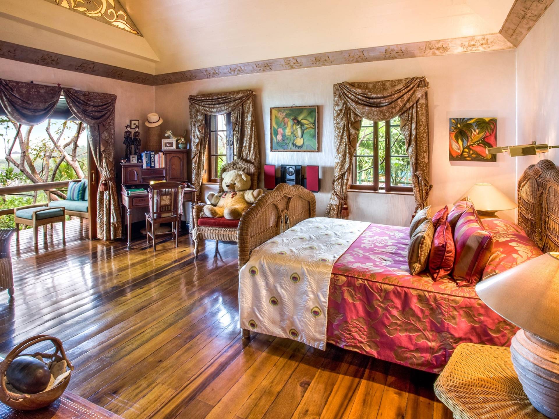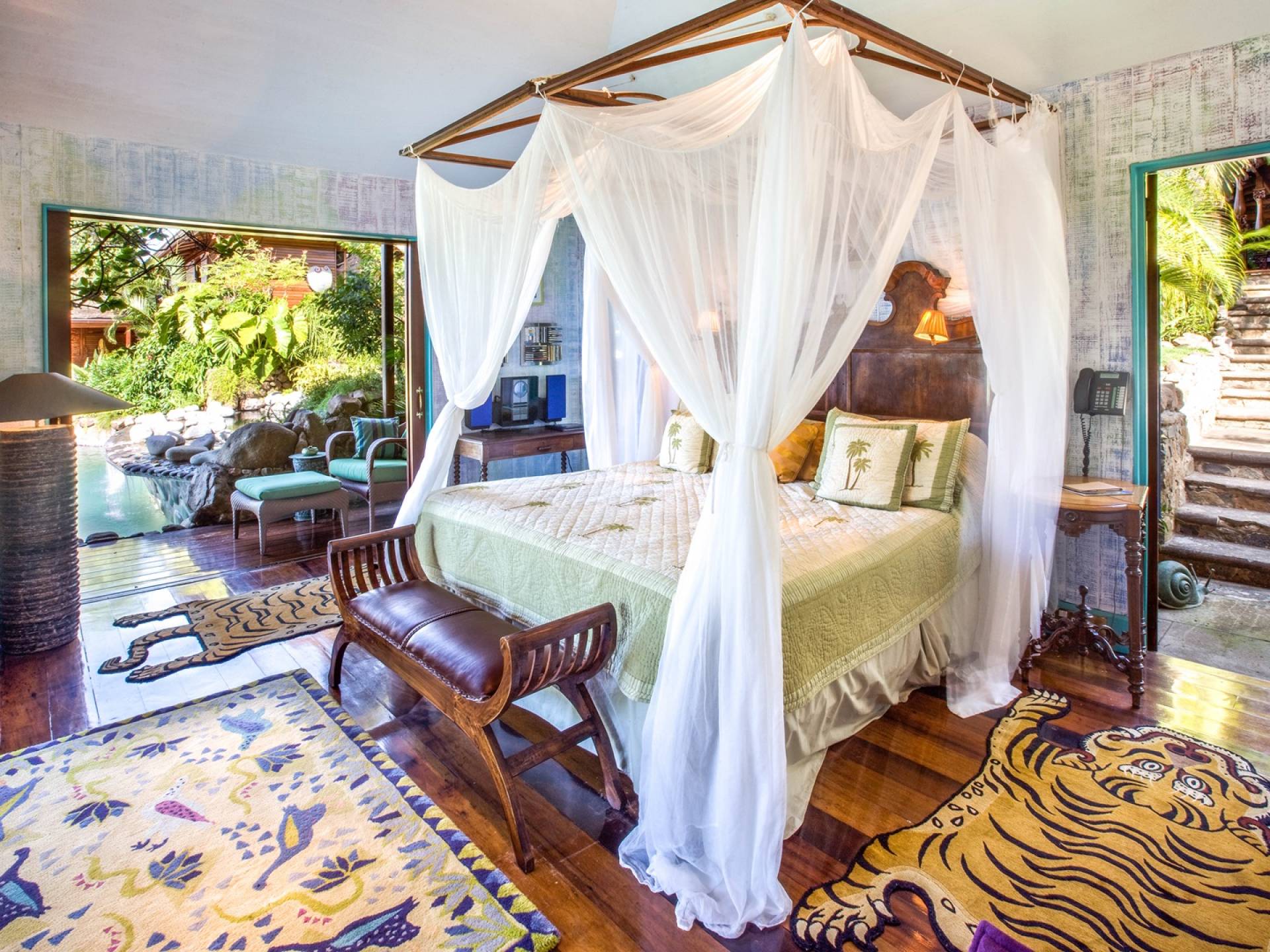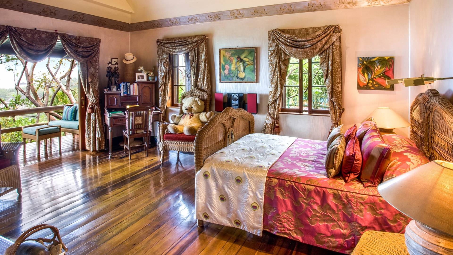 Il y a cinq chambres à coucher de style individuel, avec des vérandas privées menant à la piscine. En plus des chambres, le domaine dispose d'un salon, d'un pavillon à manger, d'une salle de jeux et d'une salle de musique entièrement équipée. Il y a aussi une bibliothèque avec plus de 3 000 livres et 2 000 films. Le Bamboo Lounge dispose d'un bar bien approvisionné, c'est donc l'endroit idéal pour se détendre davantage après une journée de détente. Mustique Island abrite un certain nombre de belles plages, vous n'aurez donc que l'embarras du choix. Pagayez dans la mer ou détendez-vous sur le sable et profitez du soleil ; les endroits préférés incluent Macaroni Beach et Lagoon Beach.