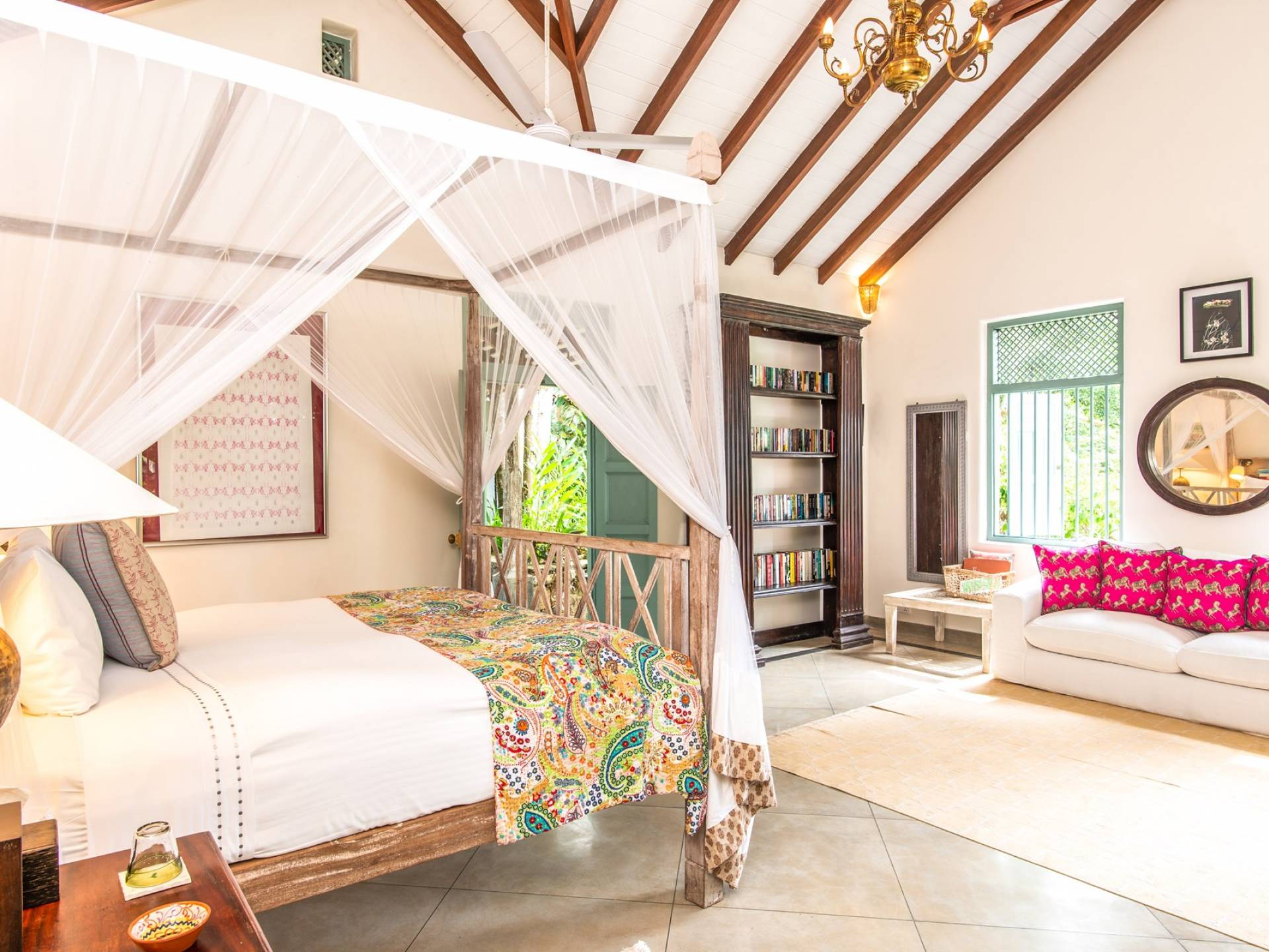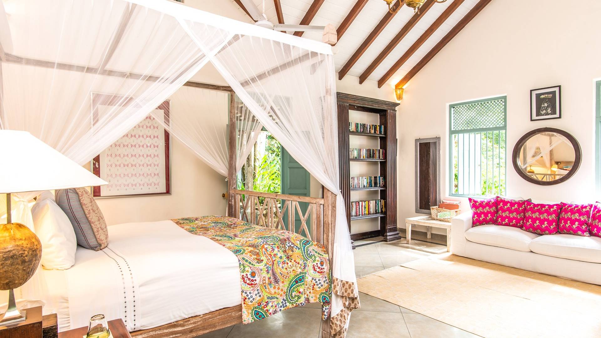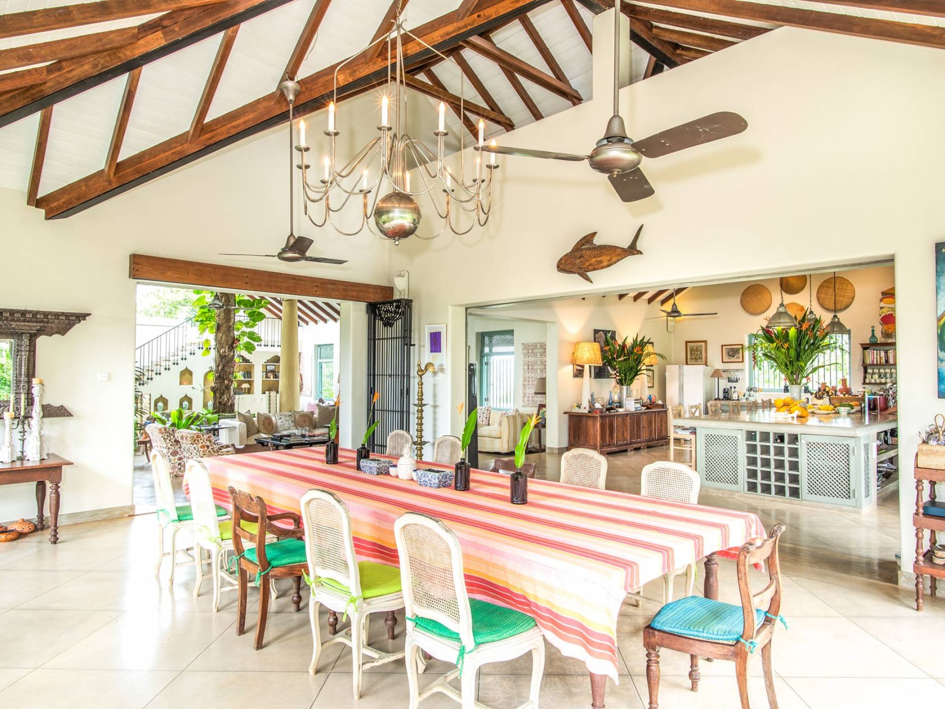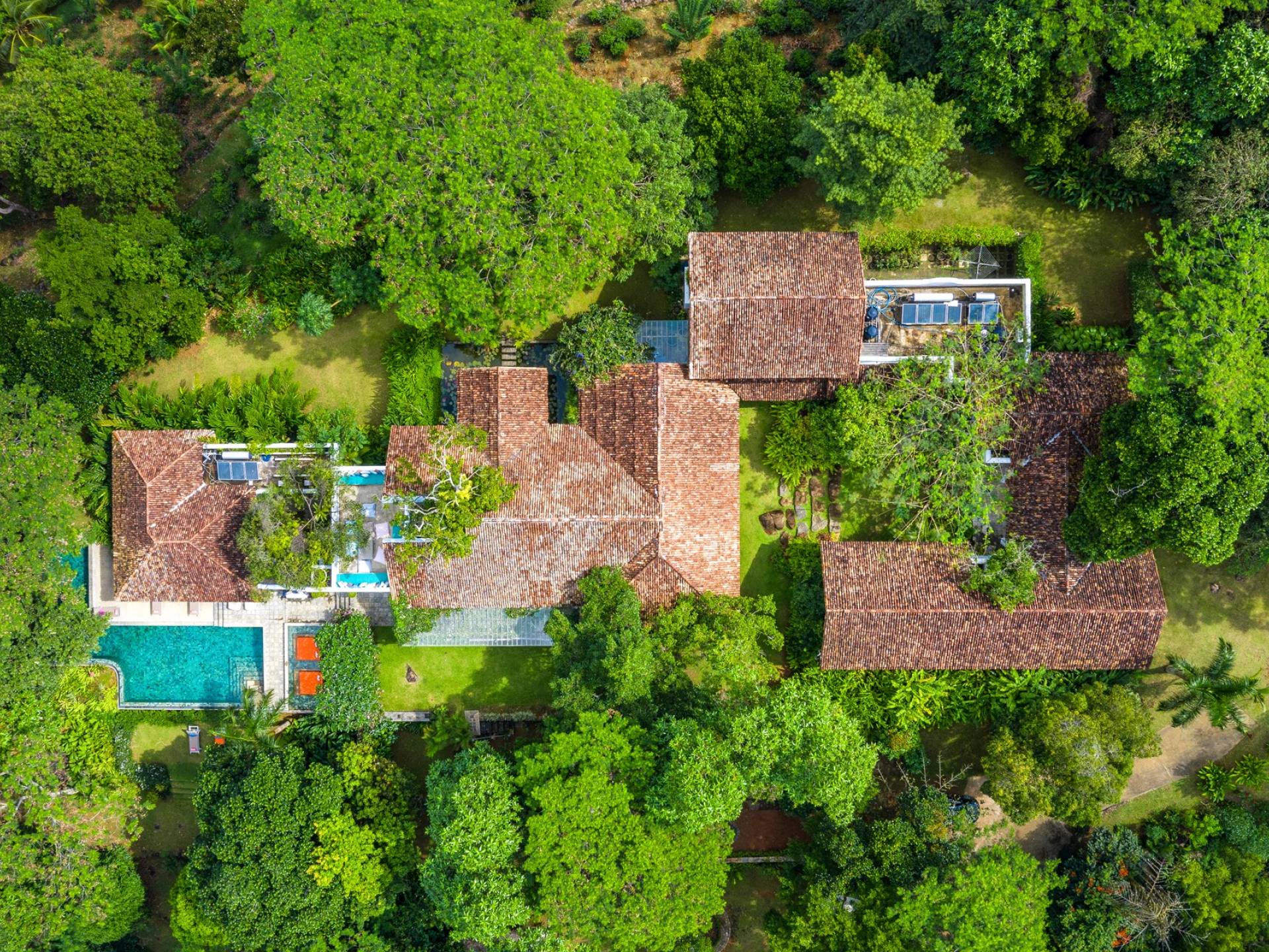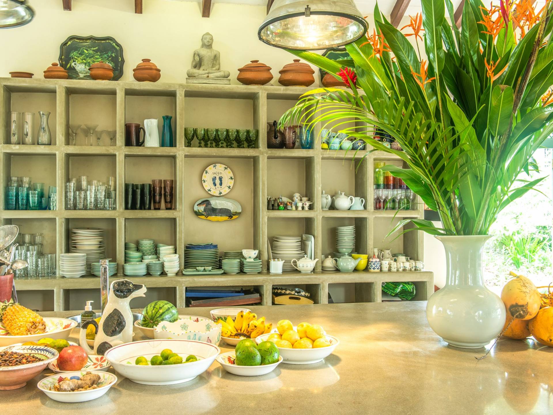 Les immenses espaces de vie et de restauration de la villa Sisidnu comprennent une cuisine spacieuse et bien équipée et offrent une vue imprenable à 360 degrés. Il y a une terrasse sur le toit idéale pour prendre un verre au coucher du soleil, de nombreux autres espaces de repos et de détente isolés et une salle de télévision climatisée avec de vastes canapés. La villa est dotée d'une superbe piscine en forme de L à débordement, à partir de laquelle on peut regarder les navires sillonner la mer lointaine et les singes jouer dans les arbres. Les jardins tropicaux luxuriants avec des fleurs et des fruits exotiques offrent un espace supplémentaire pour se détendre et profiter de la brise fraîche.