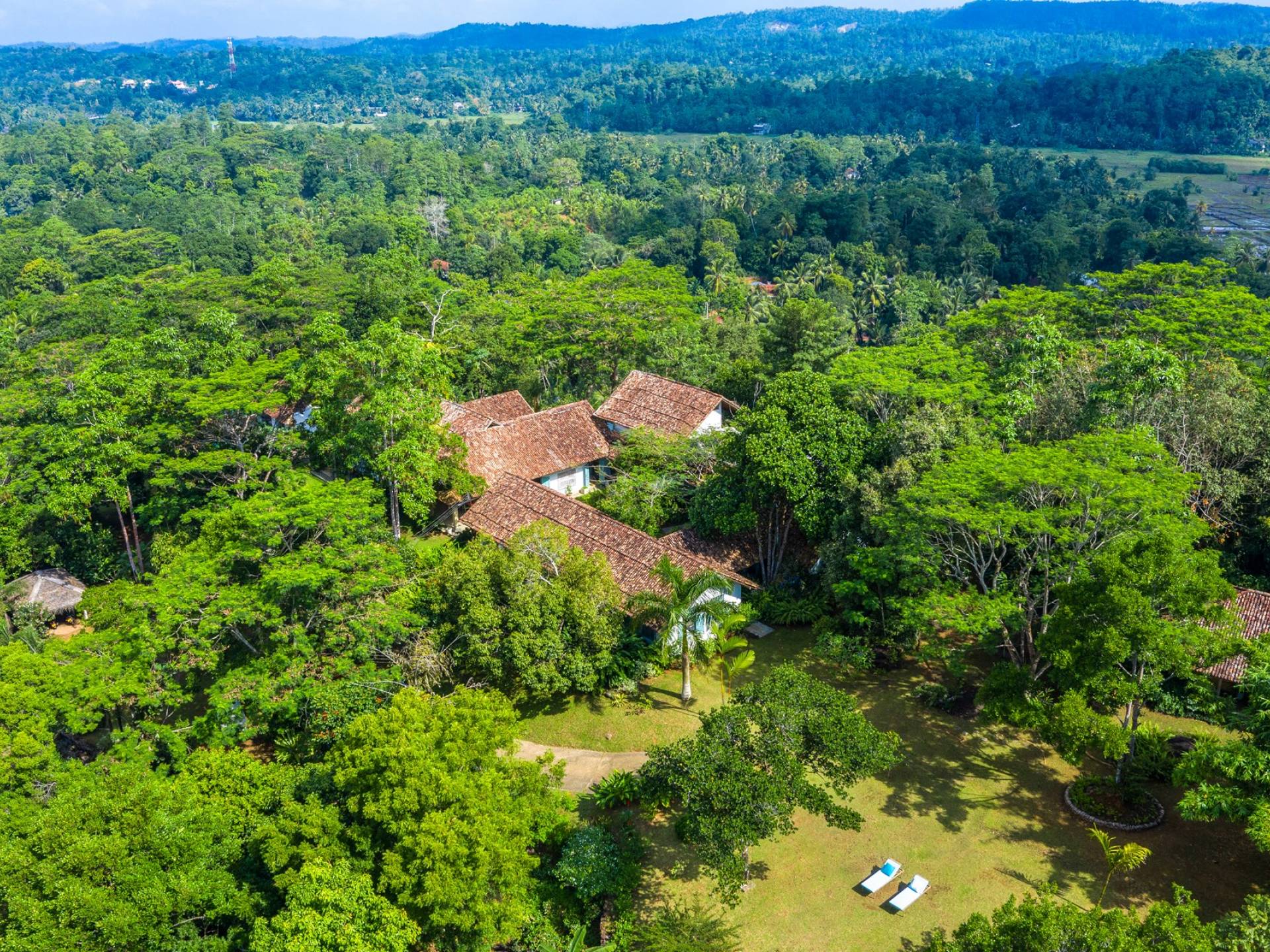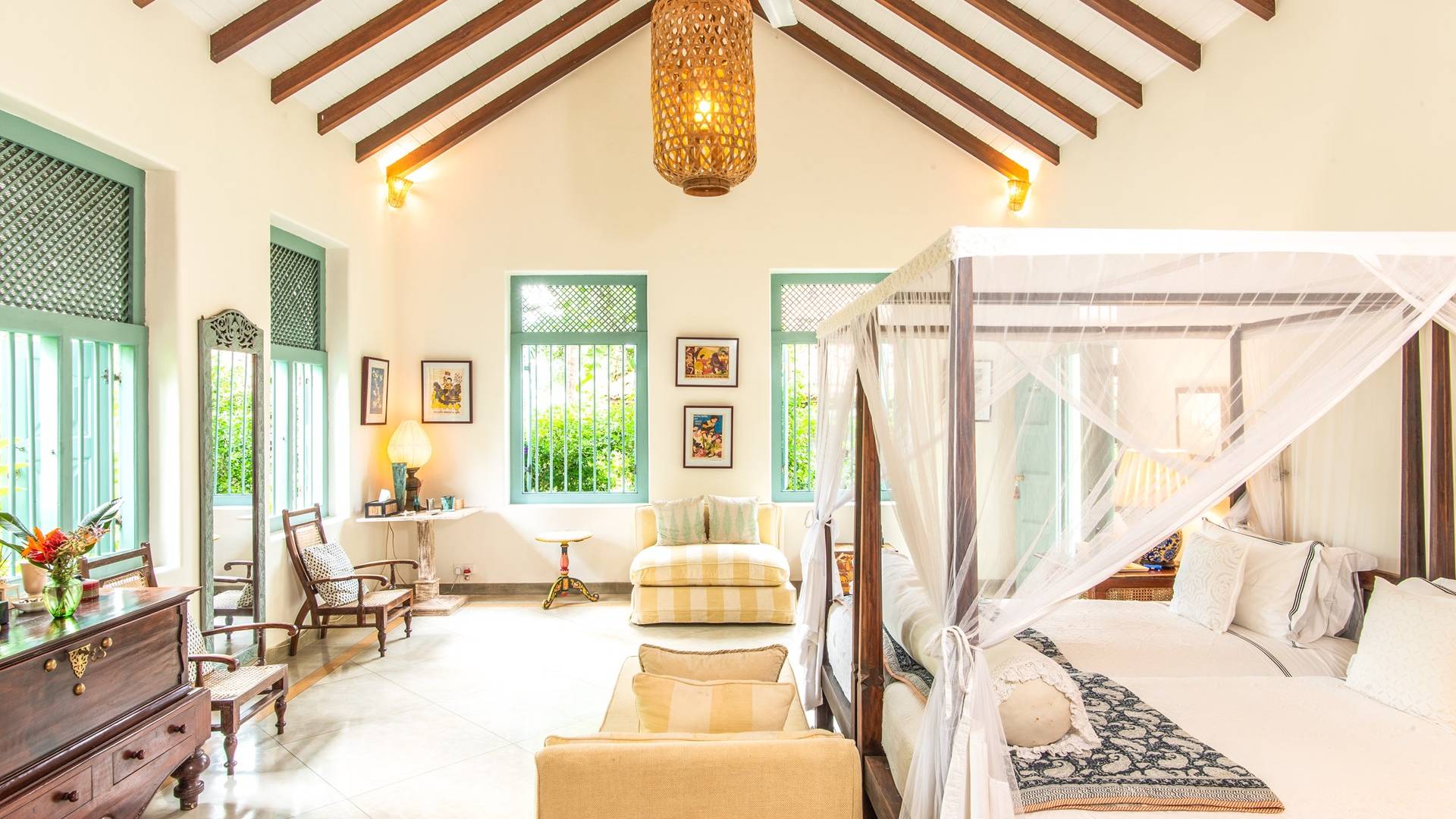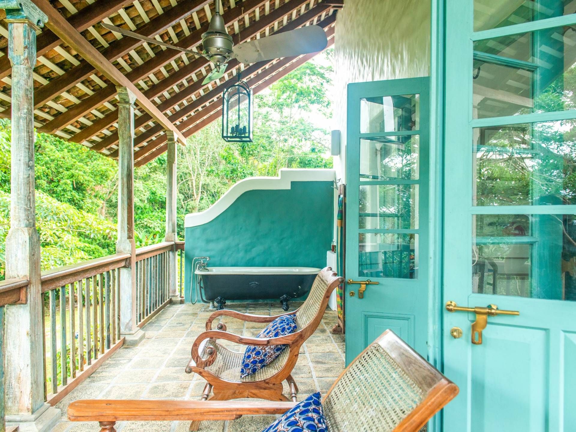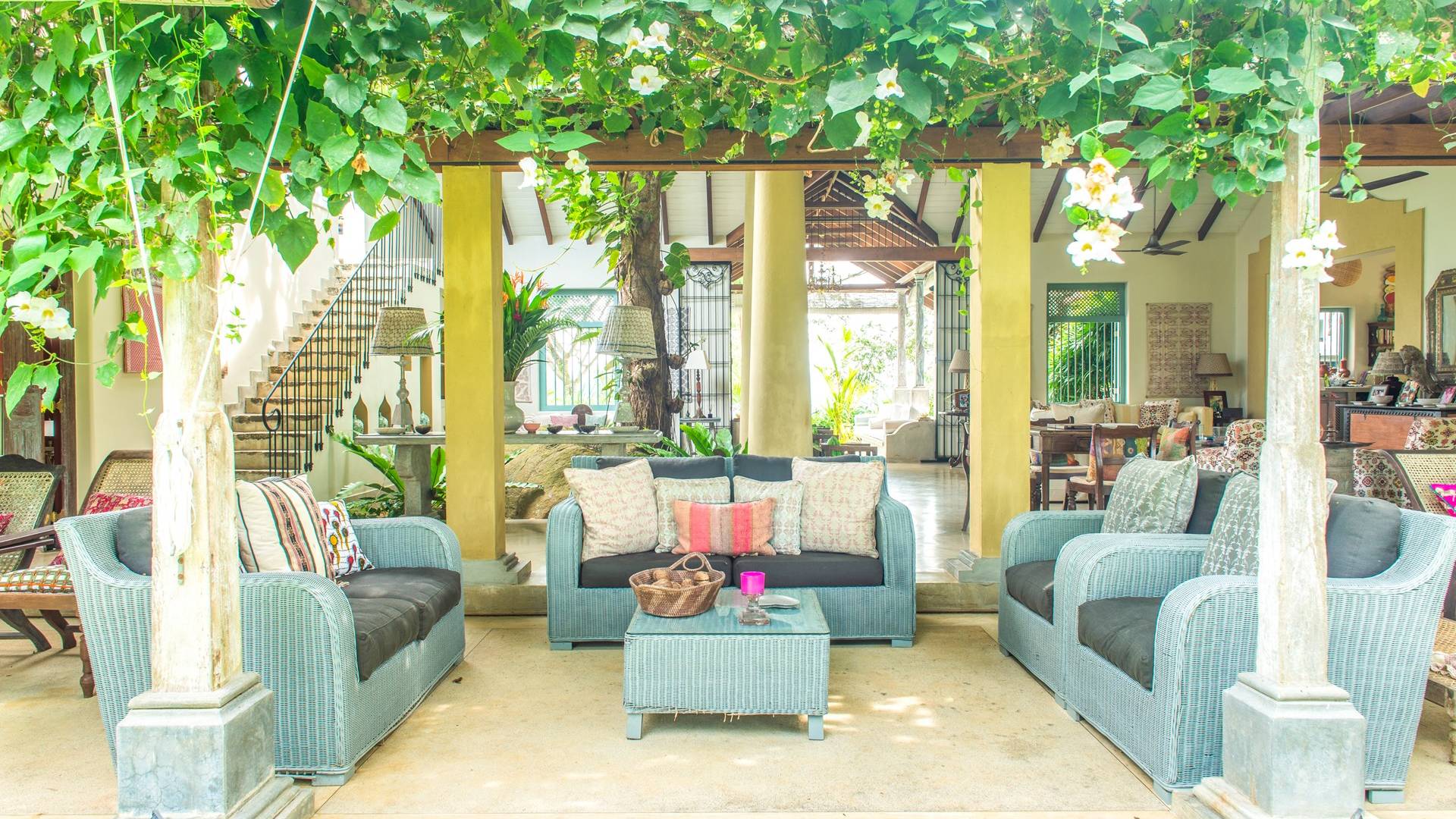 Le magnifique Sisindu Tea Estate Galle est une idée originale d'un couple britannique passionné de décoration d'intérieur, qui l'appelle désormais chez lui. La villa, conçue par l'un des plus grands architectes du Sri Lanka, se trouve dans une position élevée au sommet d'une colline à 800 pieds au-dessus du niveau de la mer, entourée d'une plantation de thé en activité avec une vue imprenable de tous les côtés.