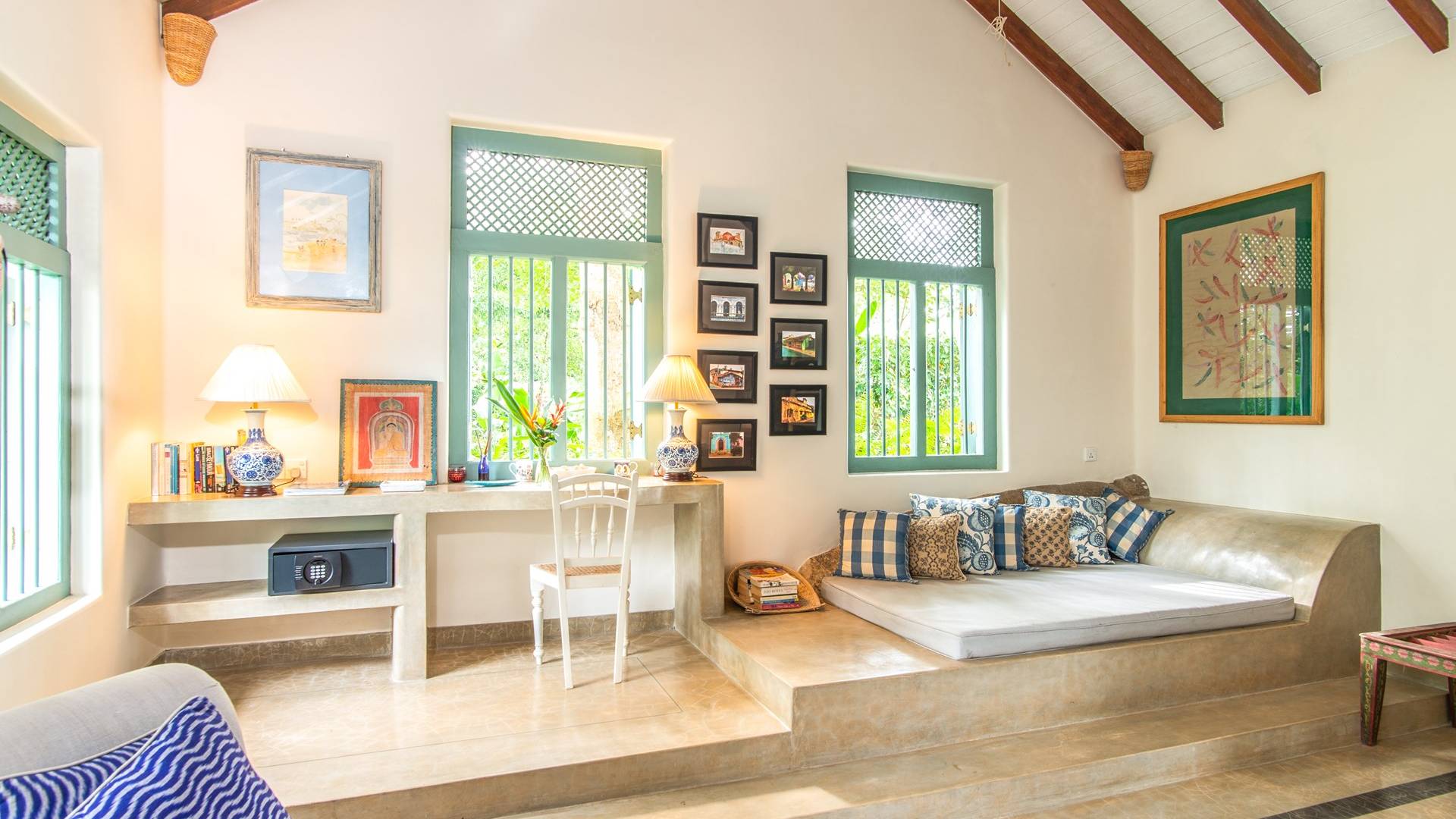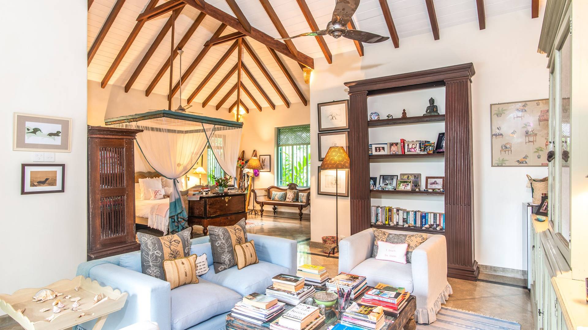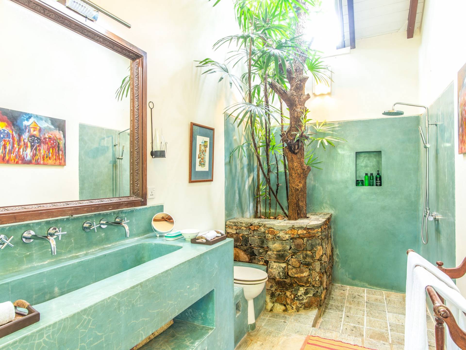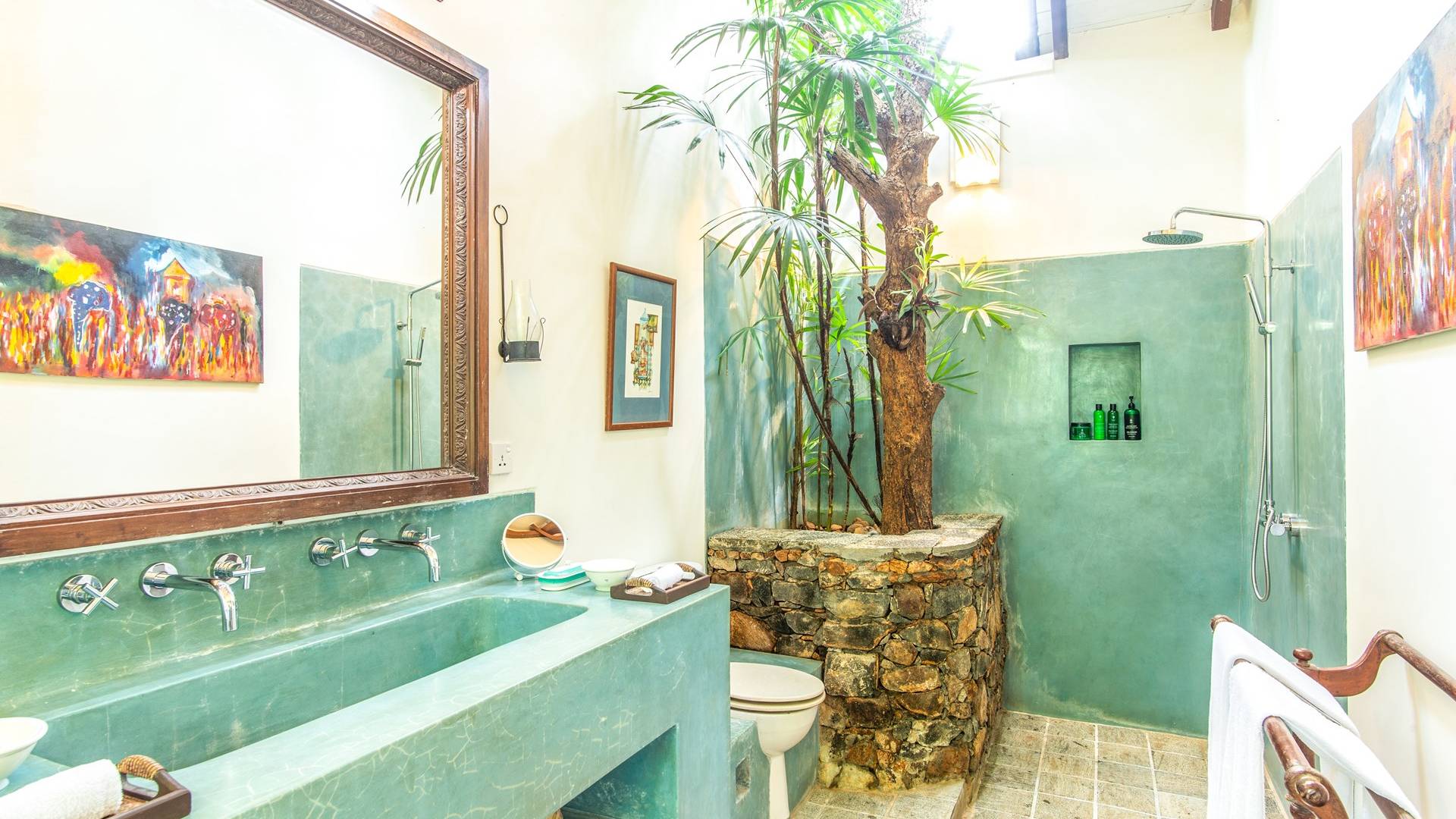 Le magnifique Sisindu Tea Estate Galle est une idée originale d'un couple britannique passionné de décoration d'intérieur, qui l'appelle désormais chez lui. La villa, conçue par l'un des plus grands architectes du Sri Lanka, se trouve dans une position élevée au sommet d'une colline à 800 pieds au-dessus du niveau de la mer, entourée d'une plantation de thé en activité avec une vue imprenable de tous les côtés.