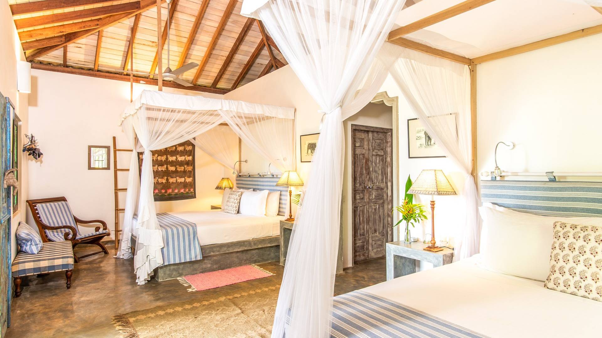 Toutes les chambres sont luxueusement aménagées avec des designs époustouflants mettant en vedette les roches naturelles sur lesquelles la villa est construite. La propriété est idéale pour une grande famille ou un groupe d'amis célébrant une occasion spéciale. Une excellente équipe veille à ce que les clients n'aient jamais à lever le petit doigt. La Villa Sisindu T abrite six chambres joliment meublées. La Master Suite a son propre salon et une salle de bain en plein air spectaculaire avec une baignoire et deux douches. Il y a quatre chambres doubles extrêmement spacieuses et une "Jungle Room" qui offre un hébergement supplémentaire avec deux lits doubles, une douche privative et une salle de massage. Le design de chaque pièce est tout à fait unique et individuel.