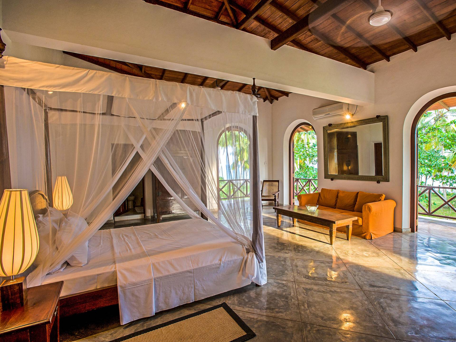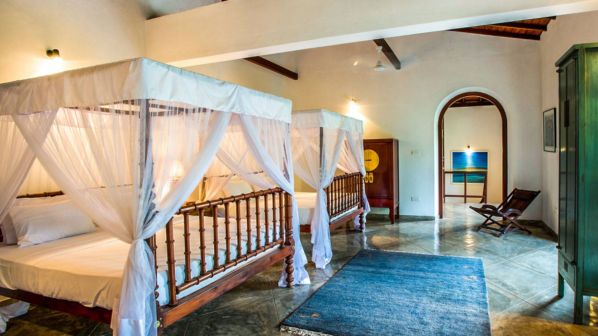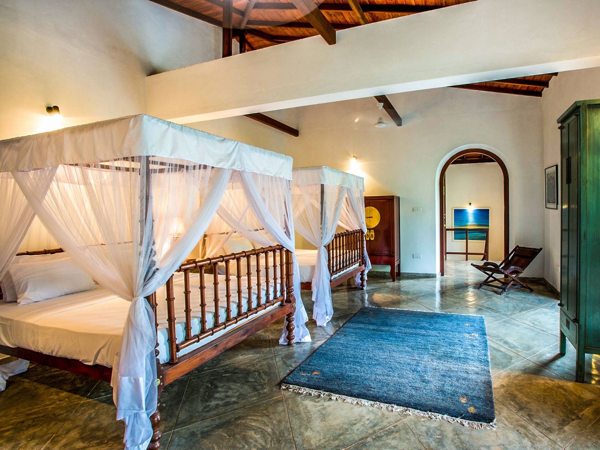 La Villa Ocean's Edge Sri Lanka peut accueillir jusqu'à 9 personnes. Idéal pour les familles ou les groupes d'amis à la recherche d'une retraite de luxe privée relaxante dans un environnement tropical avec une vue magnifique. Avec des vues spectaculaires sur la côte sud du Sri Lanka, la villa d'inspiration coloniale de deux étages et de quatre chambres, Ocean's Edge, offre un vrai goût d'isolement exotique.