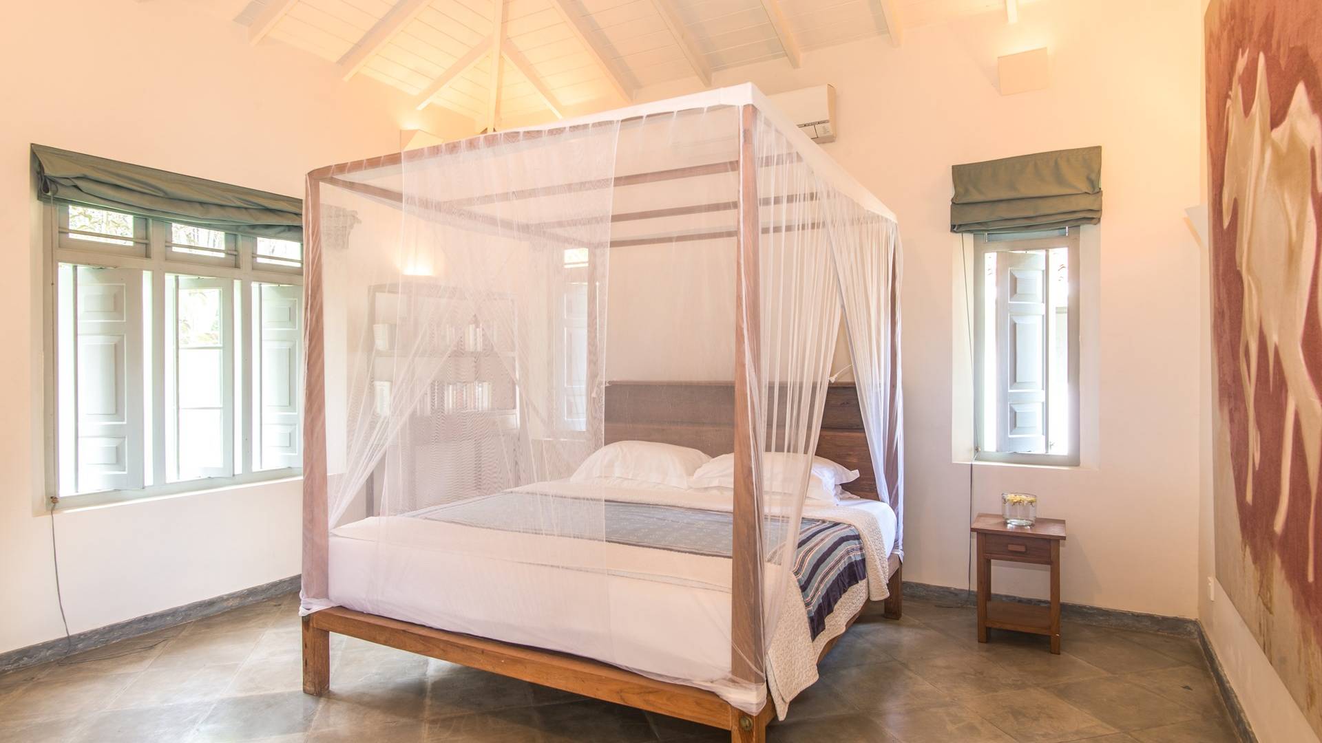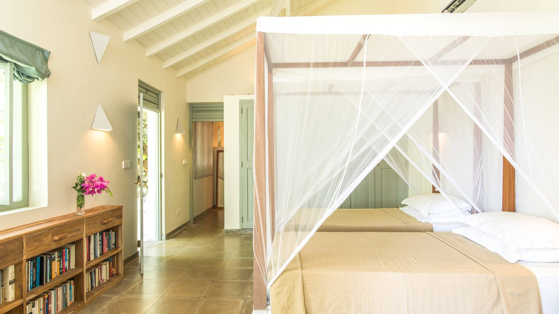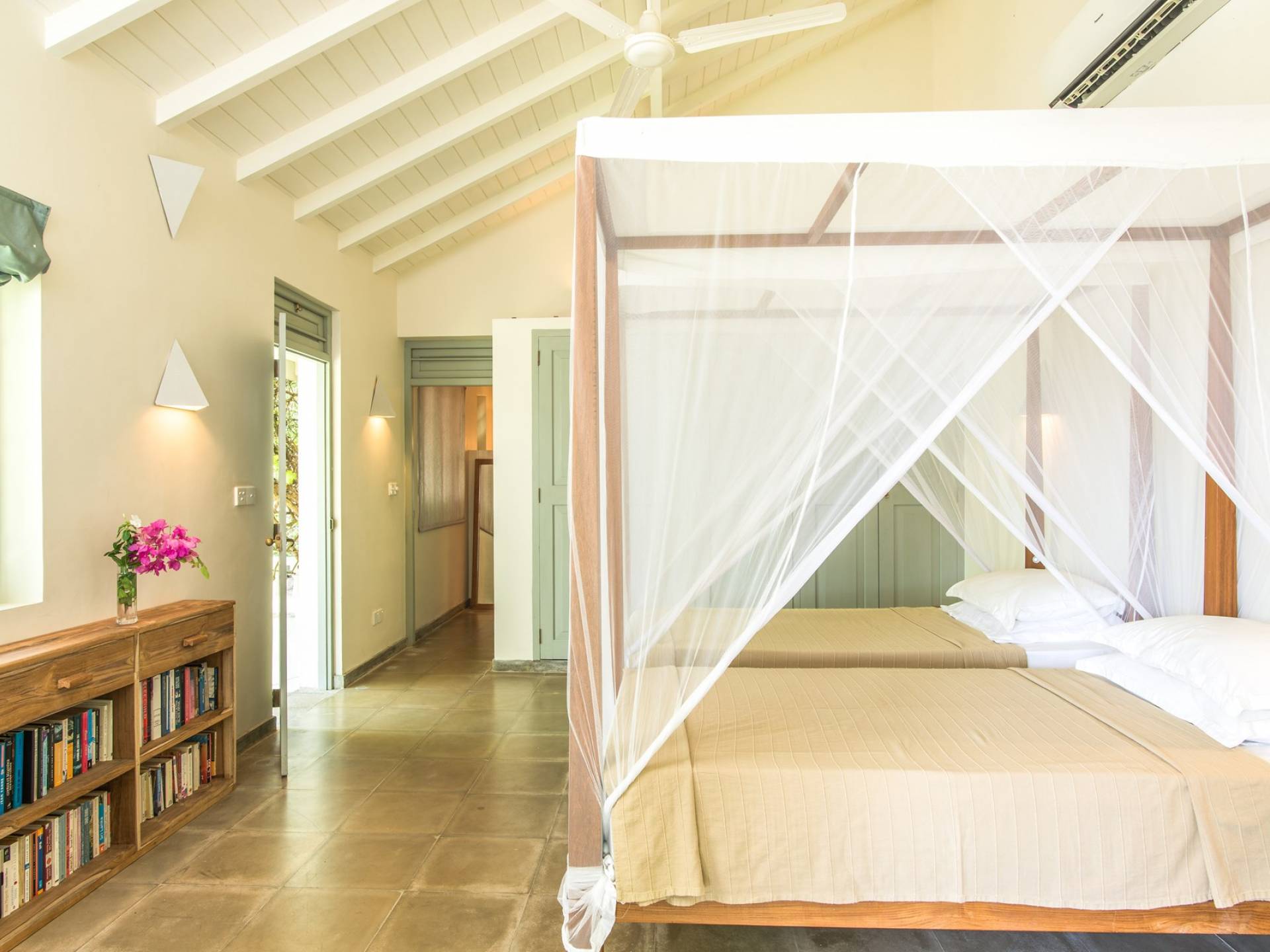 Suriyawatta a une structure ouverte avec des portes-fenêtres menant à une terrasse et un jardin et des vues sur l'océan au-delà. La cuisine est invitante ou peut être laissée au domaine du chef. La salle à manger dispose d'une impressionnante table à manger pouvant accueillir dix personnes. La suite principale et la suite d'invités disposent de lits king-size à baldaquin tandis que la suite jumelle d'invités dispose de deux lits simples à baldaquin. La chambre 4 est également une suite jumelle avec deux lits simples à baldaquin tandis que la chambre 5 est située dans un bâtiment séparé avec deux lits simples à baldaquin, qui peuvent être rapprochés pour former un lit double.
