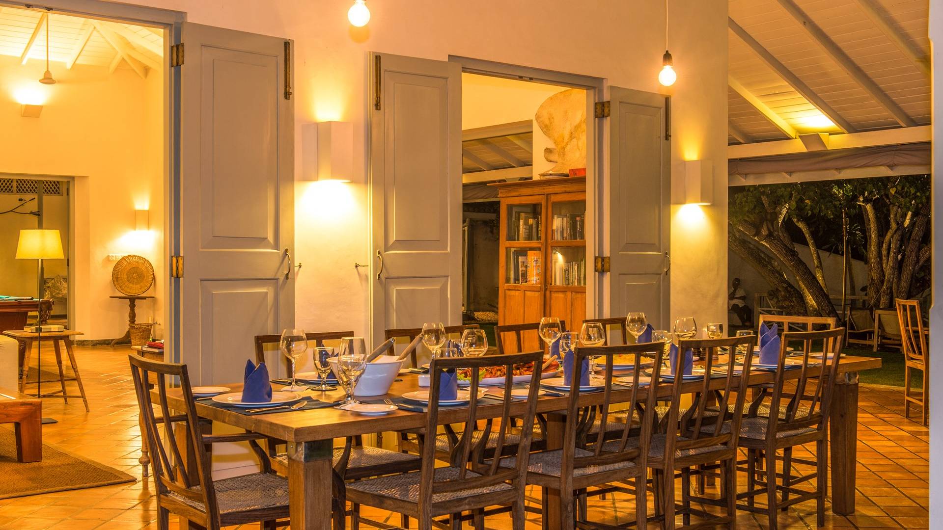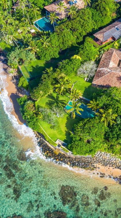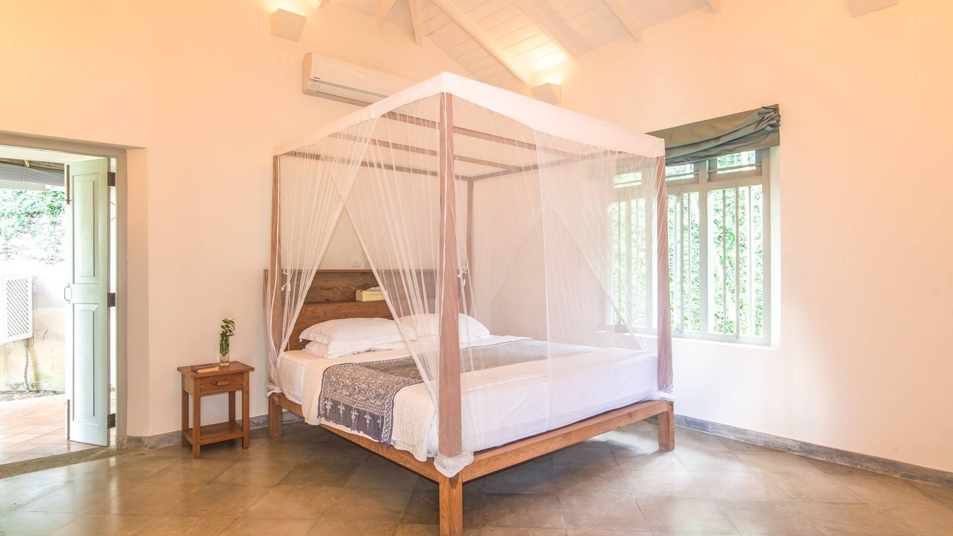 Suriyawatta a une structure ouverte avec des portes-fenêtres menant à une terrasse et un jardin et des vues sur l'océan au-delà. La cuisine est invitante ou peut être laissée au domaine du chef. La salle à manger dispose d'une impressionnante table à manger pouvant accueillir dix personnes. La suite principale et la suite d'invités disposent de lits king-size à baldaquin tandis que la suite jumelle d'invités dispose de deux lits simples à baldaquin. La chambre 4 est également une suite jumelle avec deux lits simples à baldaquin tandis que la chambre 5 est située dans un bâtiment séparé avec deux lits simples à baldaquin, qui peuvent être rapprochés pour former un lit double.