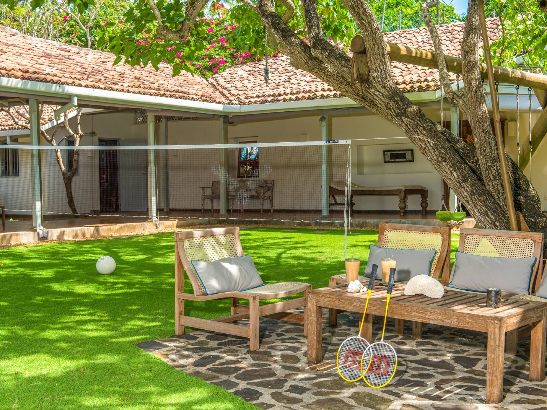 La terrasse inférieure de Suriyawatta abrite la piscine. Quelques marches supplémentaires mènent au jardin et à la porte privée qui s'ouvre sur une petite plage et le lagon qui offre en saison une baignade et une plongée en apnée en toute sécurité. La villa dispose également d'un terrain de pétanque près de son entrée. Il est desservi par un personnel professionnel pour prendre soin des clients et leur assurer une expérience de vacances unique et relaxante. Les clients voyageant avec des enfants trouveront la propriété très adaptée aux enfants. Un lit bébé, un siège auto et un service de garde d'enfants peuvent également être organisés s'ils sont informés au moment de la réservation.