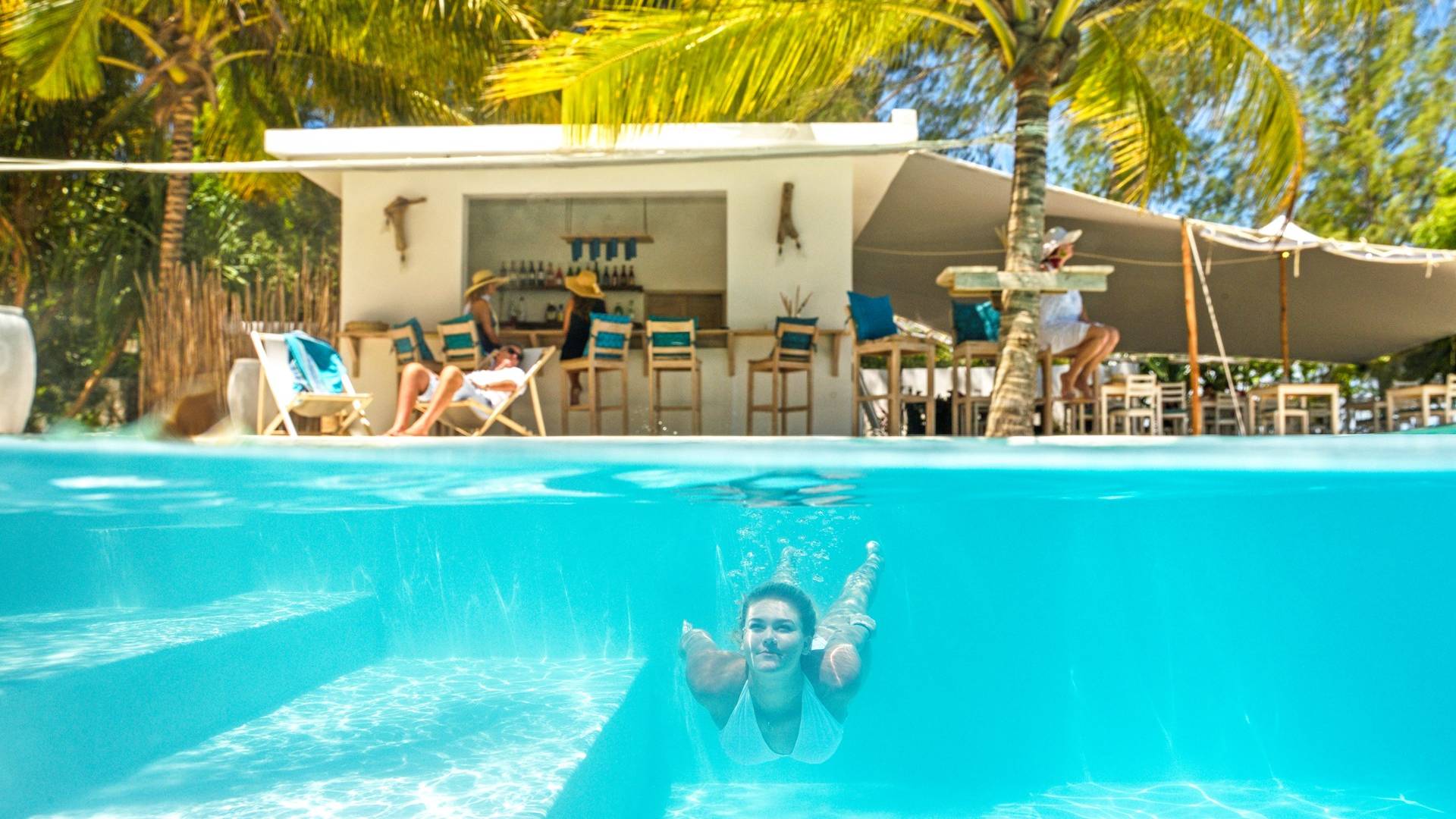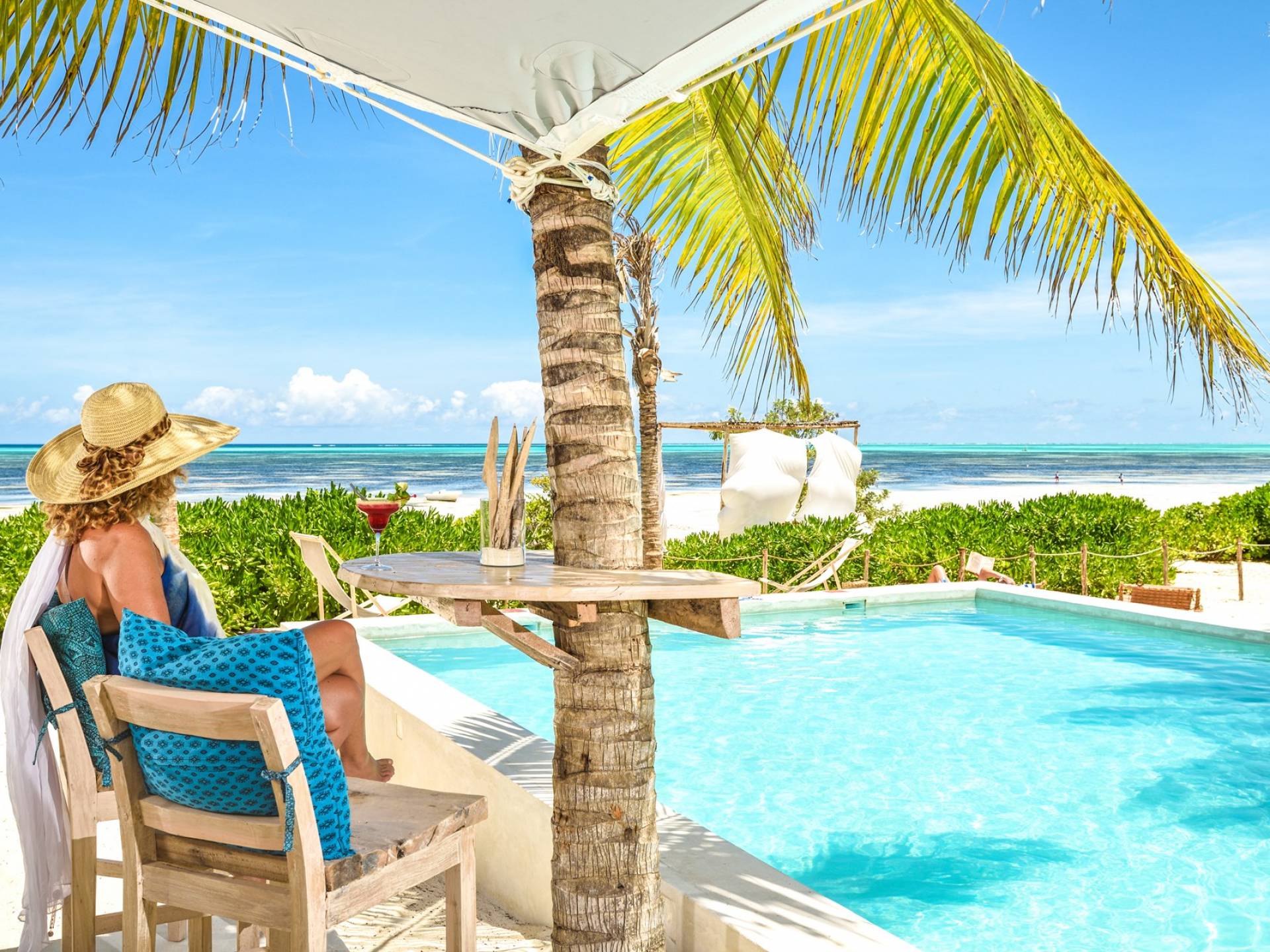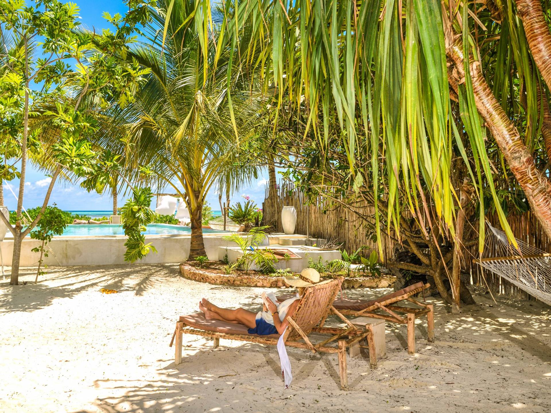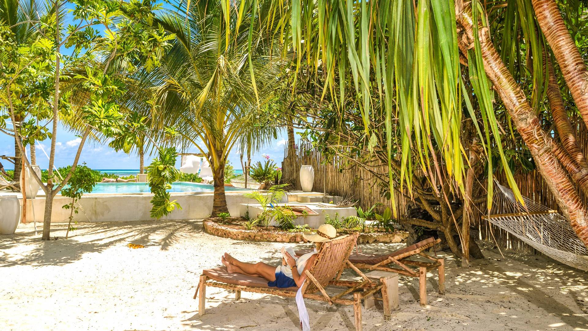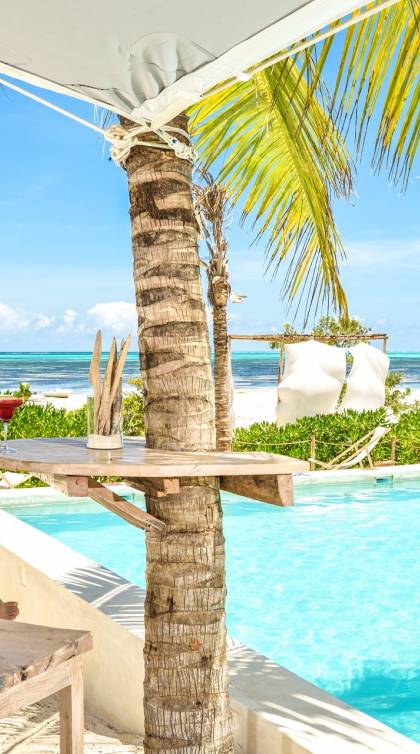 Jambiani possède une belle plage de 7 km de long avec des palmiers qui se balancent. Contrairement à d'autres plages du nord, cette plage a du sable blanc poudreux et à peine des rochers ou des oursins. La barrière de corail se trouve à quelques kilomètres, avec un magnifique lagon de cristal turquoise entre les deux. Le grand lagon aux eaux peu profondes est idéal pour la pataugeoire, la plongée en apnée et la plongée et offre une vue exceptionnelle sur la mer. Grâce à ses vagues latérales calmes, Jambiani est également un excellent endroit pour le vent ou le kitesurf. C'est agréable de plonger dans l'océan Indien, et à marée basse, vous pouvez vous promener sur le rivage.