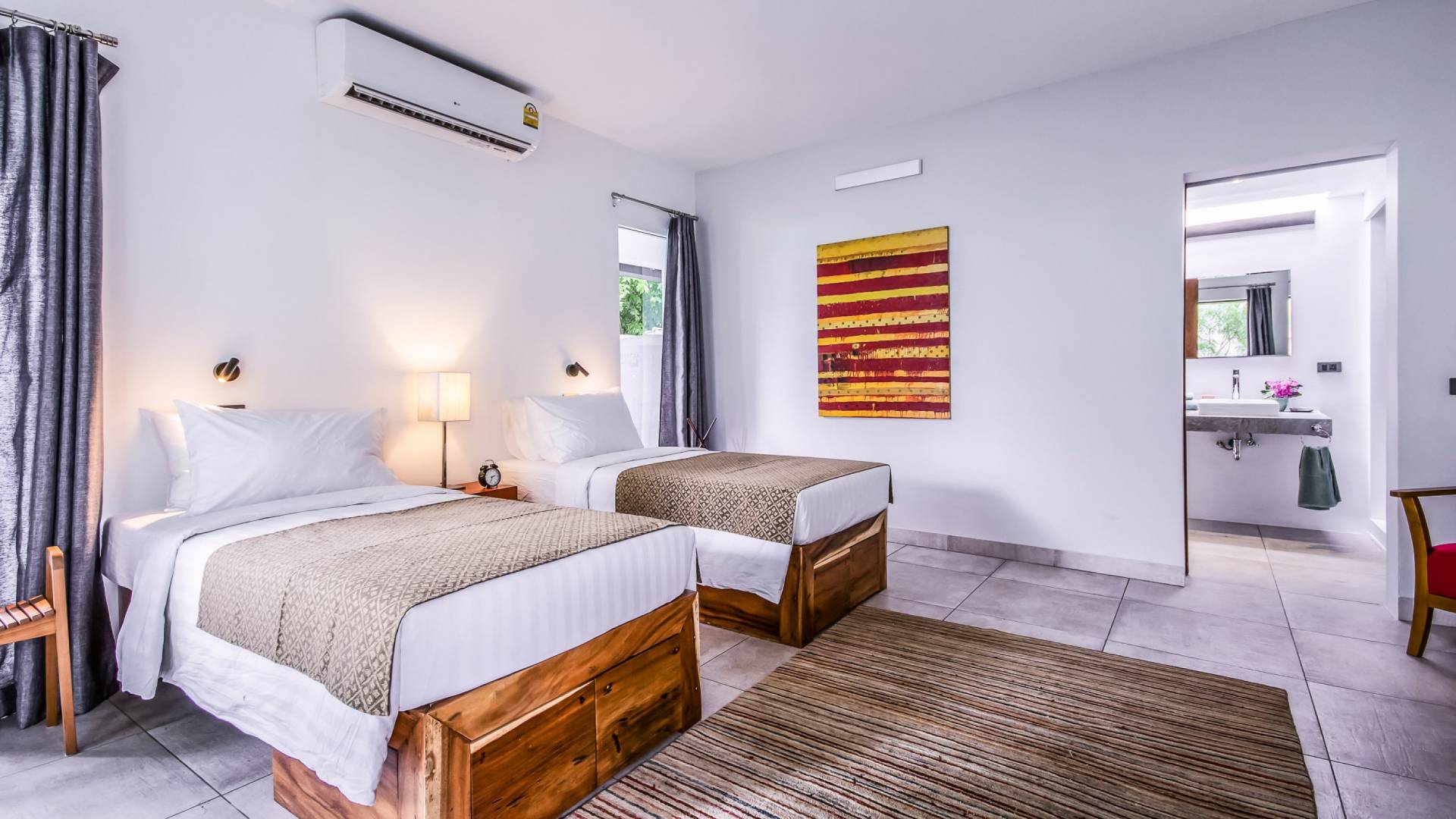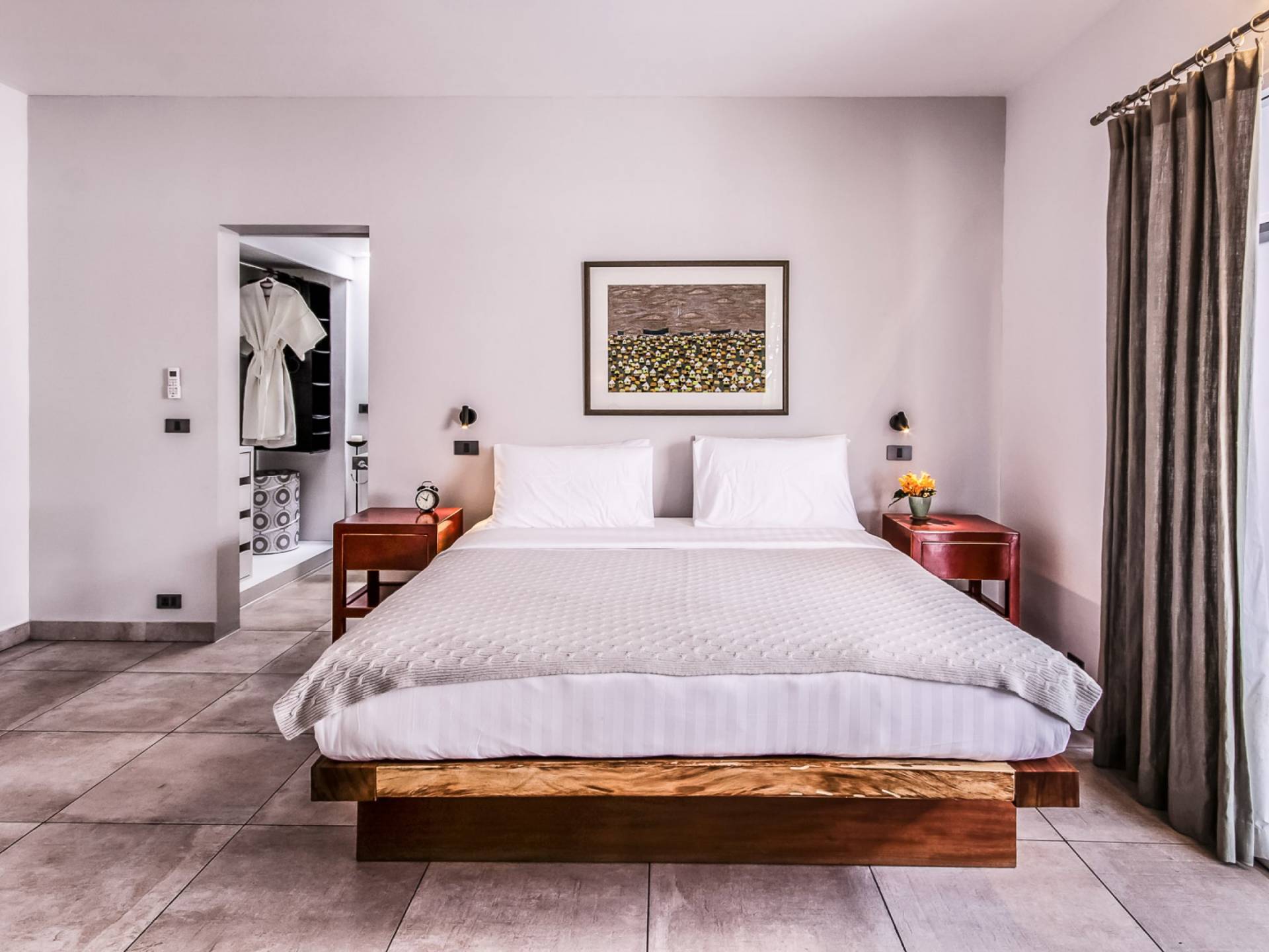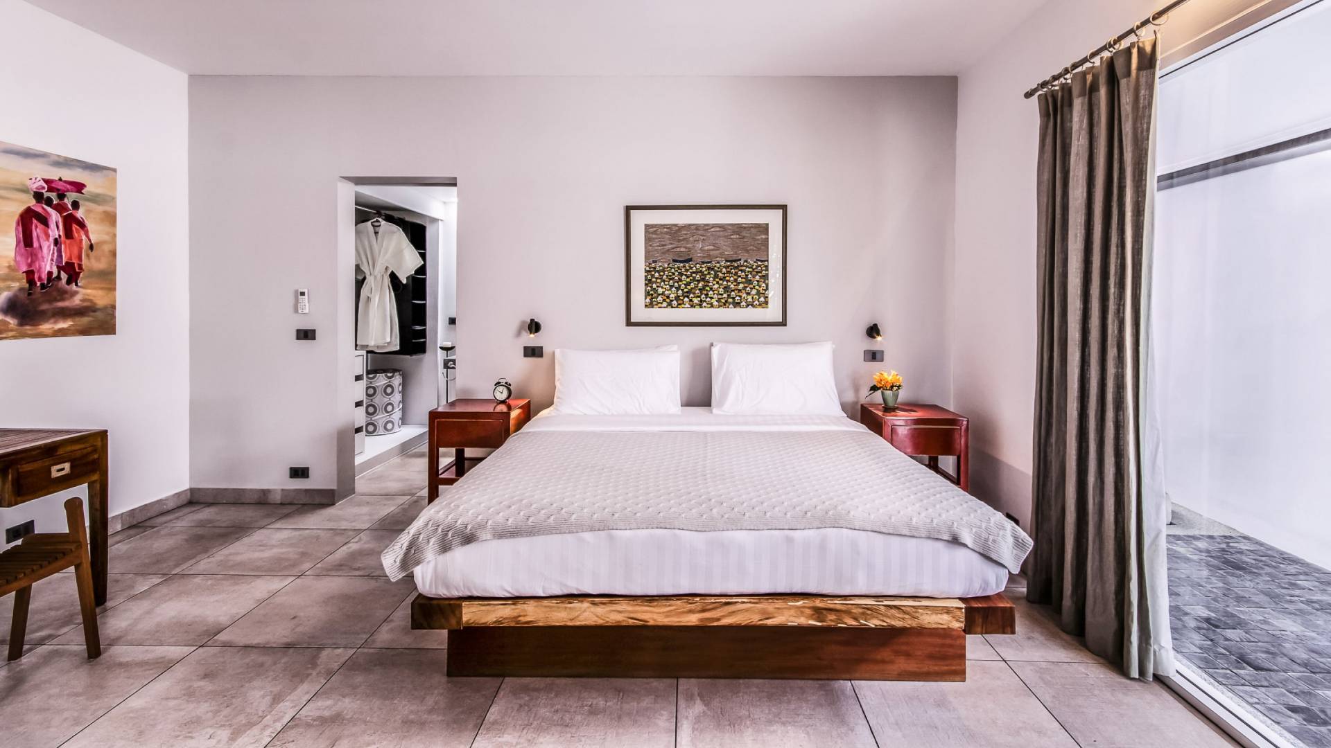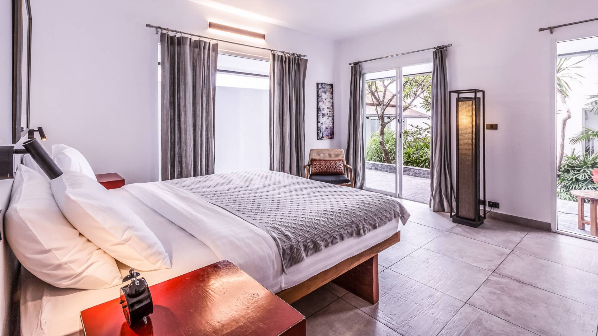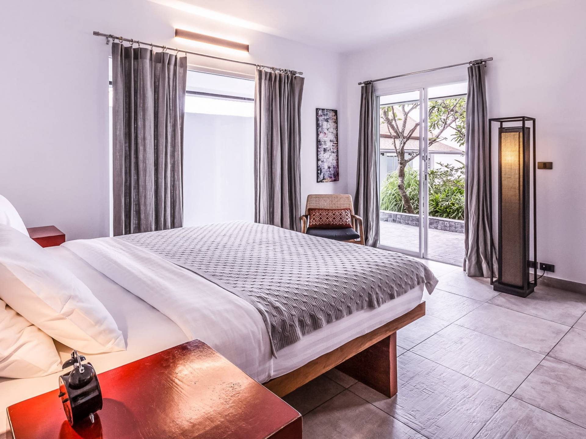 Situés juste derrière le pavillon de la chambre principale se trouvent les chambres deux et trois. Mitoyennes dans un même pavillon, ces chambres sont identiques à l'exception des configurations de literie ; un jumeau (2 lits simples) et un lit double (1 lit king). Chaque chambre a sa propre télévision avec satellite et DVD/CD, une salle de bain avec douche à l'italienne et beaucoup d'espace de rangement. La chambre avec lit king-size bénéficie d'une vue spectaculaire sur le jardin avec ses œuvres d'art intéressantes jusqu'à la mer au-delà.