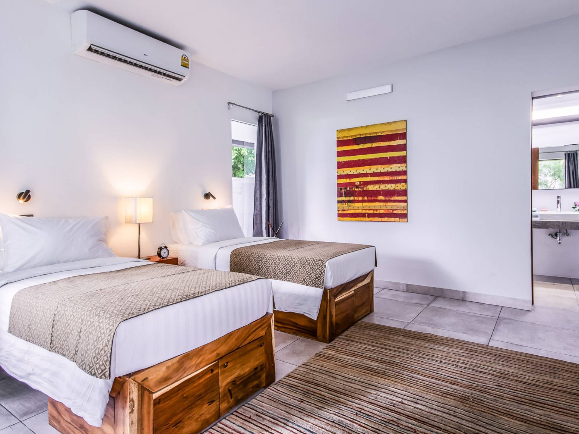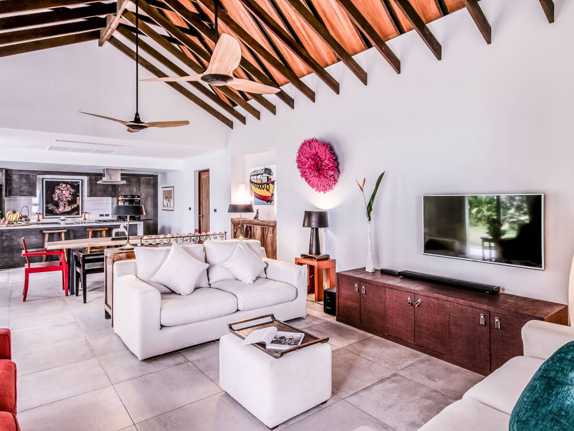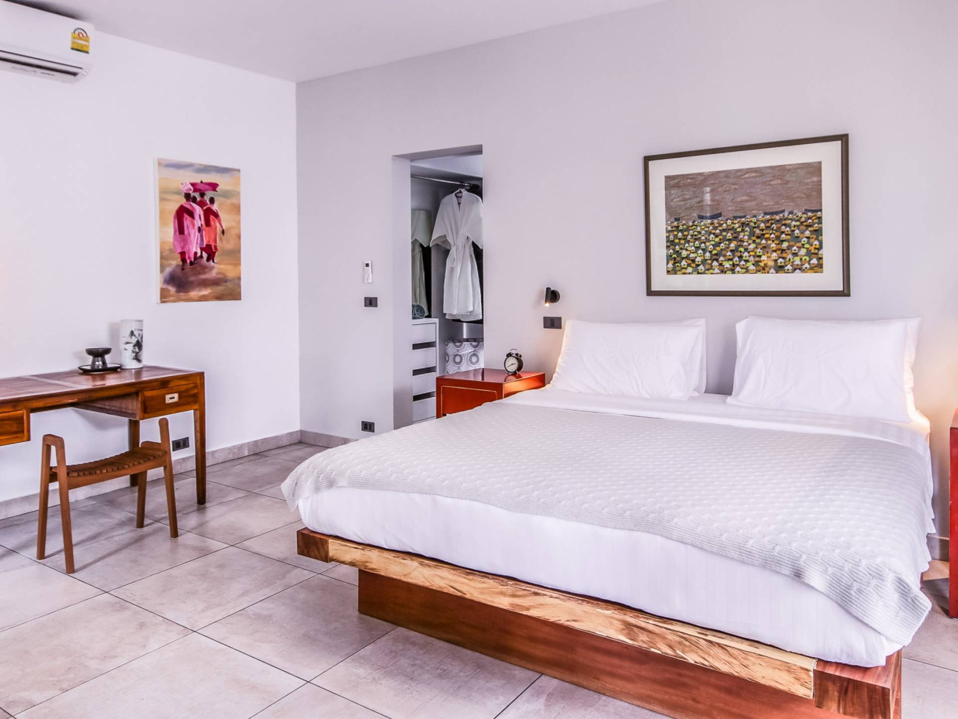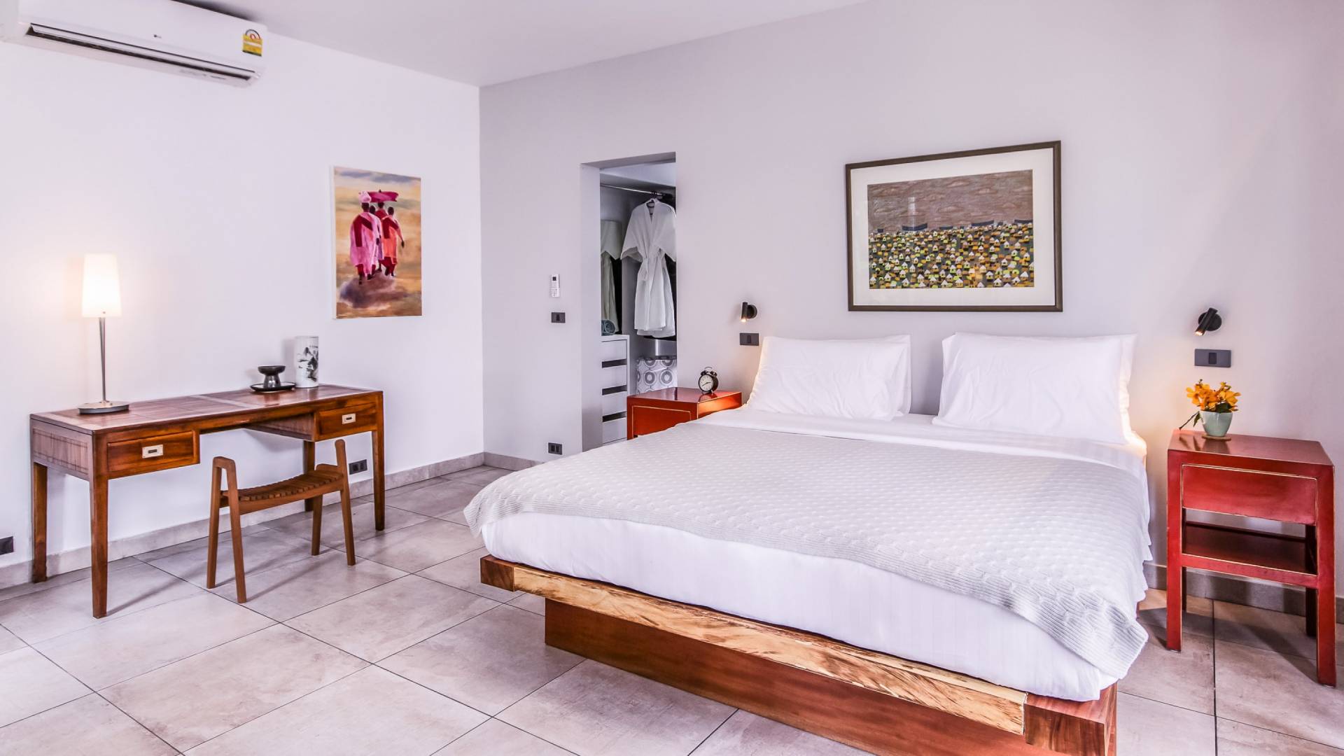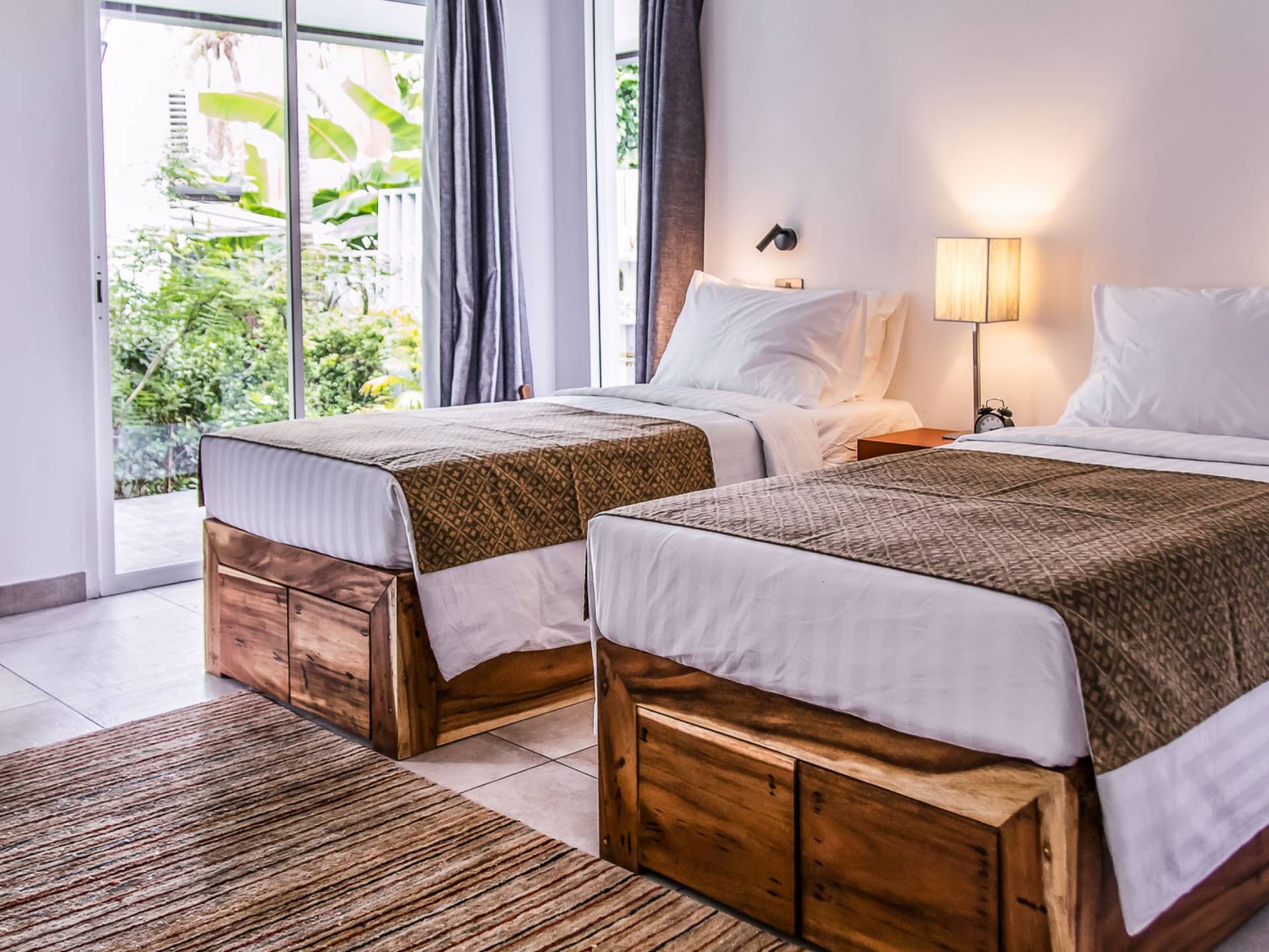 Situés juste derrière le pavillon de la chambre principale se trouvent les chambres deux et trois. Mitoyennes dans un même pavillon, ces chambres sont identiques à l'exception des configurations de literie ; un jumeau (2 lits simples) et un lit double (1 lit king). Chaque chambre a sa propre télévision avec satellite et DVD/CD, une salle de bain avec douche à l'italienne et beaucoup d'espace de rangement. La chambre avec lit king-size bénéficie d'une vue spectaculaire sur le jardin avec ses œuvres d'art intéressantes jusqu'à la mer au-delà.