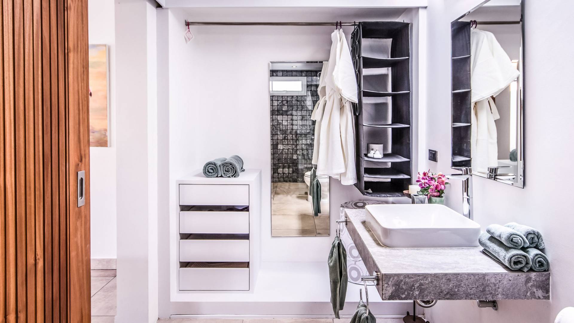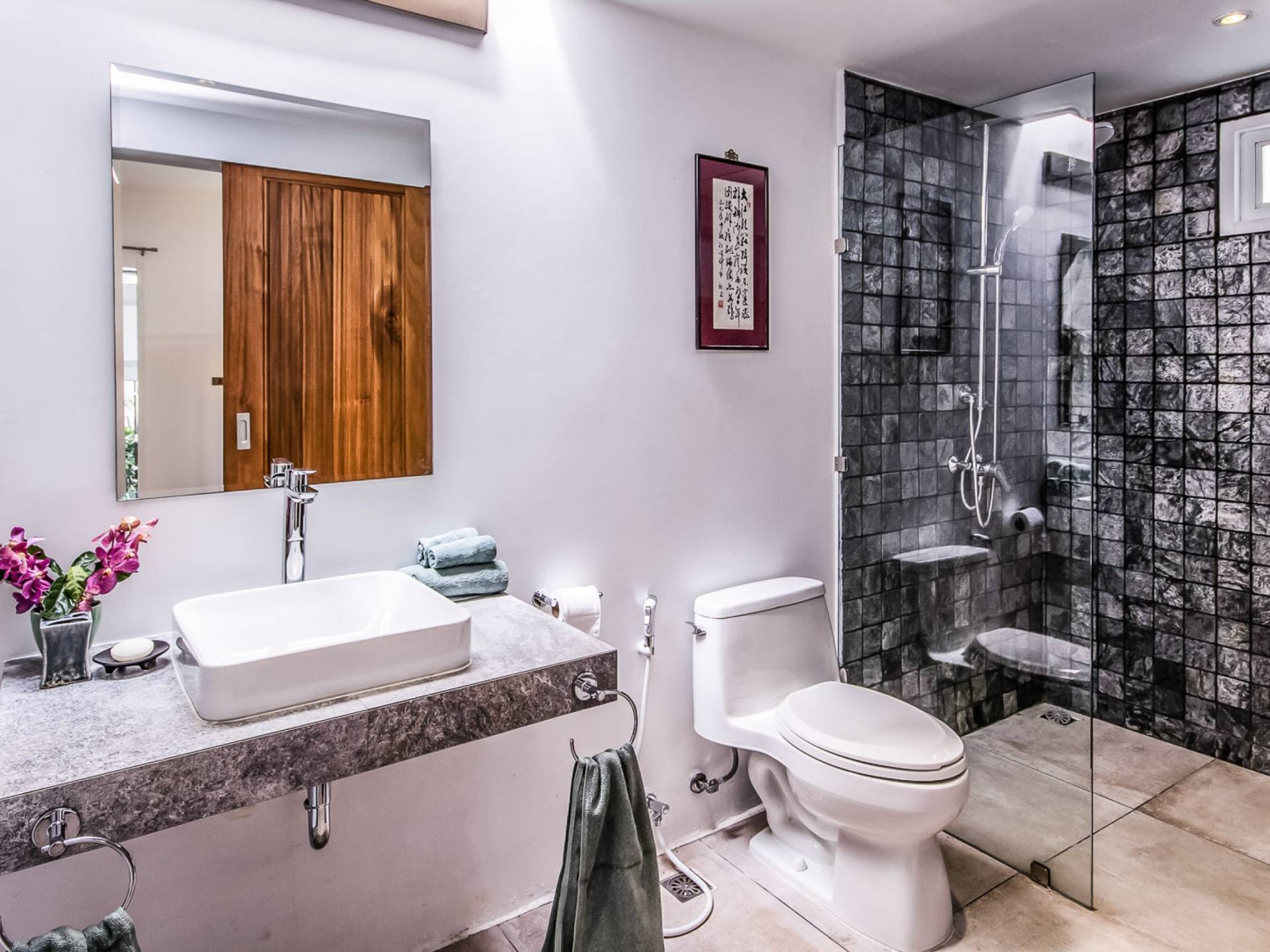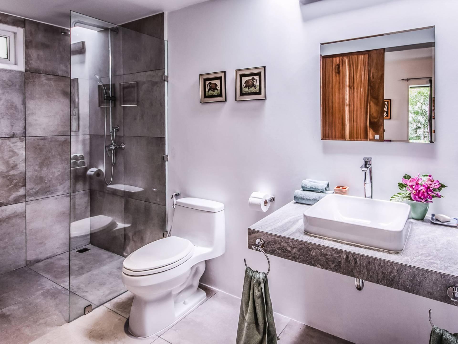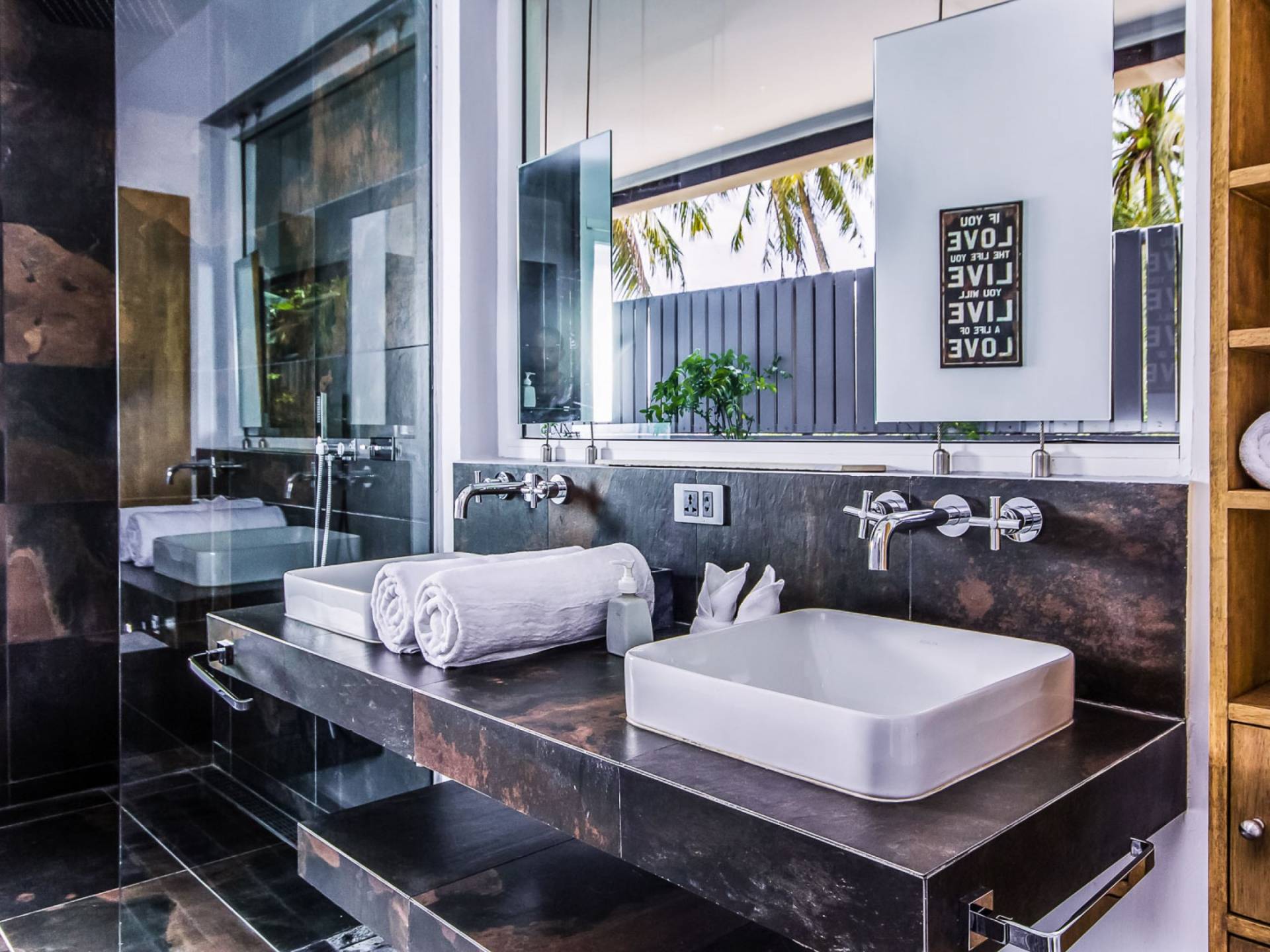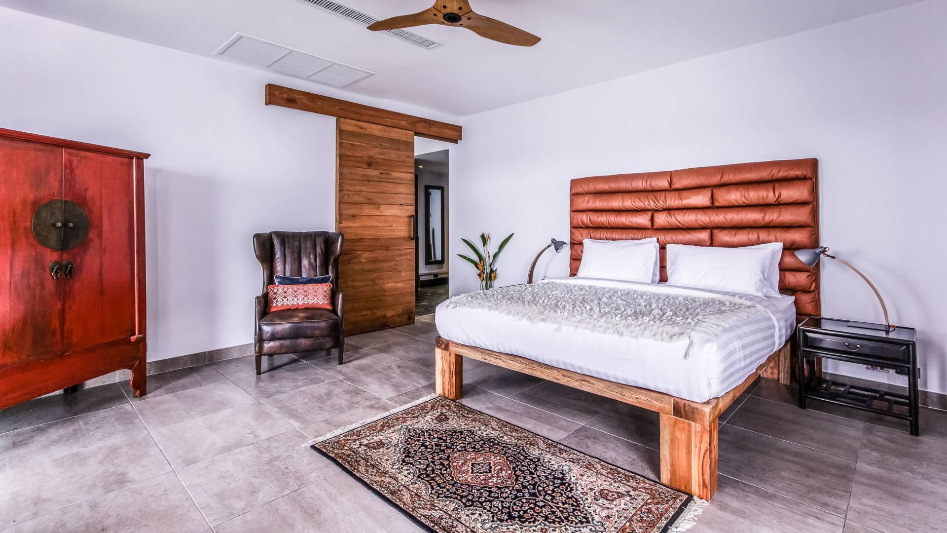 Situés juste derrière le pavillon de la chambre principale se trouvent les chambres deux et trois. Mitoyennes dans un même pavillon, ces chambres sont identiques à l'exception des configurations de literie ; un jumeau (2 lits simples) et un lit double (1 lit king). Chaque chambre a sa propre télévision avec satellite et DVD/CD, une salle de bain avec douche à l'italienne et beaucoup d'espace de rangement. La chambre avec lit king-size bénéficie d'une vue spectaculaire sur le jardin avec ses œuvres d'art intéressantes jusqu'à la mer au-delà.