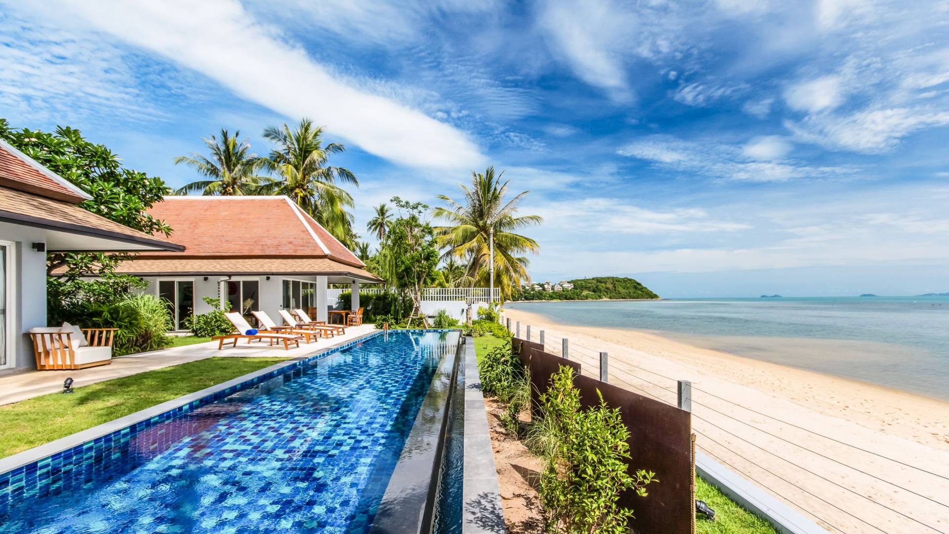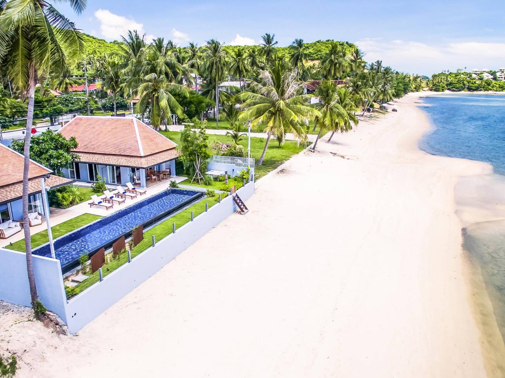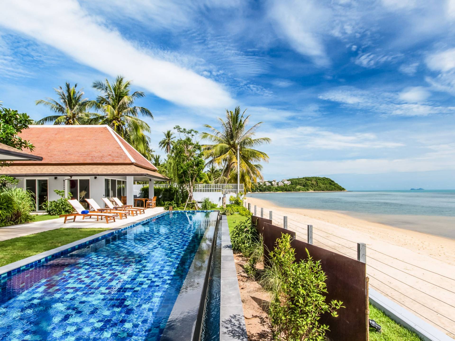 Baan Dalah Samui se trouve au bord de la plage sur la côte nord-est de Samui avec une vue imprenable sur la mer vers l'île voisine de Koh Phan Ngan ainsi que sur la célèbre statue du Grand Bouddha de l'île tandis que les eaux chaudes du golfe de Thaïlande sont sur votre seuil de porte. La Villa propose 3 chambres spacieuses dans un environnement fortifié et tout en offrant de l'intimité, elle offre la commodité des restaurants locaux et des divertissements à proximité, le village de pêcheurs étant à seulement 5 minutes en voiture tandis que la plage plus commerciale de Chaweng est à 15 minutes.