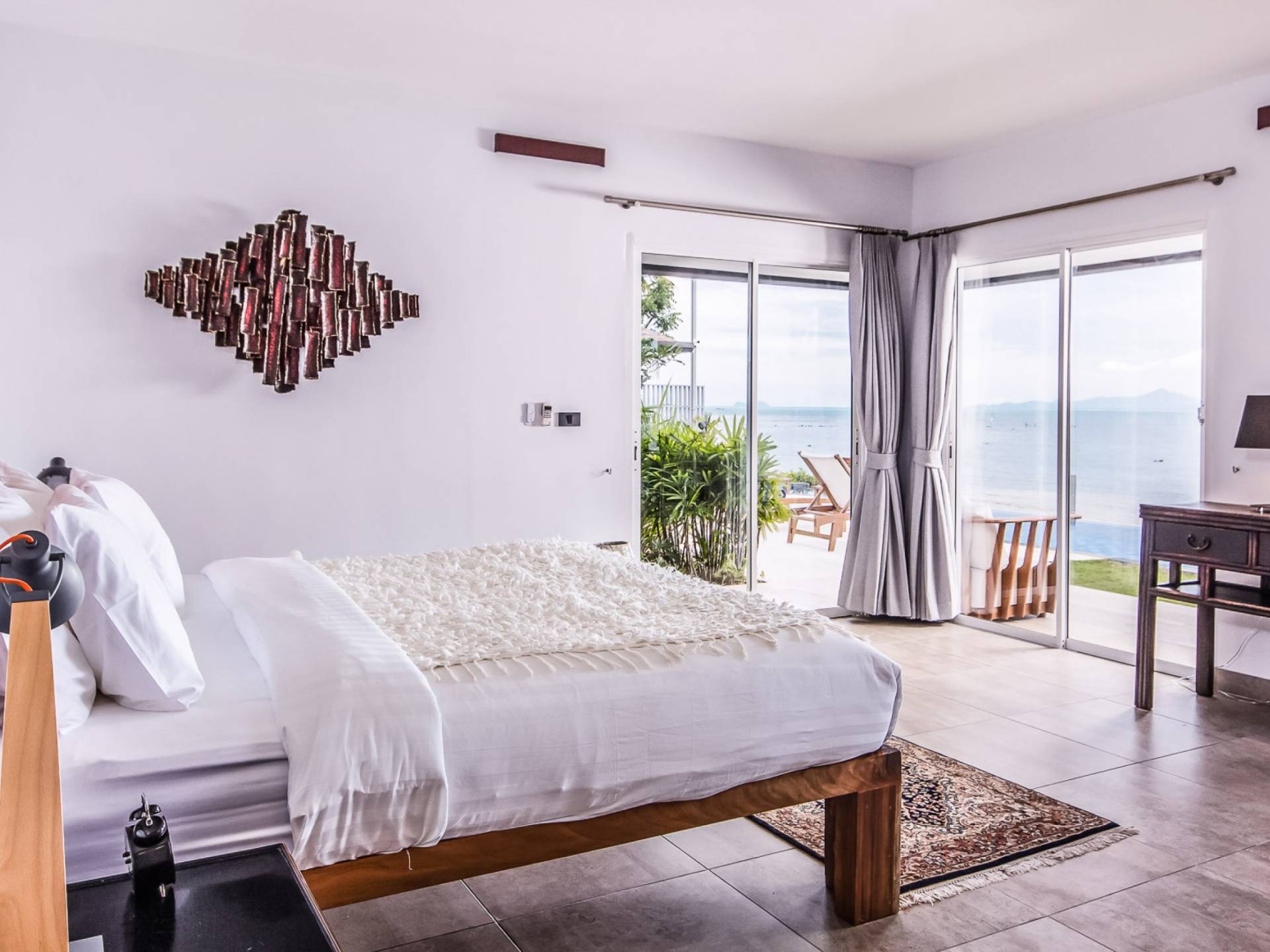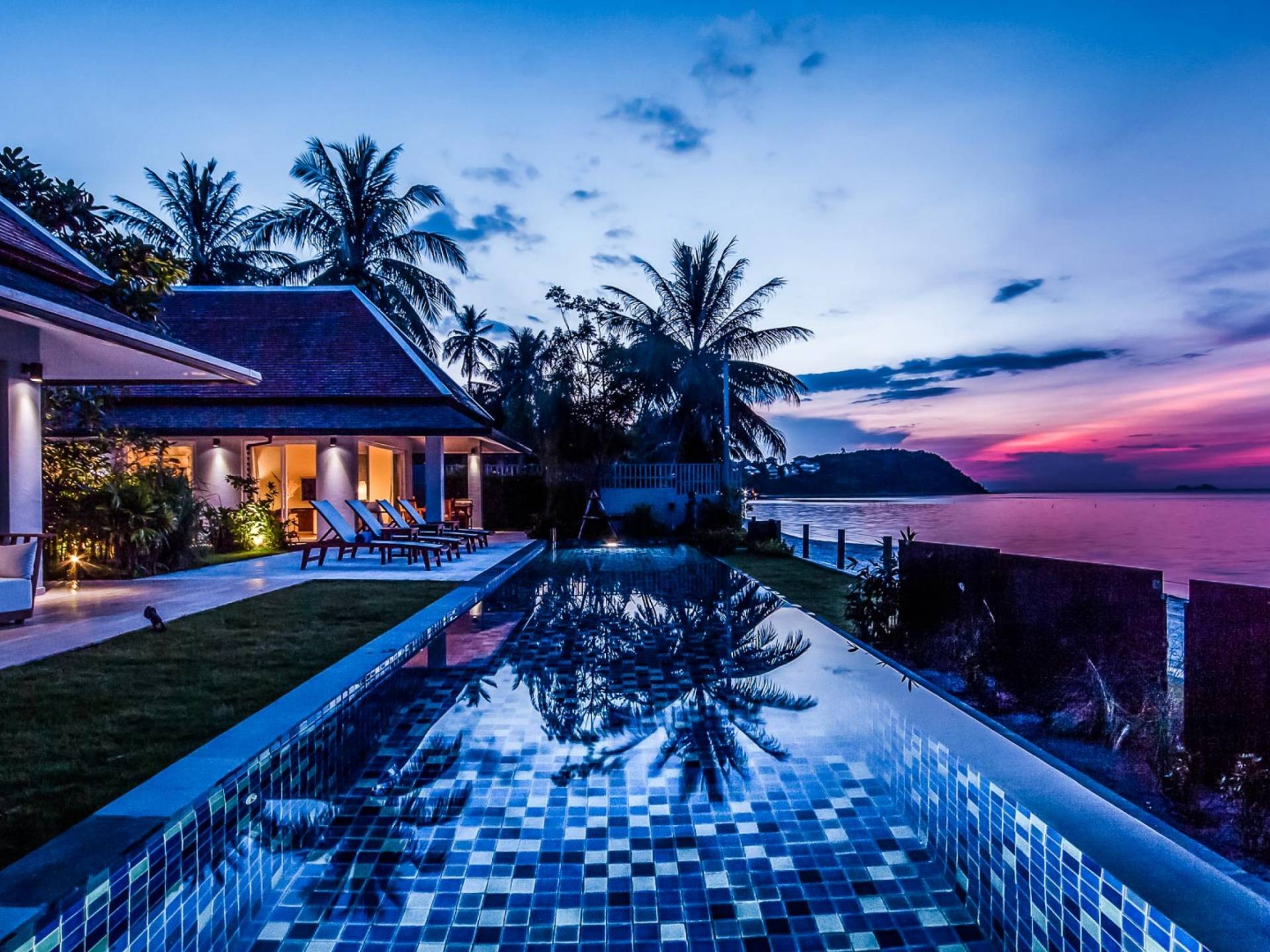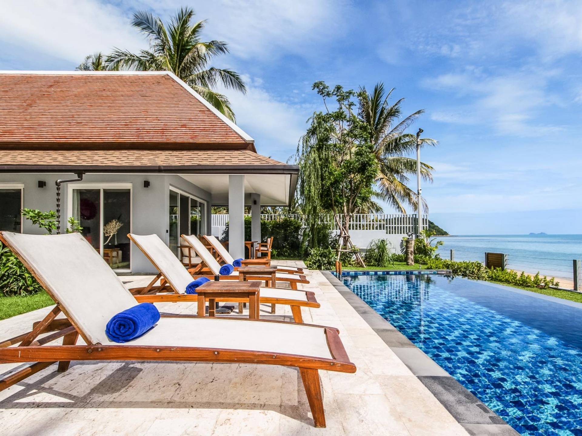 Baan Dalah Samui se trouve au bord de la plage sur la côte nord-est de Samui avec une vue imprenable sur la mer vers l'île voisine de Koh Phan Ngan ainsi que sur la célèbre statue du Grand Bouddha de l'île tandis que les eaux chaudes du golfe de Thaïlande sont sur votre seuil de porte. La Villa propose 3 chambres spacieuses dans un environnement fortifié et tout en offrant de l'intimité, elle offre la commodité des restaurants locaux et des divertissements à proximité, le village de pêcheurs étant à seulement 5 minutes en voiture tandis que la plage plus commerciale de Chaweng est à 15 minutes.
