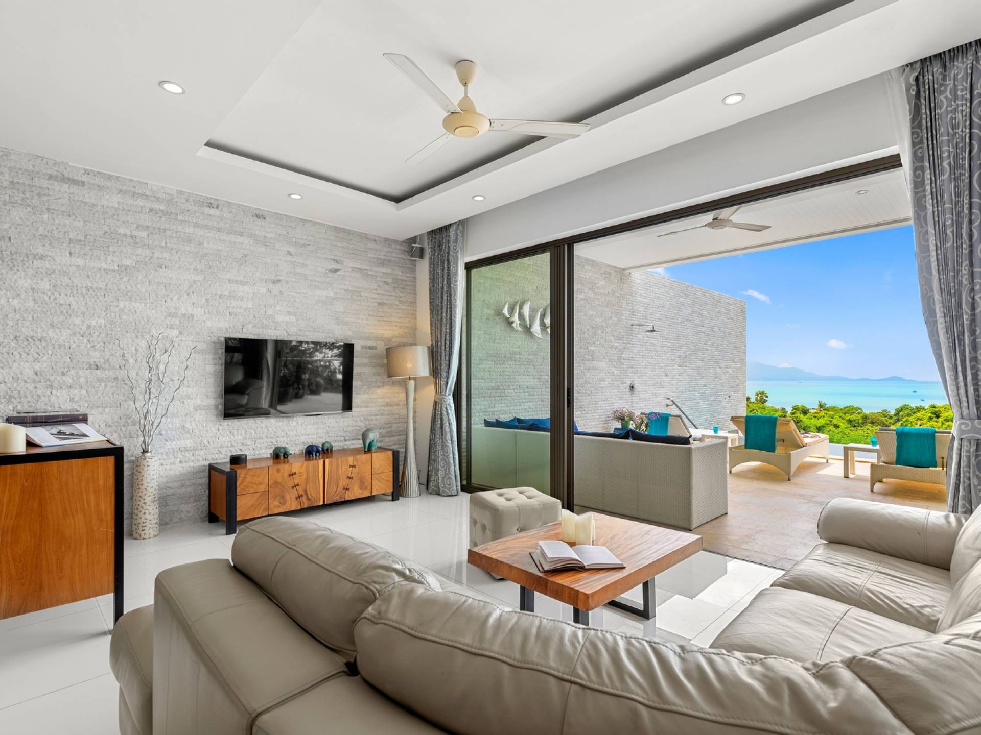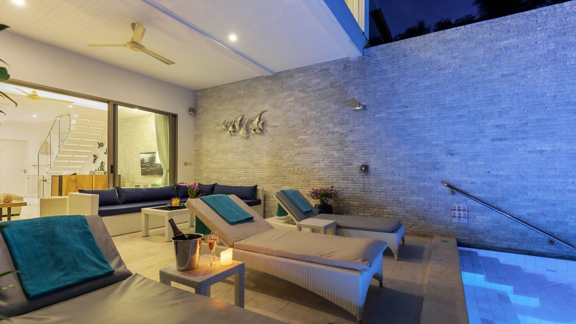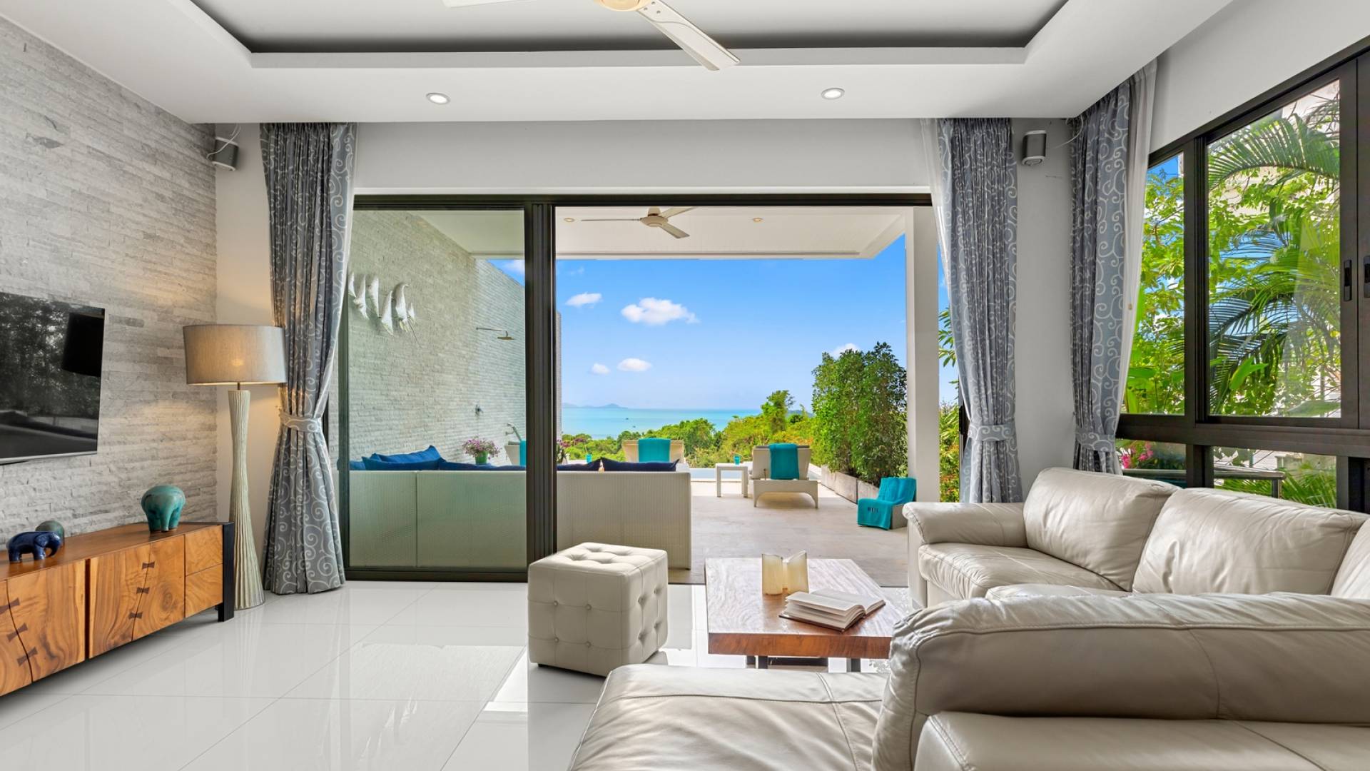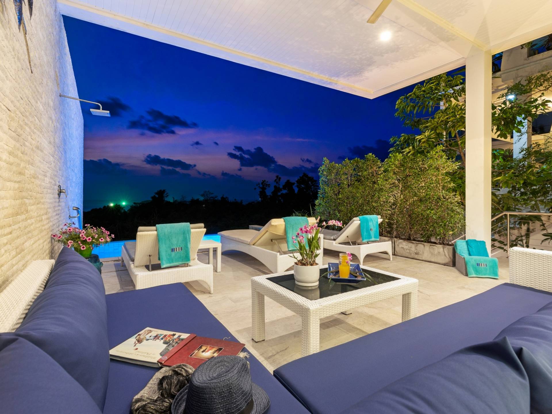 Shades of Blue, une villa contemporaine magnifiquement aménagée pouvant accueillir confortablement huit personnes, est située dans le quartier populaire de Choeng Moen. Répartie sur trois niveaux, cette villa offre des équipements luxueux, la commodité, l'intimité et une vue imprenable sur la mer ininterrompue. Shades of Blue se trouve au bout d'une petite ruelle calme, loin de l'agitation des zones les plus peuplées de Samui. En arrivant à la villa, vous trouverez un abri d'auto tout-terrain avec un escalier en pierre blanche menant à l'entrée du rez-de-chaussée.