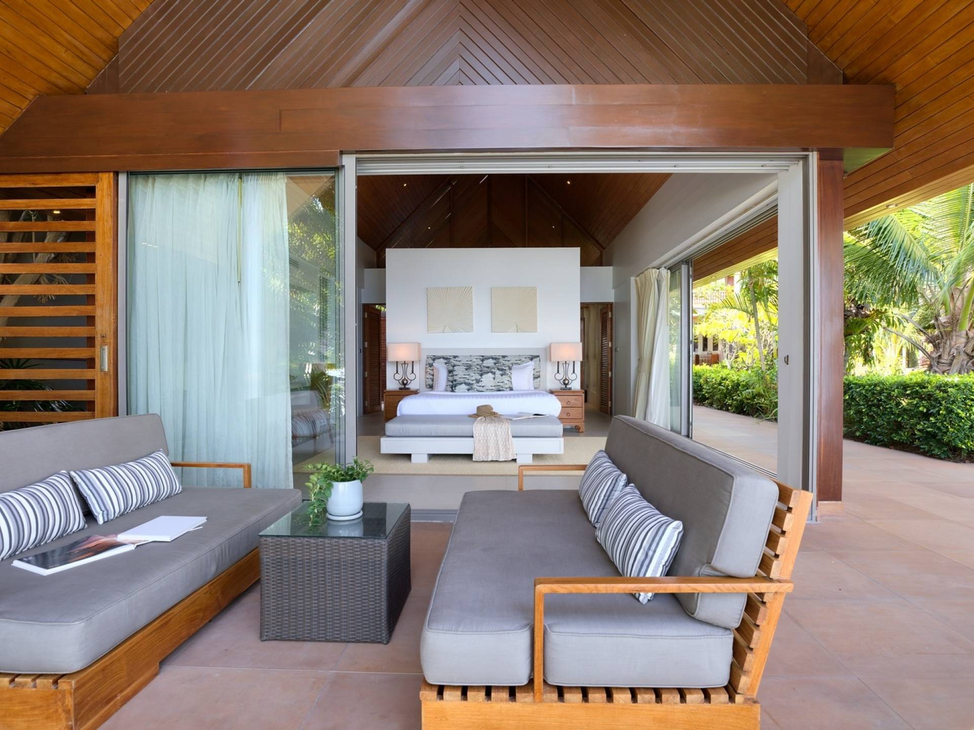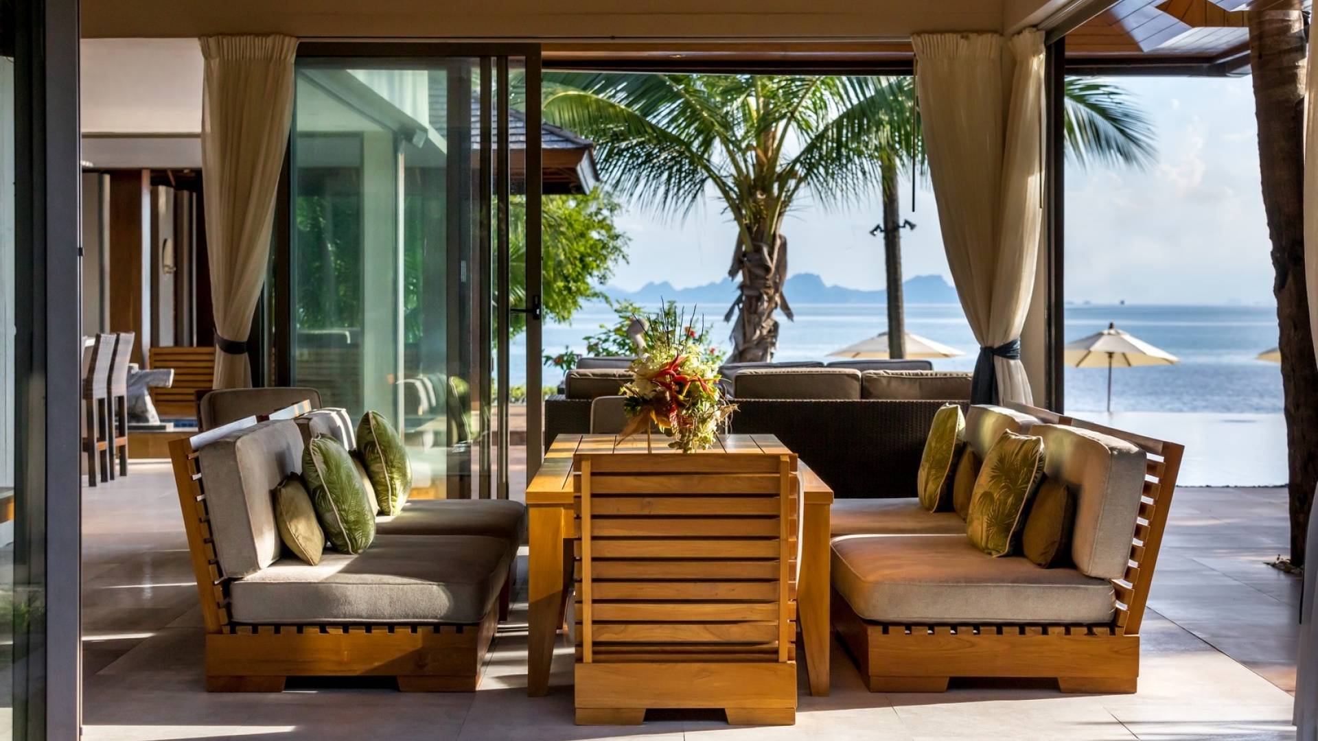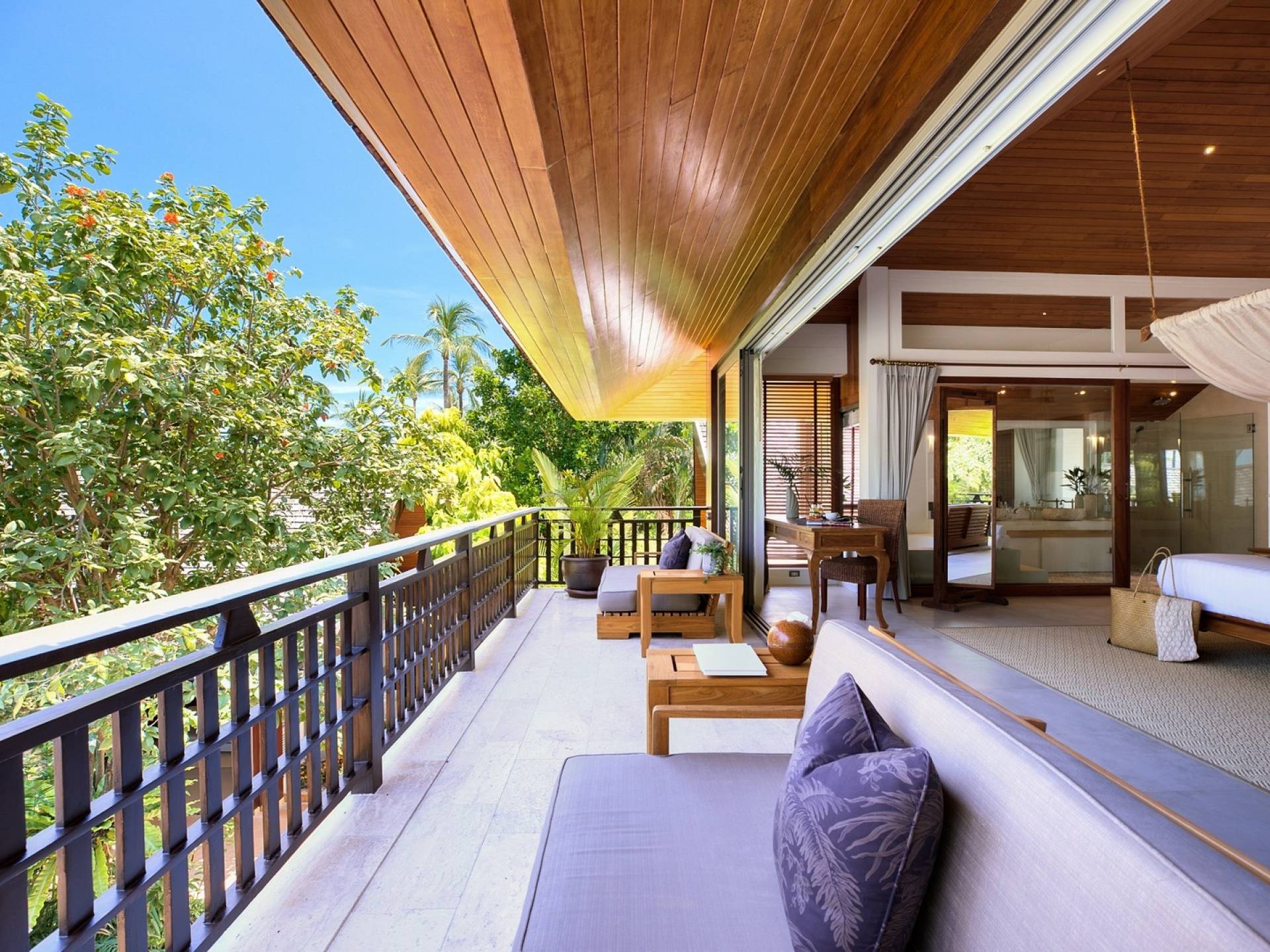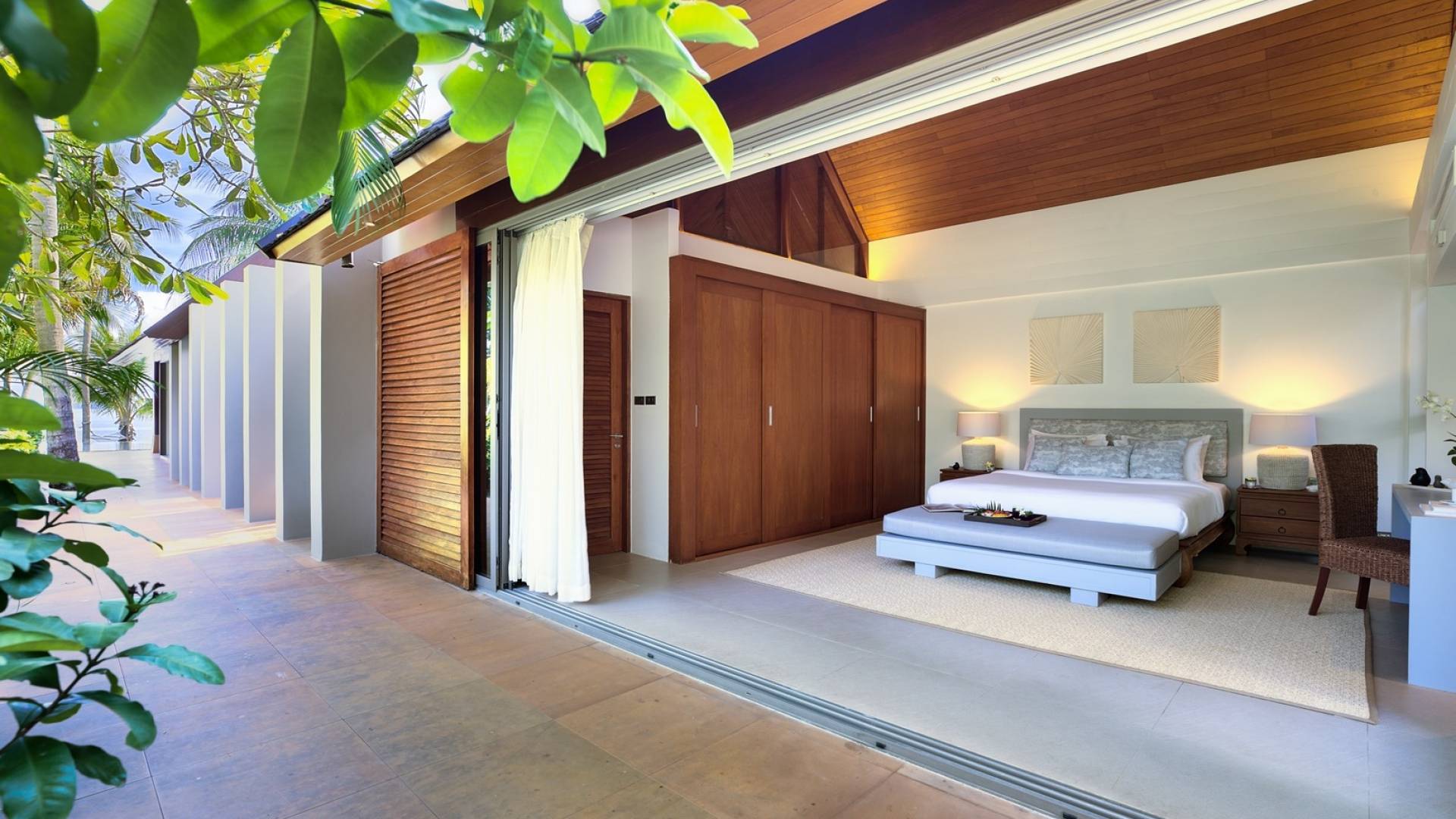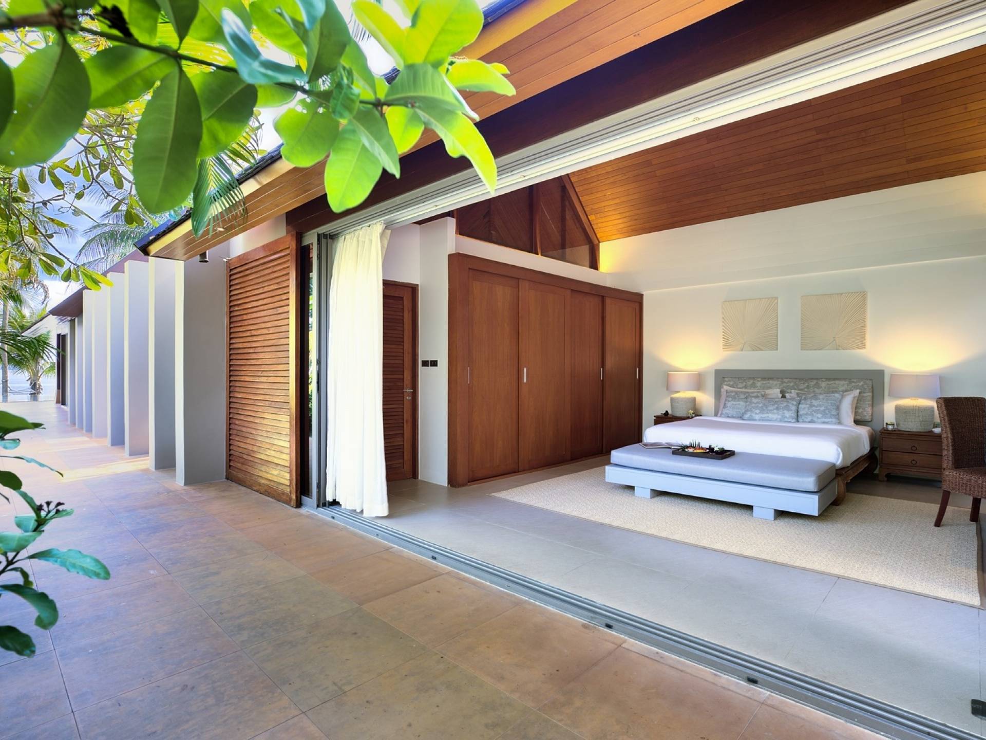 Le couchage a été aménagé pour accueillir les enfants jusqu'au bout. La grande suite parentale accueille 2 lits simples dans une alcôve avec portes coulissantes, la salle de jeux pour enfants peut être aménagée avec 3 lits simples et une salle de bain attenante et 2 des chambres parentales ont une mezzanine au-dessus de leur salle de bain attenante accessible via un échelle pliante (déconseillée aux enfants de moins de 12 ans), enfin, la chambre principale avant accueille un lit d'appoint dans une alcôve au sein de la grande chambre. La vraie vie tropicale tire le meilleur parti des douces brises marines de Samui et du temps chaud. À Baan Kilee, les portes et les fenêtres spécialement conçues peuvent être rabattues, tandis que le monde naturel est également accueilli par le choix de bardeaux de cèdre pour les toits, qui aident la villa à se fondre subtilement dans son environnement. Une bande de pelouse en bord de plage fait face aux espaces de vie, formant une frontière naturelle entre la grande piscine, la plage et la mer.