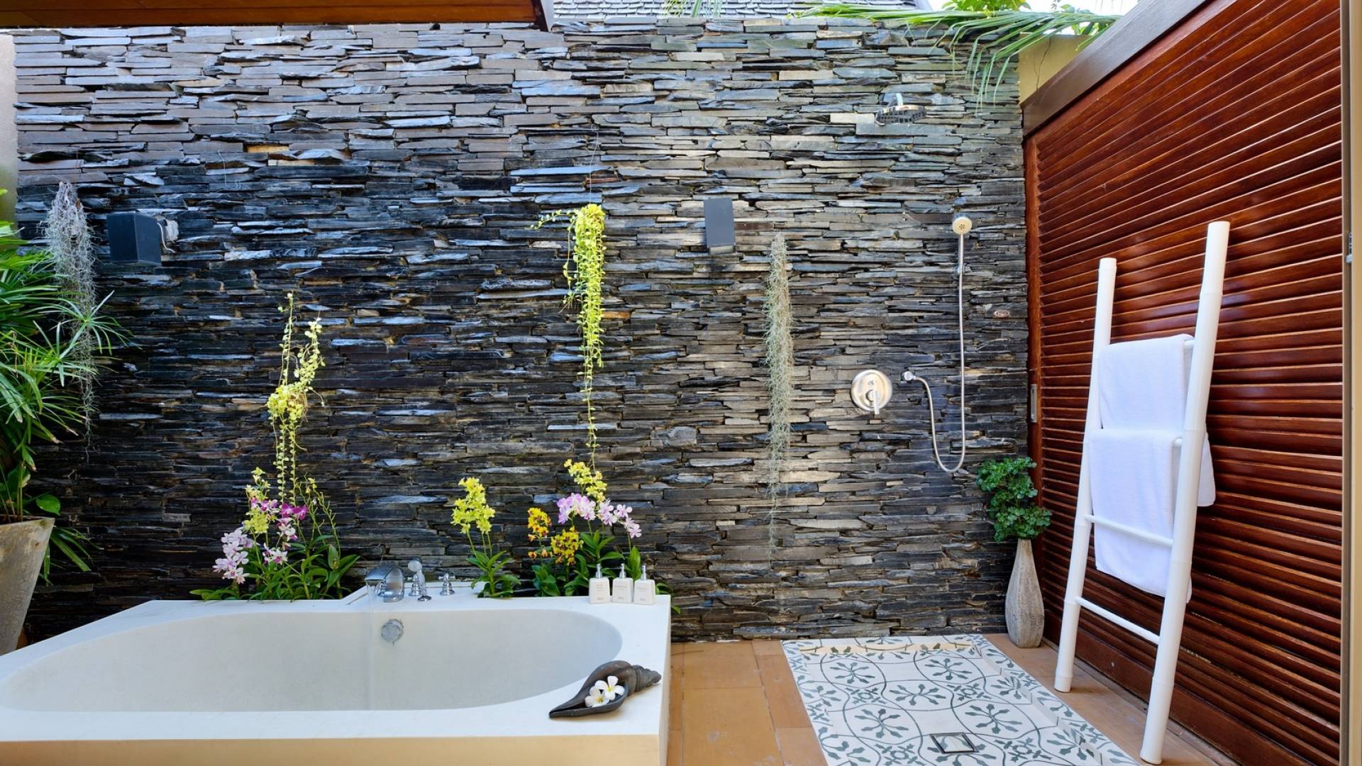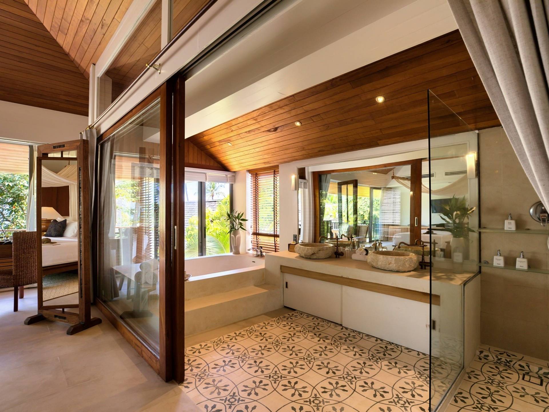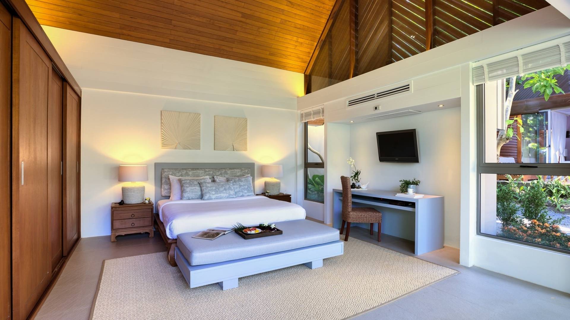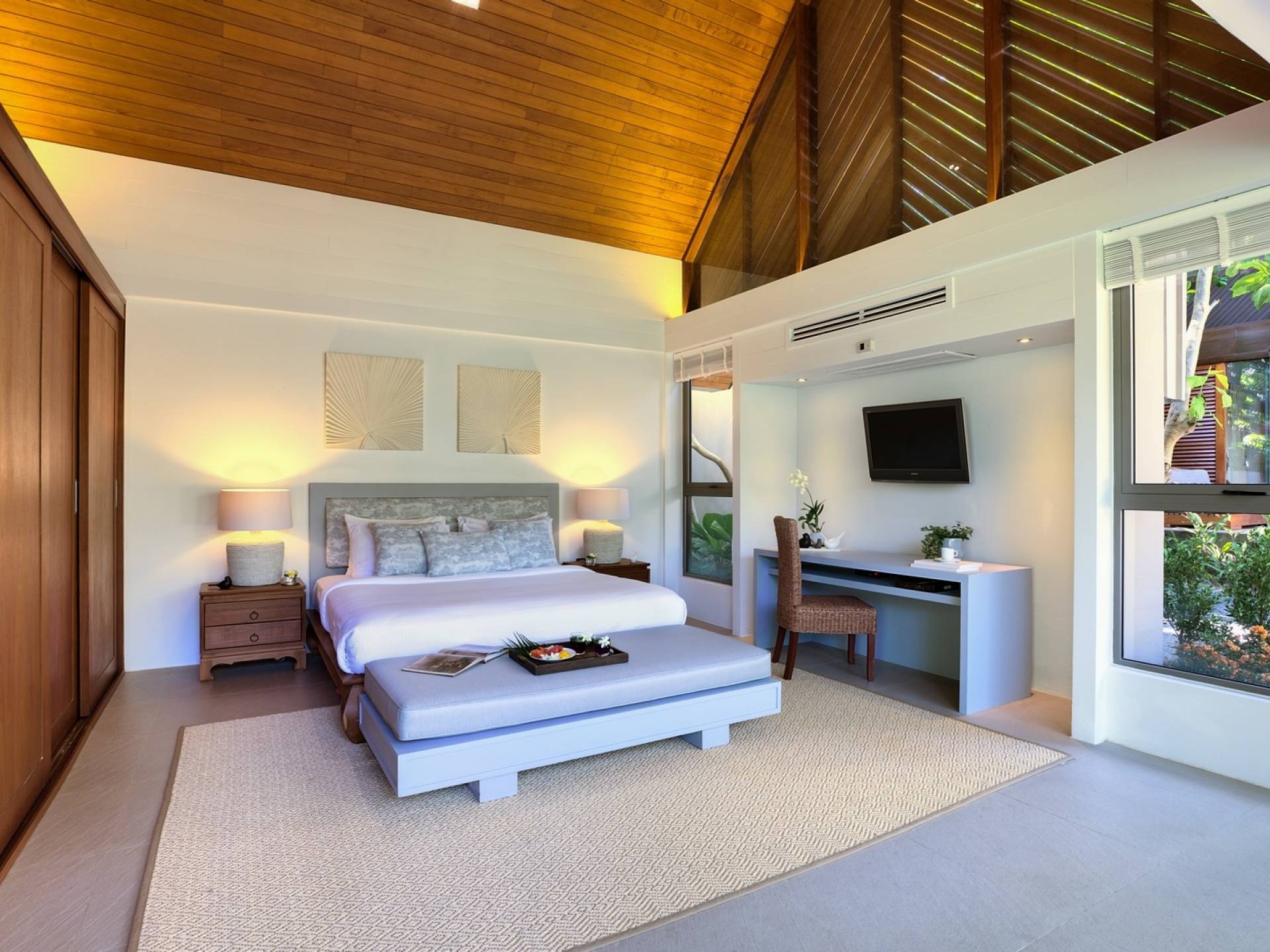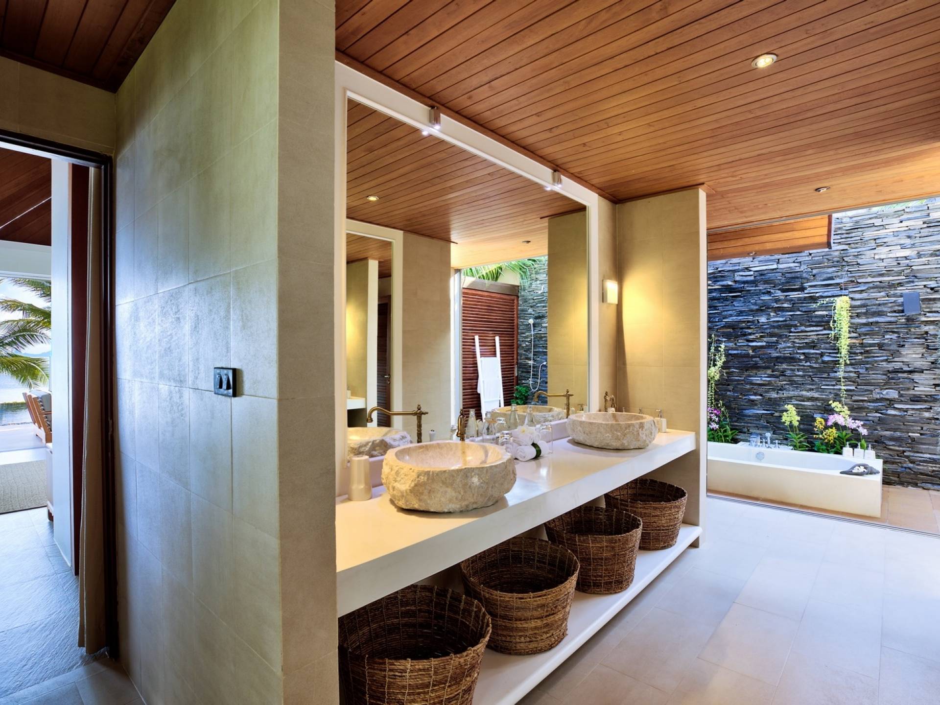 Le couchage a été aménagé pour accueillir les enfants jusqu'au bout. La grande suite parentale accueille 2 lits simples dans une alcôve avec portes coulissantes, la salle de jeux pour enfants peut être aménagée avec 3 lits simples et une salle de bain attenante et 2 des chambres parentales ont une mezzanine au-dessus de leur salle de bain attenante accessible via un échelle pliante (déconseillée aux enfants de moins de 12 ans), enfin, la chambre principale avant accueille un lit d'appoint dans une alcôve au sein de la grande chambre. La vraie vie tropicale tire le meilleur parti des douces brises marines de Samui et du temps chaud. À Baan Kilee, les portes et les fenêtres spécialement conçues peuvent être rabattues, tandis que le monde naturel est également accueilli par le choix de bardeaux de cèdre pour les toits, qui aident la villa à se fondre subtilement dans son environnement. Une bande de pelouse en bord de plage fait face aux espaces de vie, formant une frontière naturelle entre la grande piscine, la plage et la mer.