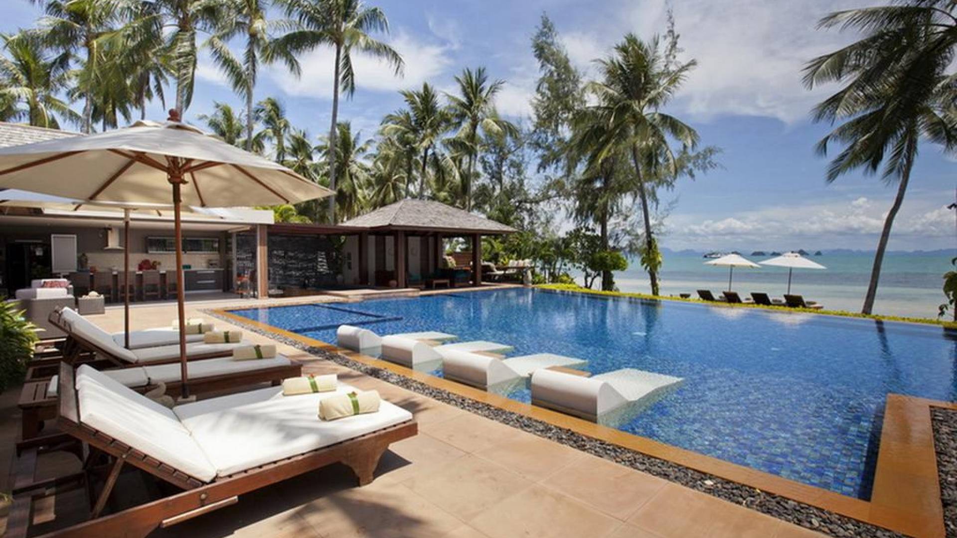Toutes les chambres comprennent la climatisation, la télévision par satellite, des connexions DVD et IPOD, tandis que pour les vrais mélomanes et cinéphiles, la salle informatique/audiovisuelle dispose d'un écran de 2 mètres, d'un son surround et de bibliothèques de vidéos/CD, une fabuleuse alternative au soleil de midi. Certaines caractéristiques spéciales ajoutent considérablement à l'attrait pour ceux qui choisissent de se faire plaisir à Baan Kilee. À côté de la piscine principale, les clients peuvent siroter des cocktails assis sur des tabourets enfoncés dans une piscine plus petite avec son propre bar et son écran de projection escamotable. C'est sûrement le seul endroit de Koh Samui où l'on peut regarder des films dans la piscine. Il y a aussi une fosse à barbecue de taille généreuse, ainsi que la grande cuisine double susmentionnée qui permet à plusieurs chefs de travailler simultanément et ainsi de préparer suffisamment de nourriture pour un banquet.