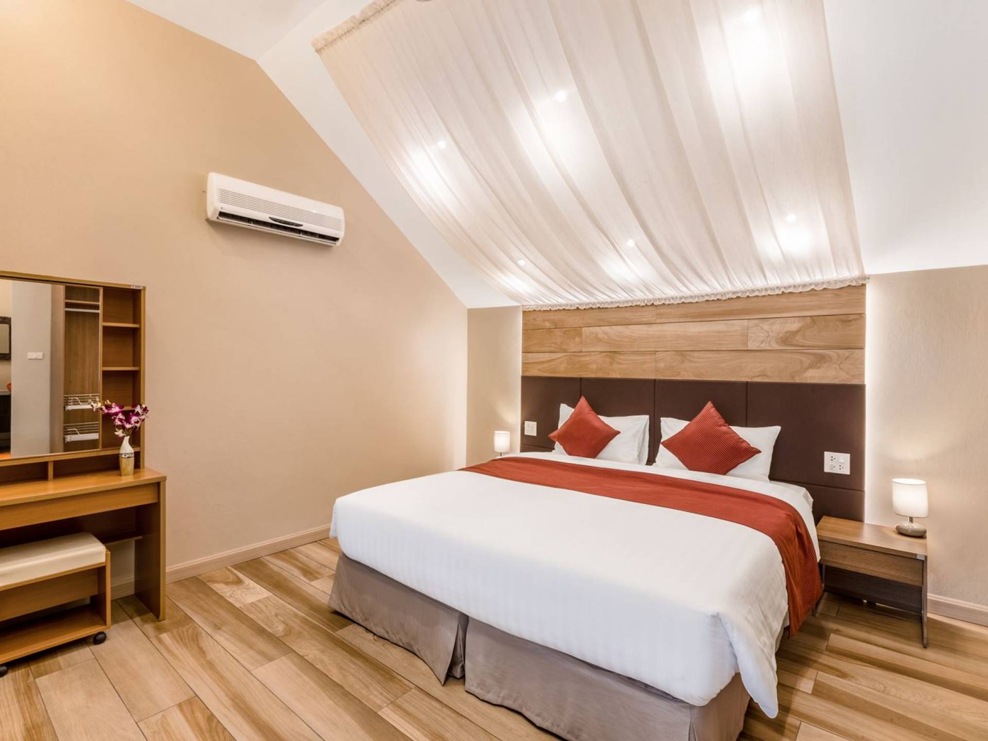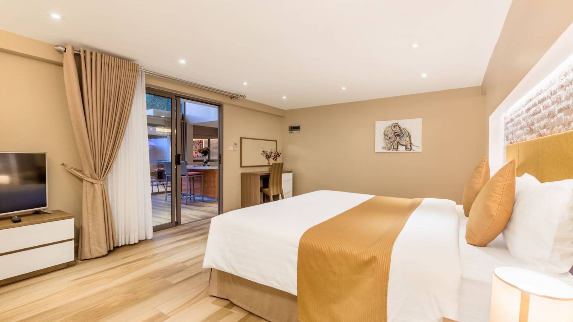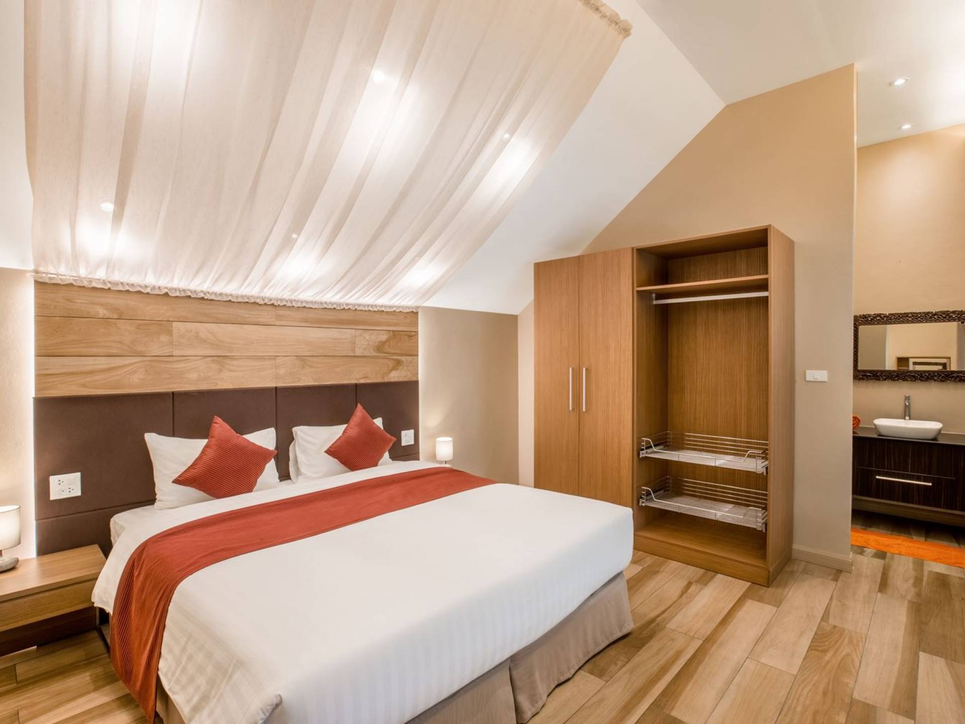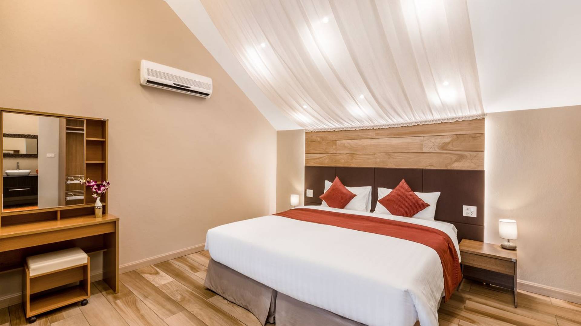 Cette confortable villa de 2 chambres peut accueillir confortablement 4 à 6 personnes. Après avoir passé la porte d'entrée, un chemin ombragé parmi les plantes tropicales vous mène à la villa. À côté de la piscine privée, il y a le salon extérieur qui comprend un canapé en forme de L avec une table basse, une table à manger et un barbecue. Au rez-de-chaussée, il y a une chambre #1 climatisée avec un lit double, TV, coffre-fort, armoire attenante et salle de douche attenante avec wc. La chambre n ° 2 est située au premier étage accessible par un escalier extérieur à l'arrière de la villa. Cette chambre dispose également d'un lit double, d'une salle de douche attenante avec wc et d'une armoire. Cette chambre est également équipée de la climatisation. Il y a des chaises longues et des parasols près de la piscine privée.