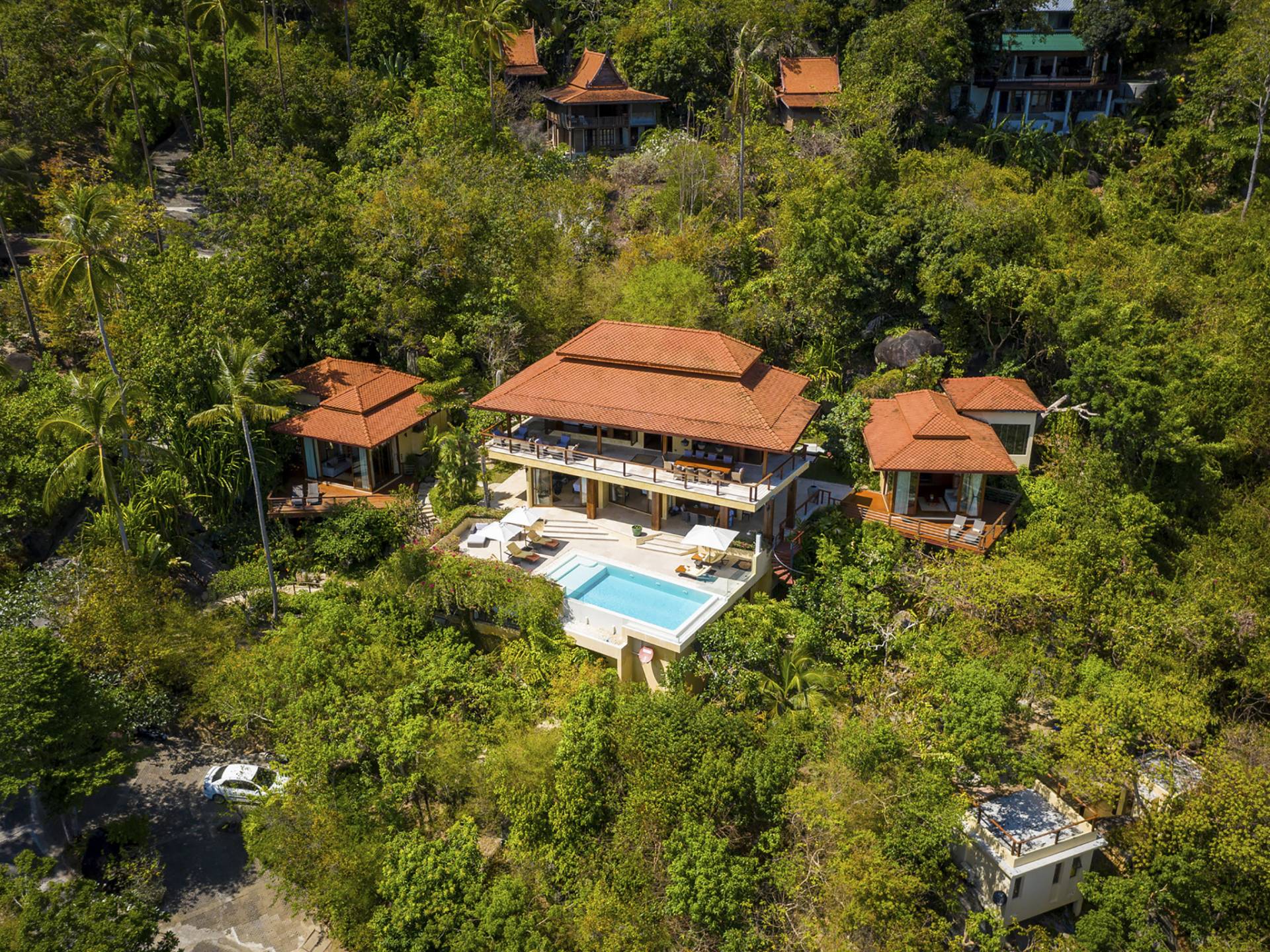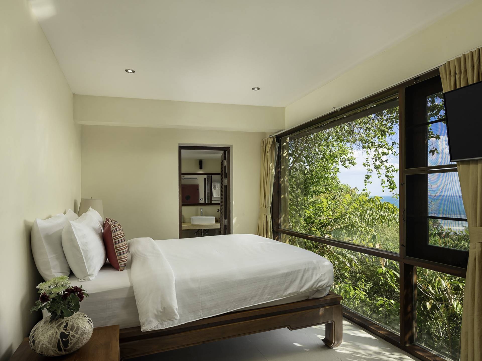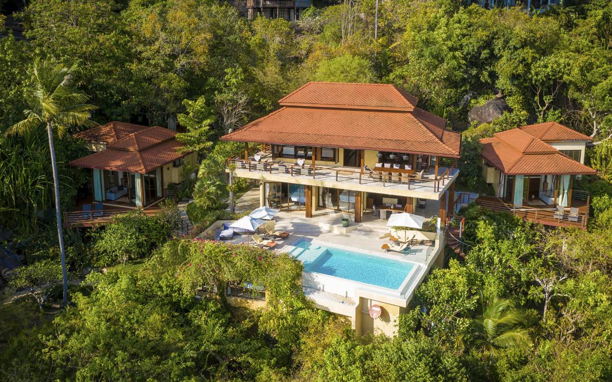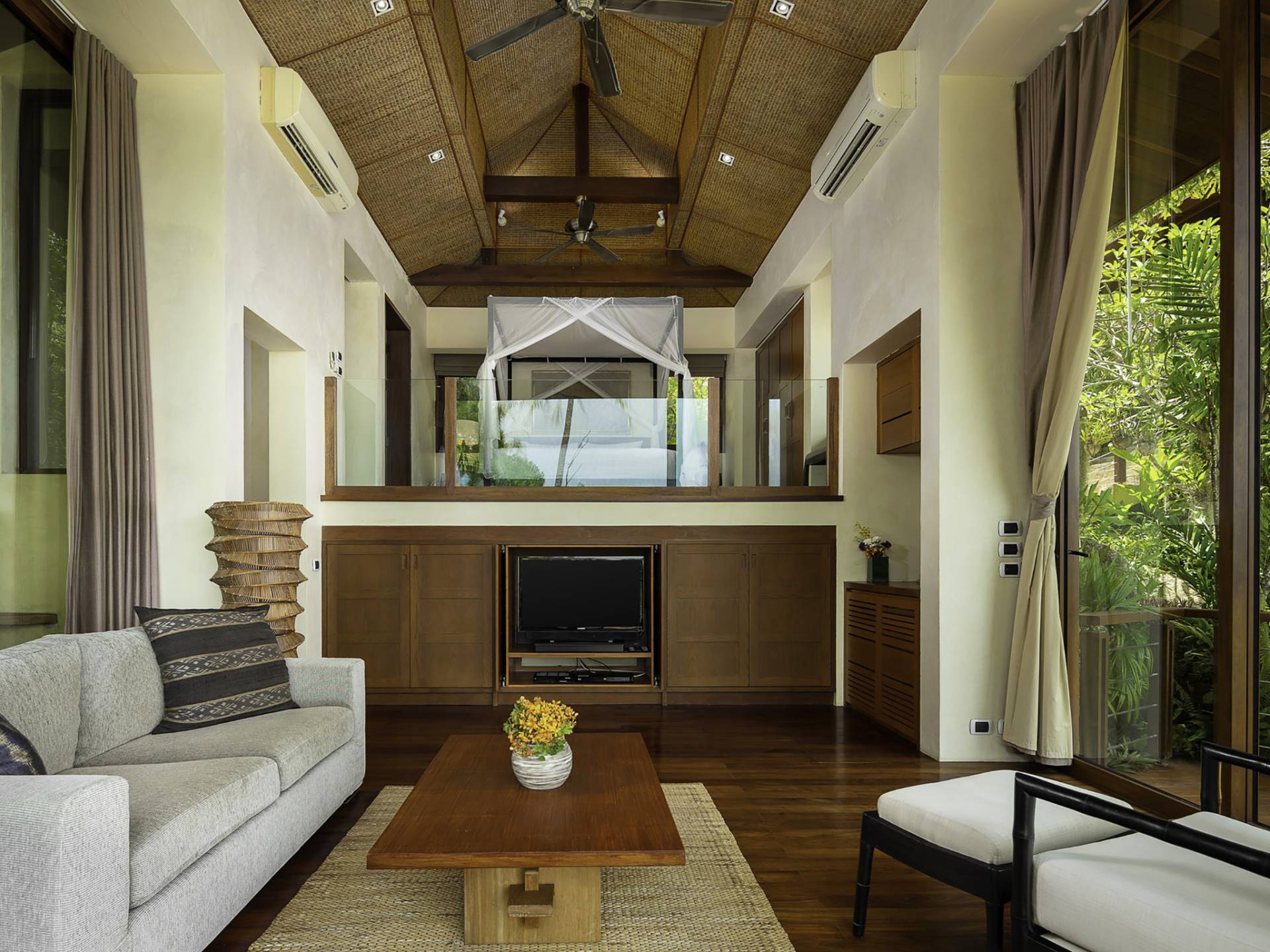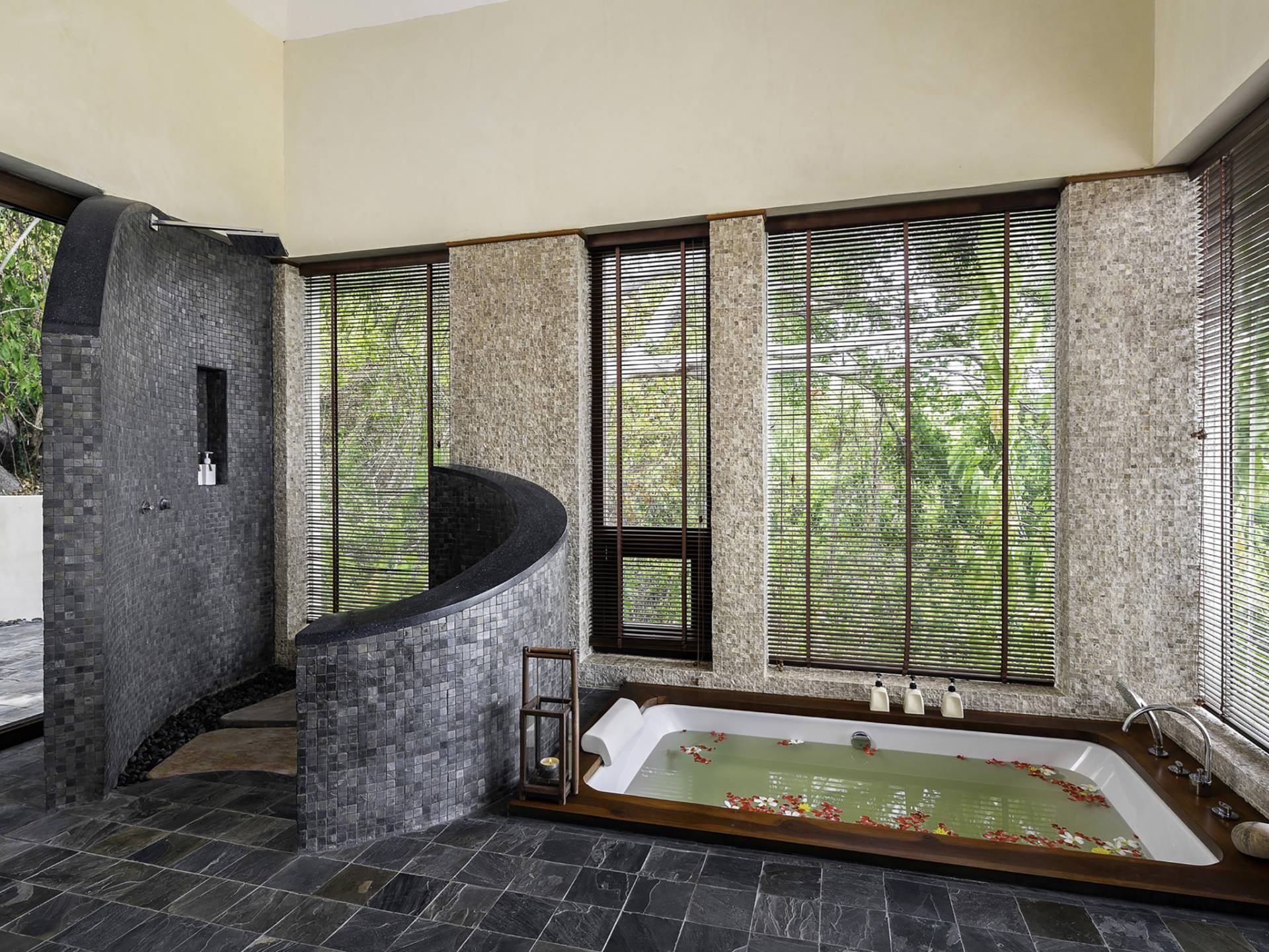 Construite sur plusieurs niveaux dans une colline boisée paradisiaque, la Villa Sila Varee bénéficie d'un style asiatique contemporain et d'un luxe en abondance. Les entrées paysagées des niveaux supérieur et inférieur invitent les visiteurs à pénétrer dans l'enceinte à travers d'anciennes portes indonésiennes en batak, devant des cascades en cascade. Une fois à l'intérieur, le bâtiment principal de deux étages de la villa donne sur la piscine à débordement jusqu'à l'océan au-delà et abrite un salon et une salle à manger décloisonnés à l'étage supérieur, ainsi que trois chambres d'hôtes avec salle de bains privative.
