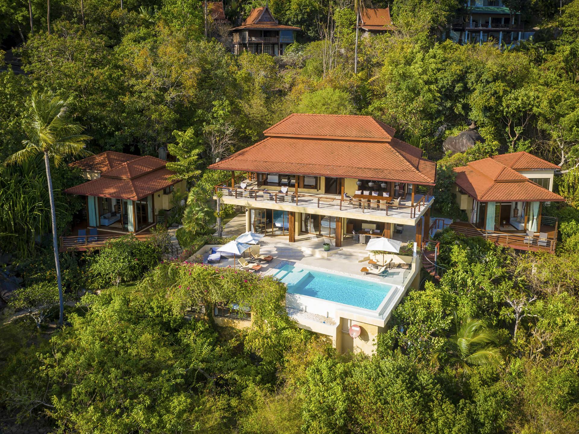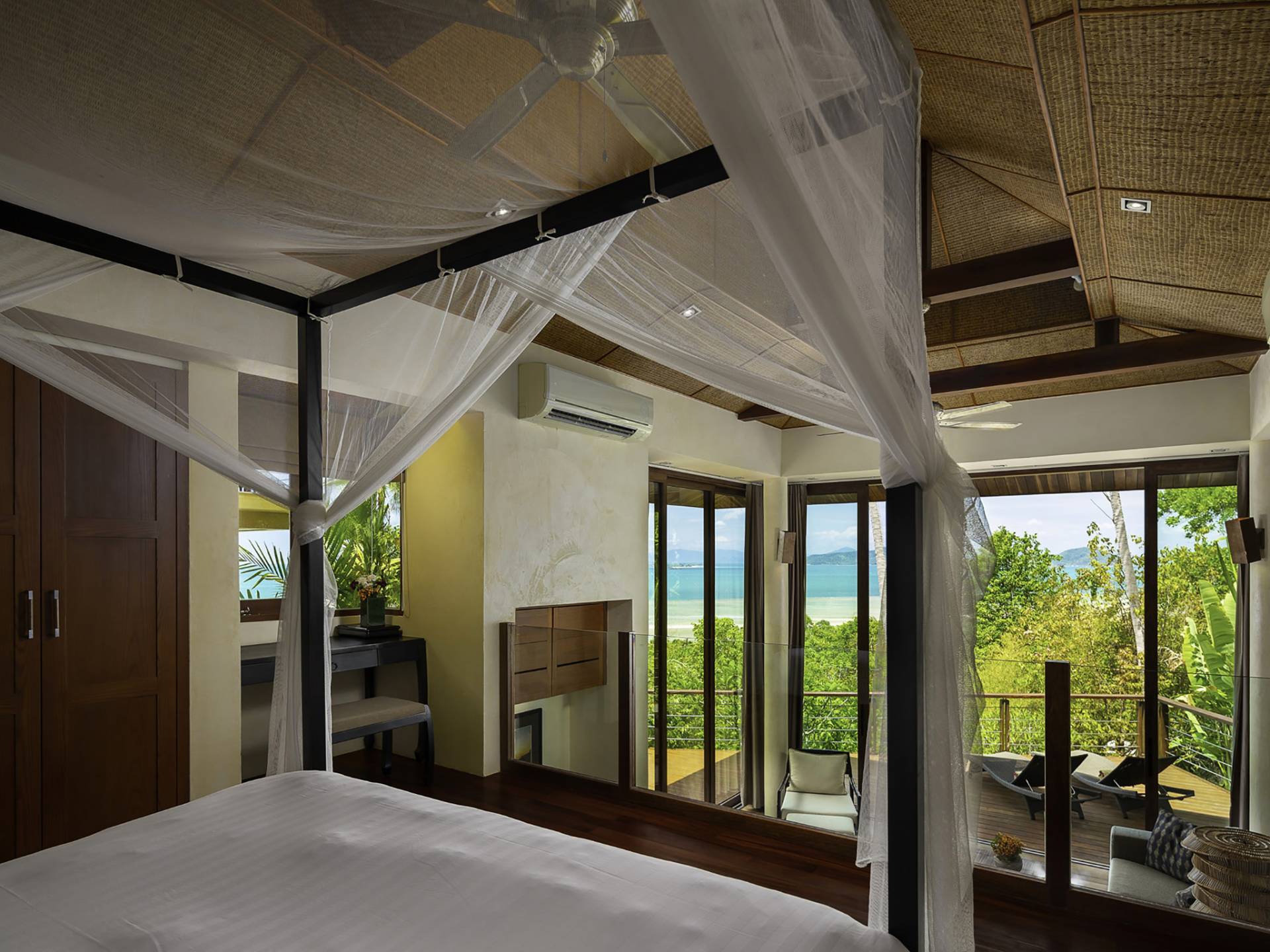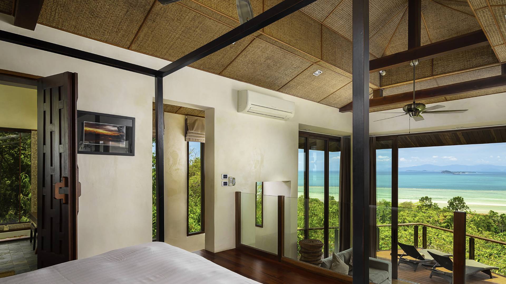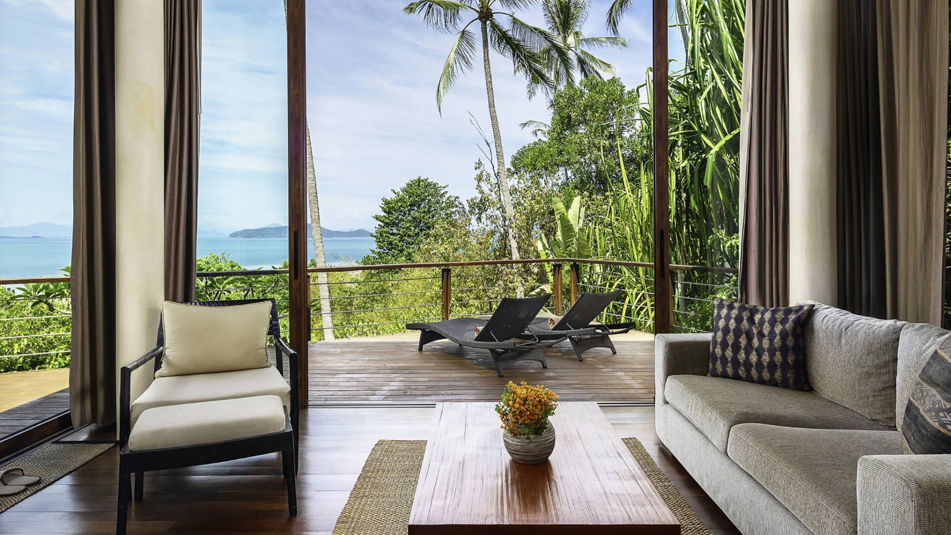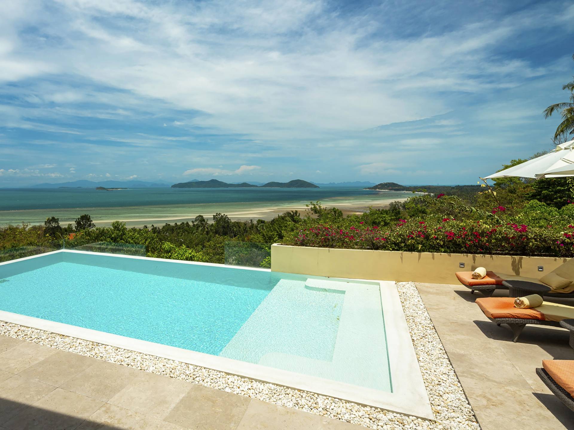 Construite sur plusieurs niveaux dans une colline boisée paradisiaque, la Villa Sila Varee bénéficie d'un style asiatique contemporain et d'un luxe en abondance. Les entrées paysagées des niveaux supérieur et inférieur invitent les visiteurs à pénétrer dans l'enceinte à travers d'anciennes portes indonésiennes en batak, devant des cascades en cascade. Une fois à l'intérieur, le bâtiment principal de deux étages de la villa donne sur la piscine à débordement jusqu'à l'océan au-delà et abrite un salon et une salle à manger décloisonnés à l'étage supérieur, ainsi que trois chambres d'hôtes avec salle de bains privative.