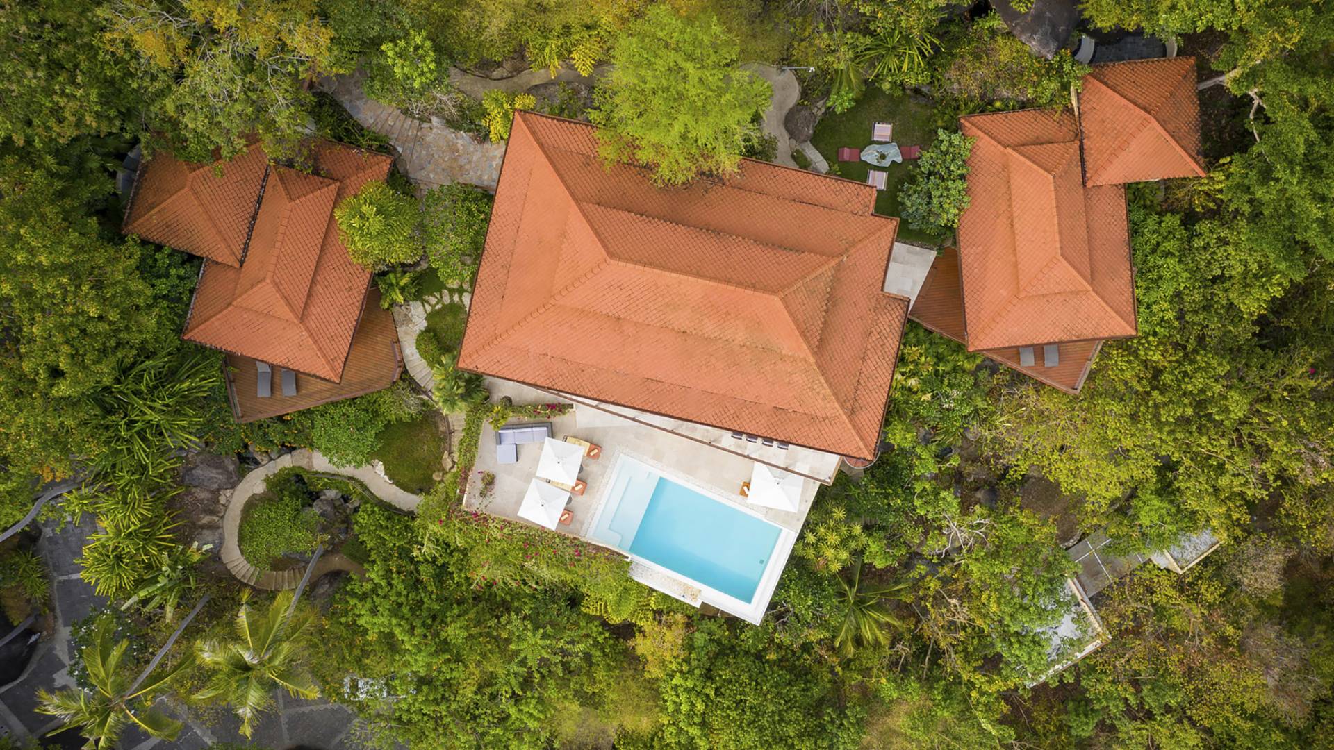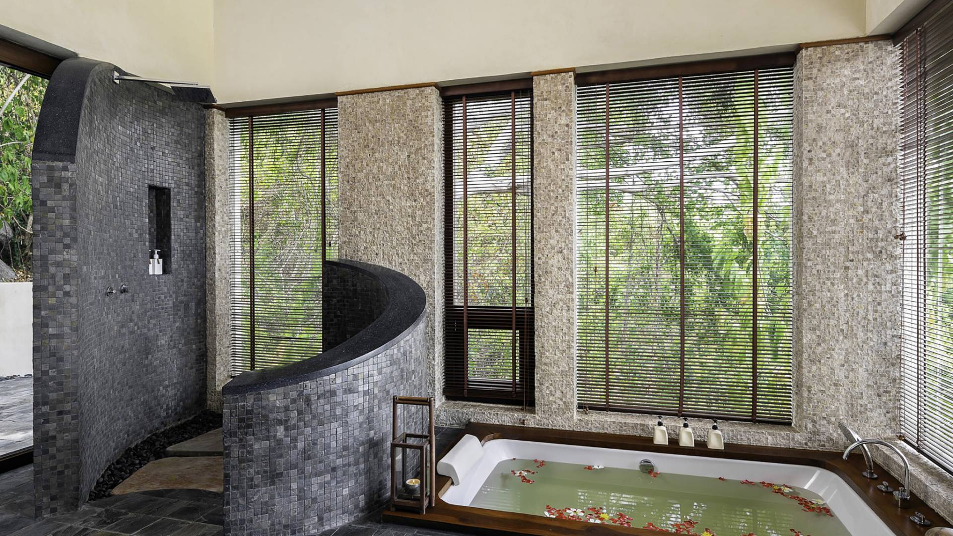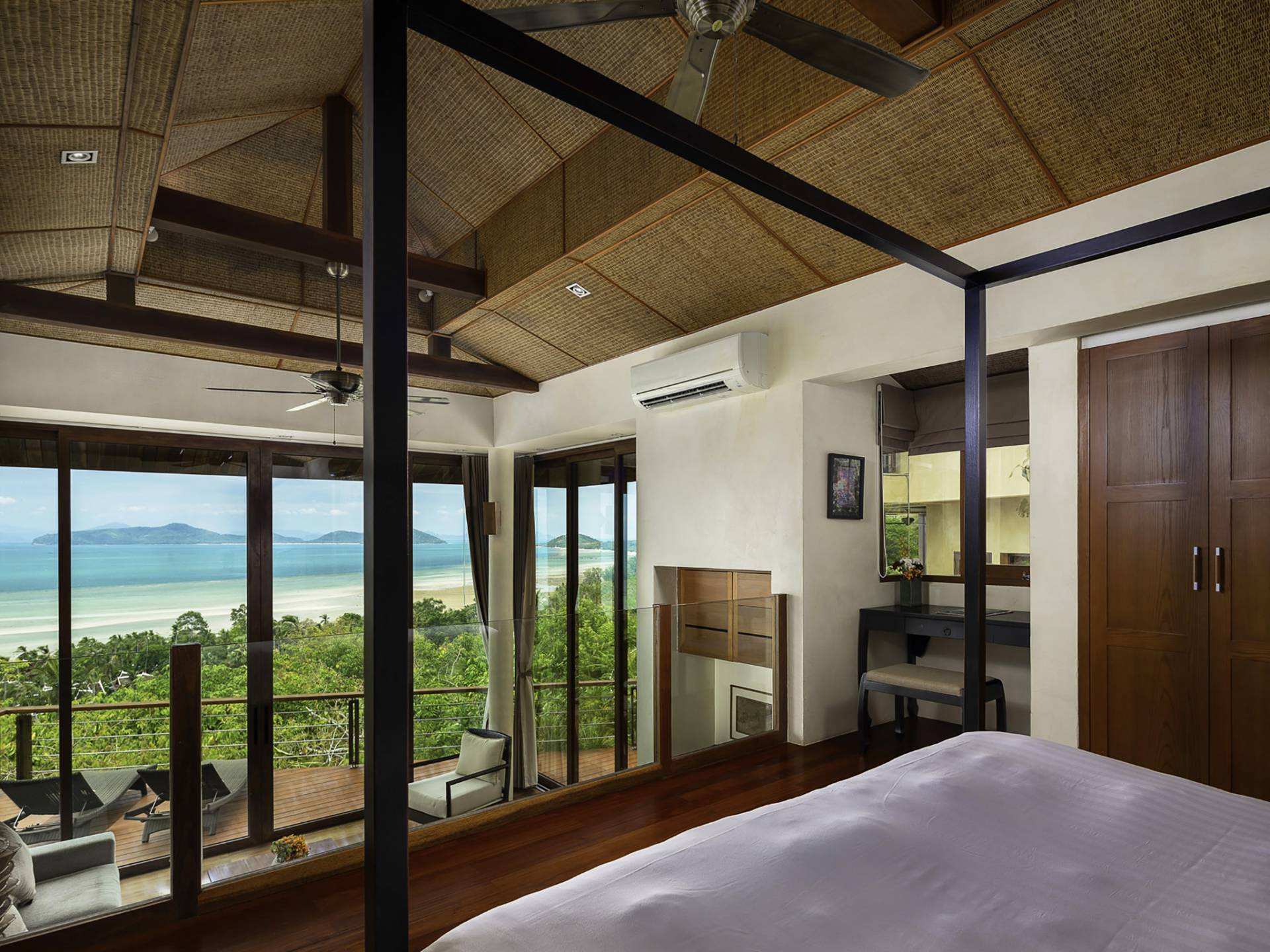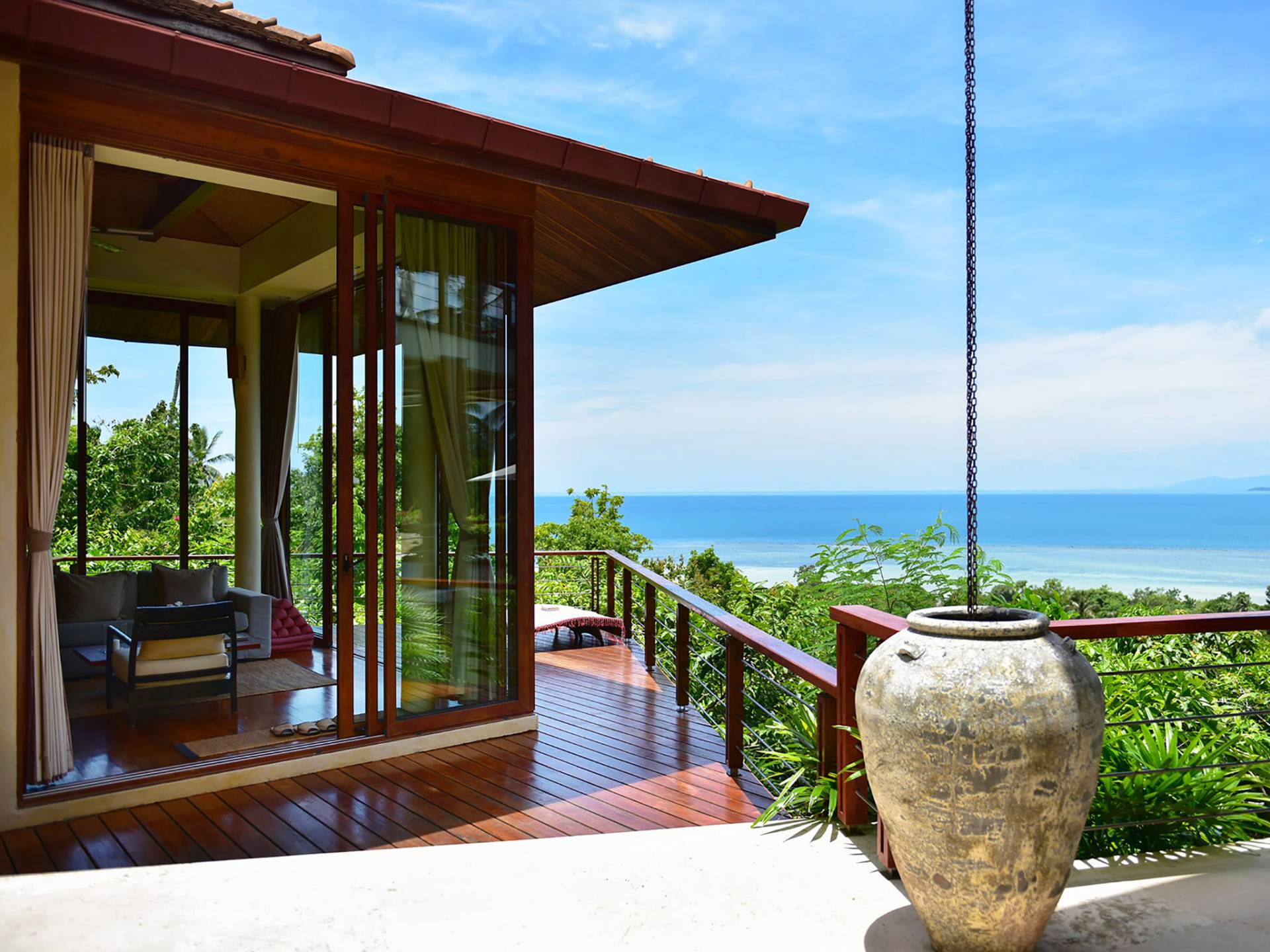 Construite sur plusieurs niveaux dans une colline boisée paradisiaque, la Villa Sila Varee bénéficie d'un style asiatique contemporain et d'un luxe en abondance. Les entrées paysagées des niveaux supérieur et inférieur invitent les visiteurs à pénétrer dans l'enceinte à travers d'anciennes portes indonésiennes en batak, devant des cascades en cascade. Une fois à l'intérieur, le bâtiment principal de deux étages de la villa donne sur la piscine à débordement jusqu'à l'océan au-delà et abrite un salon et une salle à manger décloisonnés à l'étage supérieur, ainsi que trois chambres d'hôtes avec salle de bains privative.