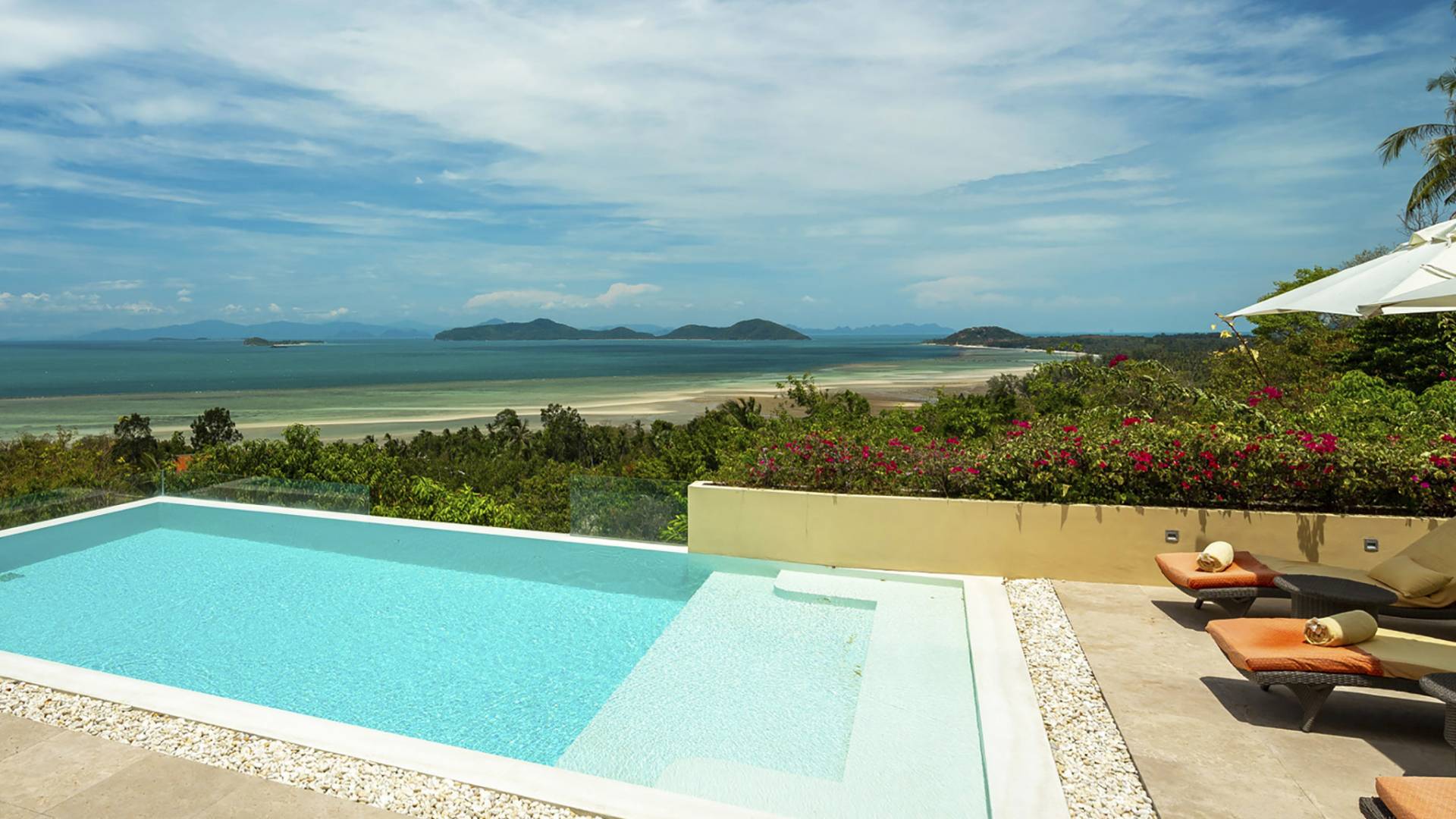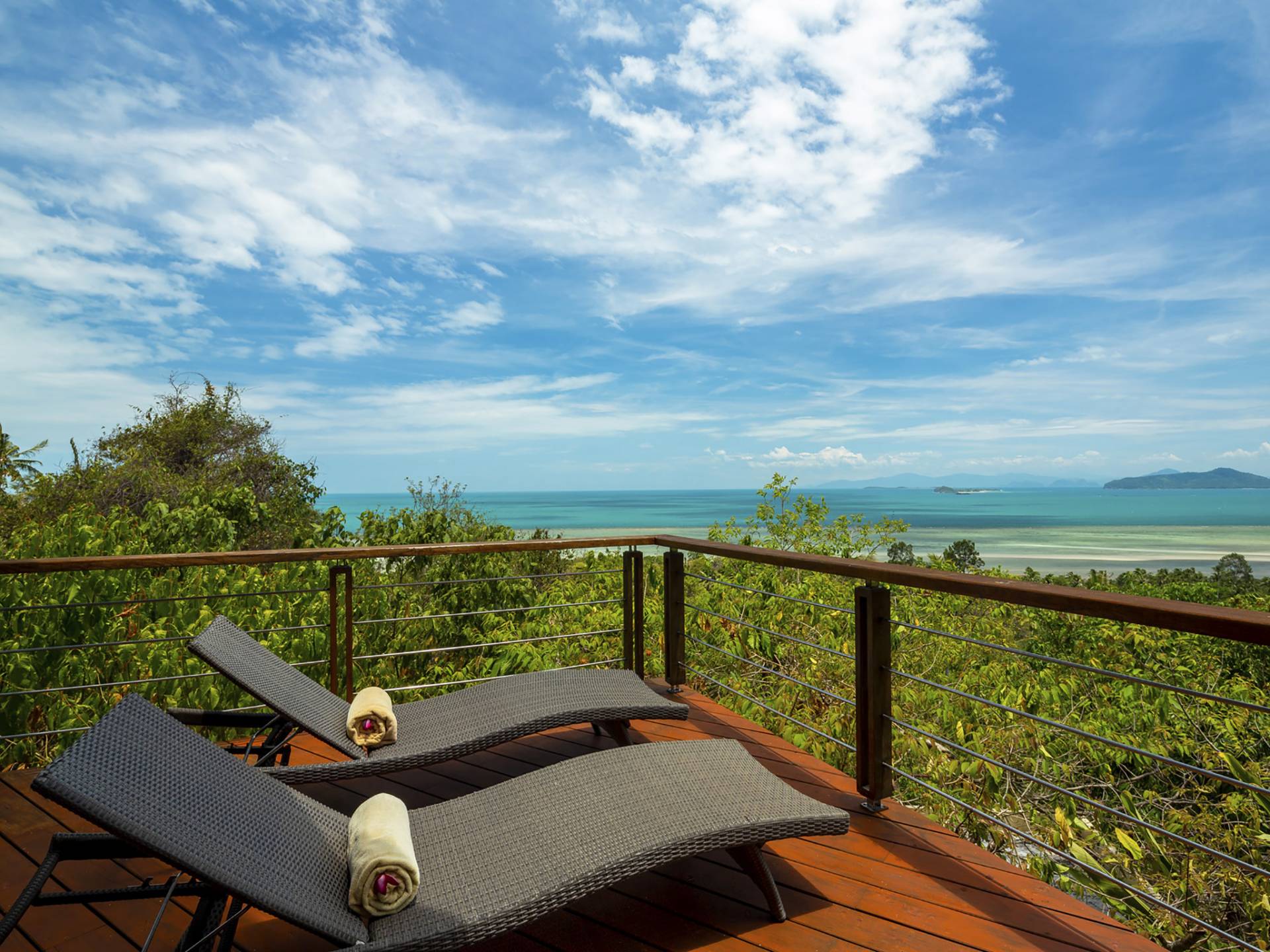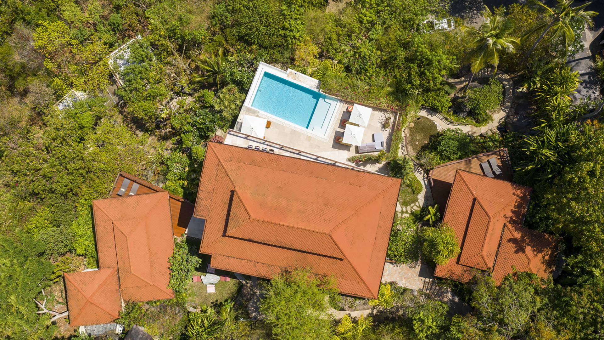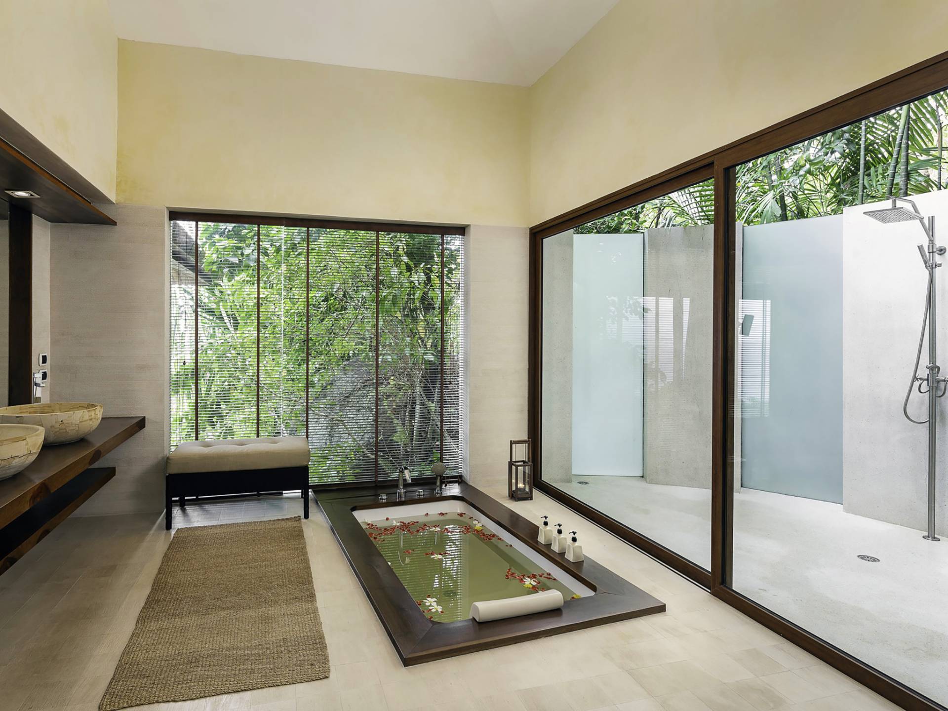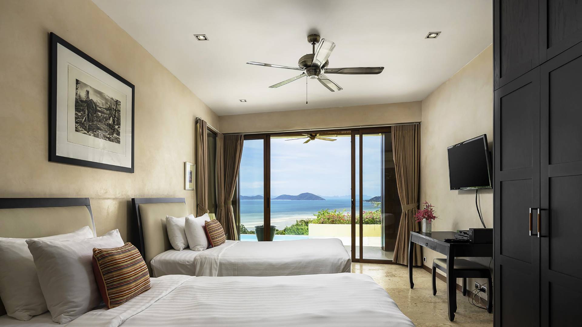Construite sur plusieurs niveaux dans une colline boisée paradisiaque, la Villa Sila Varee bénéficie d'un style asiatique contemporain et d'un luxe en abondance. Les entrées paysagées des niveaux supérieur et inférieur invitent les visiteurs à pénétrer dans l'enceinte à travers d'anciennes portes indonésiennes en batak, devant des cascades en cascade. Une fois à l'intérieur, le bâtiment principal de deux étages de la villa donne sur la piscine à débordement jusqu'à l'océan au-delà et abrite un salon et une salle à manger décloisonnés à l'étage supérieur, ainsi que trois chambres d'hôtes avec salle de bains privative.