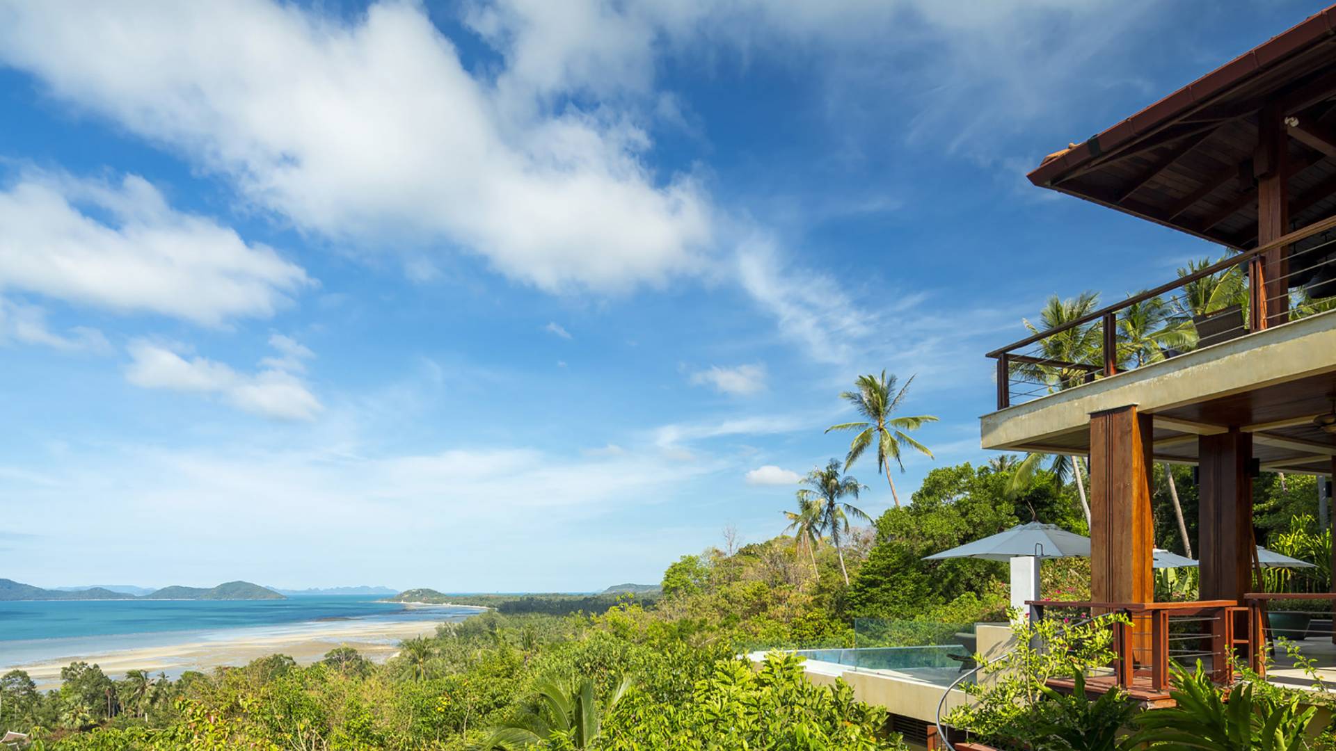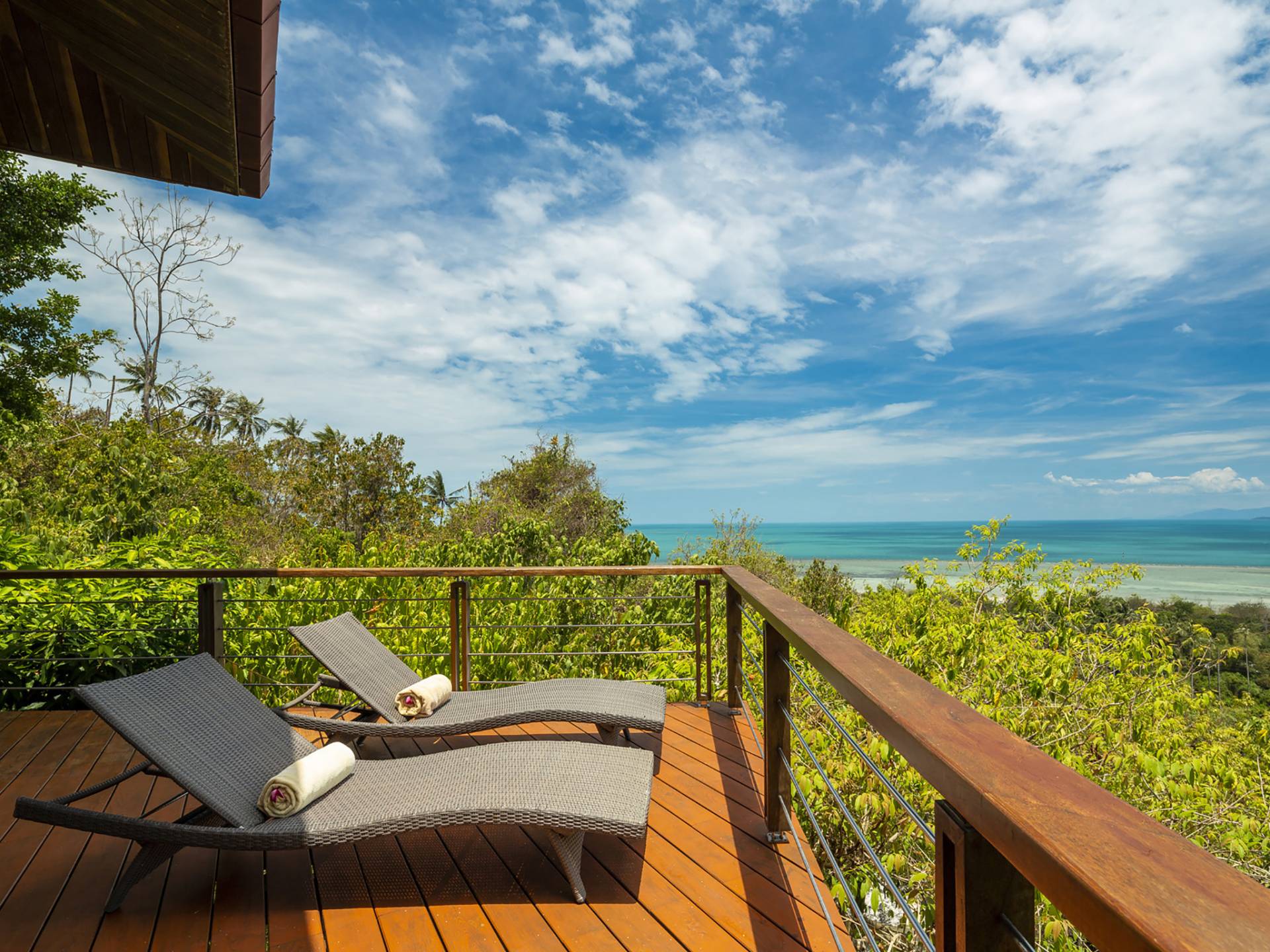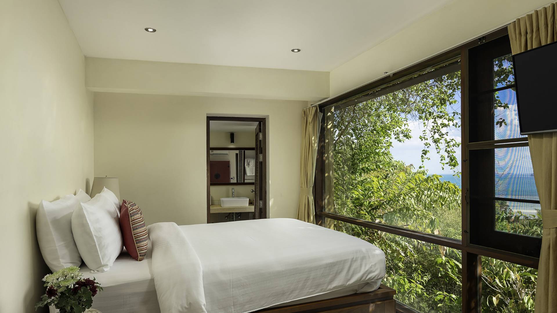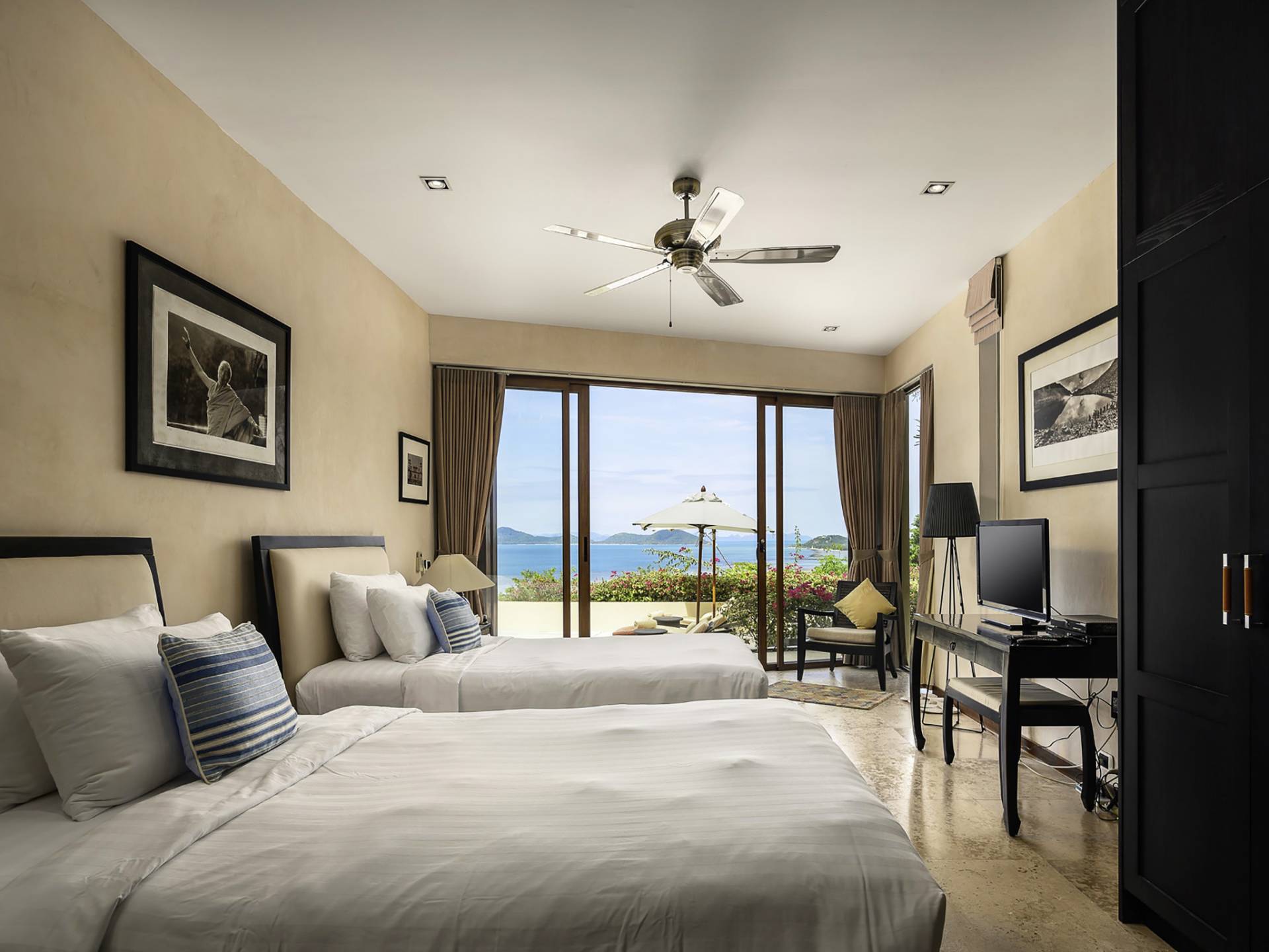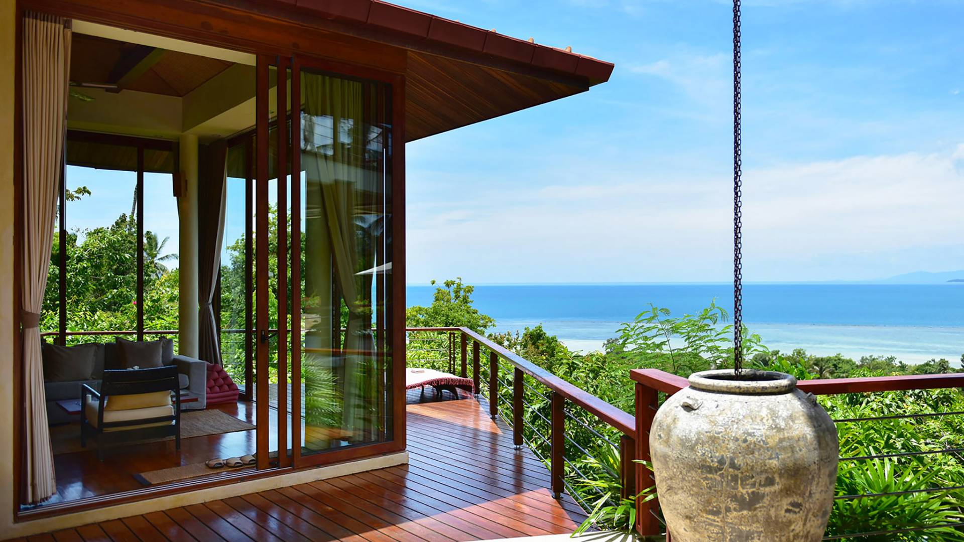 Construite sur plusieurs niveaux dans une colline boisée paradisiaque, la Villa Sila Varee bénéficie d'un style asiatique contemporain et d'un luxe en abondance. Les entrées paysagées des niveaux supérieur et inférieur invitent les visiteurs à pénétrer dans l'enceinte à travers d'anciennes portes indonésiennes en batak, devant des cascades en cascade. Une fois à l'intérieur, le bâtiment principal de deux étages de la villa donne sur la piscine à débordement jusqu'à l'océan au-delà et abrite un salon et une salle à manger décloisonnés à l'étage supérieur, ainsi que trois chambres d'hôtes avec salle de bains privative.