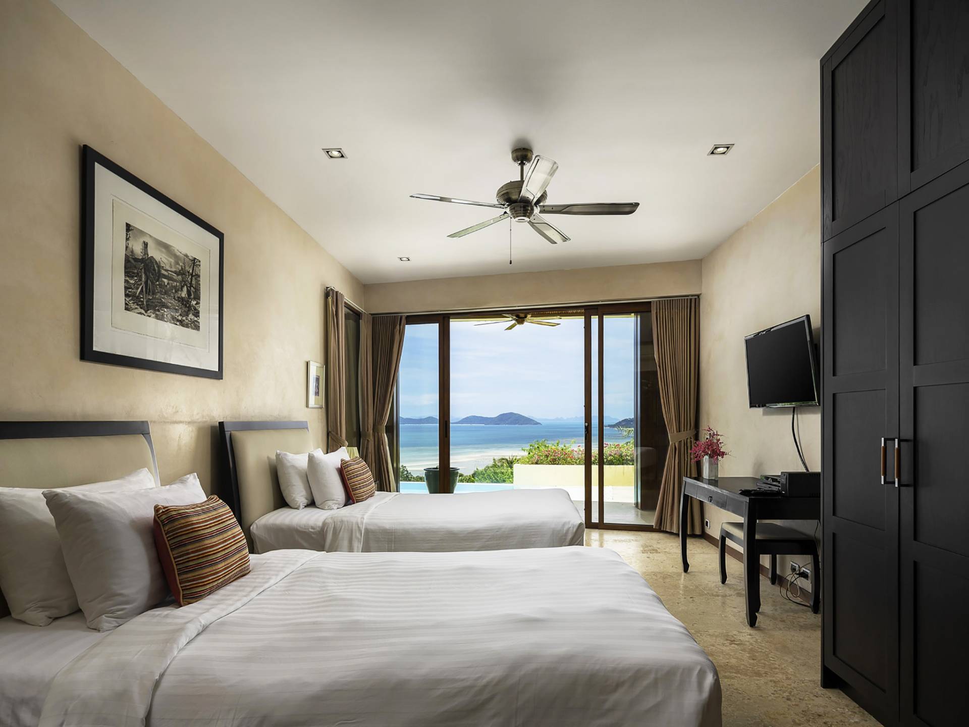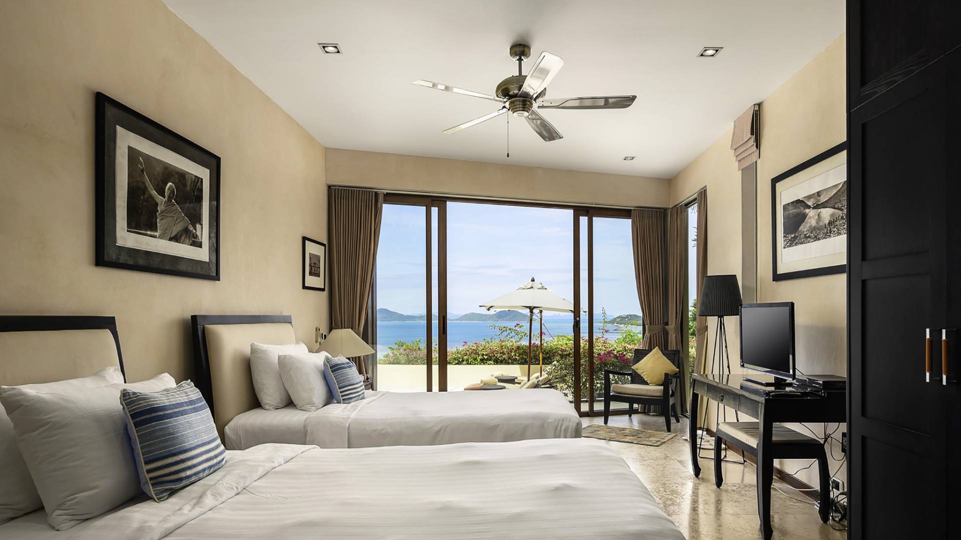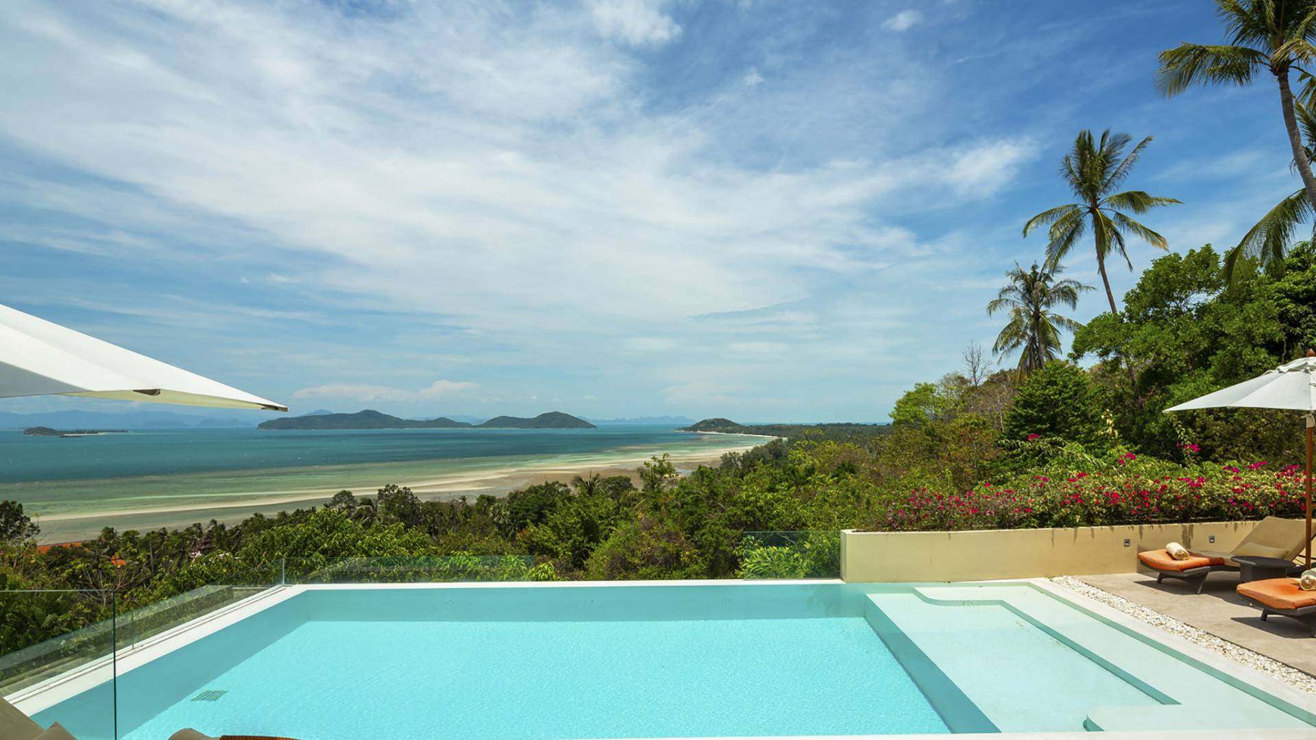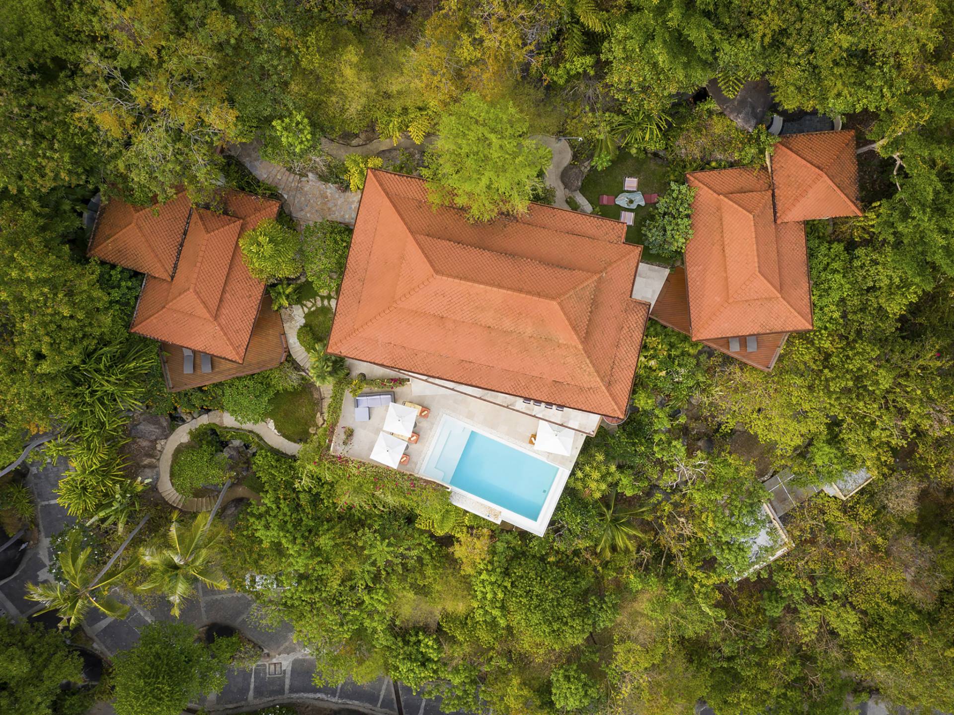 Construite sur plusieurs niveaux dans une colline boisée paradisiaque, la Villa Sila Varee bénéficie d'un style asiatique contemporain et d'un luxe en abondance. Les entrées paysagées des niveaux supérieur et inférieur invitent les visiteurs à pénétrer dans l'enceinte à travers d'anciennes portes indonésiennes en batak, devant des cascades en cascade. Une fois à l'intérieur, le bâtiment principal de deux étages de la villa donne sur la piscine à débordement jusqu'à l'océan au-delà et abrite un salon et une salle à manger décloisonnés à l'étage supérieur, ainsi que trois chambres d'hôtes avec salle de bains privative.