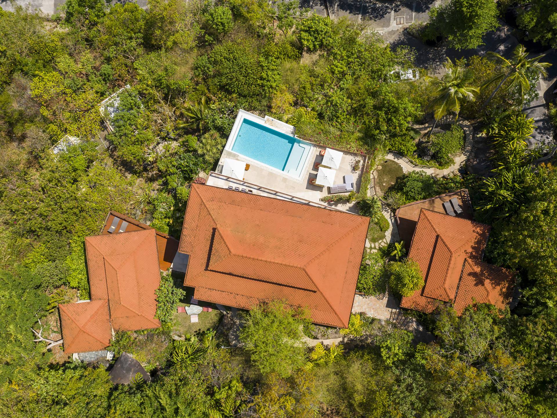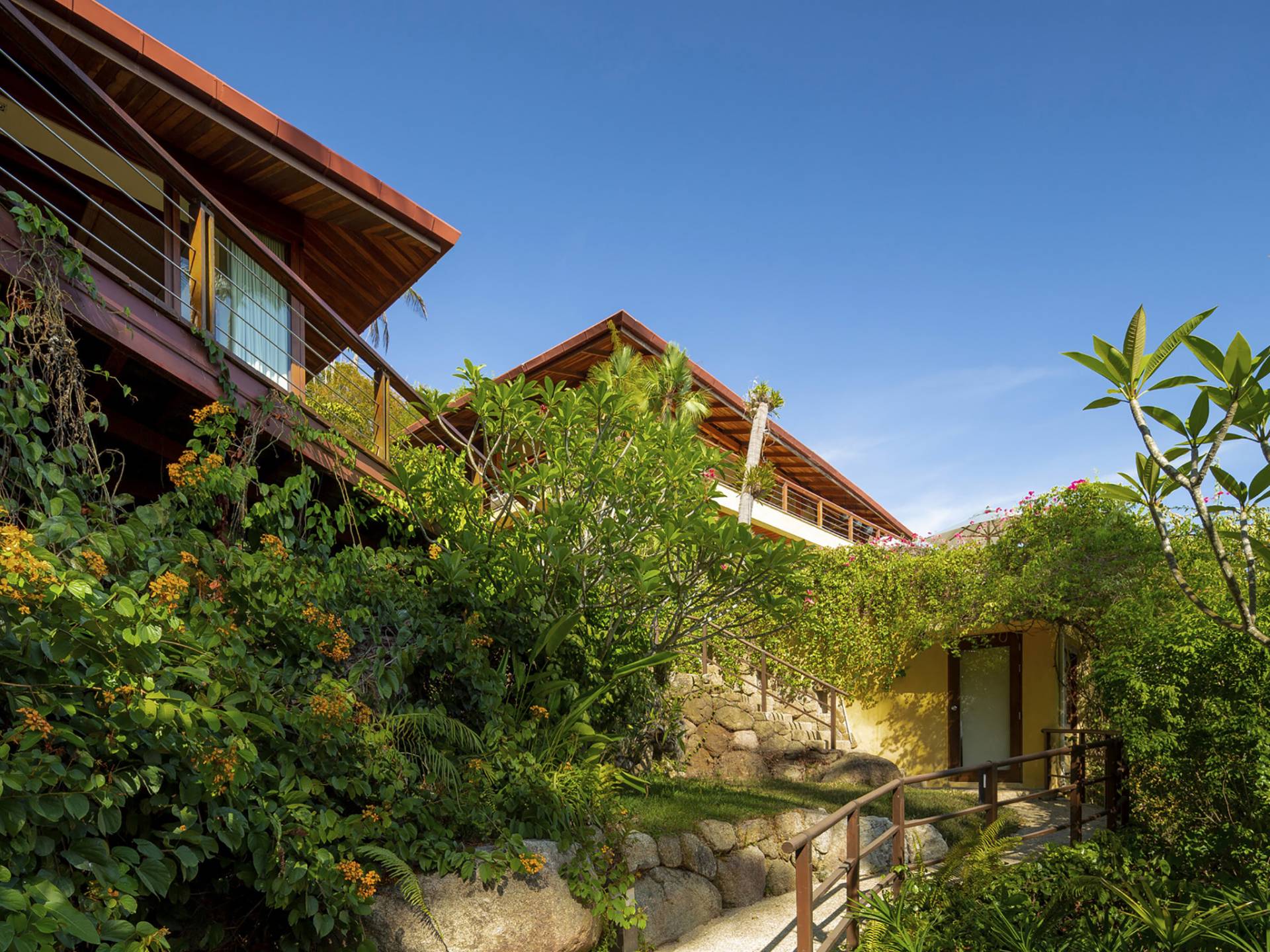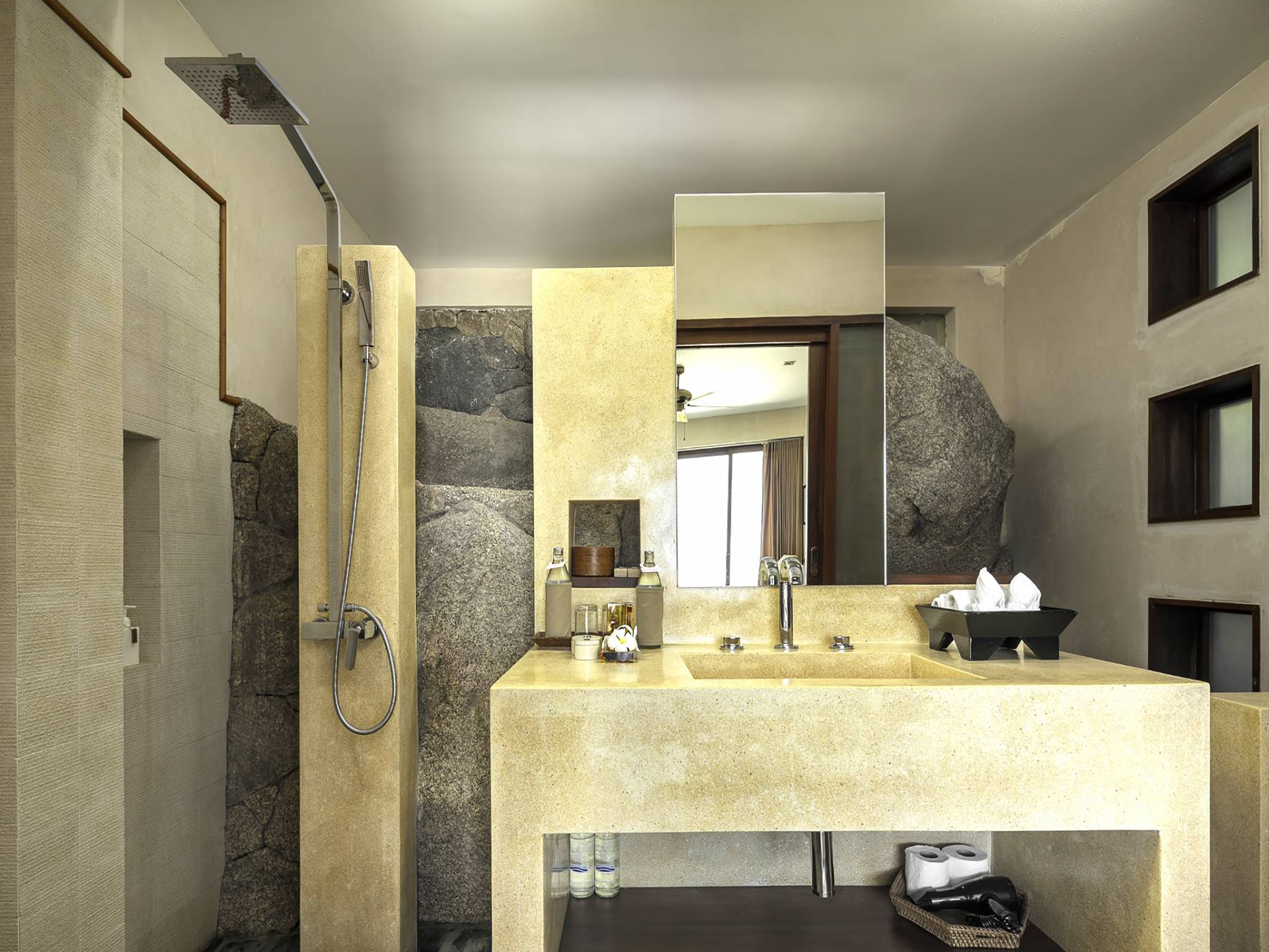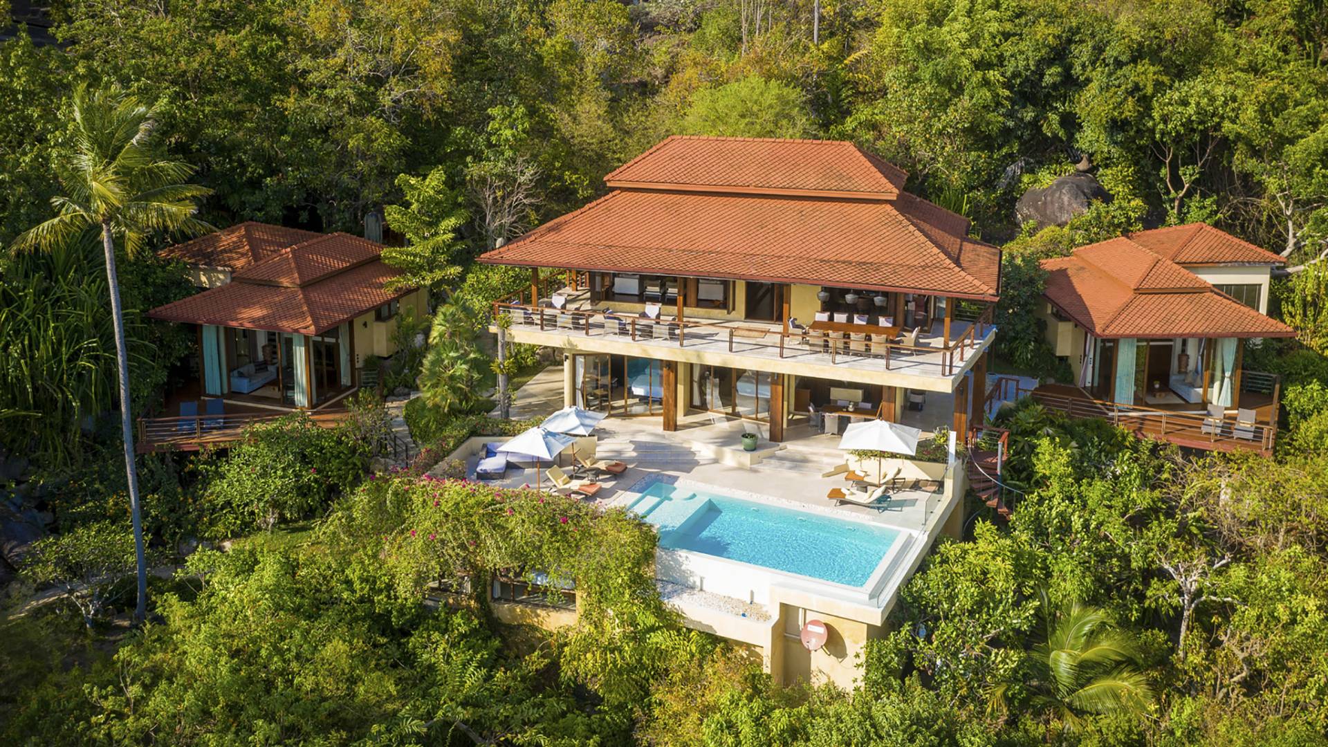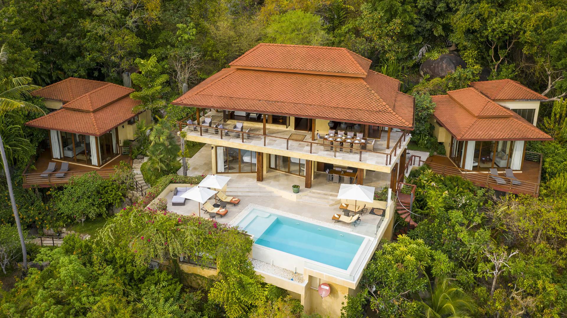 Construite sur plusieurs niveaux dans une colline boisée paradisiaque, la Villa Sila Varee bénéficie d'un style asiatique contemporain et d'un luxe en abondance. Les entrées paysagées des niveaux supérieur et inférieur invitent les visiteurs à pénétrer dans l'enceinte à travers d'anciennes portes indonésiennes en batak, devant des cascades en cascade. Une fois à l'intérieur, le bâtiment principal de deux étages de la villa donne sur la piscine à débordement jusqu'à l'océan au-delà et abrite un salon et une salle à manger décloisonnés à l'étage supérieur, ainsi que trois chambres d'hôtes avec salle de bains privative.