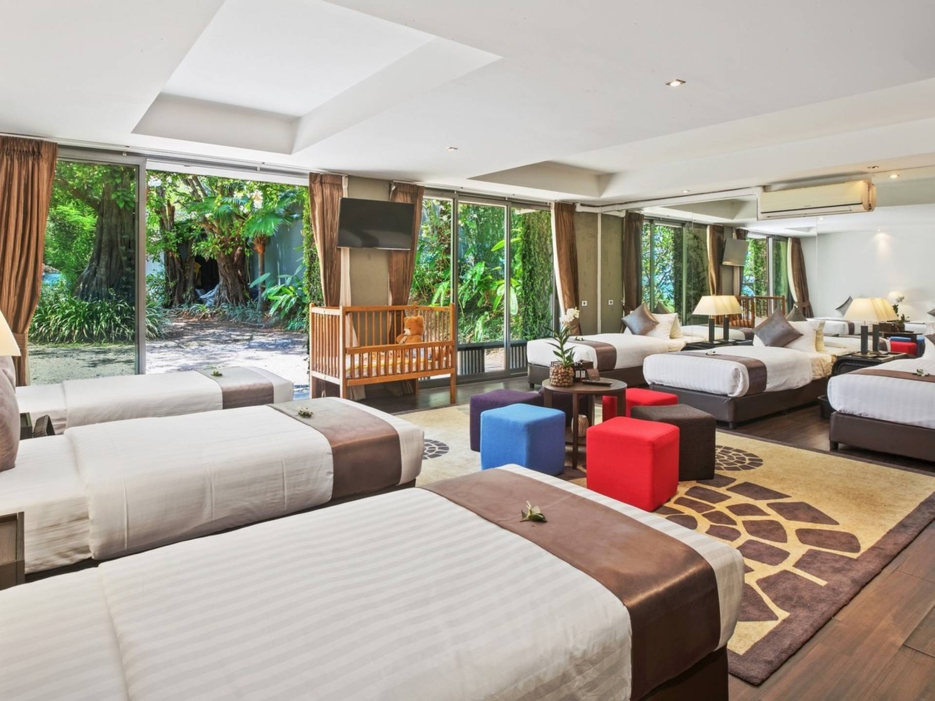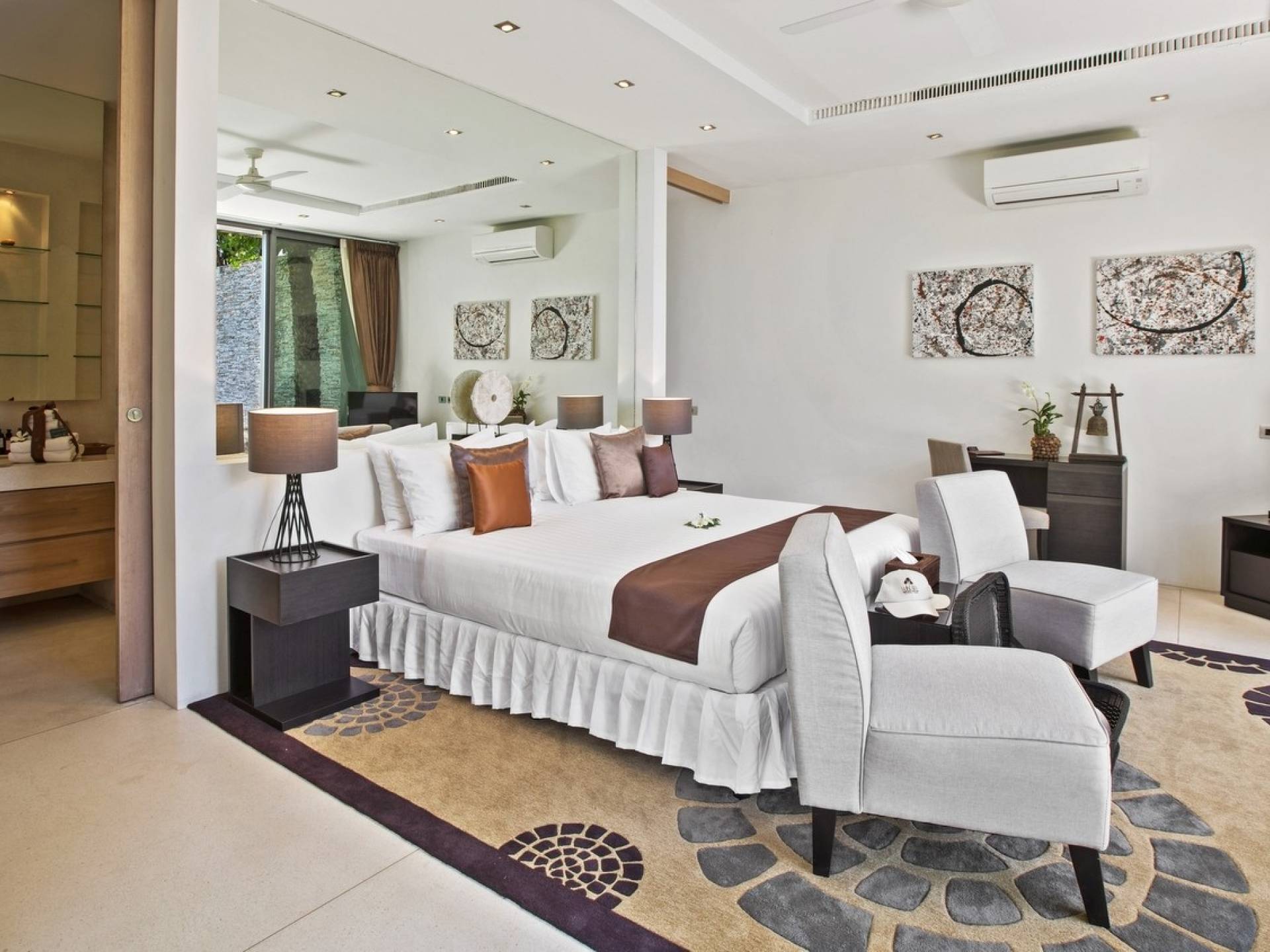 La Villa 2 à Sangsuri Estate Samui propose 7 chambres doubles, toutes avec des vues spectaculaires sur la mer, et un dortoir pour 6 à 8 enfants ou jeunes adultes. Flanquée de ses deux propriétés sœurs, la Villa 2 à Sangsuri Estate Samui est l'une des trois superbes villas qui composent l'impressionnant Sangsuri Estate à Koh Samui. La spacieuse villa de 8 chambres est conçue comme une série de pavillons de vie et de couchage enchanteurs et autonomes répartis sur quatre niveaux et répartis sur un magnifique terrain paysager donnant sur une plage tranquille à quelques kilomètres au nord du principal centre touristique de l'île, Chaweng.
